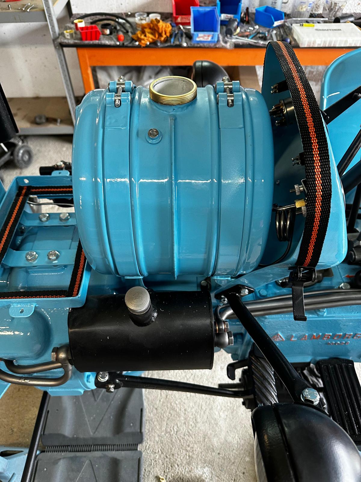 Lamborghinetta, 1959. 22 PS aus dem DL-20A, 1.000 kg – und in genau diesem Jahr nur 34 Stück gebaut. Klein, leicht, wendig – gemacht für Hang, Hof und enge Wege. Heute: rar wie ein guter Jahrgang.