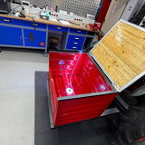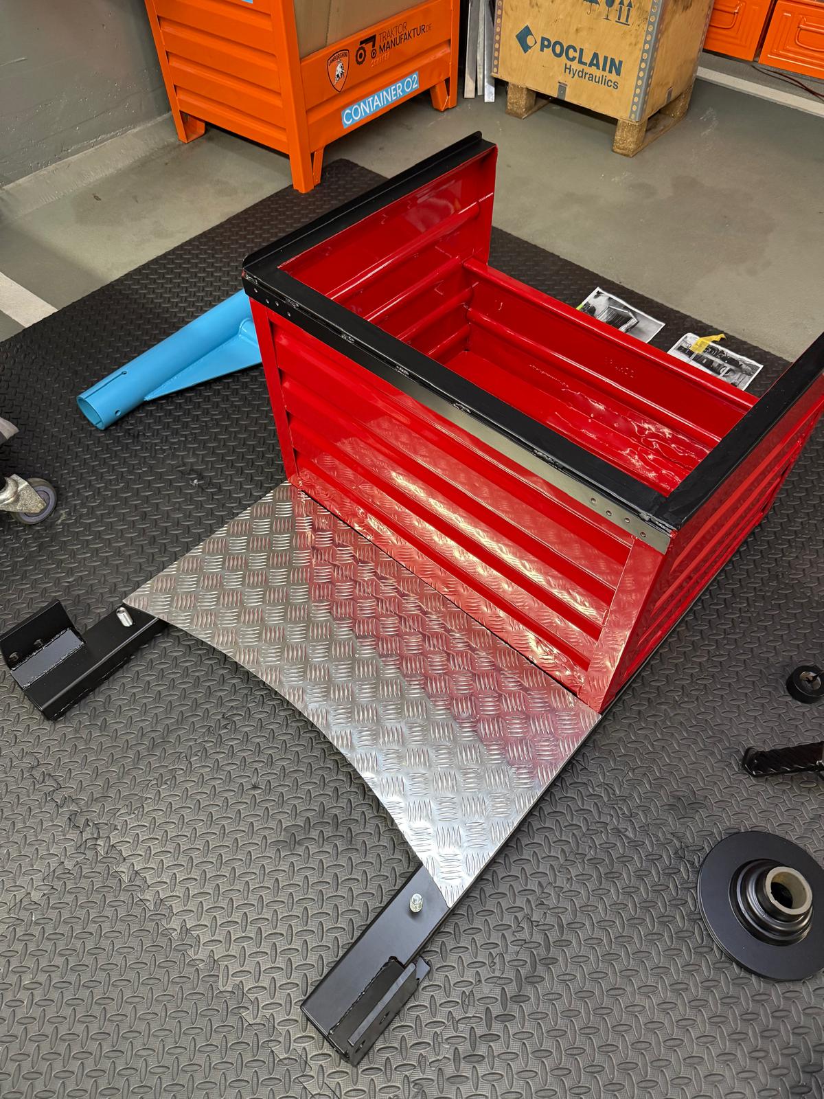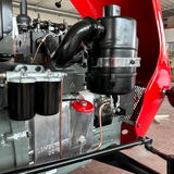 Bild für Bild geht es tiefer in die Maschine. Du wirst Späne sehen, Öl, Schweiß, verbrannte Fingerkuppen, Improvisation – und dann plötzlich wieder Perfektion in Lamborghini-Rot. Und je weiter du nach unten scrollst, desto näher kommt er seinem zweiten Leben: erst nackte Mechanik, dann Kabel und Leitungen, dann die ersten glänzenden Oberflächen, dann der Moment, an dem man zum ersten Mal denkt: Warte … der sieht ja schon wieder nach Lamborghini aus.