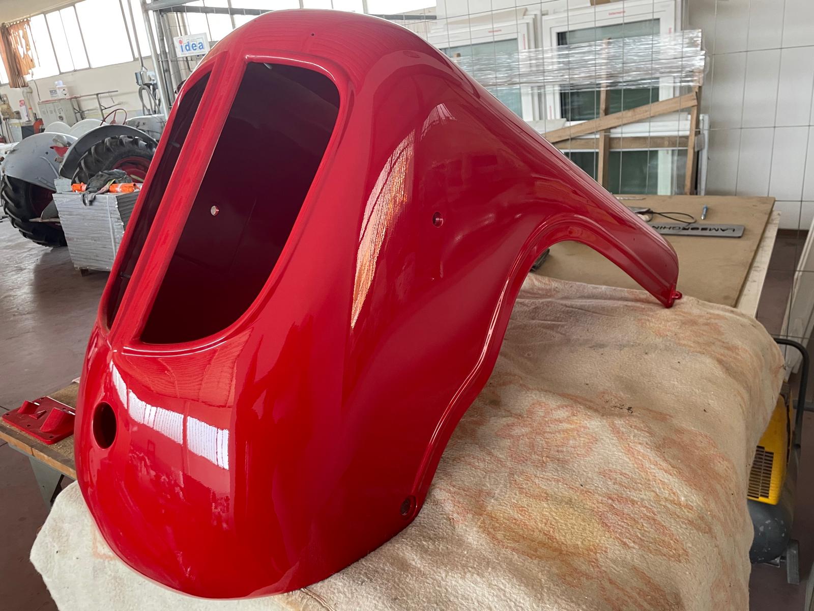 Du hast gesehen, was dafür nötig war: komplette Zerlegung, jede Welle, jede Leitung, jedes Detail. Alte Substanz retten, wo sie original bleiben darf. Fehlende Teile nachfertigen, wenn es sie kein zweites Mal mehr gibt. Motor wieder zum Atmen bringen. Kabelbäume neu aufbauen. Und am Ende dieses typische Lamborghini-Rot, das nicht einfach „Lack“ ist, sondern Aussage.