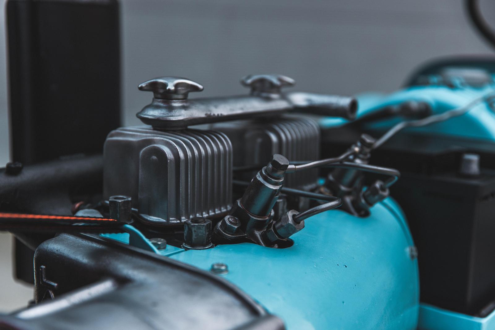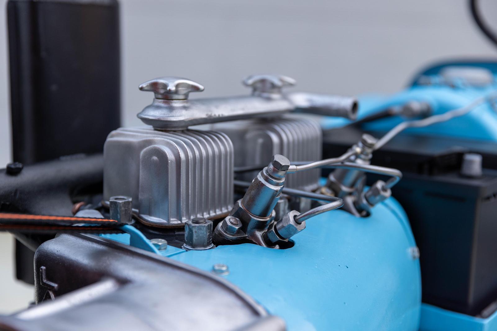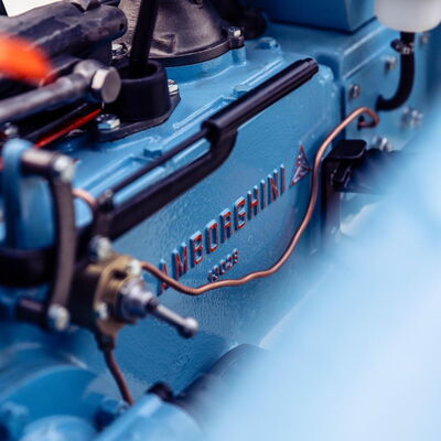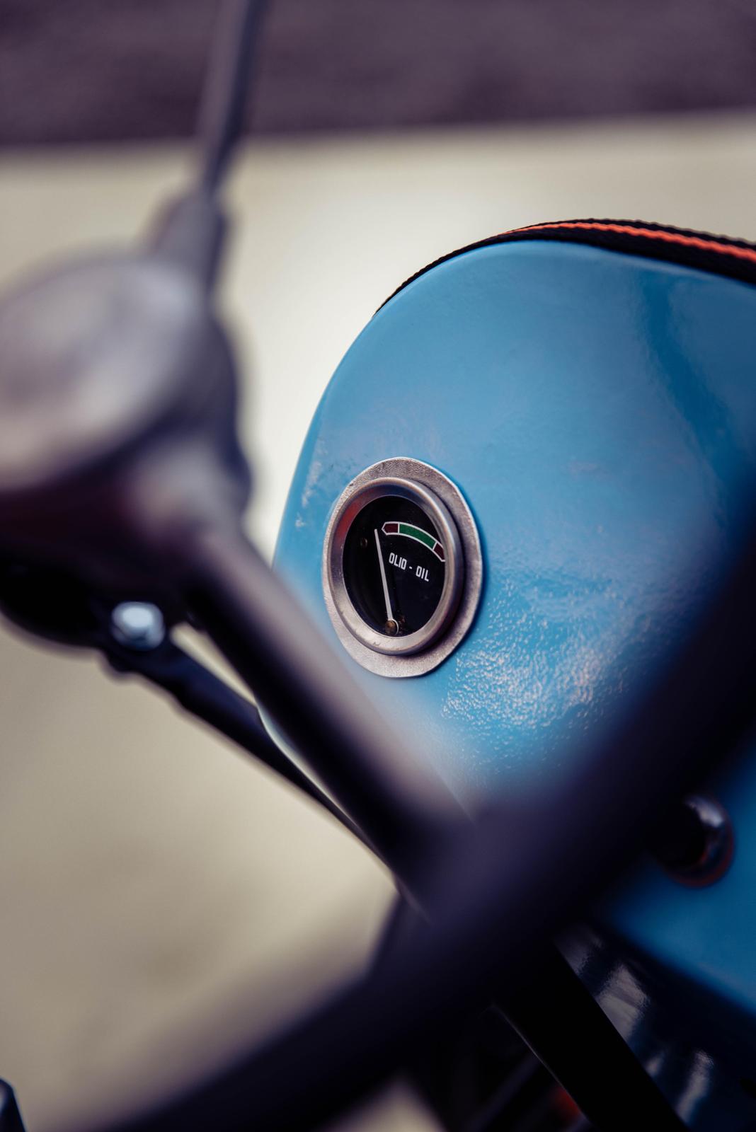 Was hier glänzt, ist Substanz. Das historische Azzurro (Azurblau) mit Arancio (Orange) ist kein Styling, sondern eine Hommage an die Werksfarben der Traktoren – präzise abgemischt, auf eine Technik gelegt, die wir Schraube für Schraube neu aufgebaut haben. Jeder Radius, jede Fase, jede Schelle folgt einer Logik: Vollzerlegung, Maßhaltigkeit, Funktionssicherheit.