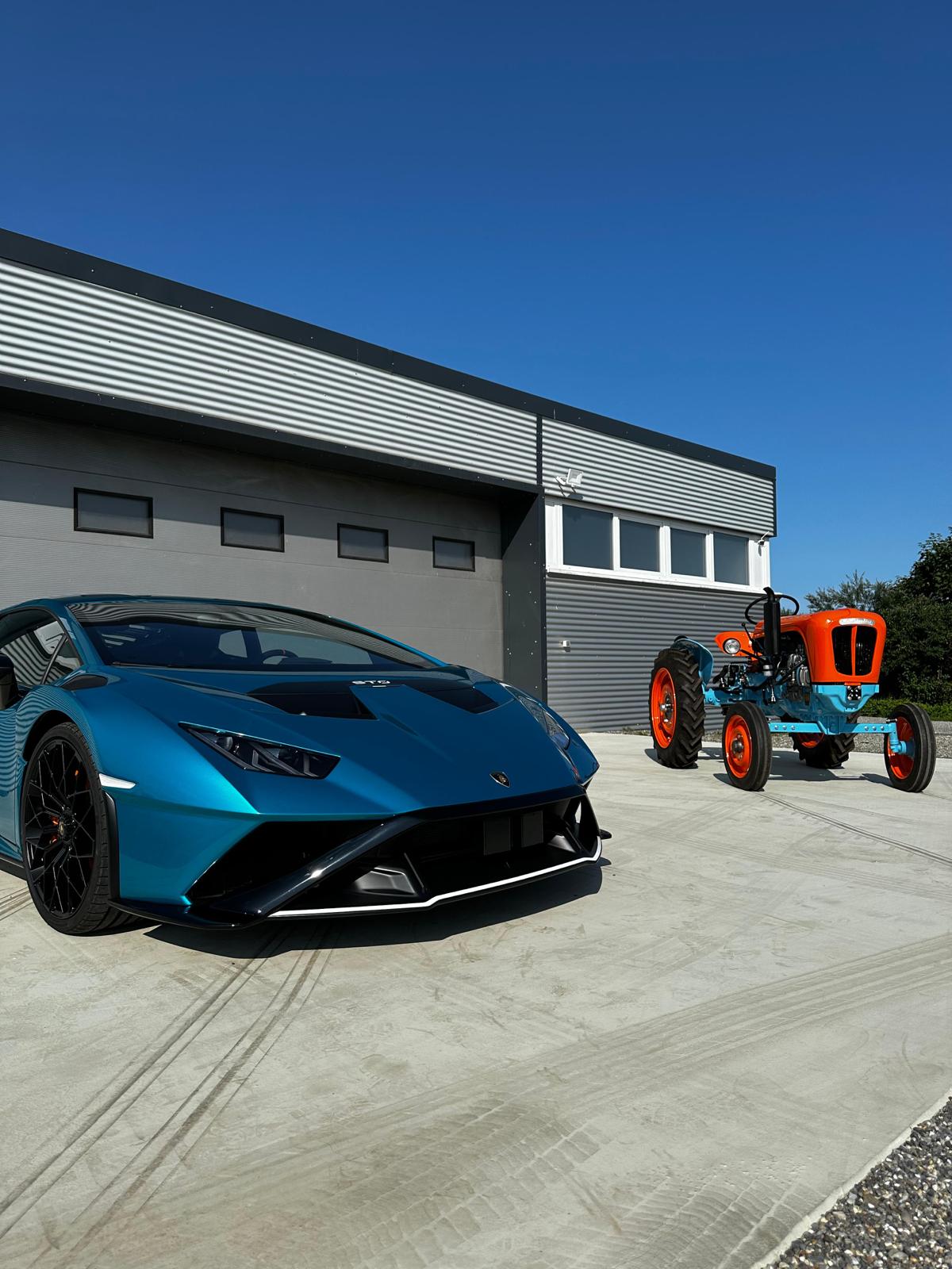 Neben dem Huracán STO passiert etwas Besonderes: zwei Zeitebenen – eine Haltung. Der STO zeigt, wie Lamborghini heute Präzision formt; die Lamborghinetta zeigt, wie präzise Technik von gestern wieder präzise wird: Kabelbäume neu gefertigt, Dichtungen nach unserer AT-Spezifikation, Anlasserzahnkranz erneuert, Felgen hochglanz-pulverbeschichtet. Kein Schein, keine Kosmetik. Klarheit statt Kompromiss.