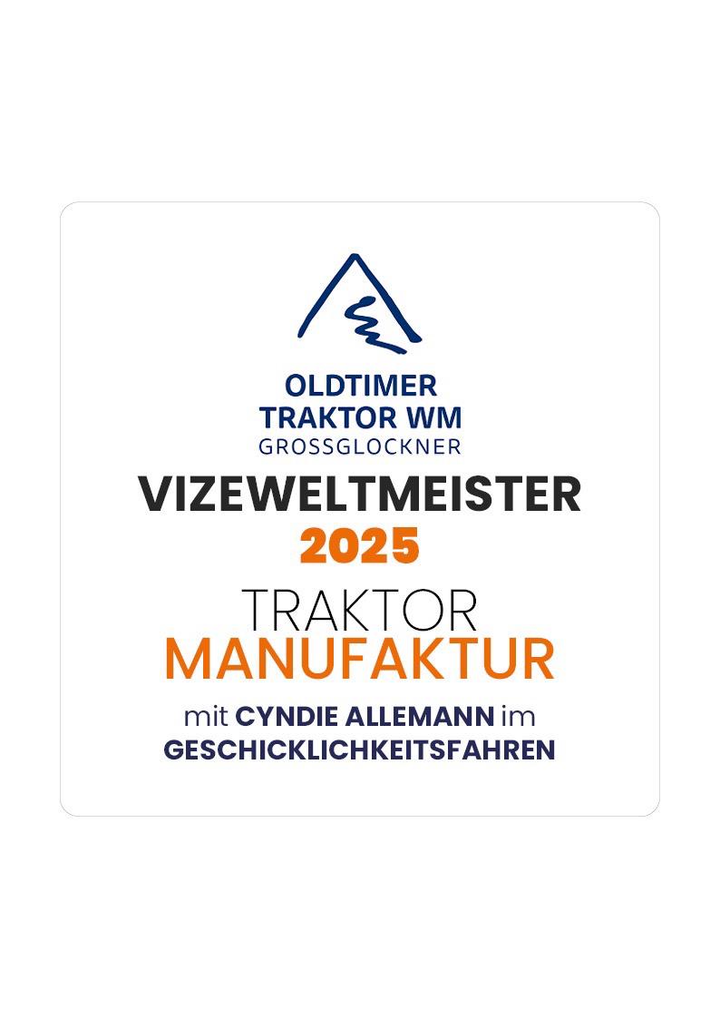 Bei der Oldtimer-Traktor-Weltmeisterschaft 2025 wurde sie Vizeweltmeister im Geschicklichkeitsfahren. Parcours mit eng gesetzten Toren, Wenden auf Zentimeter, sauberes Anfahren, exakte Brems- und Kupplungspunkte – Feinmechanik am Pedal, keine Showeffekte. Moderiert von Cyndie Allemann (Ex-Rennfahrerin und TV-Moderatorin) stand die Lamborghinetta im Zentrum: sichtbar, messbar, reproduzierbar.