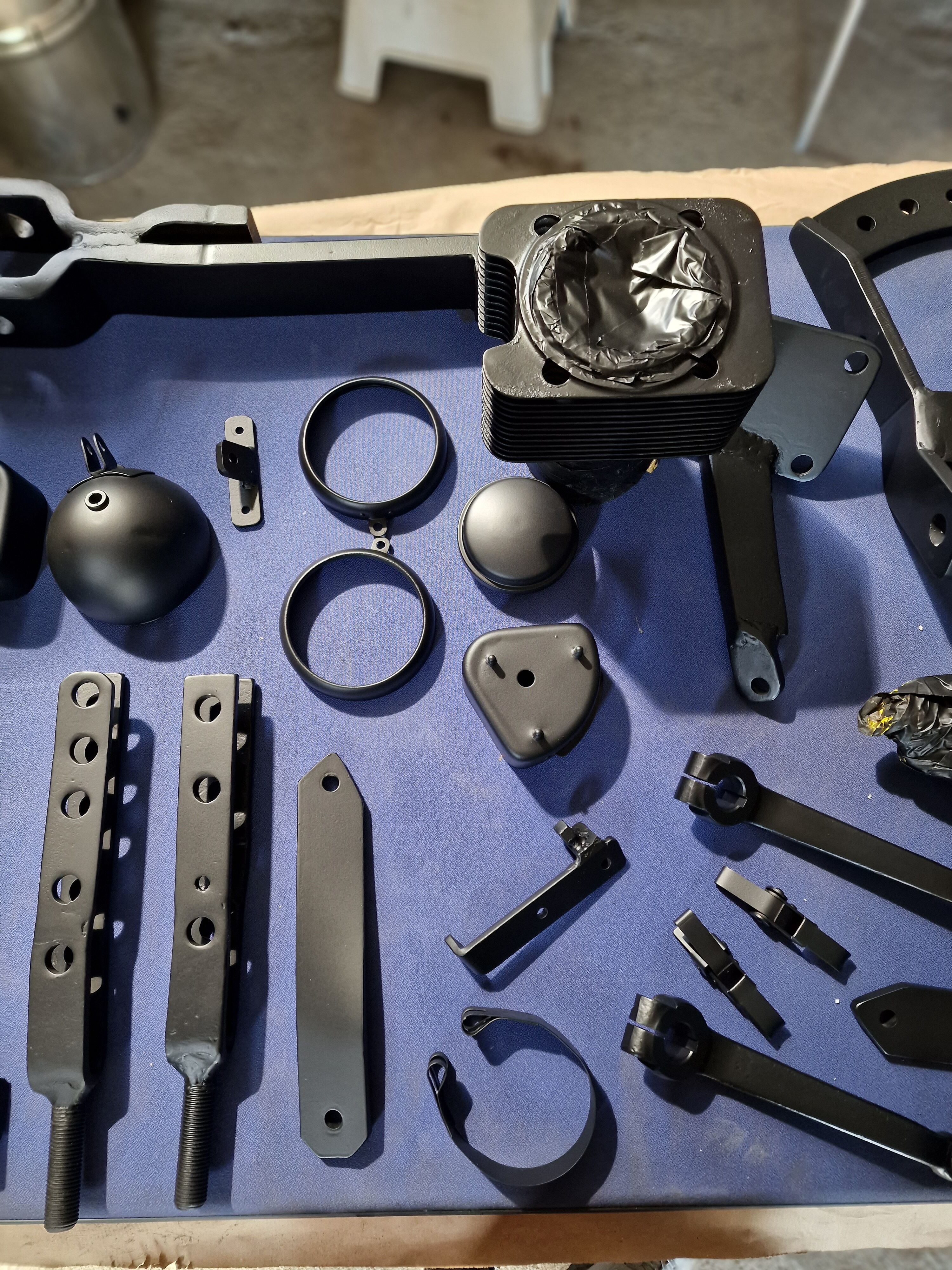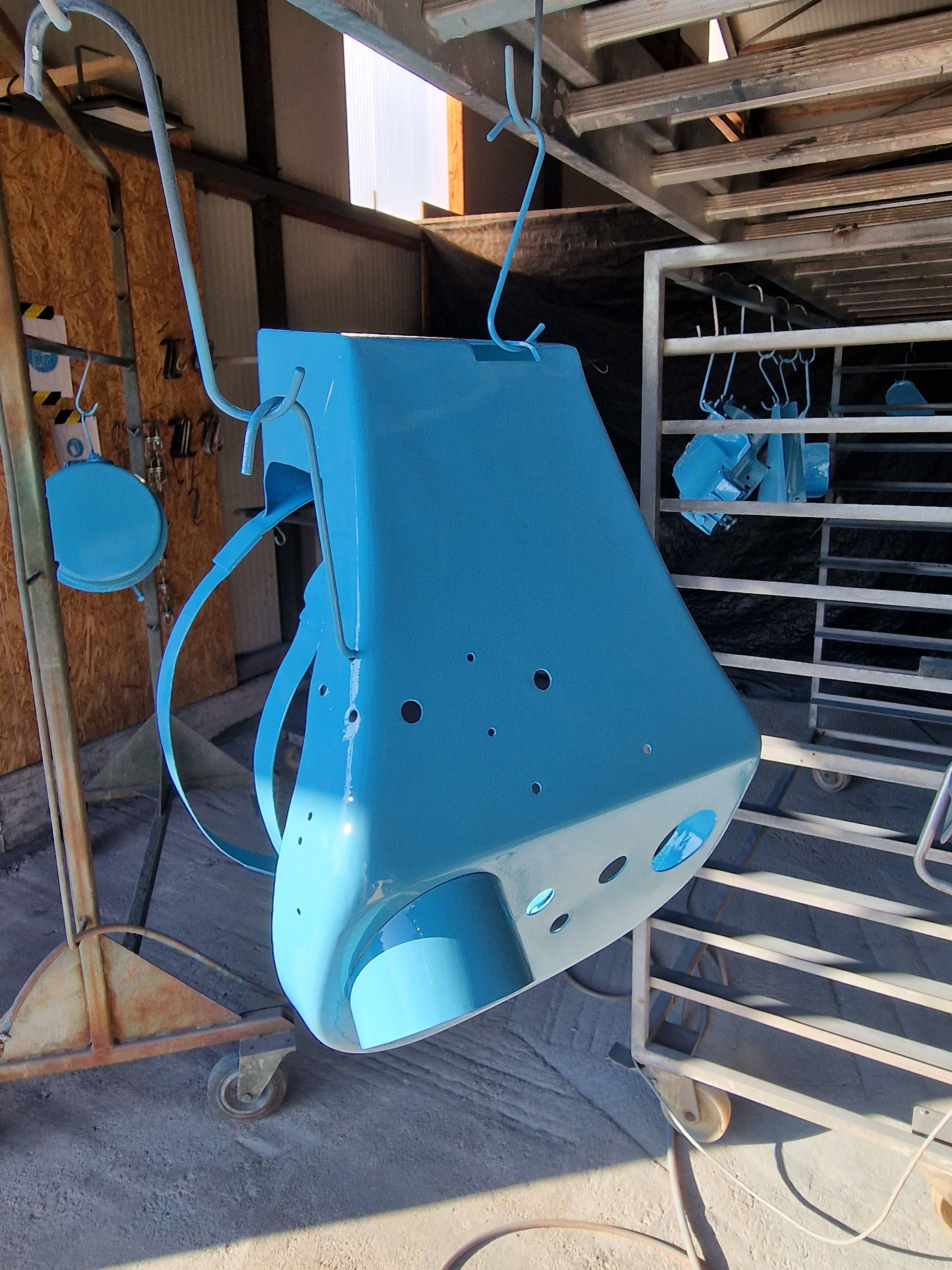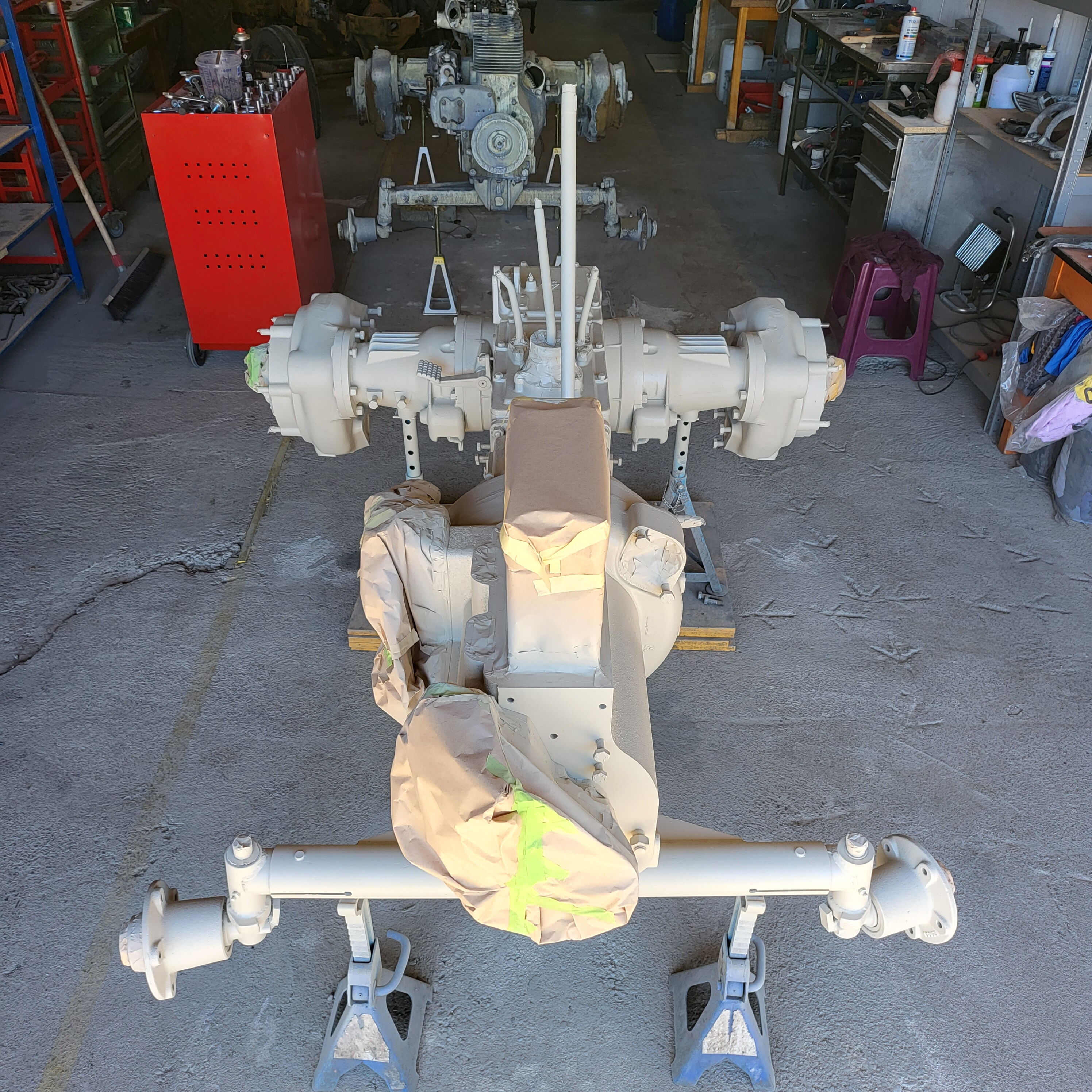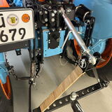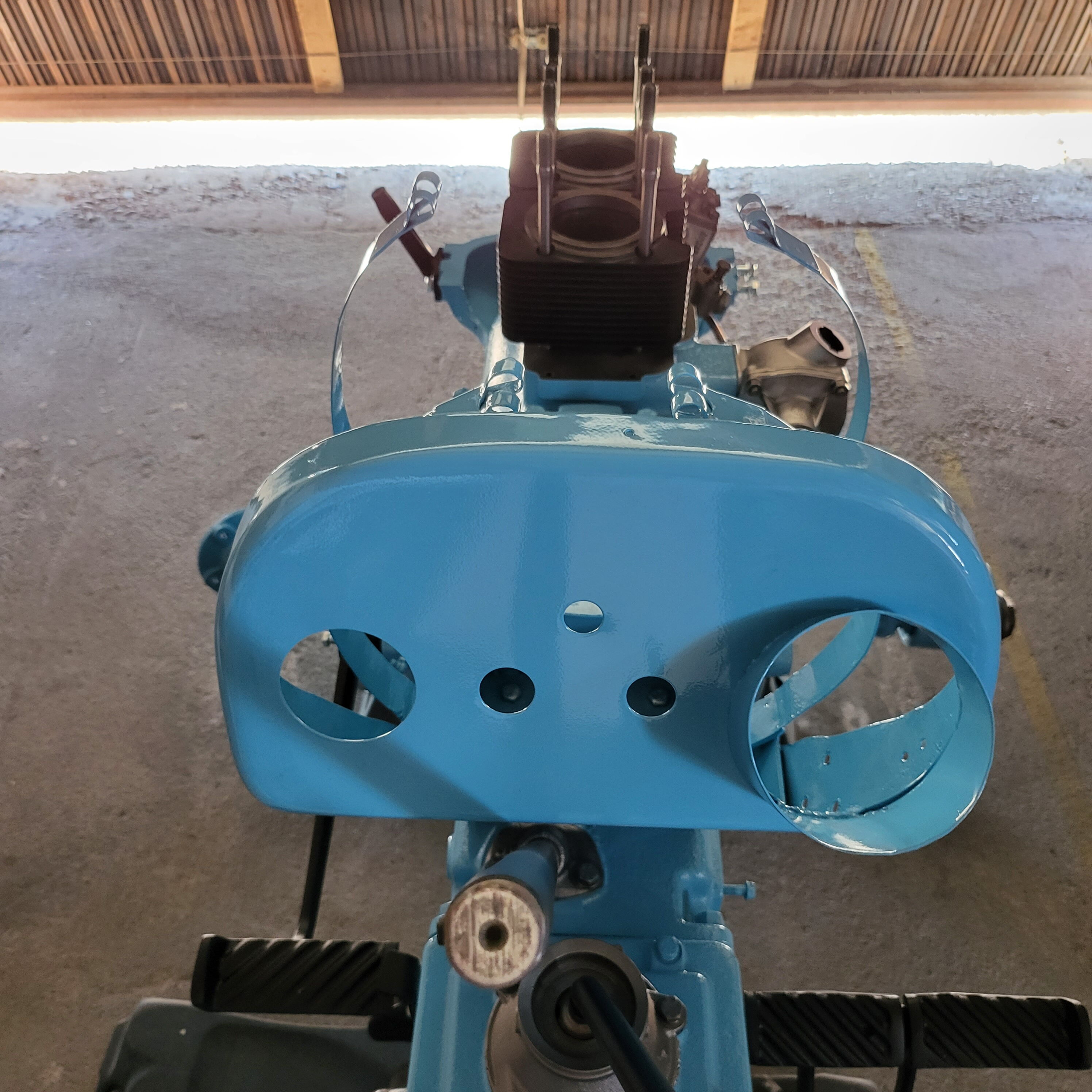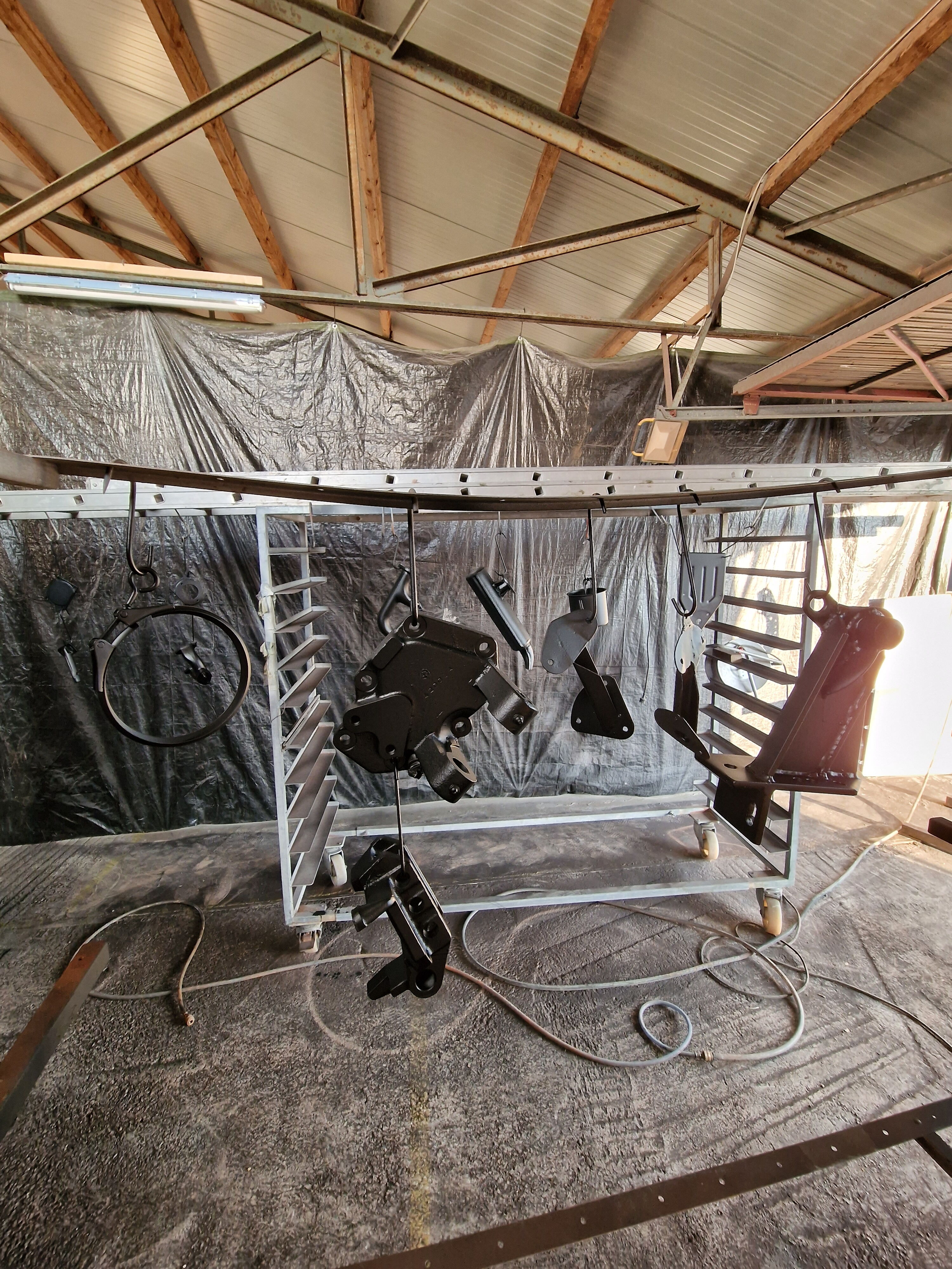 Professionelle Pulverbeschichtung vieler Bauteile; bewegliche Komponenten überwiegend schwarz pulverbeschichtet. Felgen mit Hochglanz-Pulverbeschichtung (Show-Quality-Finish). Sichtteile in periodenkorrekten Farbtönen lackiert. Umfassender Korrosionsschutz innen/außen.