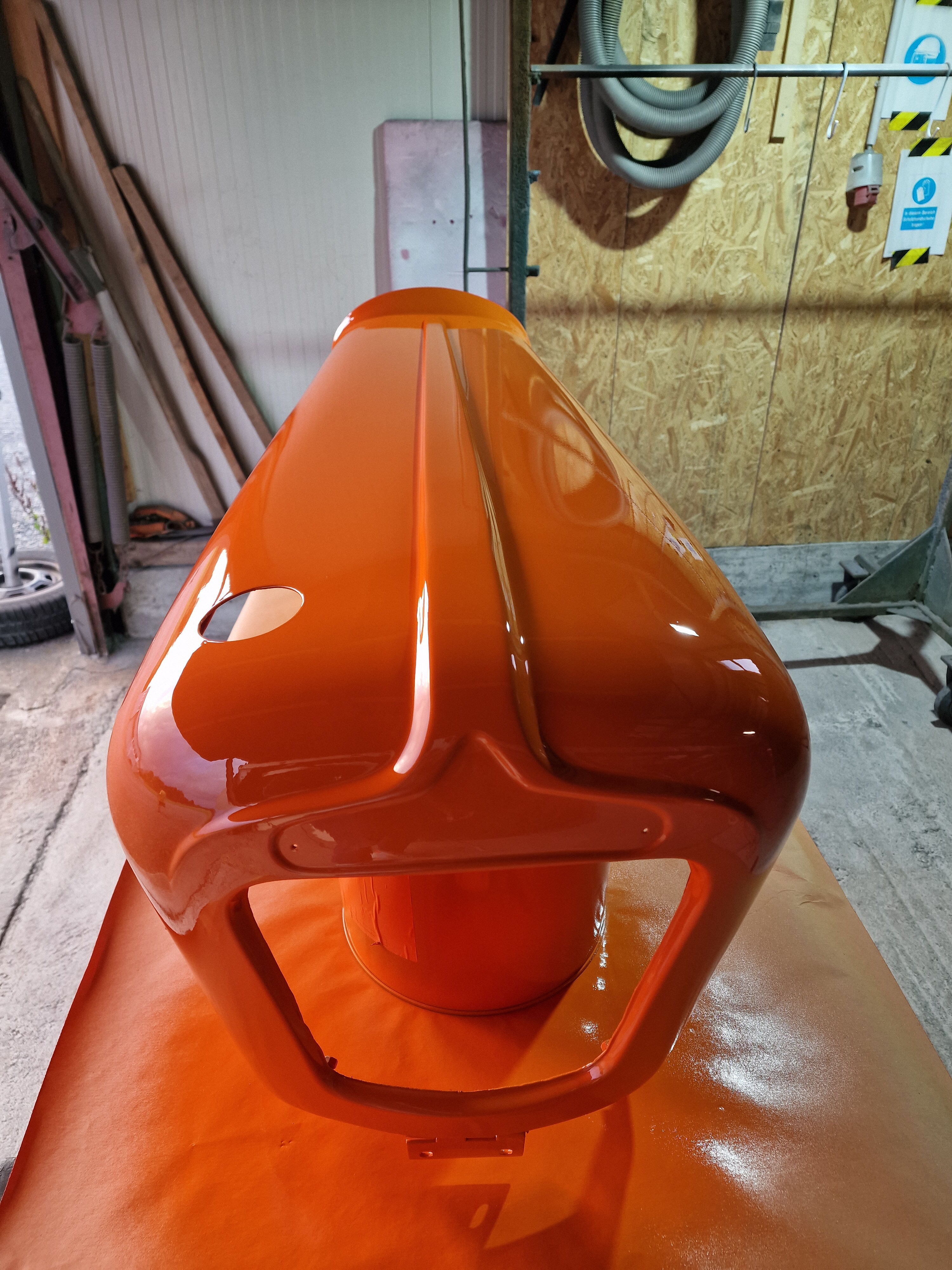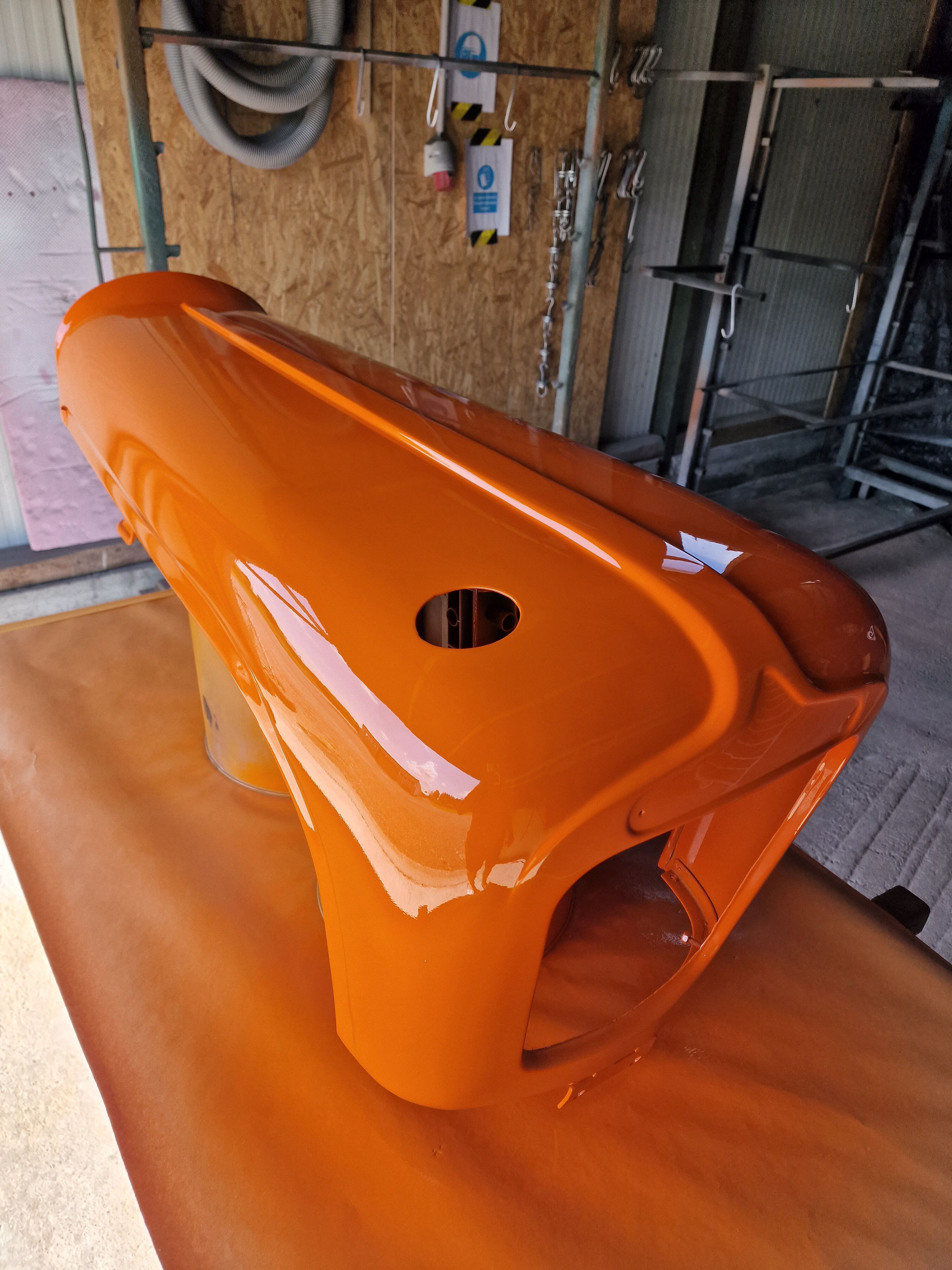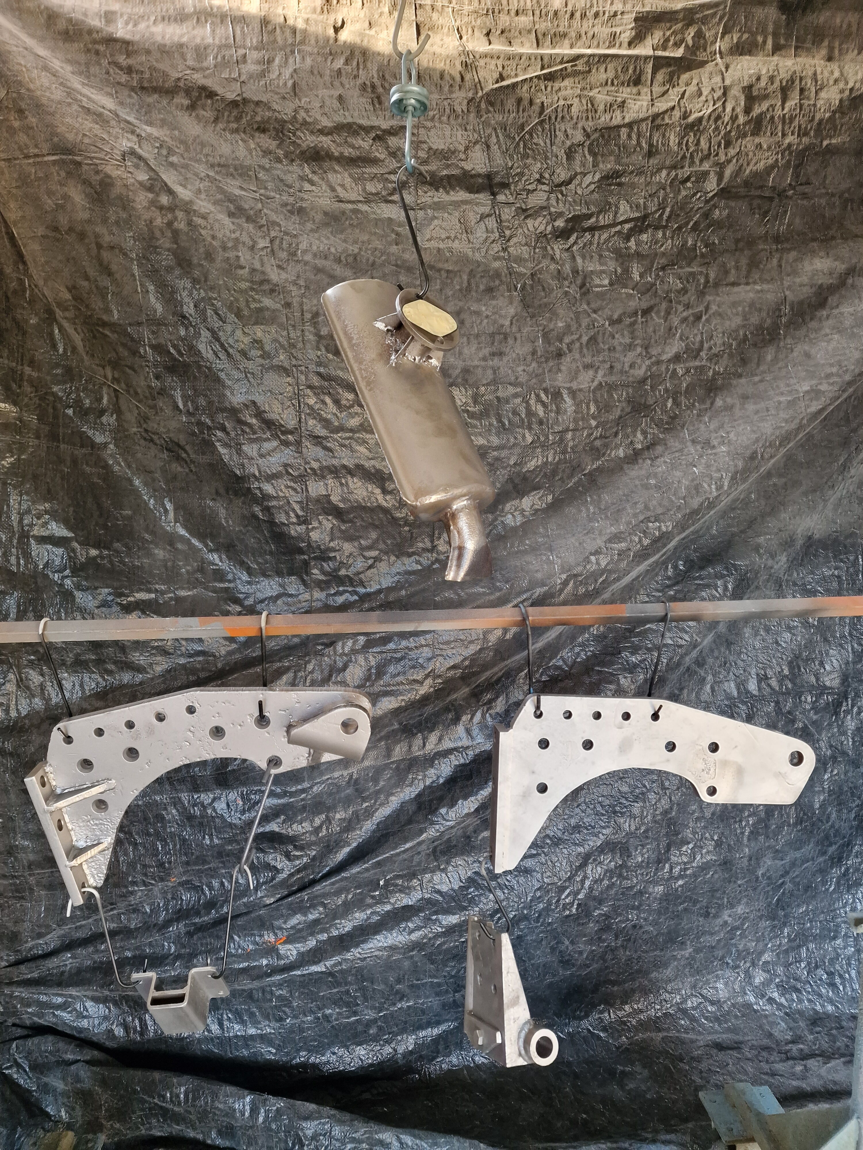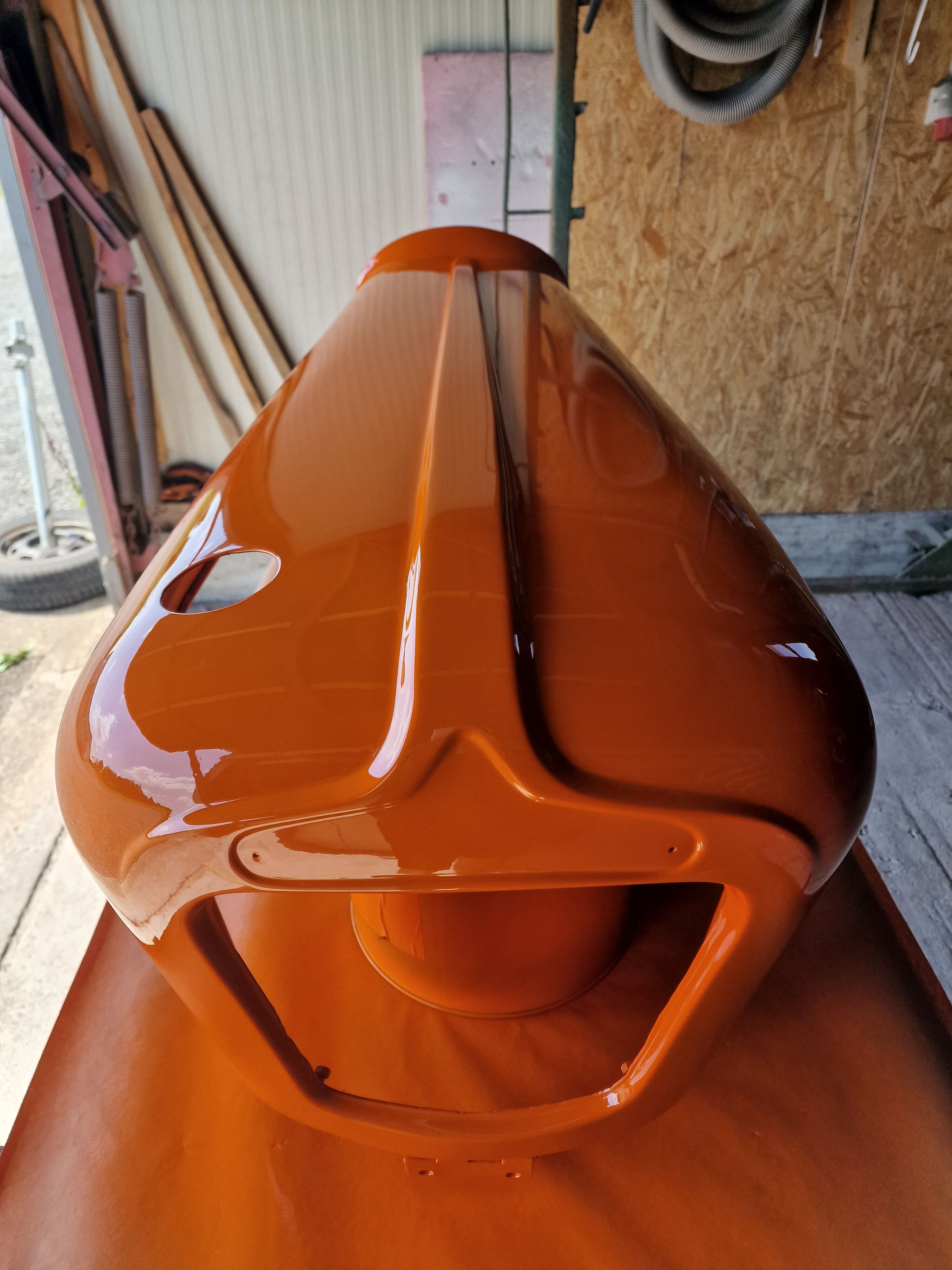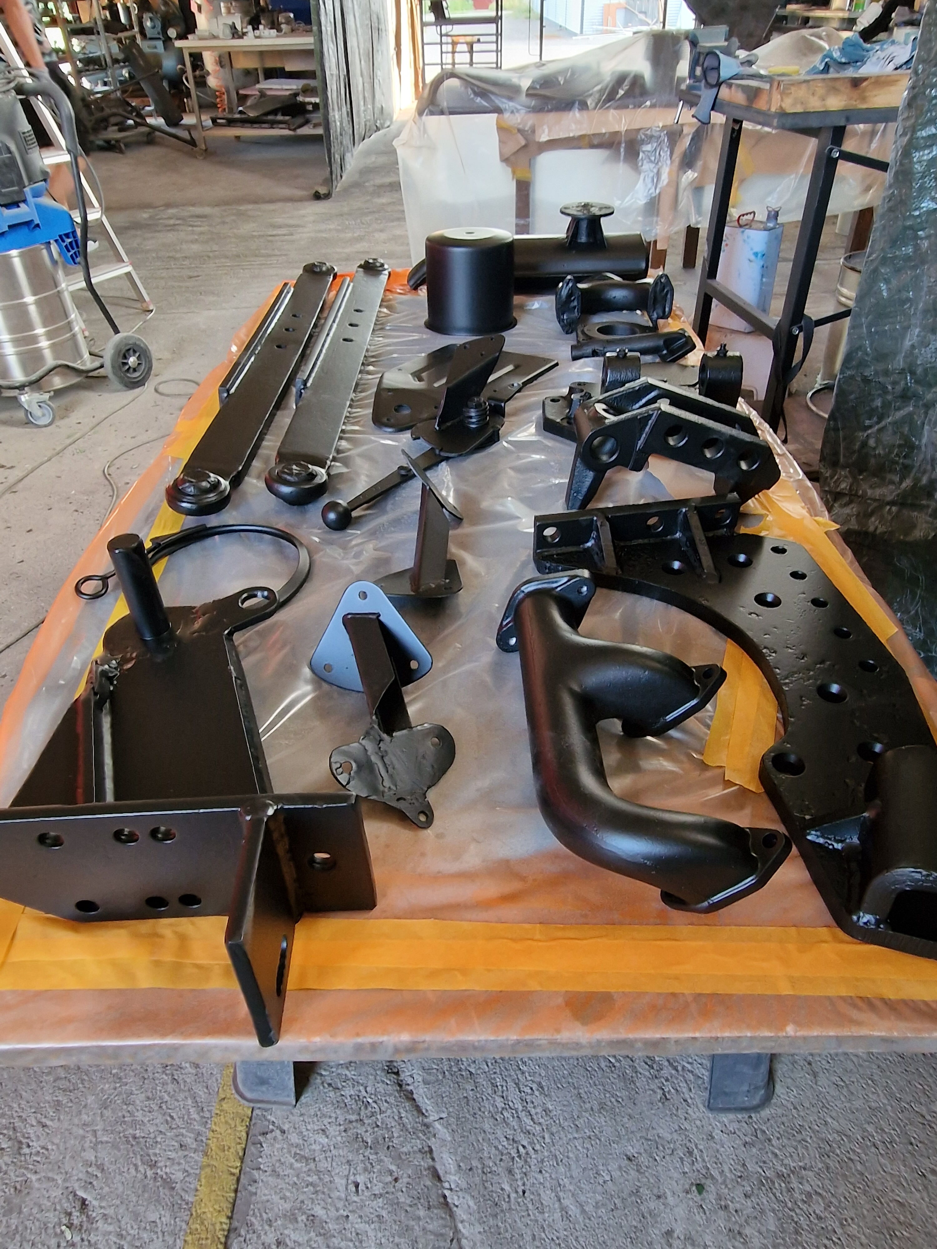 Professionelle Pulverbeschichtung vieler Bauteile; bewegliche Komponenten überwiegend schwarz pulverbeschichtet. Felgen mit Hochglanz-Pulverbeschichtung (Show-Quality-Finish). Sichtteile in periodenkorrekten Farbtönen lackiert. Umfassender Korrosionsschutz innen/außen.