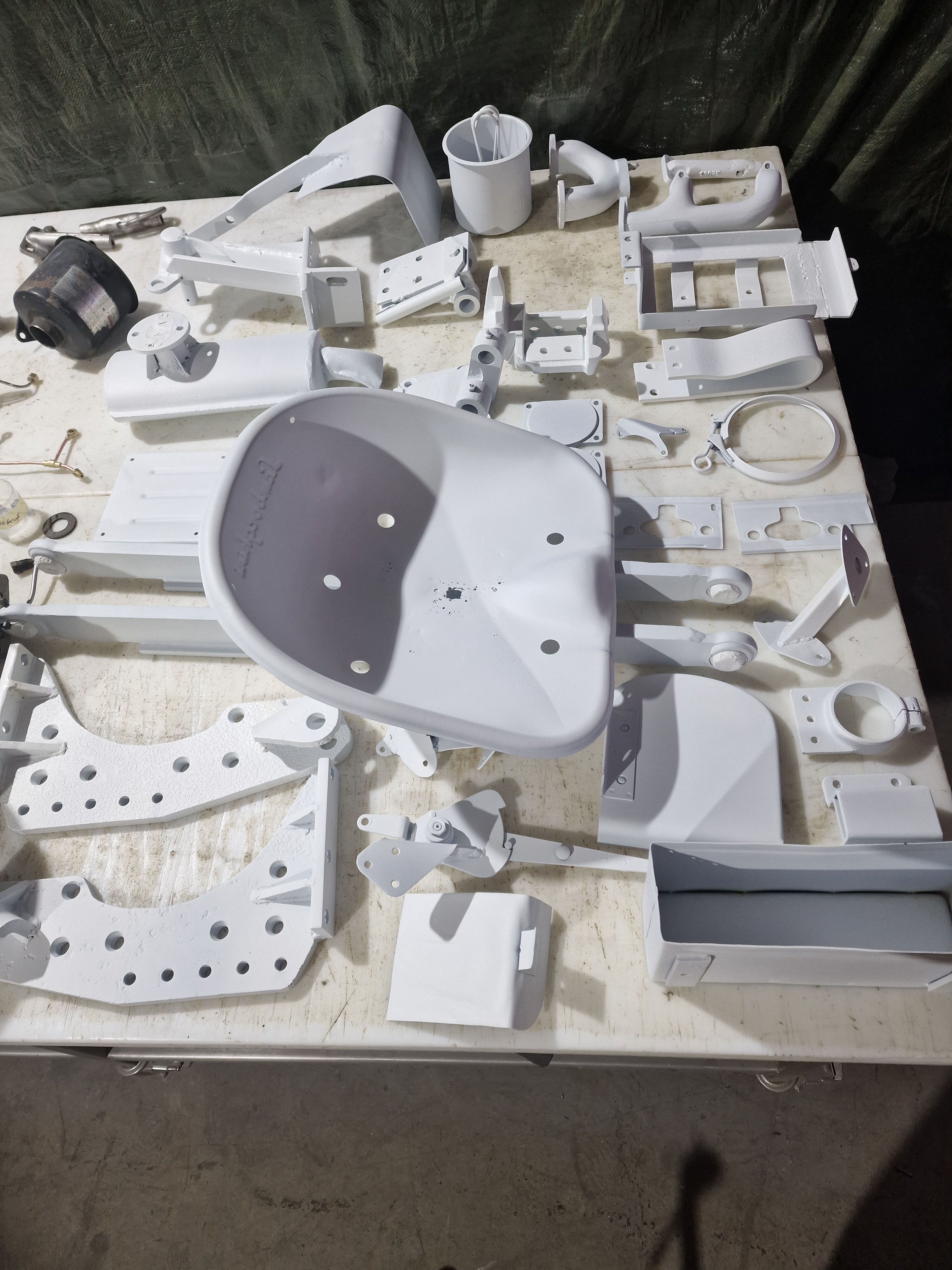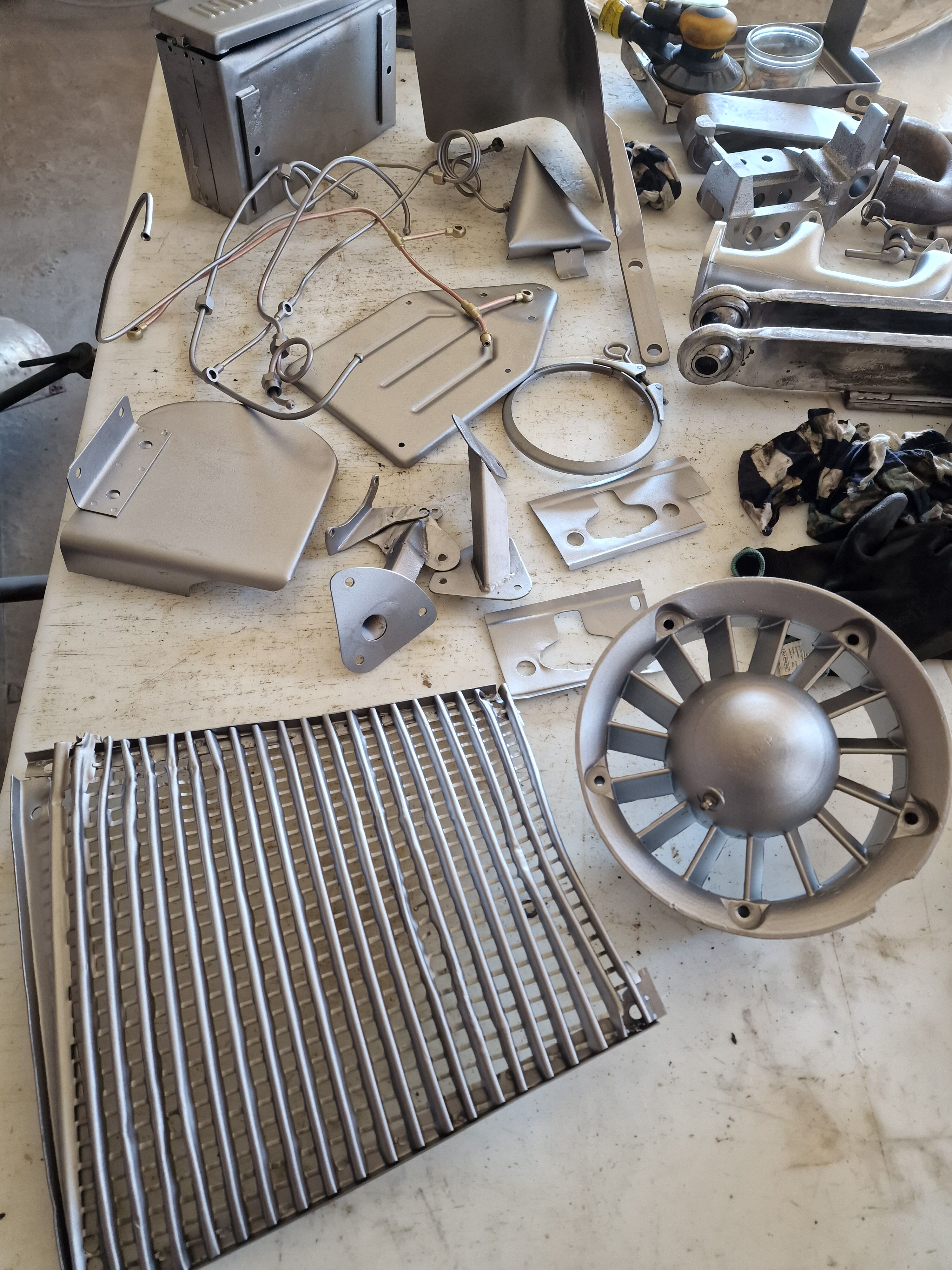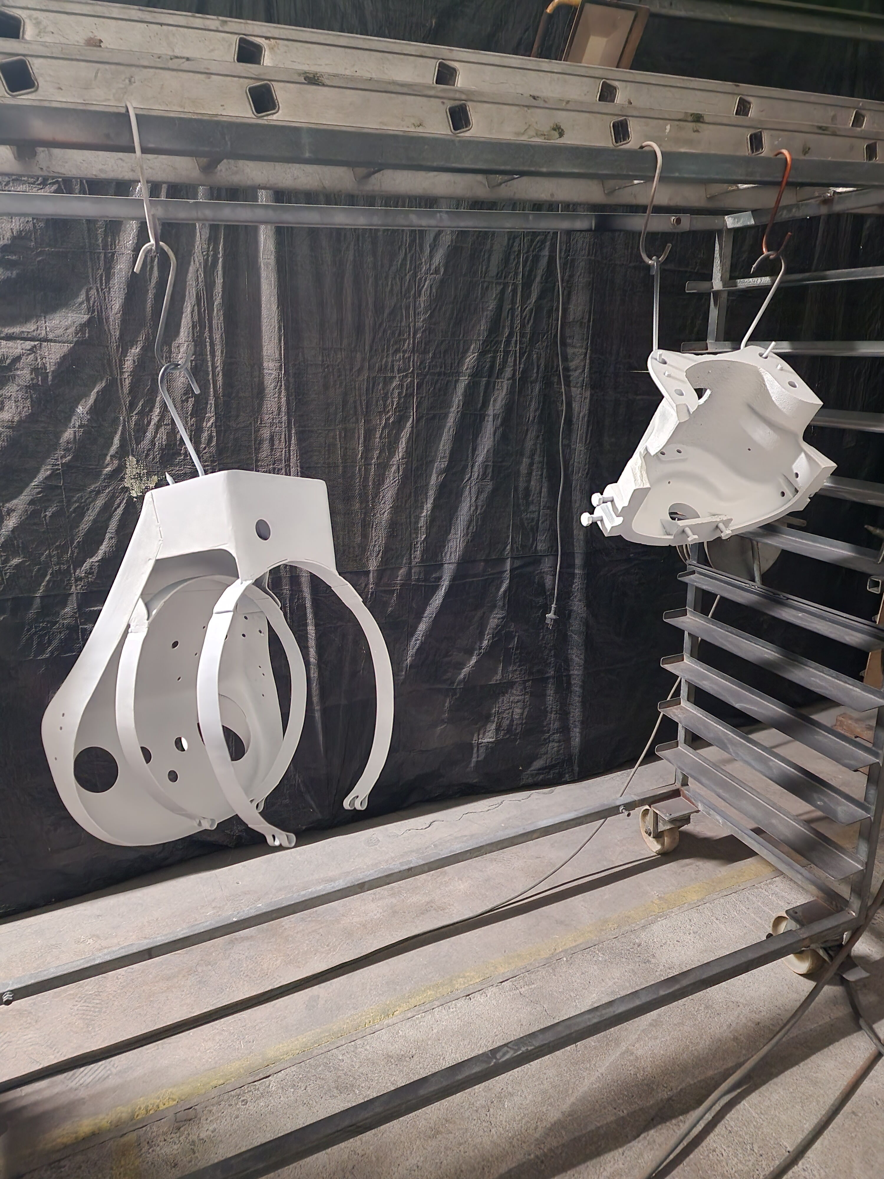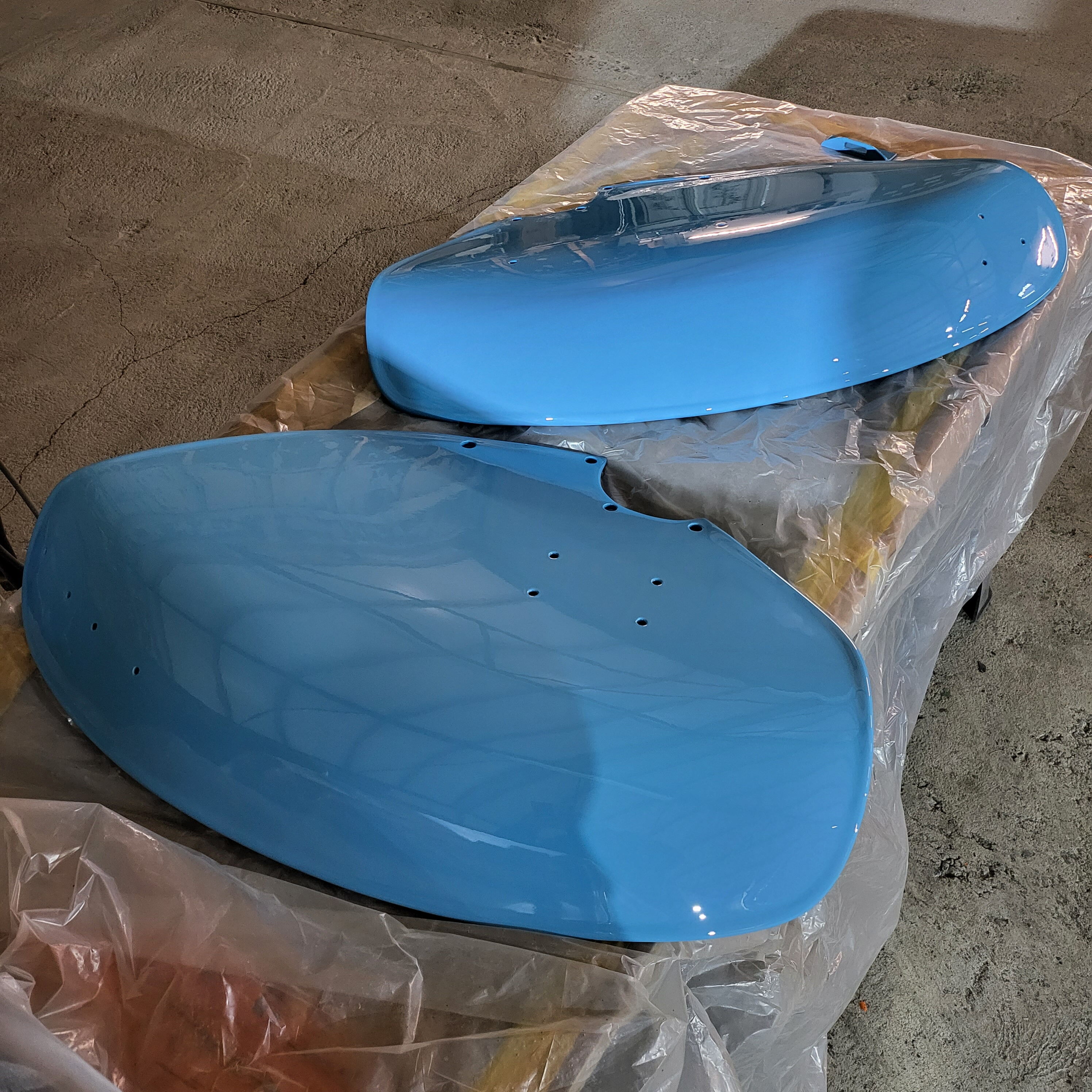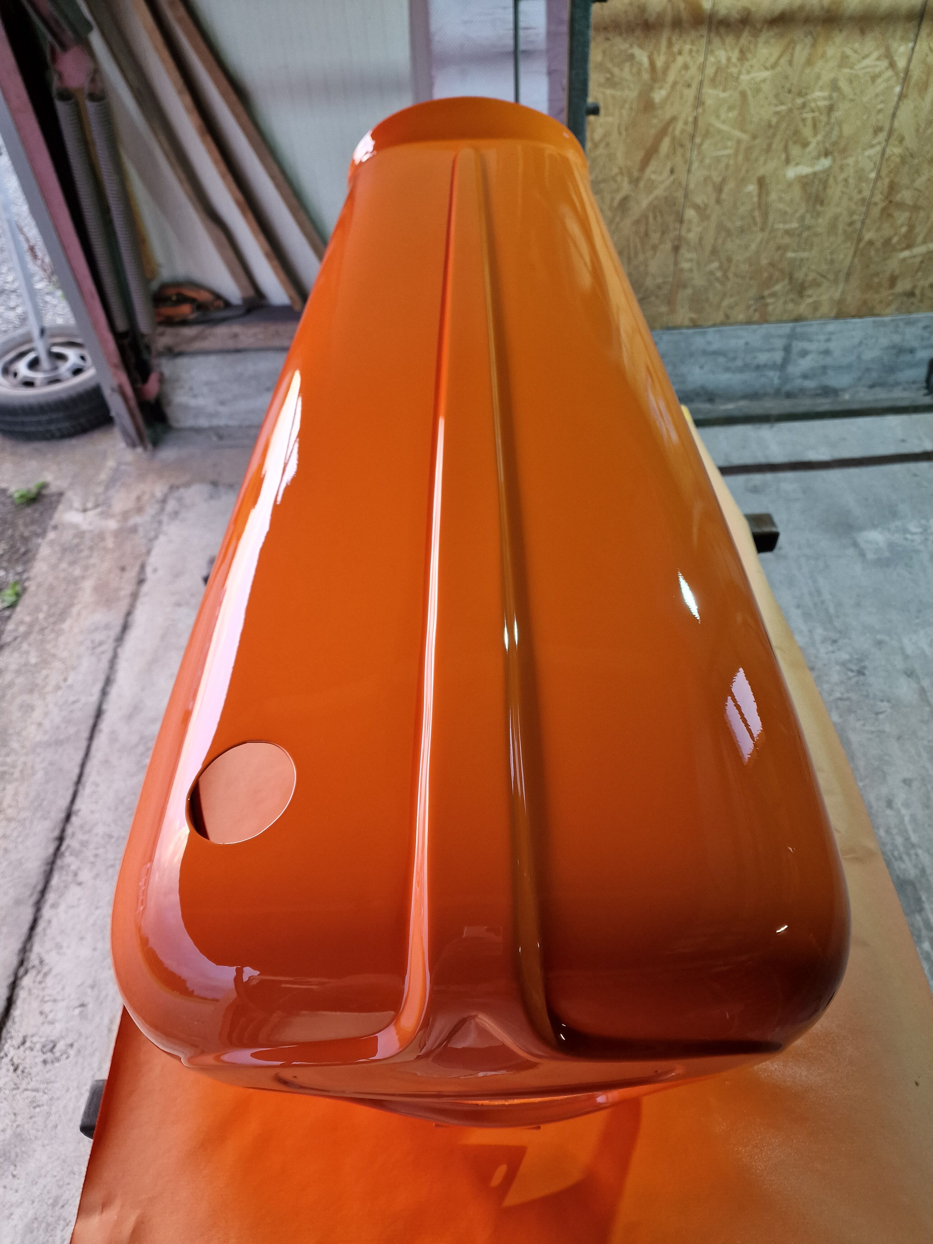 Professionelle Pulverbeschichtung vieler Bauteile; bewegliche Komponenten überwiegend schwarz pulverbeschichtet. Felgen mit Hochglanz-Pulverbeschichtung (Show-Quality-Finish). Sichtteile in periodenkorrekten Farbtönen lackiert. Umfassender Korrosionsschutz innen/außen.