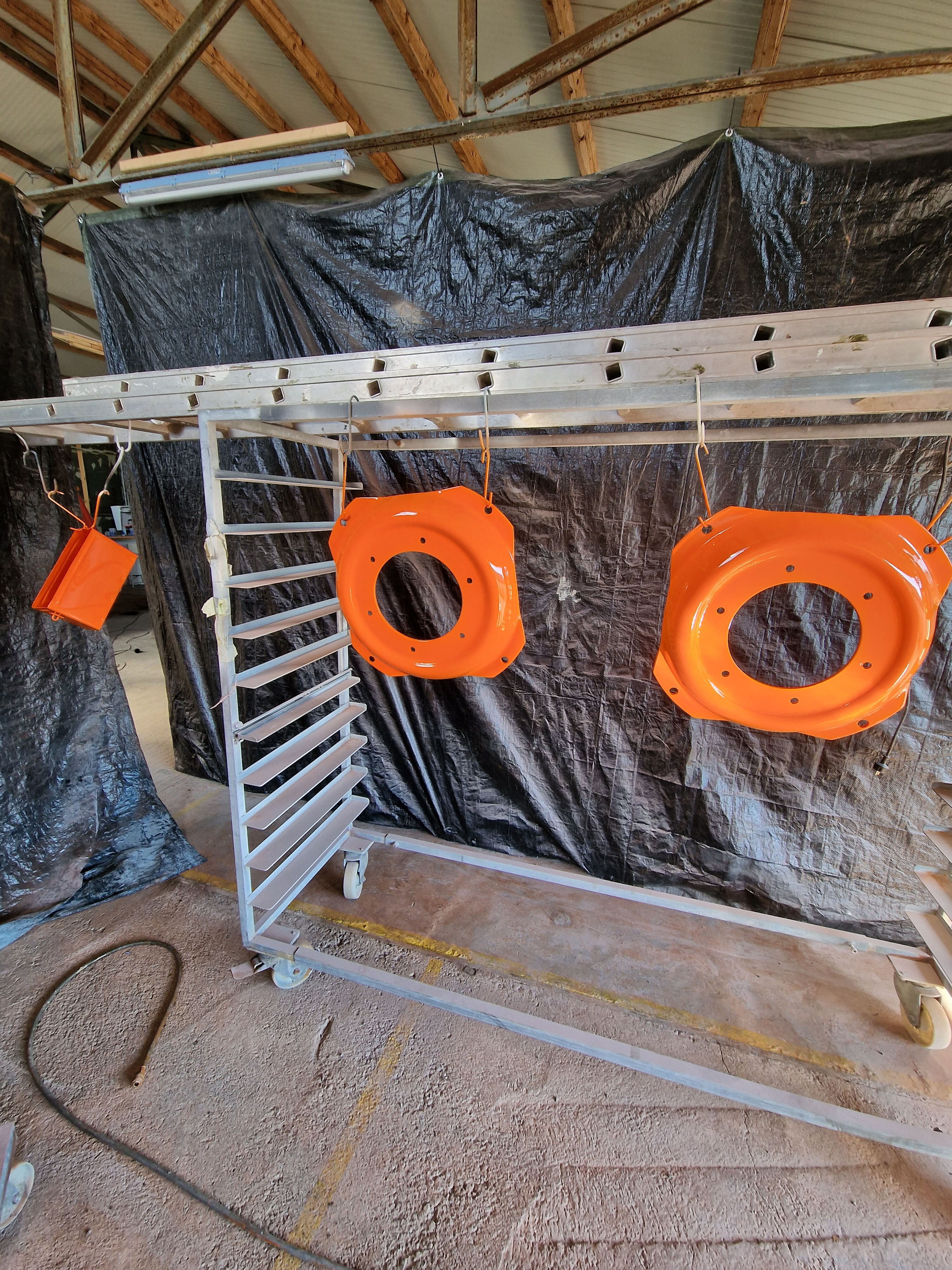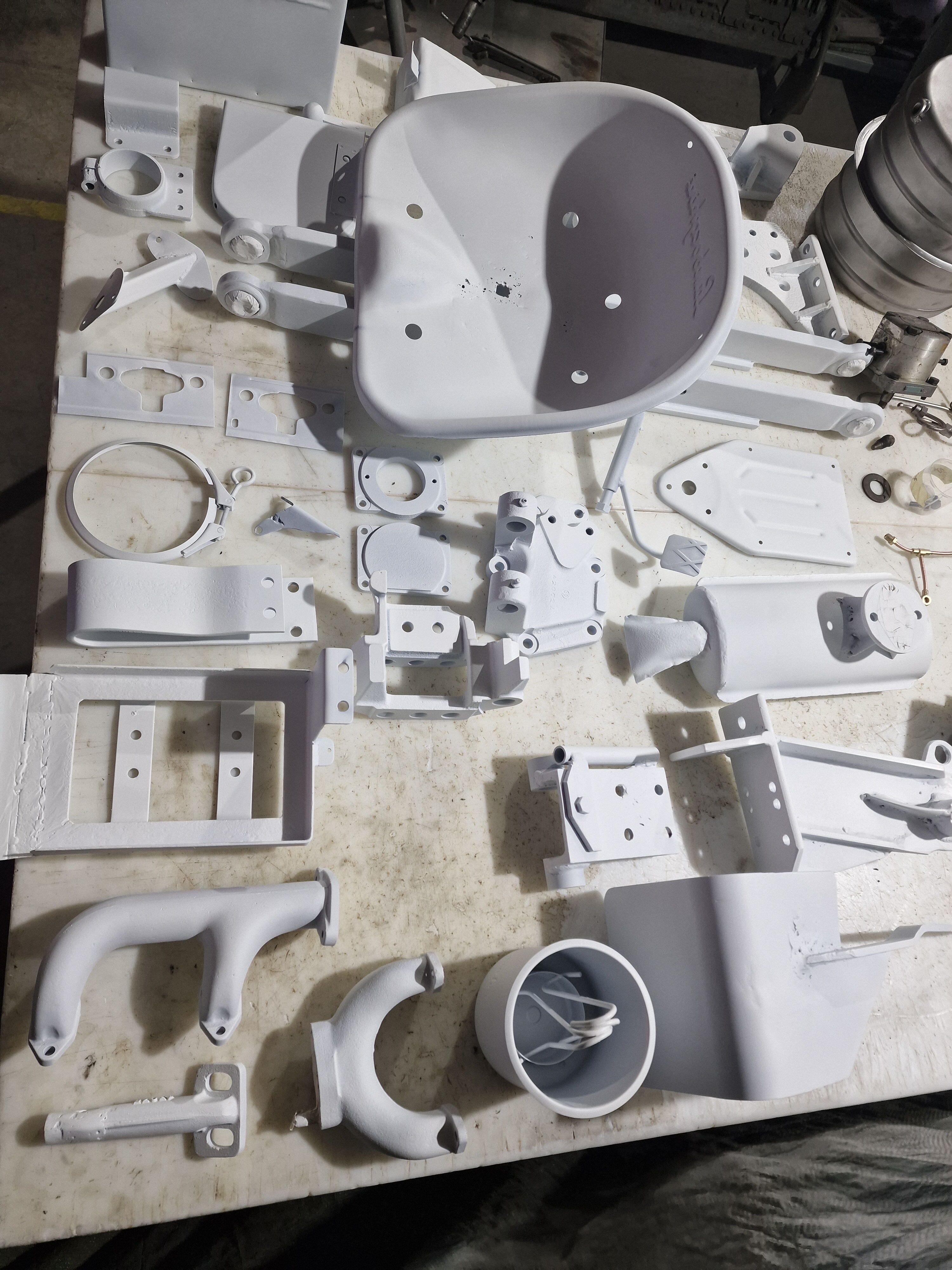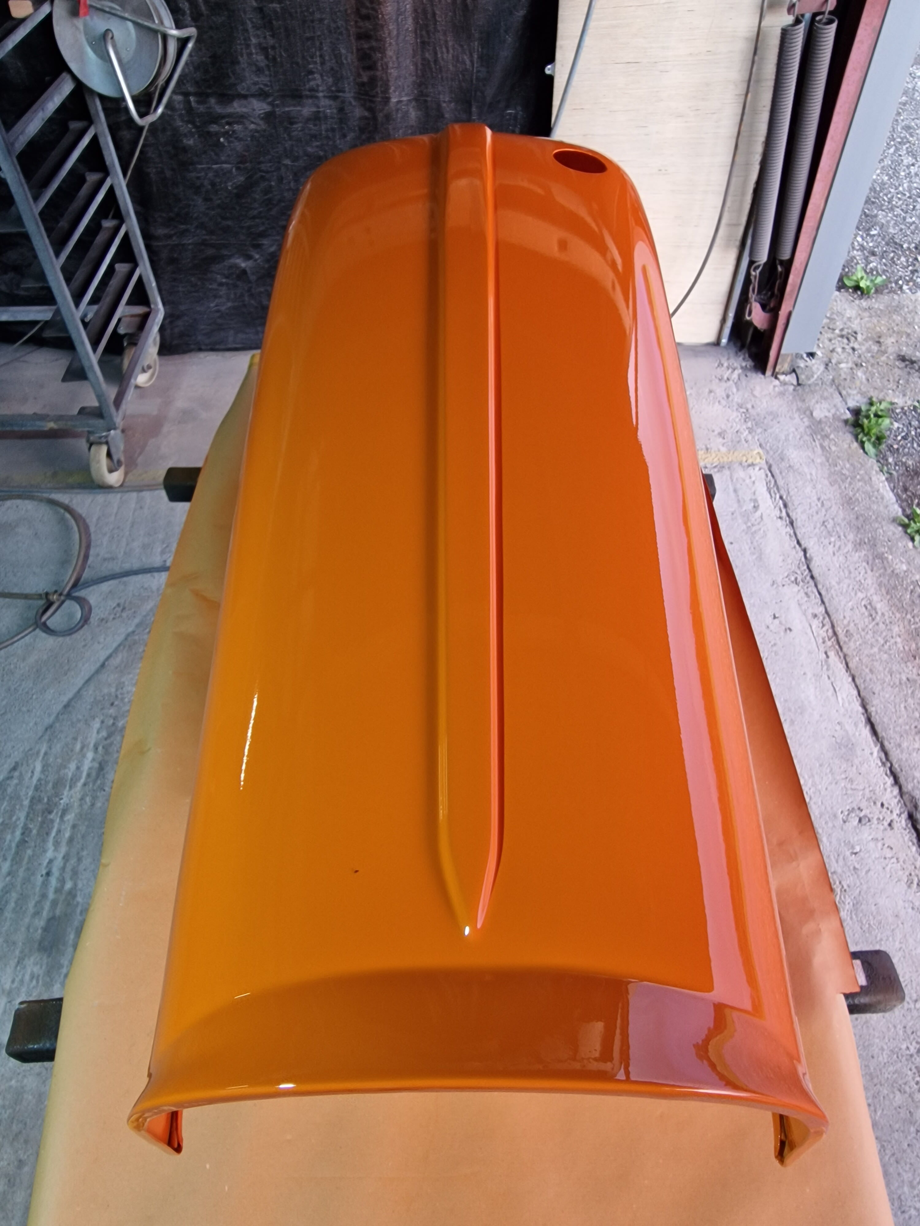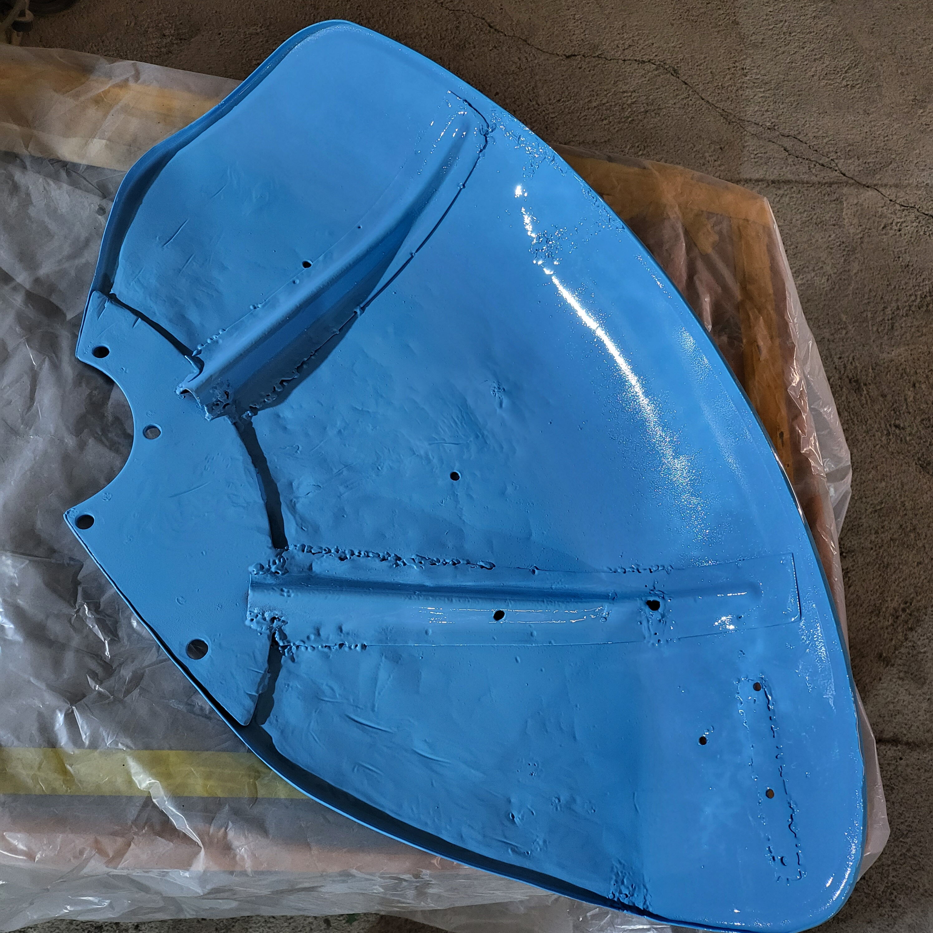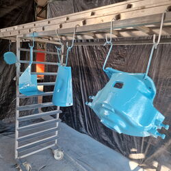 Professionelle Pulverbeschichtung vieler Bauteile; bewegliche Komponenten überwiegend schwarz pulverbeschichtet. Felgen mit Hochglanz-Pulverbeschichtung (Show-Quality-Finish). Sichtteile in periodenkorrekten Farbtönen lackiert. Umfassender Korrosionsschutz innen/außen.