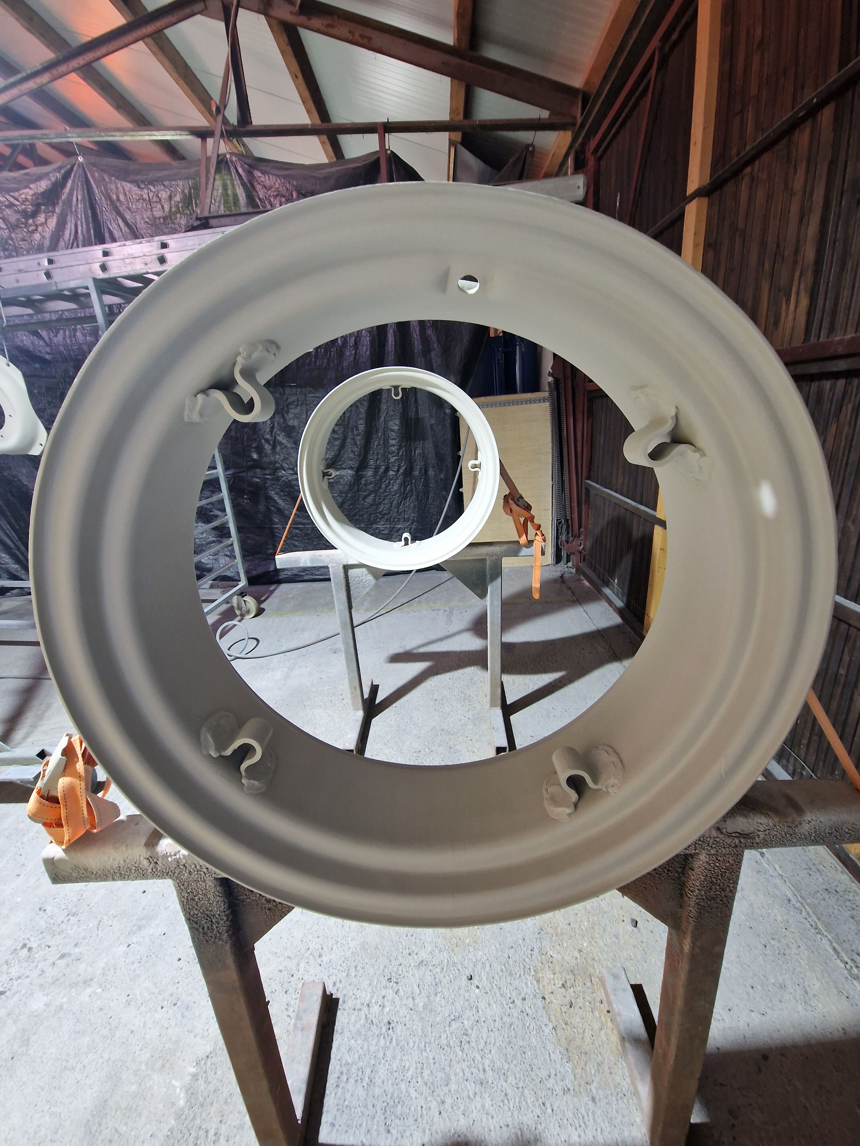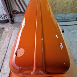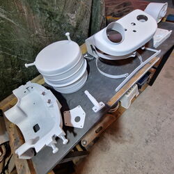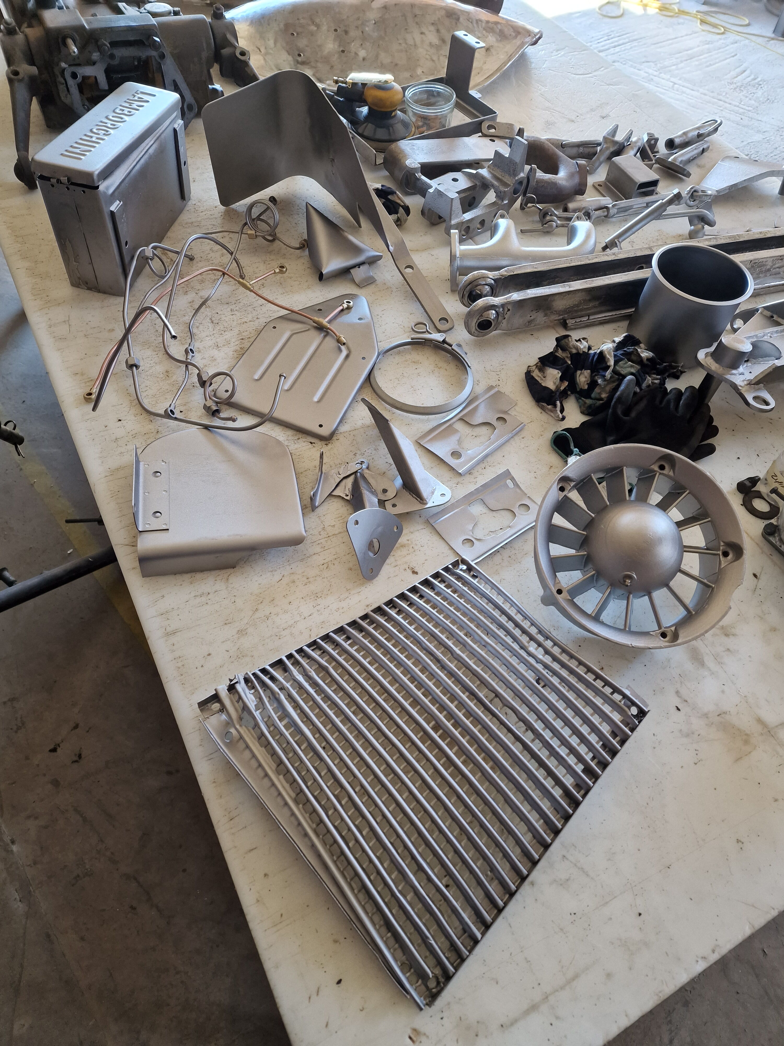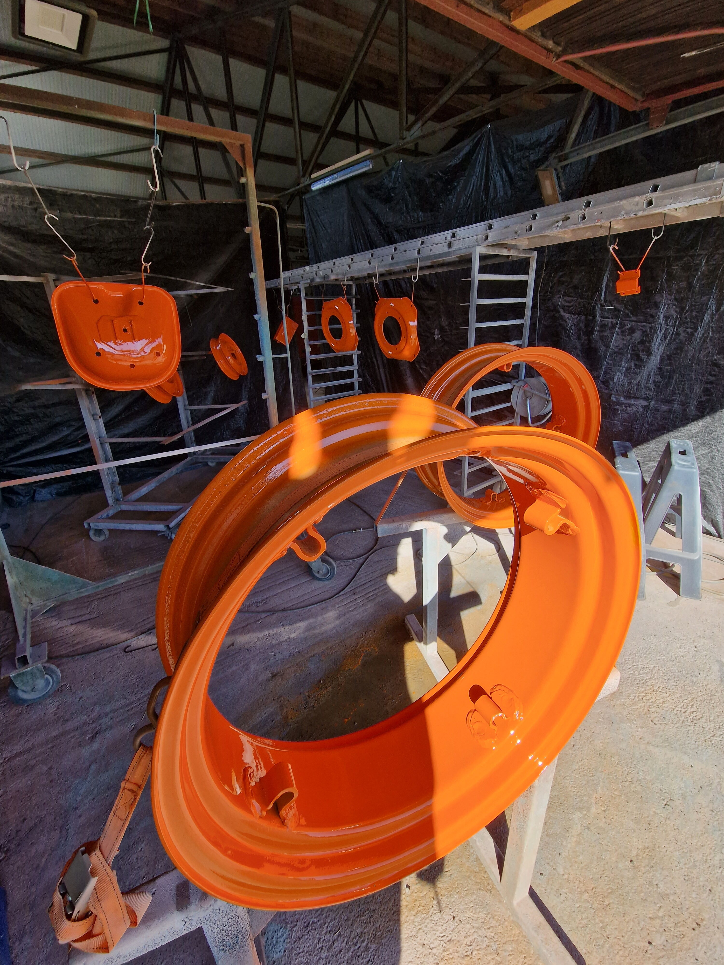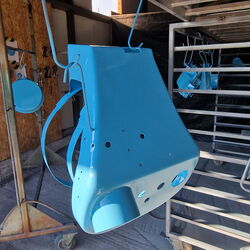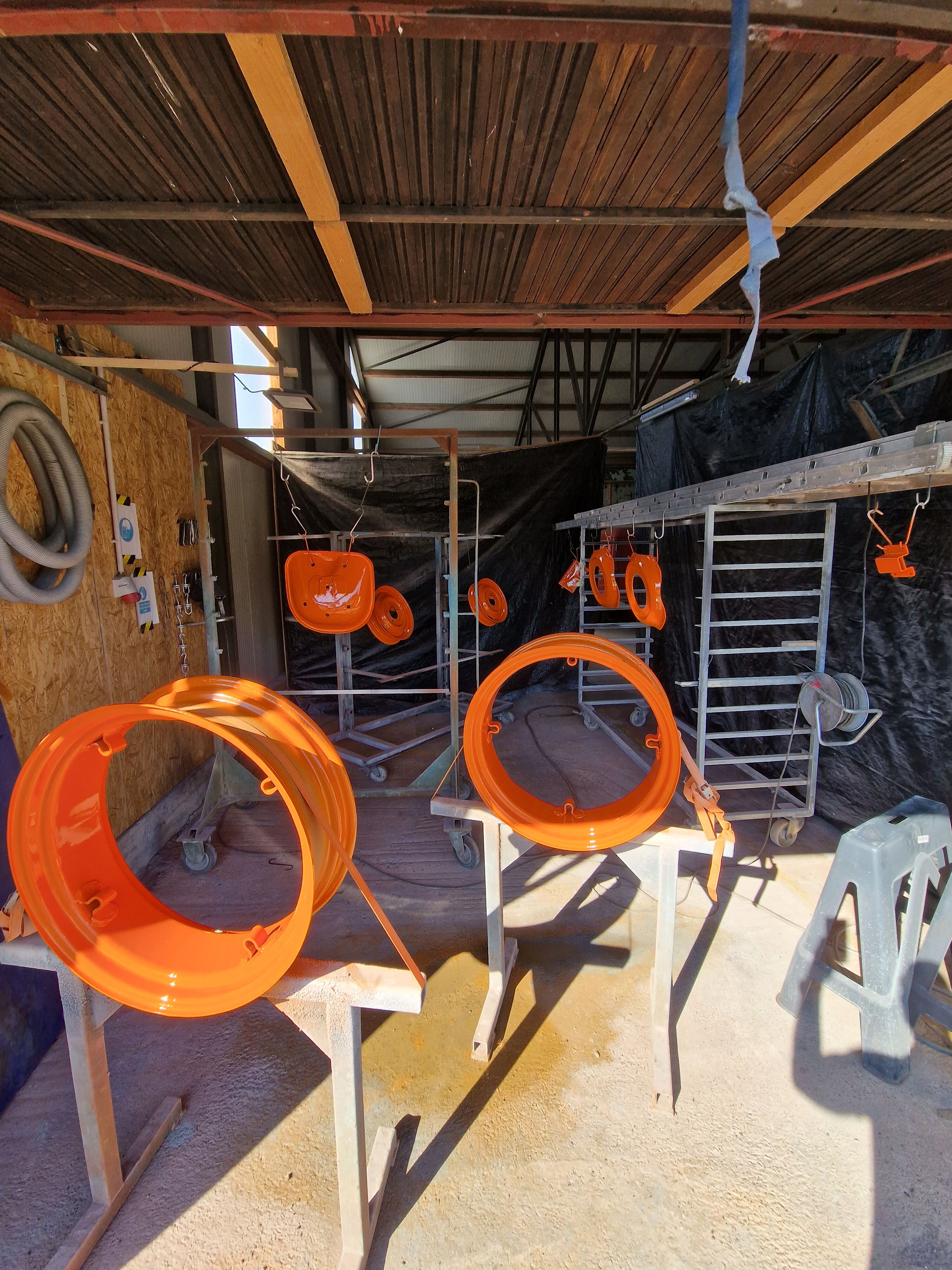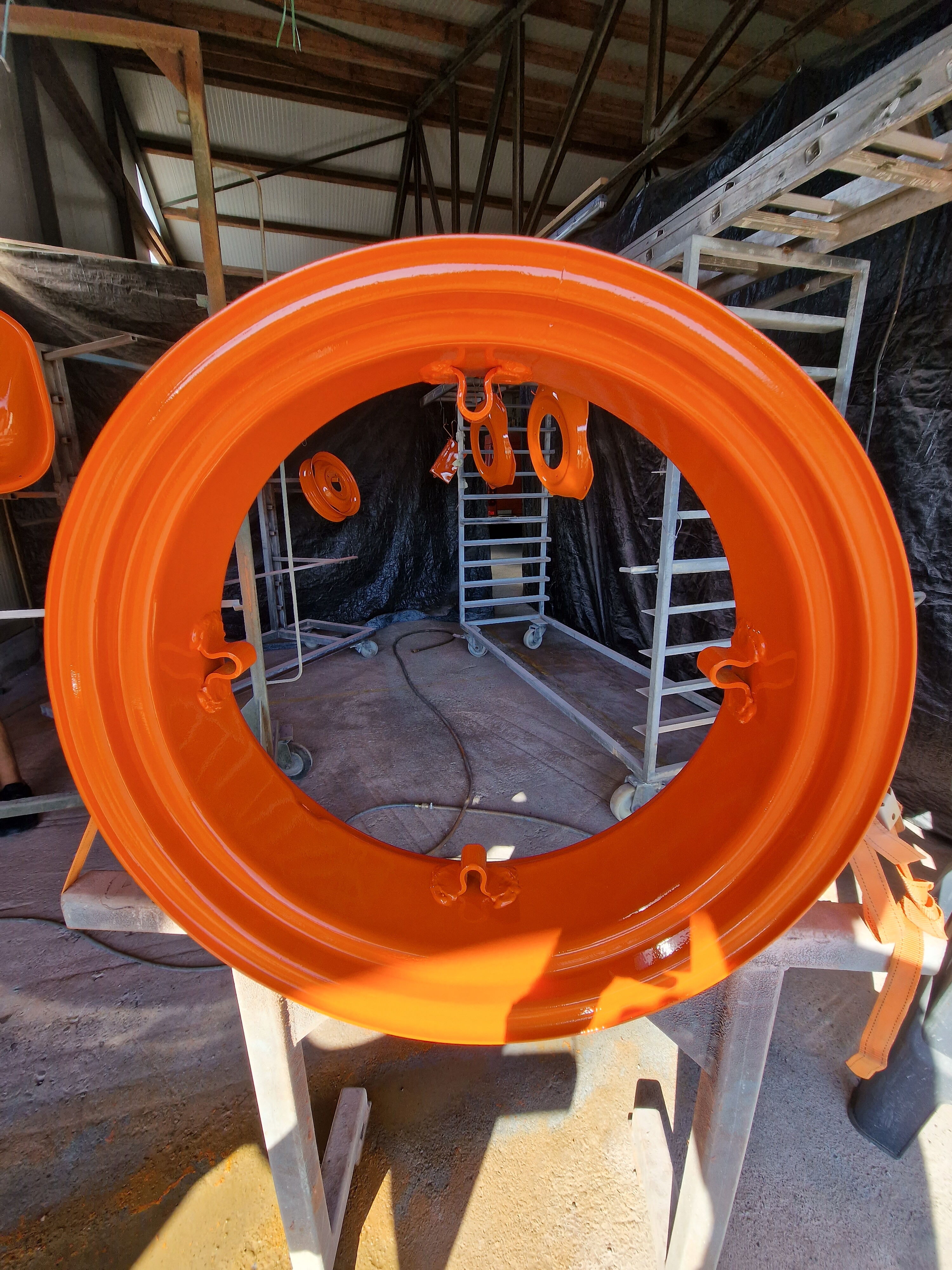 Professionelle Pulverbeschichtung vieler Bauteile; bewegliche Komponenten überwiegend schwarz pulverbeschichtet. Felgen mit Hochglanz-Pulverbeschichtung (Show-Quality-Finish). Sichtteile in periodenkorrekten Farbtönen lackiert. Umfassender Korrosionsschutz innen/außen.