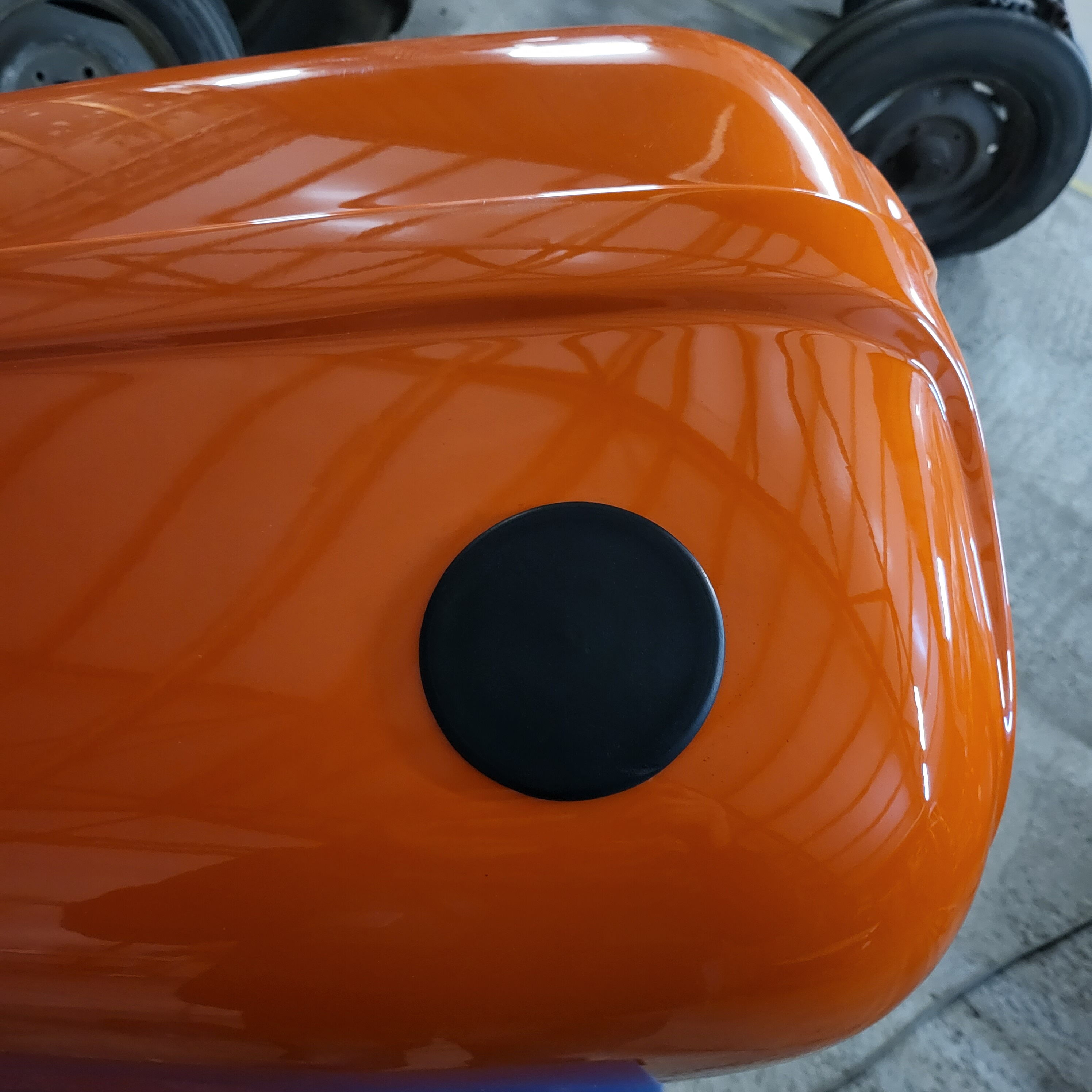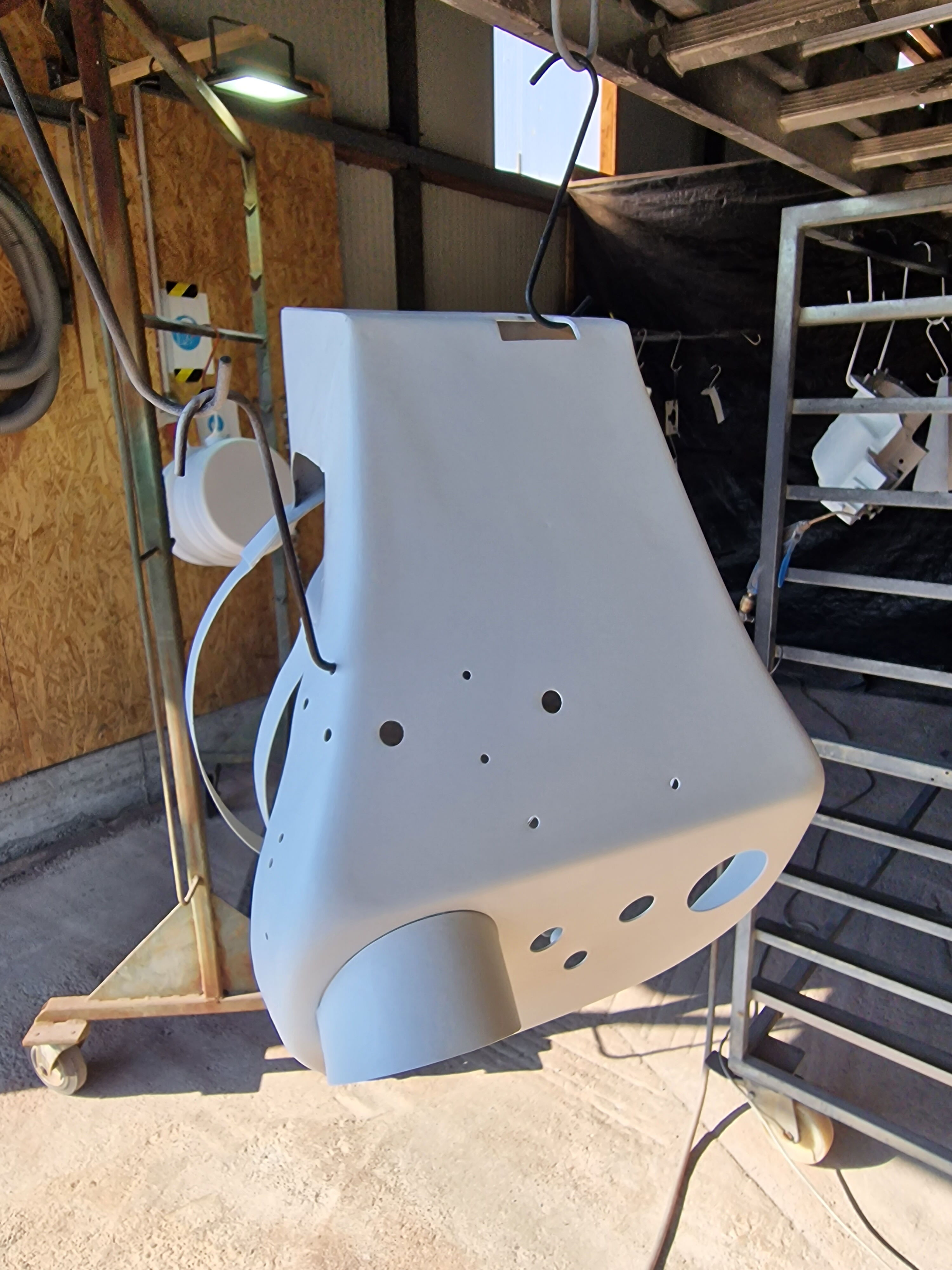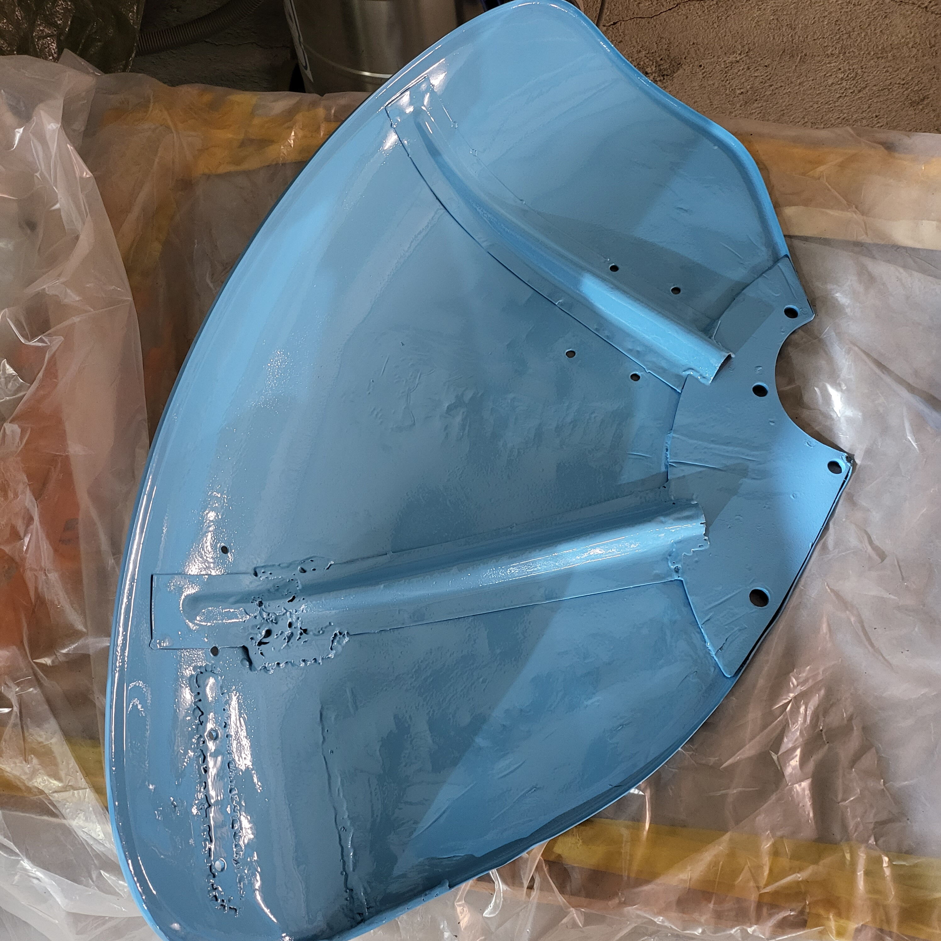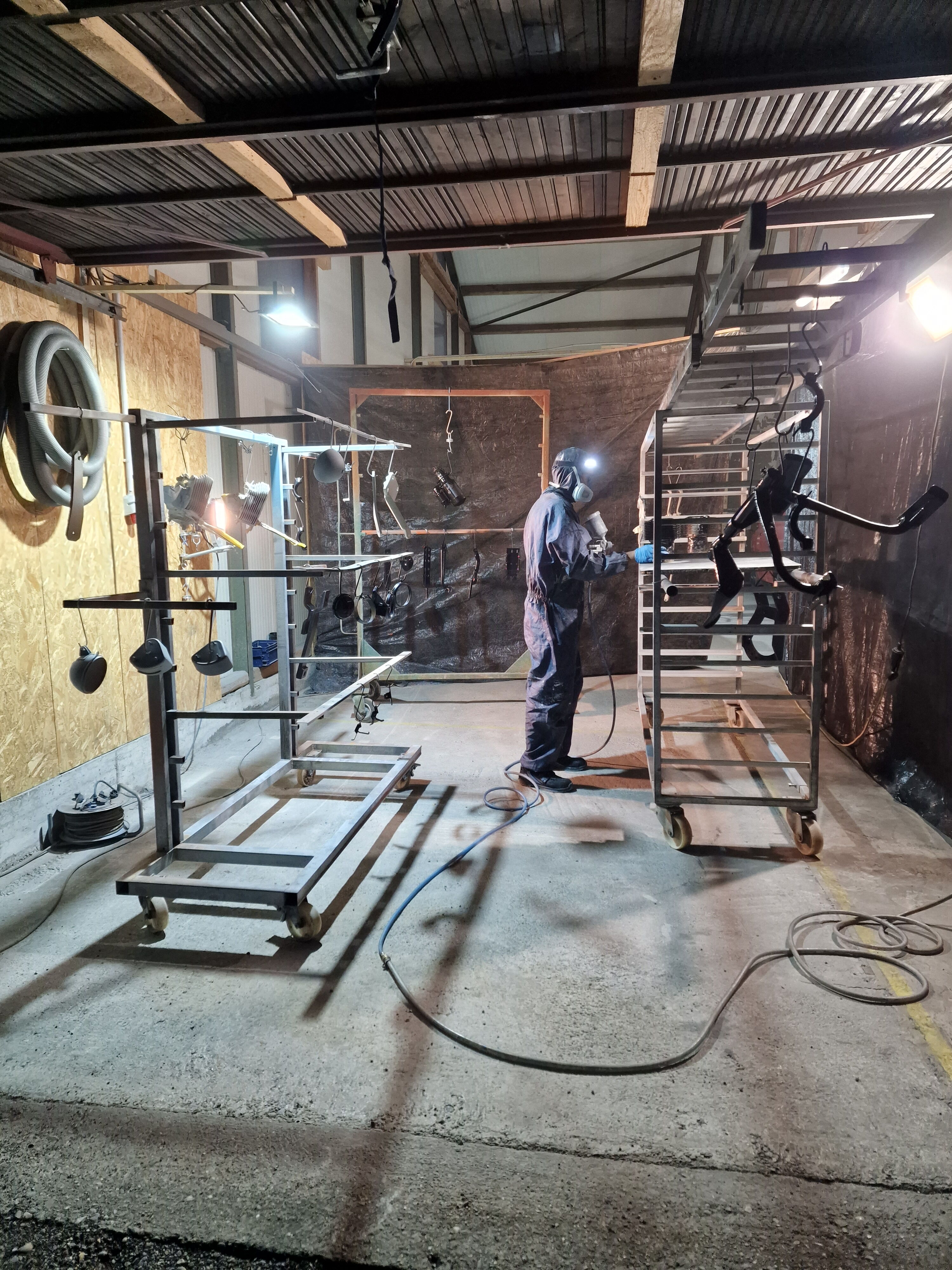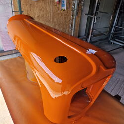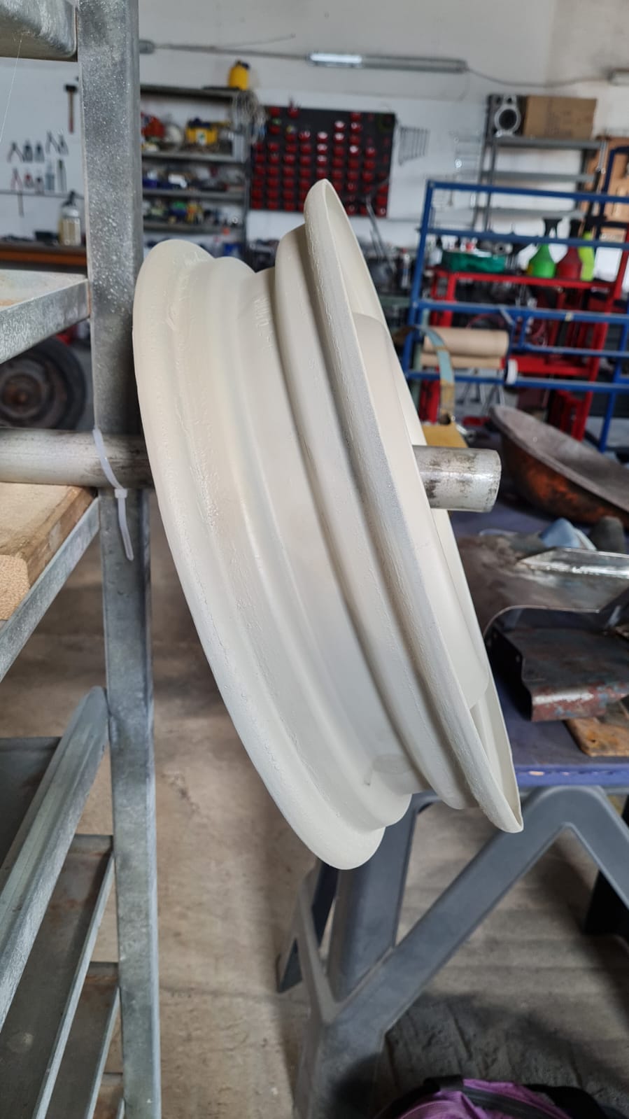 Professionelle Pulverbeschichtung vieler Bauteile; bewegliche Komponenten überwiegend schwarz pulverbeschichtet. Felgen mit Hochglanz-Pulverbeschichtung (Show-Quality-Finish). Sichtteile in periodenkorrekten Farbtönen lackiert. Umfassender Korrosionsschutz innen/außen.