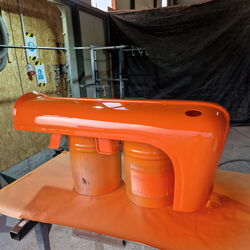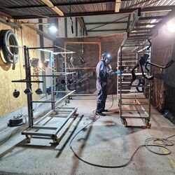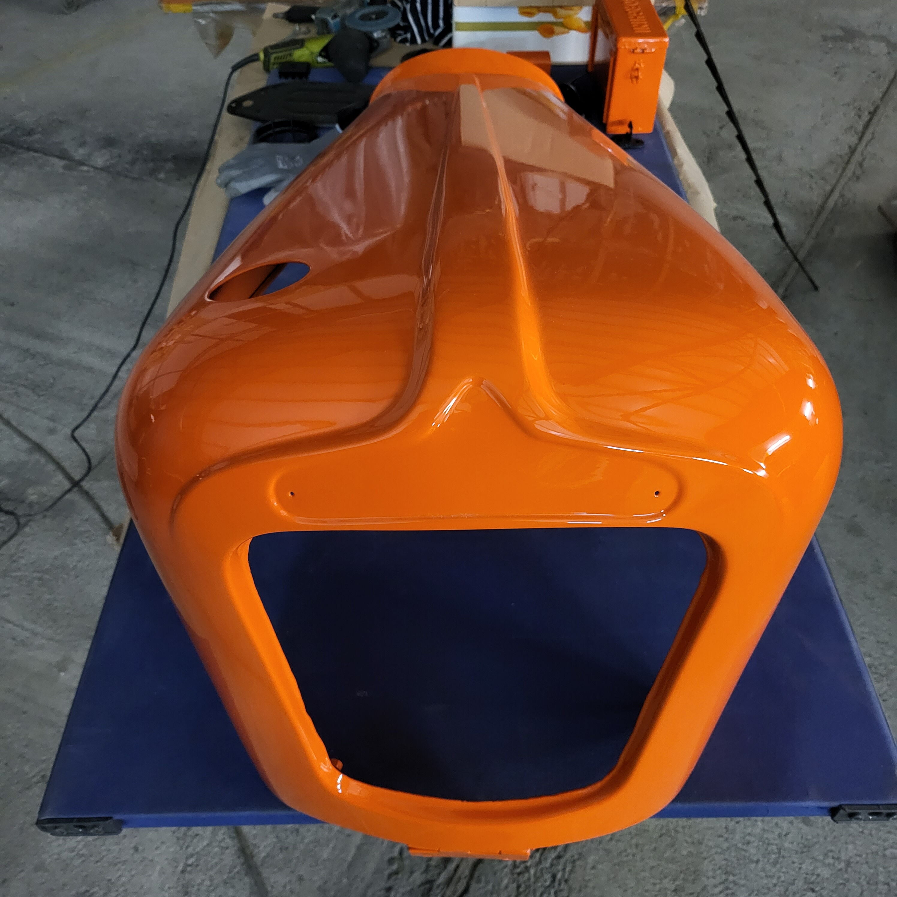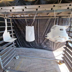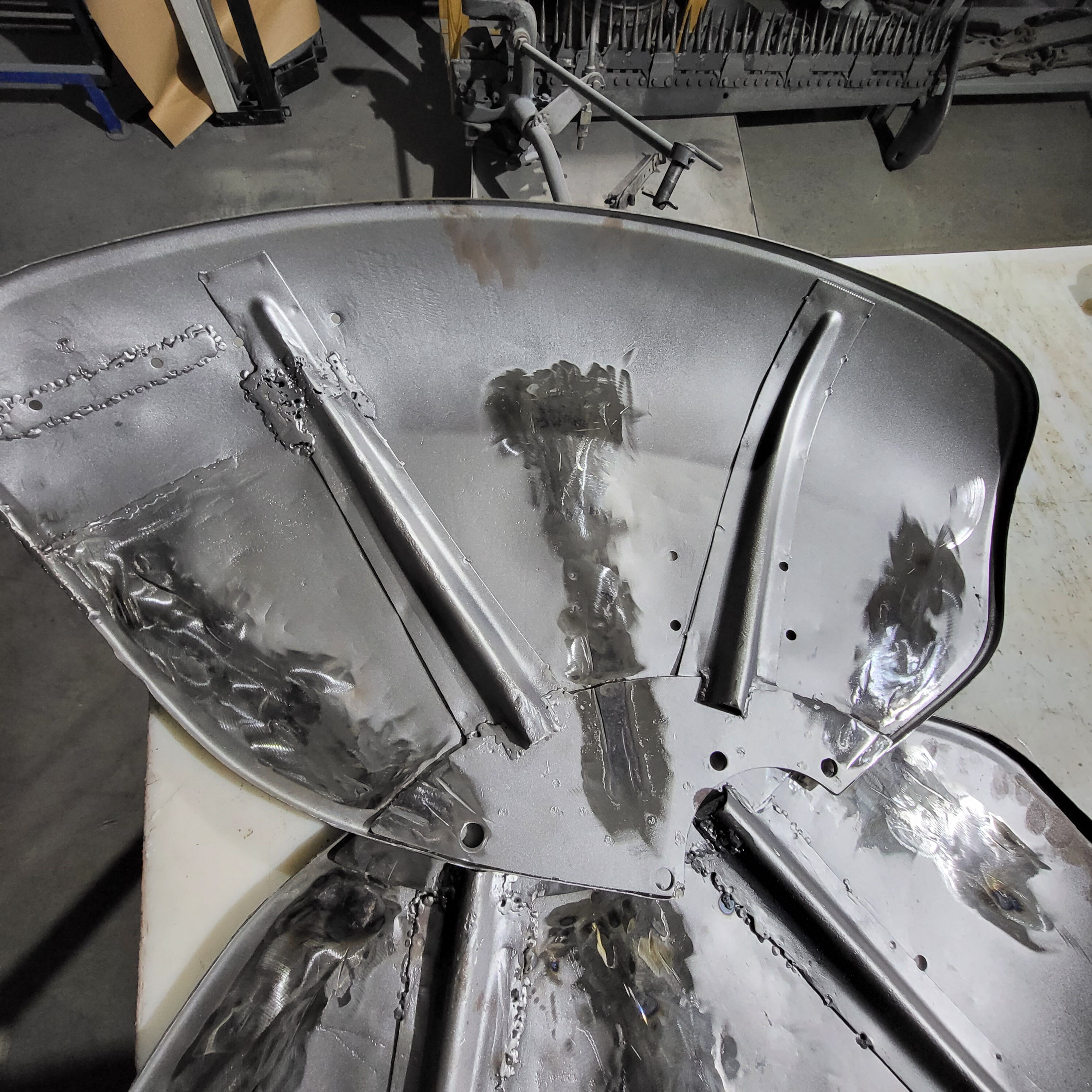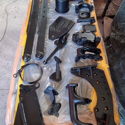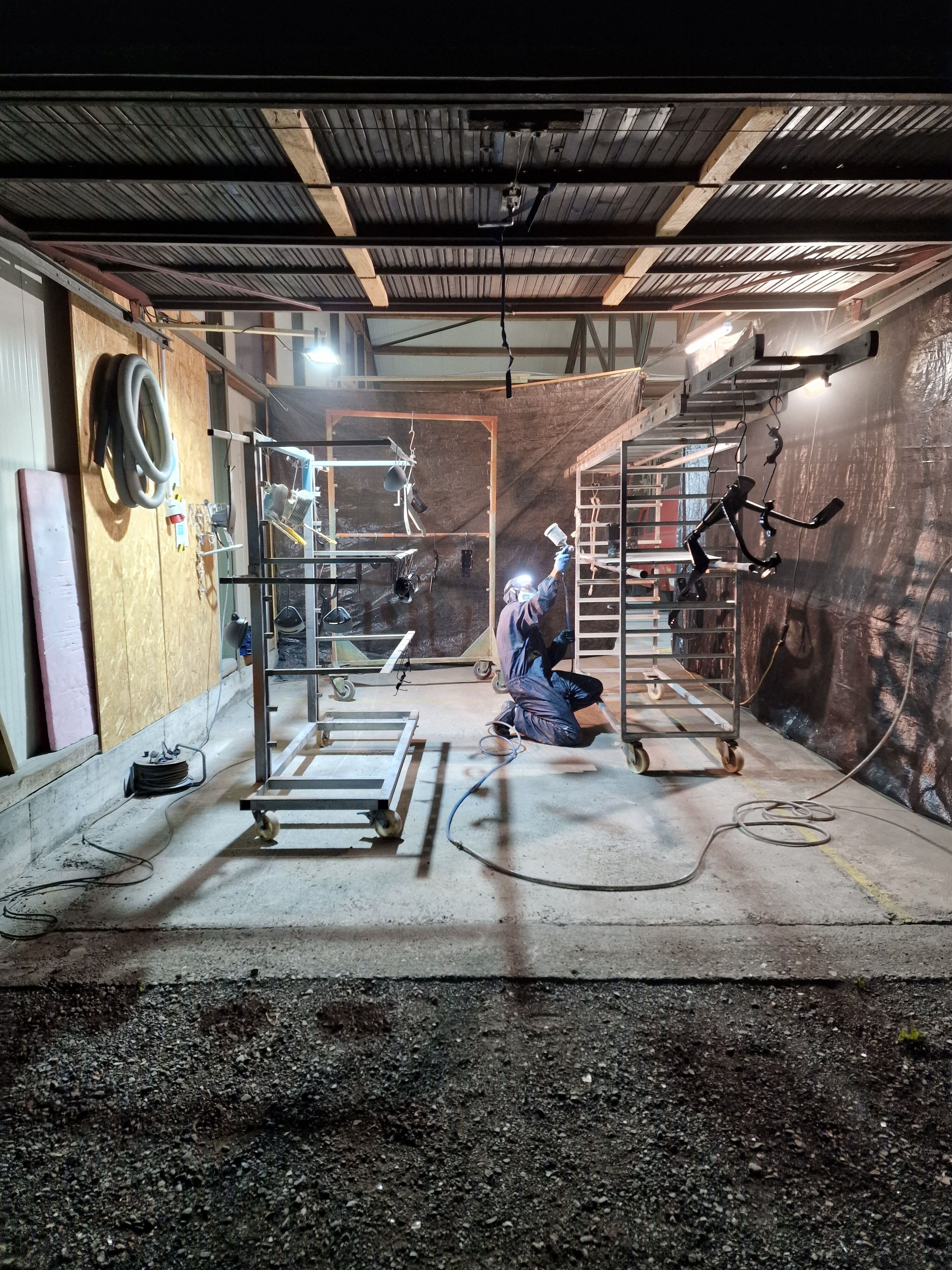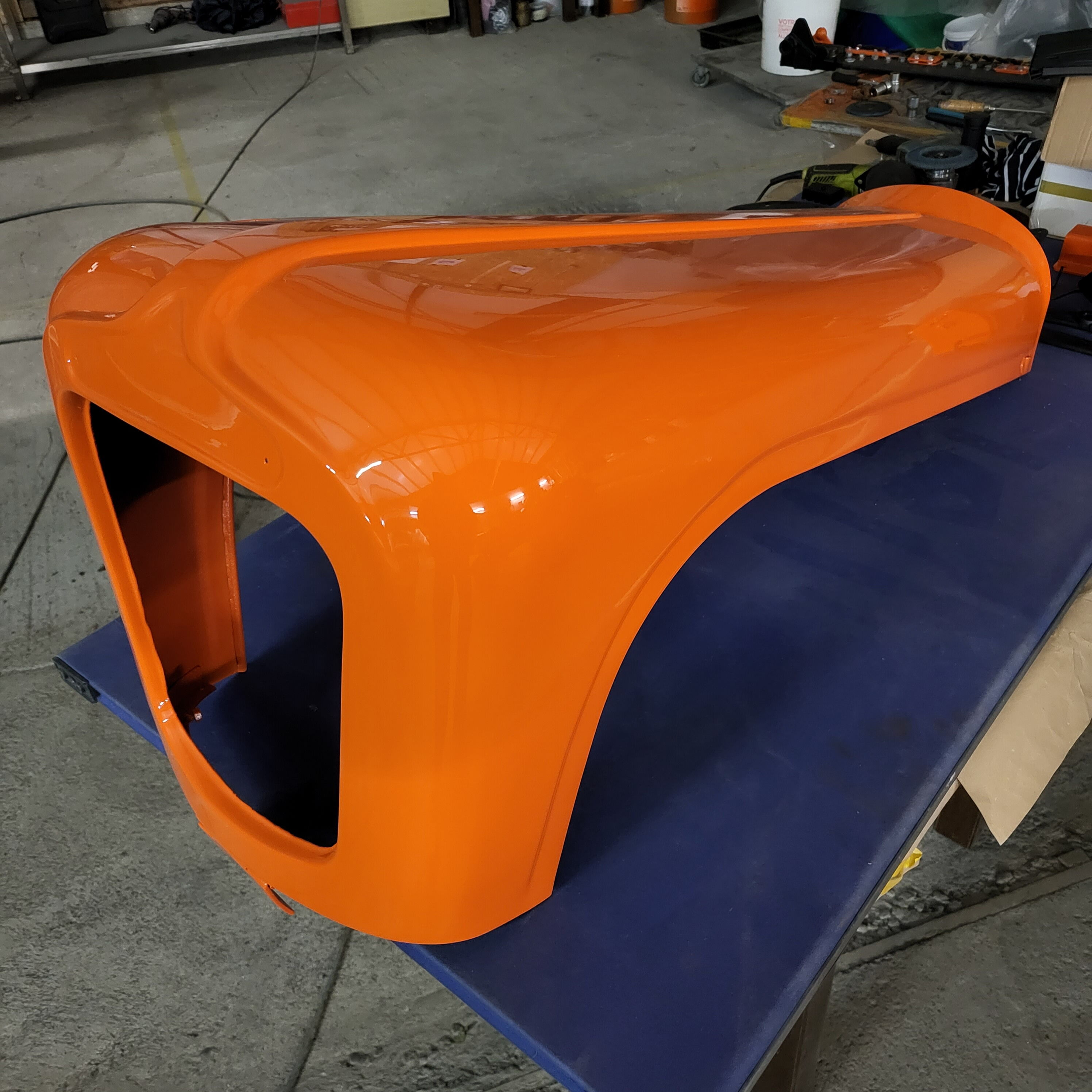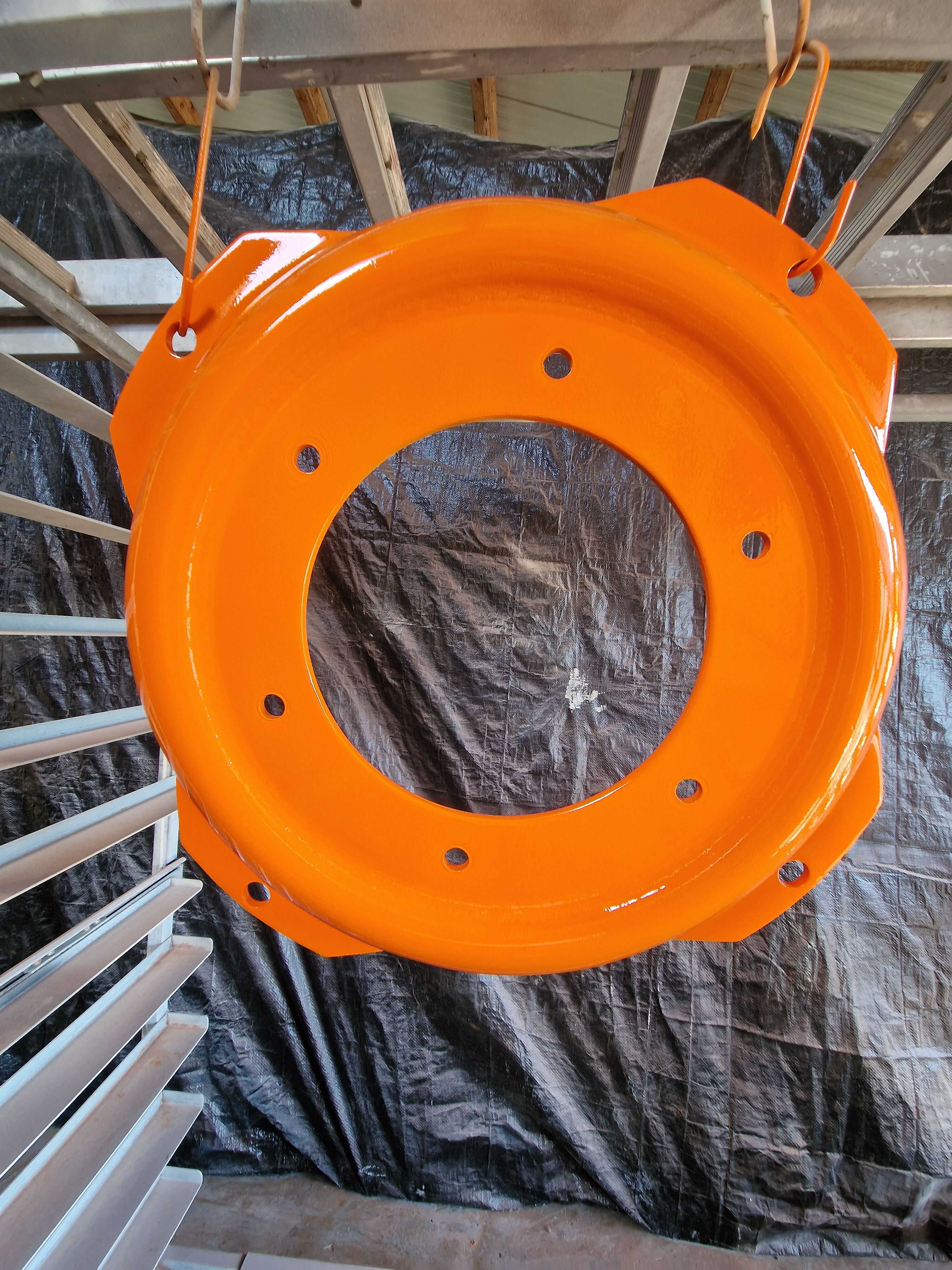 Professionelle Pulverbeschichtung vieler Bauteile; bewegliche Komponenten überwiegend schwarz pulverbeschichtet. Felgen mit Hochglanz-Pulverbeschichtung (Show-Quality-Finish). Sichtteile in periodenkorrekten Farbtönen lackiert. Umfassender Korrosionsschutz innen/außen.