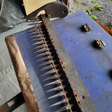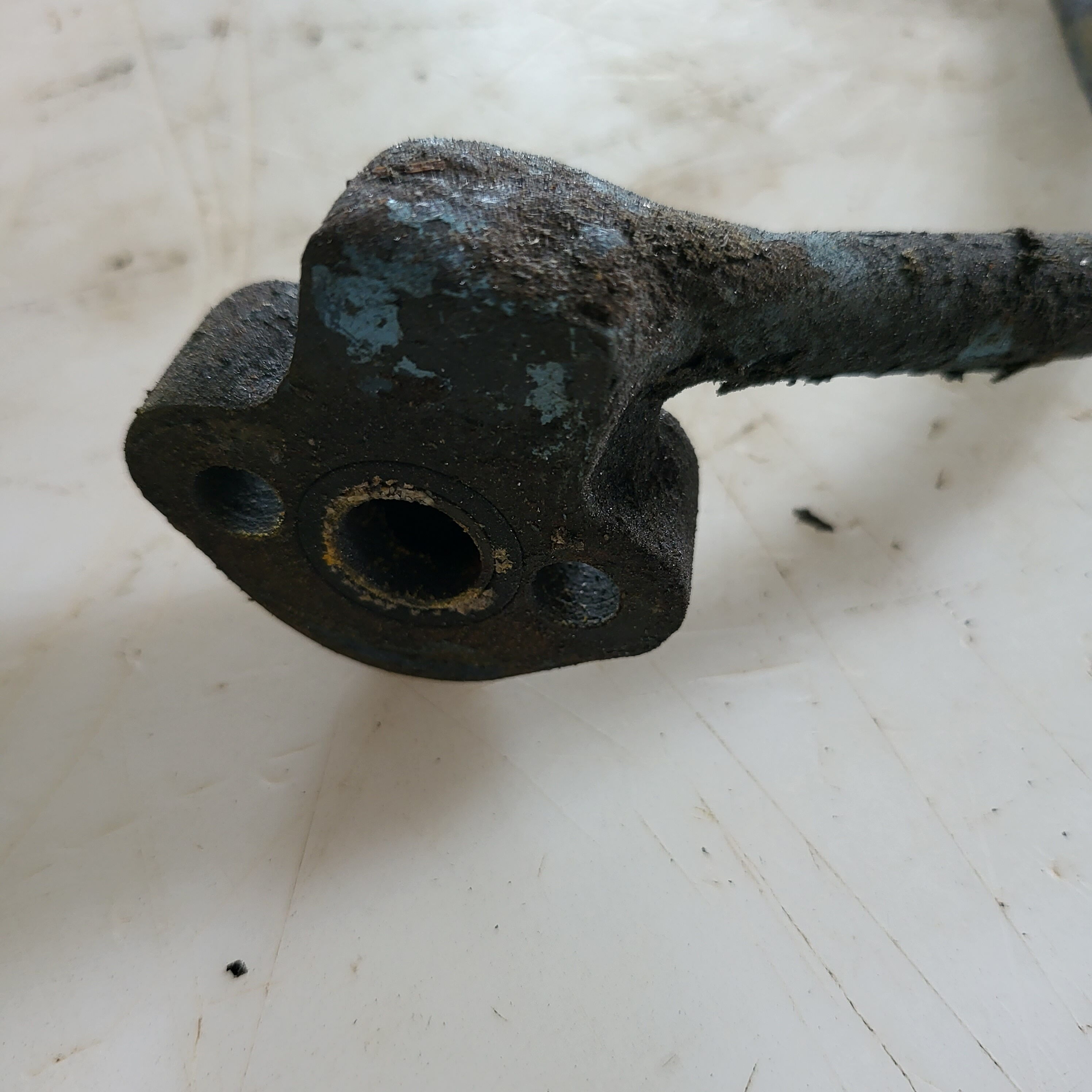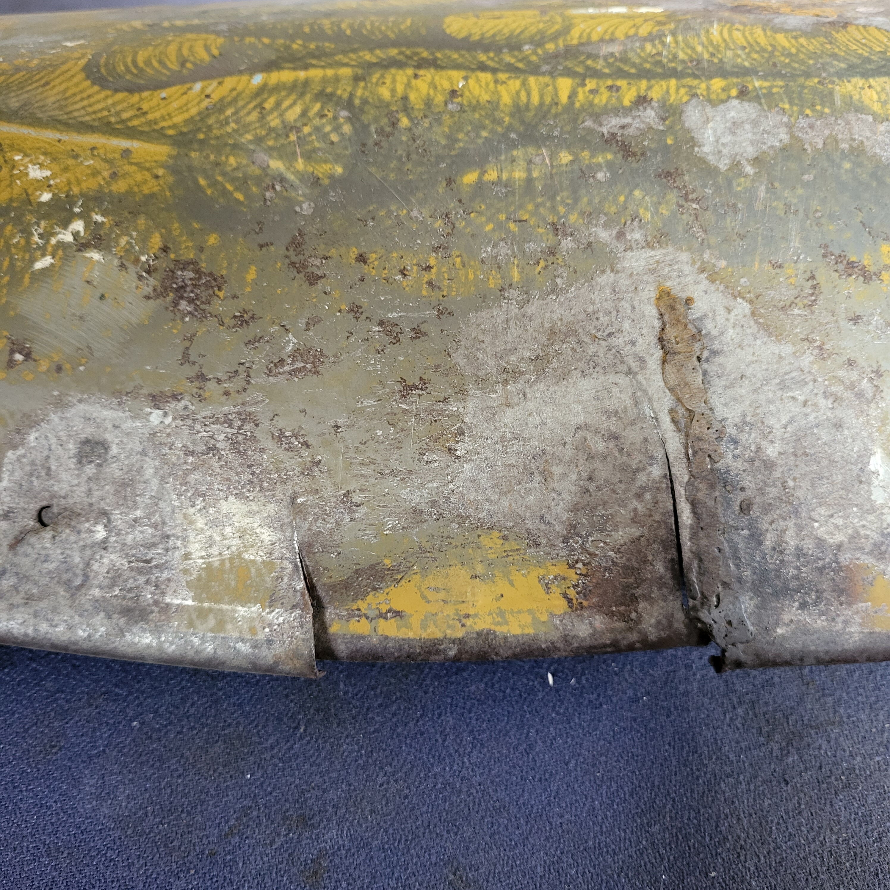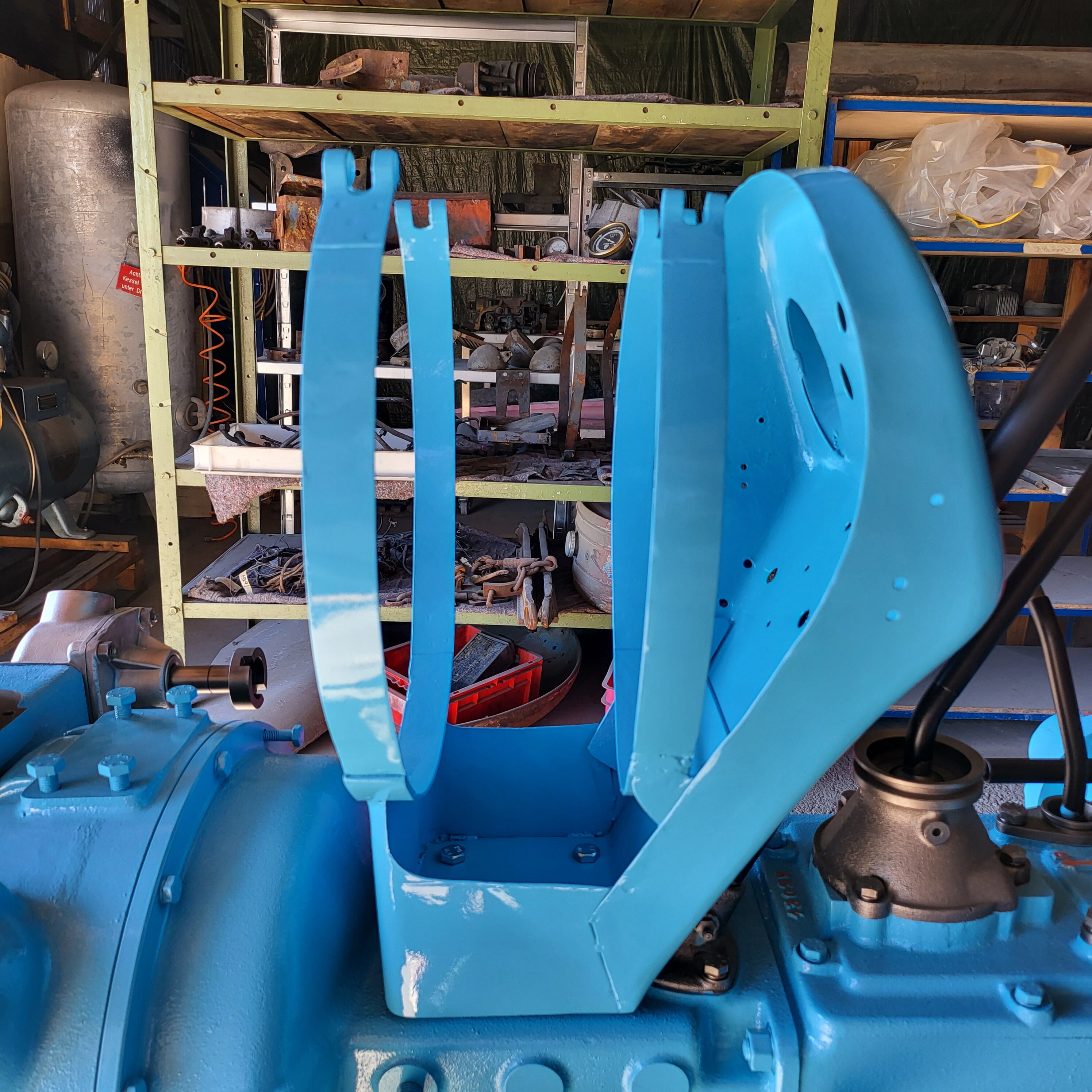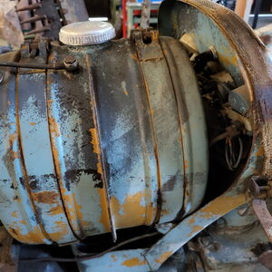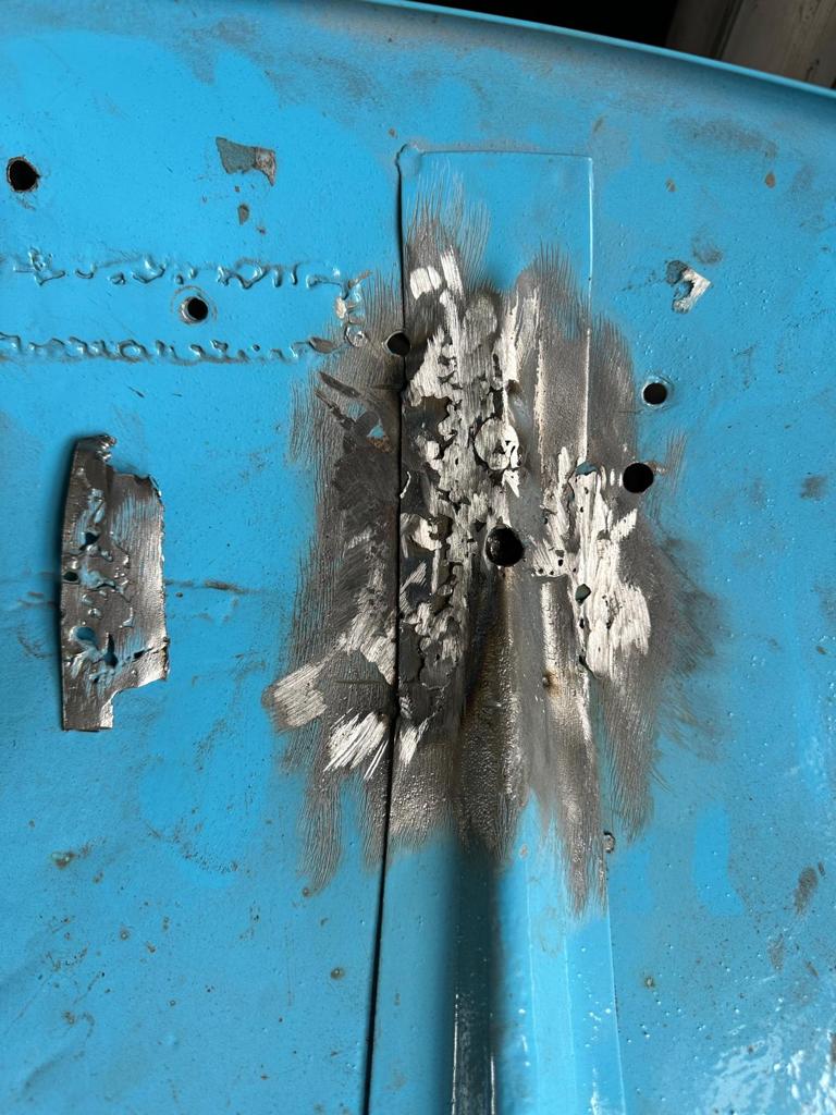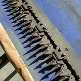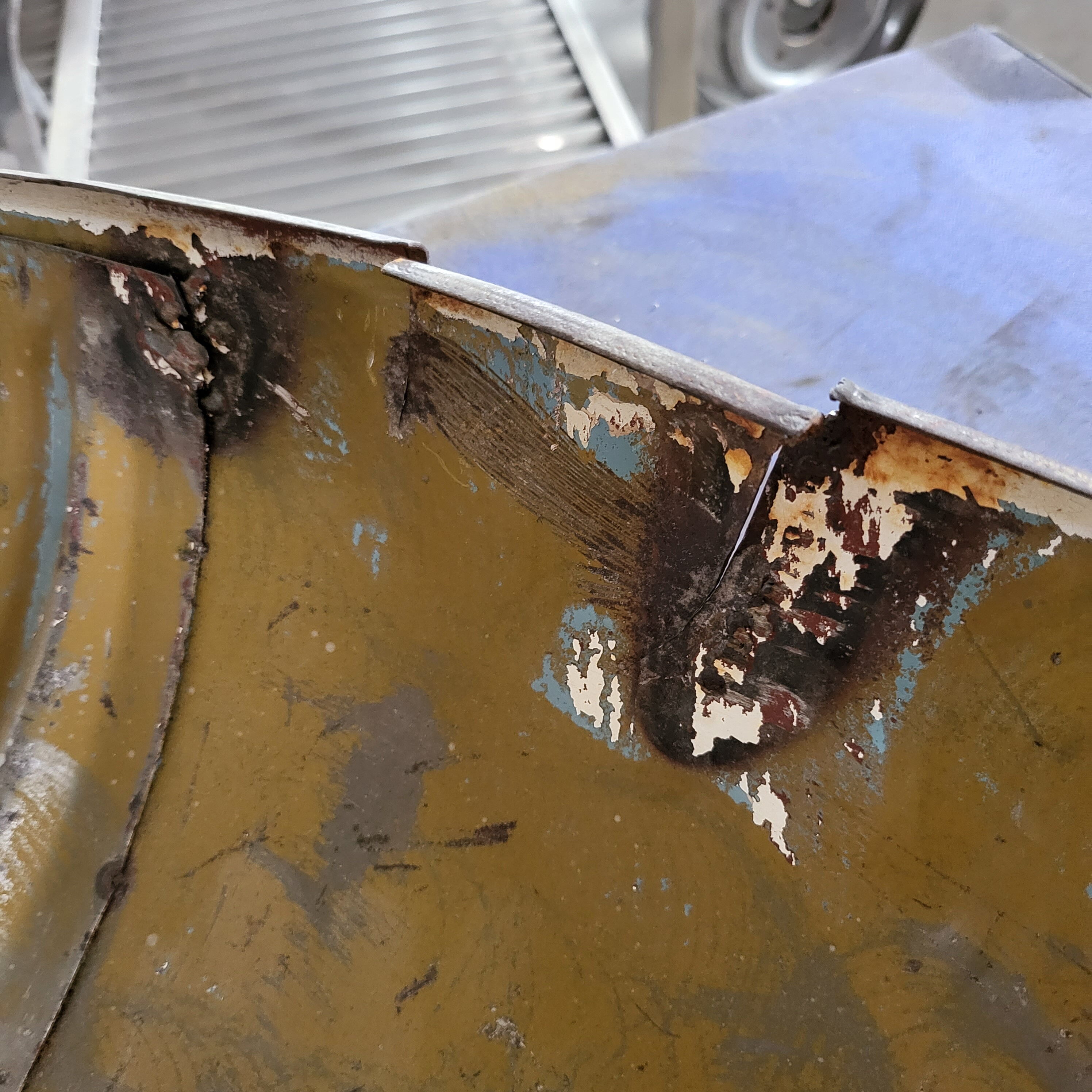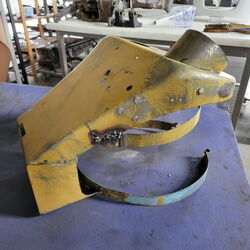 Fotodokumentation des unrestaurierten Zustands vom 22.12.2021: authentische Nutzungsspuren, Korrosionszonen, aber vollständige Hauptbaugruppen inkl. Mähbalken-Peripherie. Der Erstzustand definierte, was erhalten, aufgearbeitet oder ersetzt wird. Gealterte Leitungen/Dichtflächen wurden erfasst; Transparenz als Werttreiber für jede folgende Entscheidung.