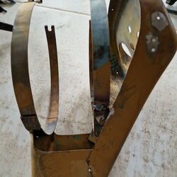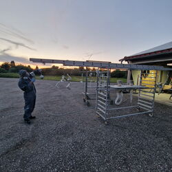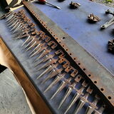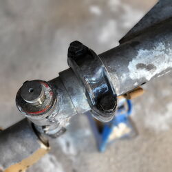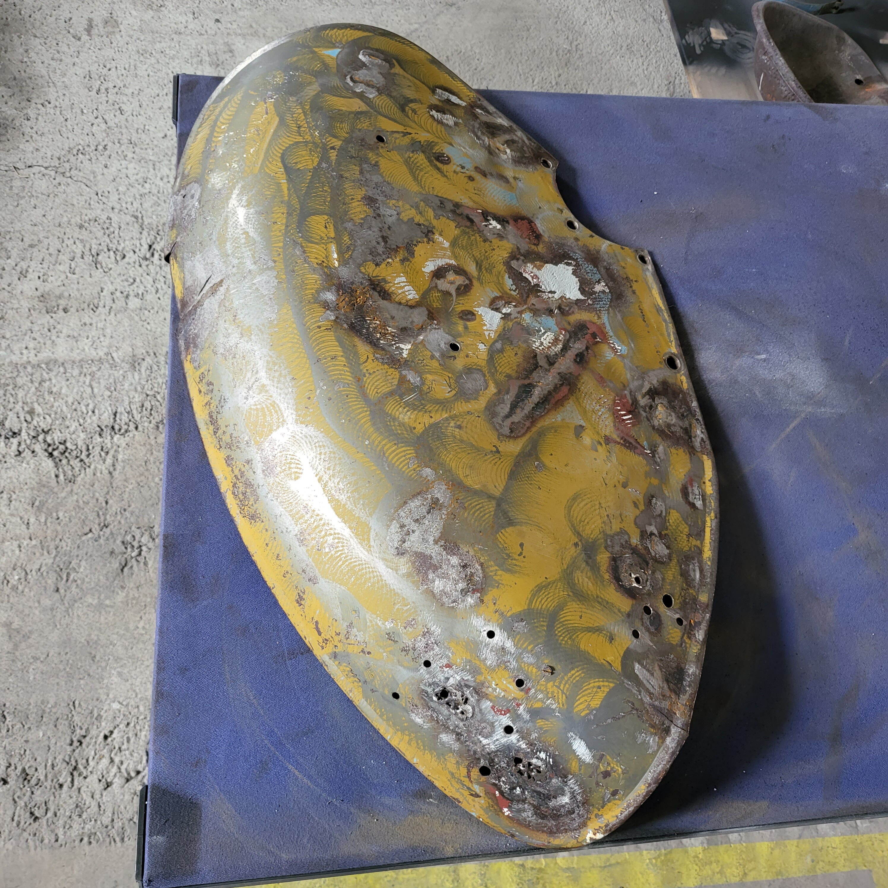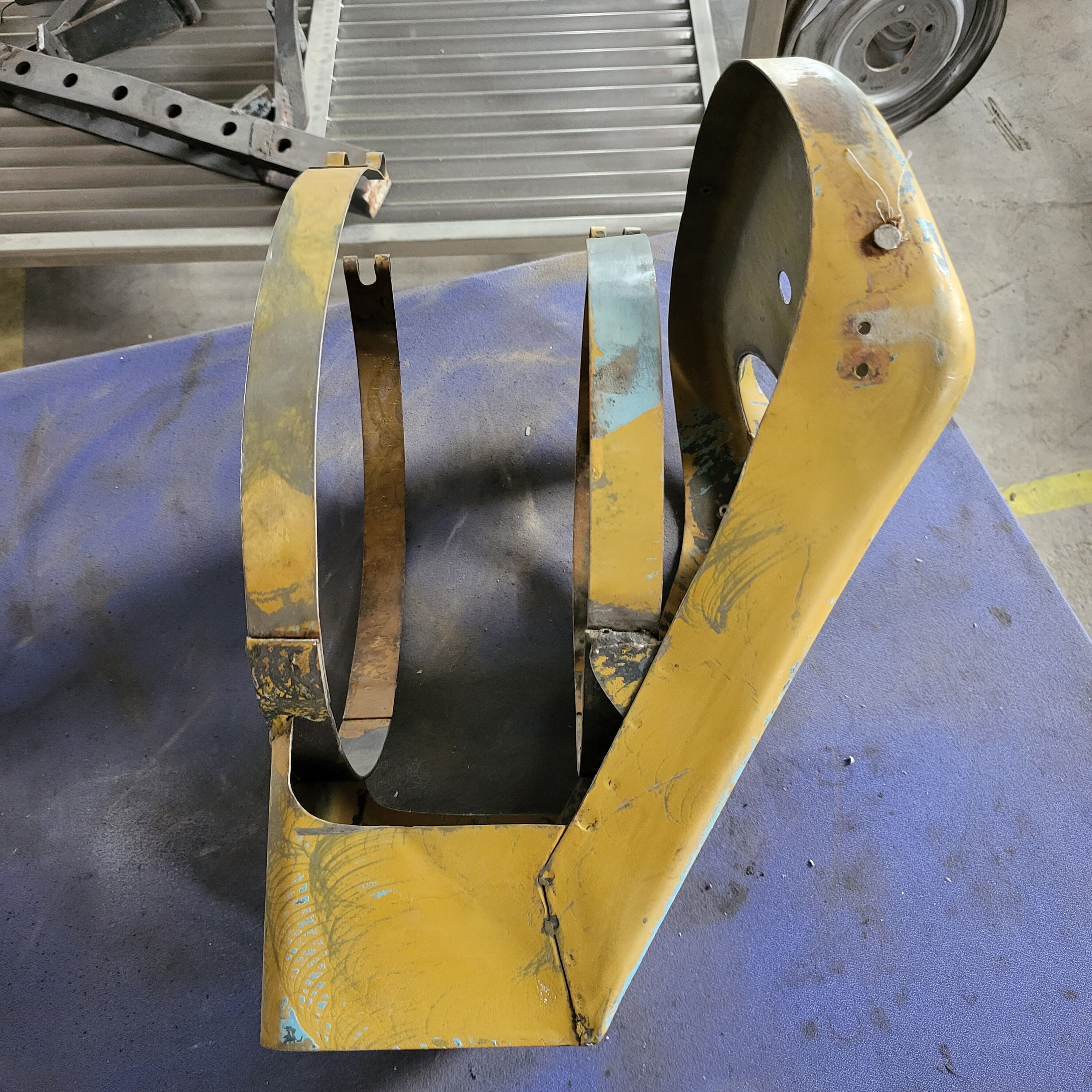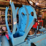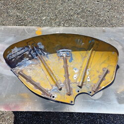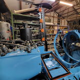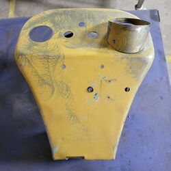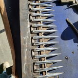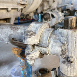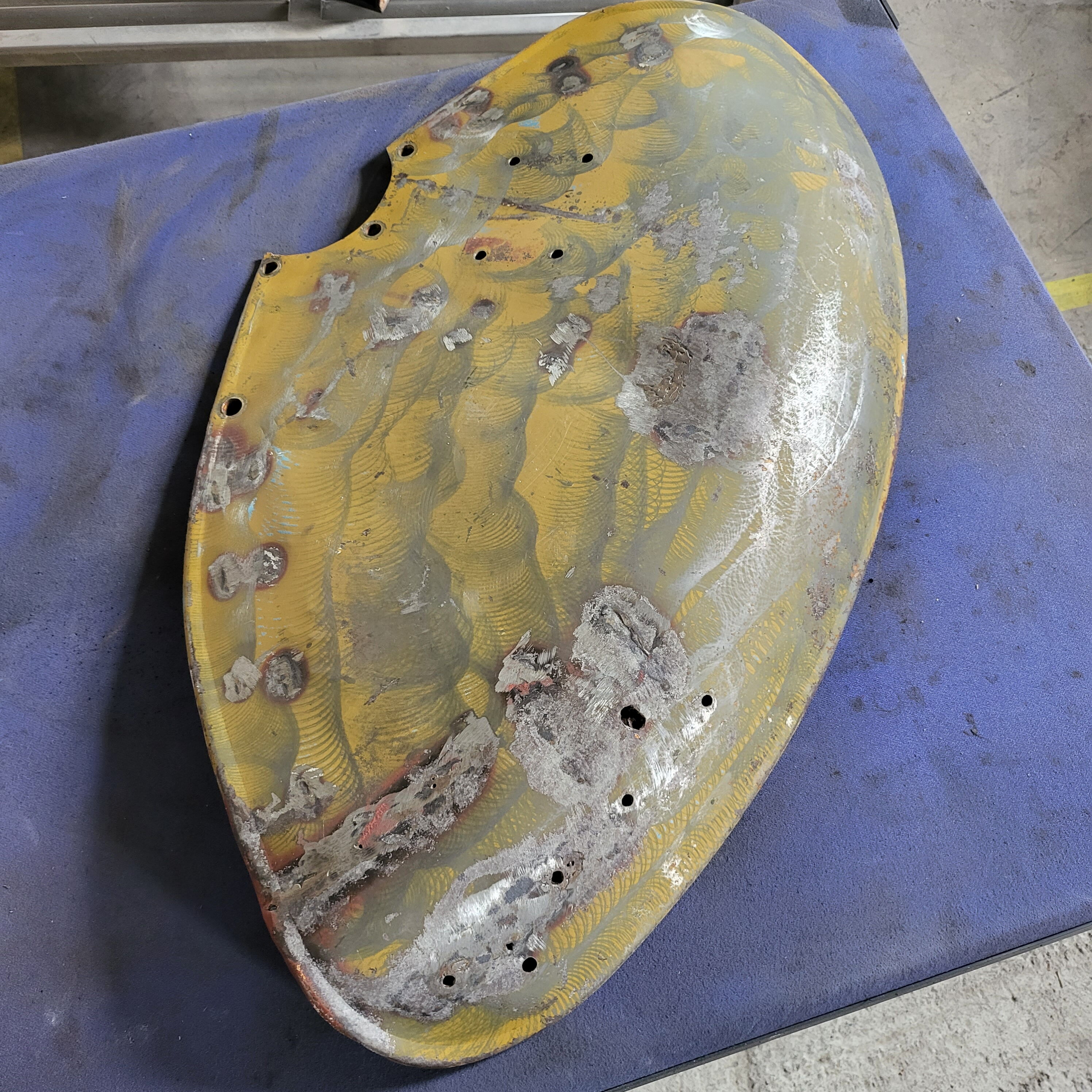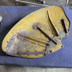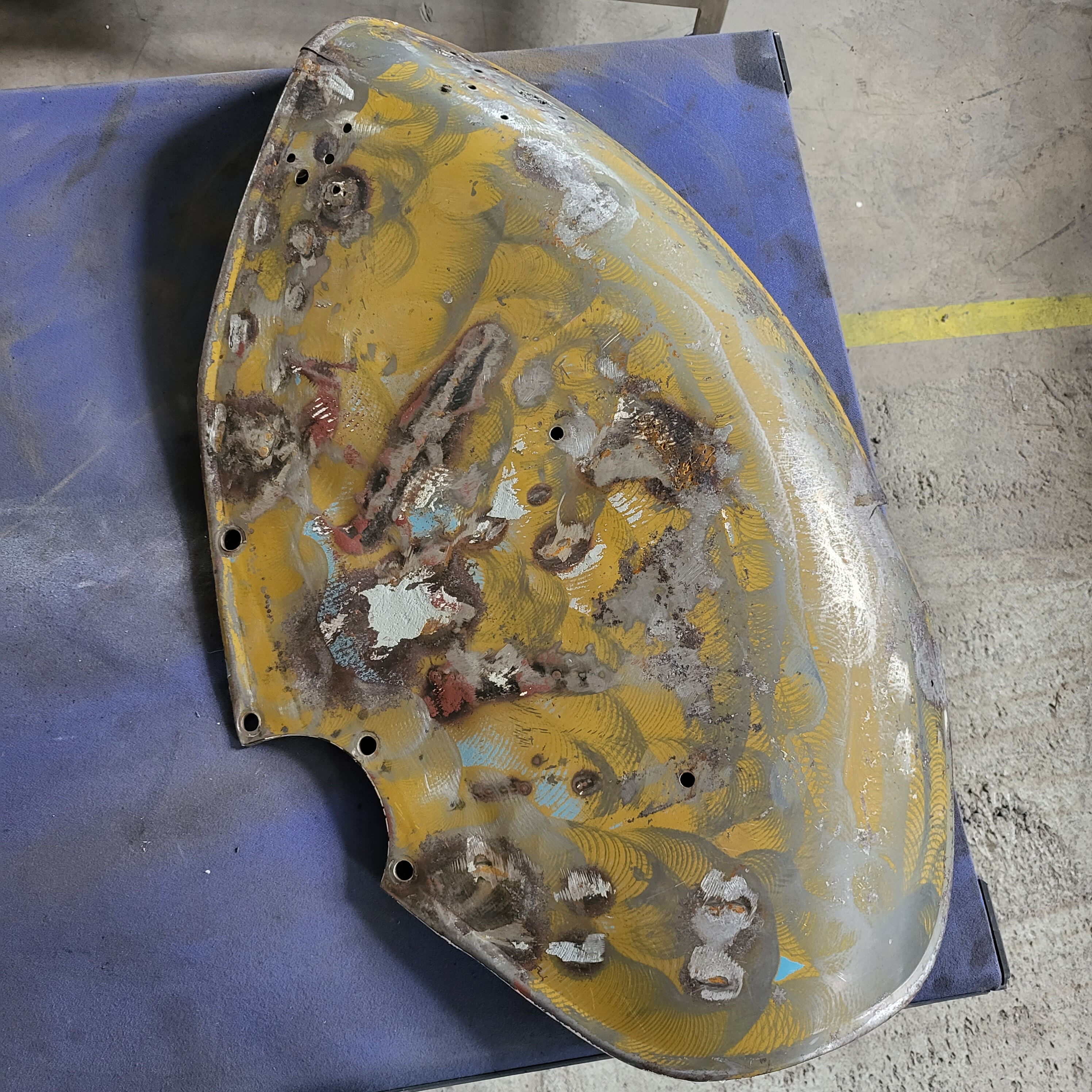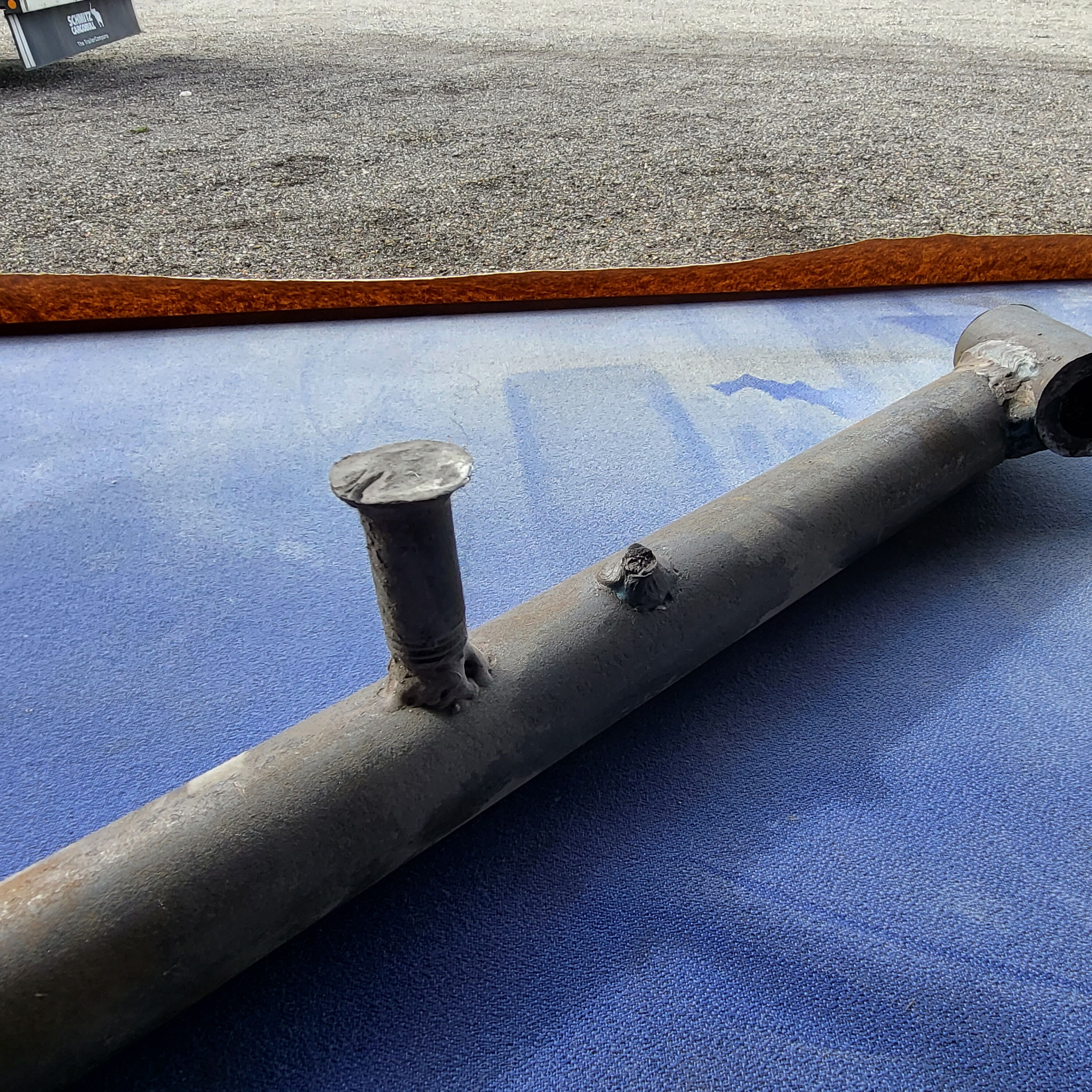 Fotodokumentation des unrestaurierten Zustands vom 22.12.2021: authentische Nutzungsspuren, Korrosionszonen, aber vollständige Hauptbaugruppen inkl. Mähbalken-Peripherie. Der Erstzustand definierte, was erhalten, aufgearbeitet oder ersetzt wird. Gealterte Leitungen/Dichtflächen wurden erfasst; Transparenz als Werttreiber für jede folgende Entscheidung.
