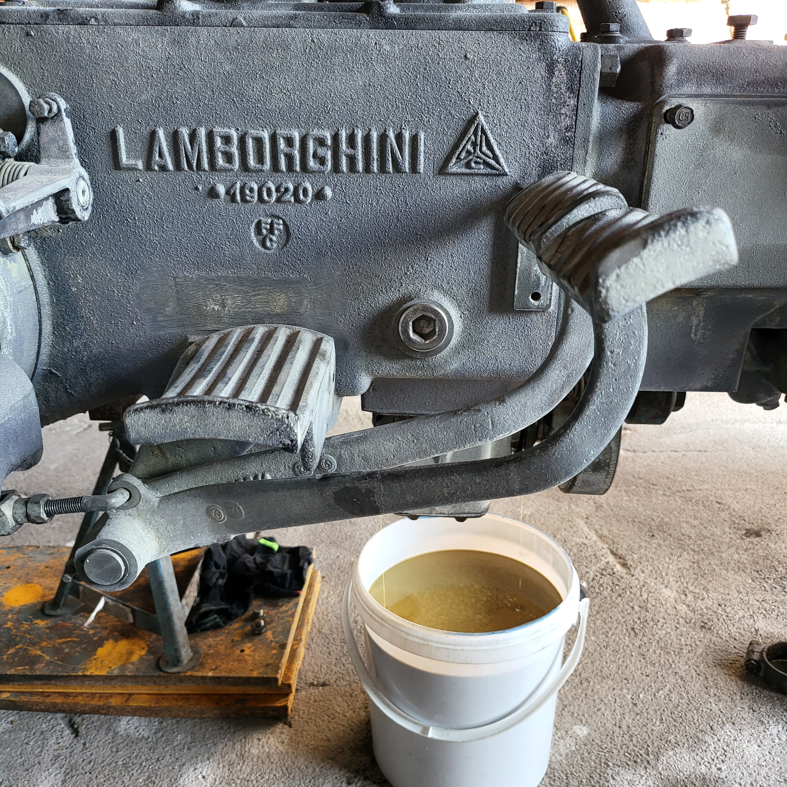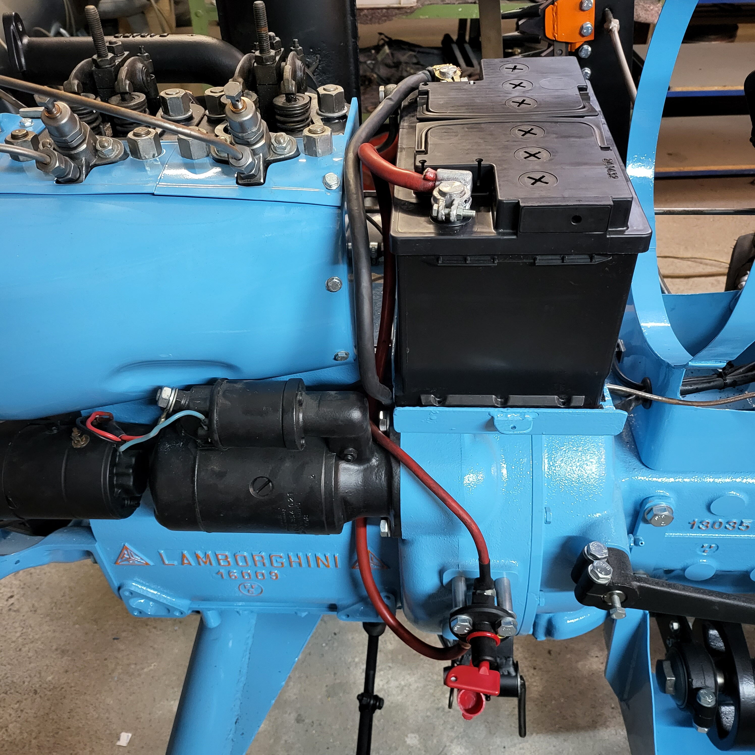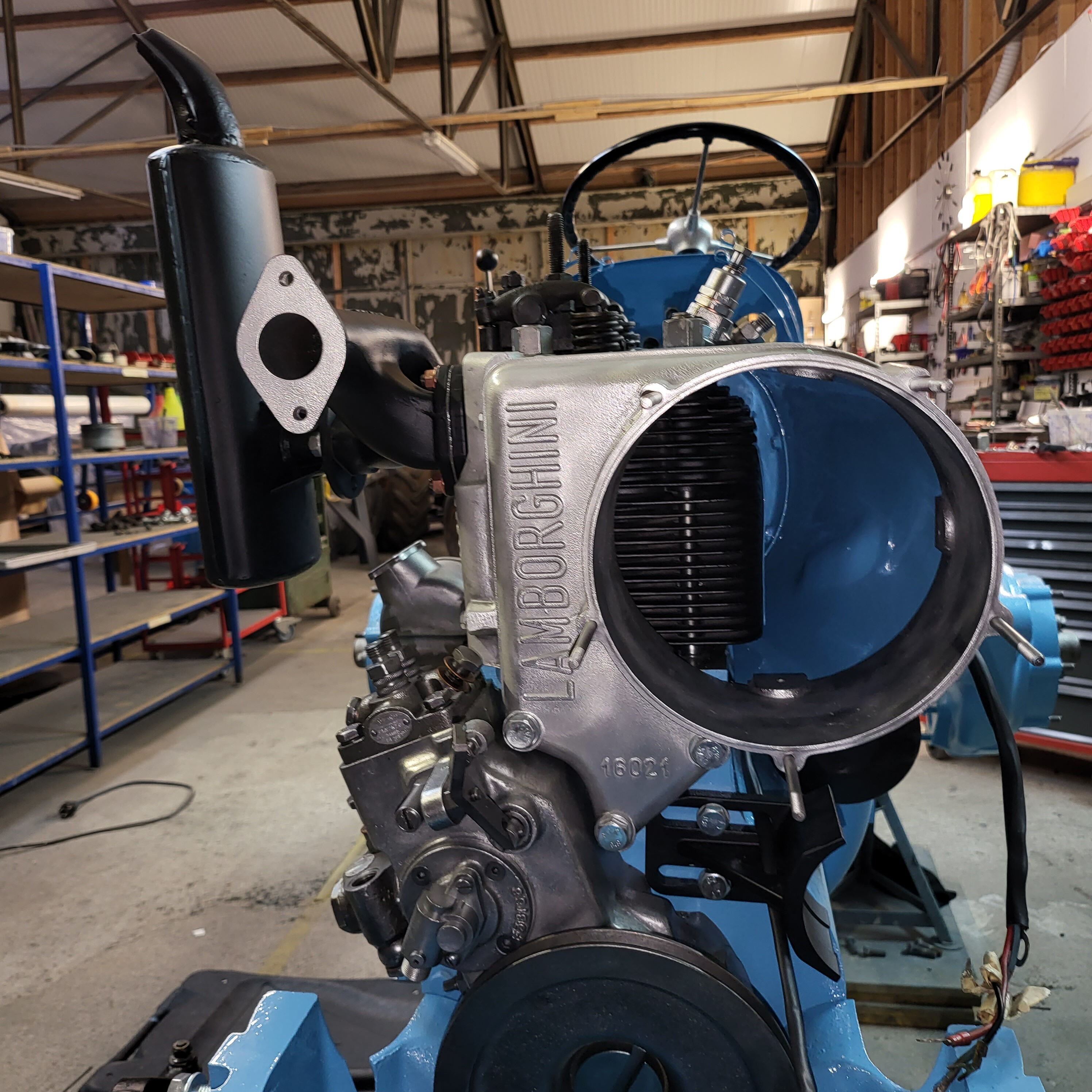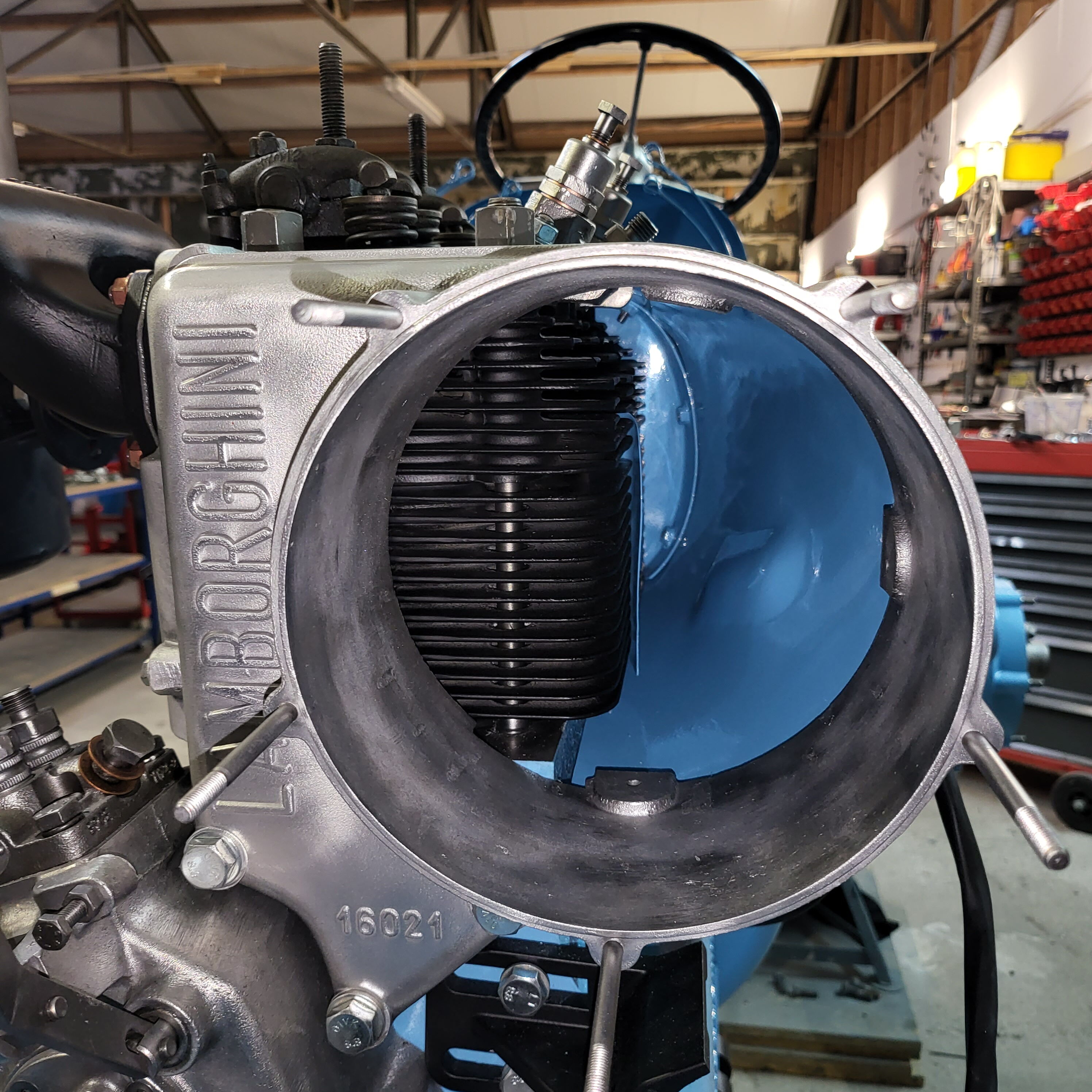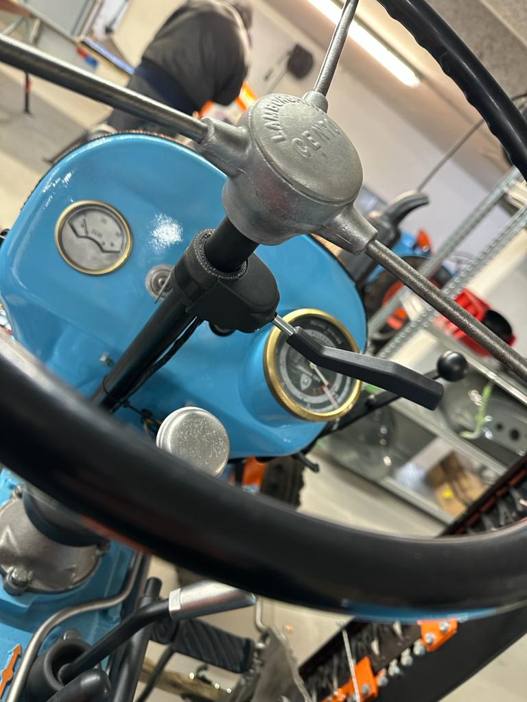 Vom verschraubten Mähbalken mit Flugrost, festgegammelten Leitungen und Jahrzehnten Obstwiesen-Patina – bis genau hier: Abdeckung runter. Zündung. Der FL-2 Zweizylinder erwacht, läuft sauber, nimmt willig Gas an. Ein Lamborghini 1R von 1967, technisch neu aufgebaut, optisch authentisch – bereit für sein zweites Leben zwischen den Baumreihen.