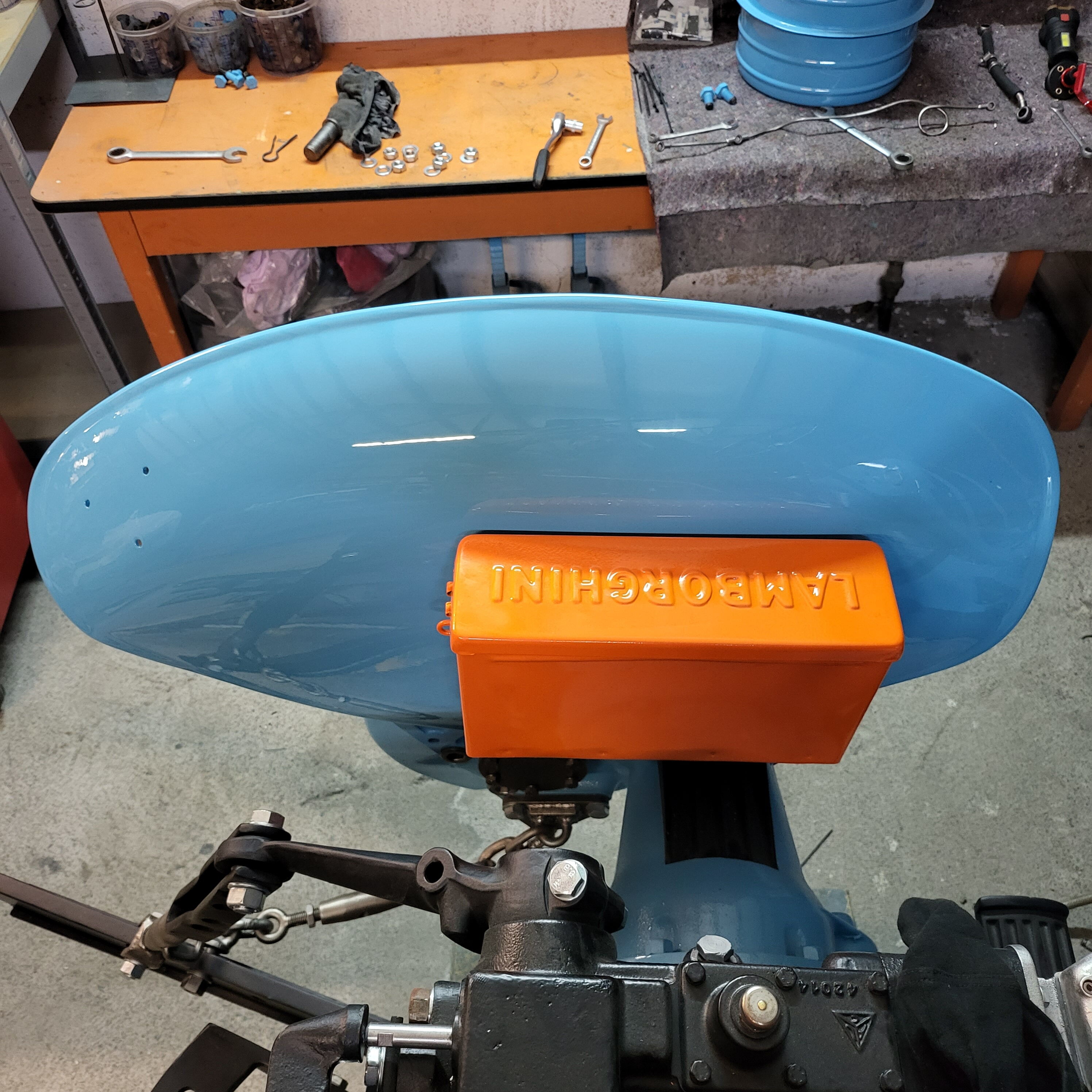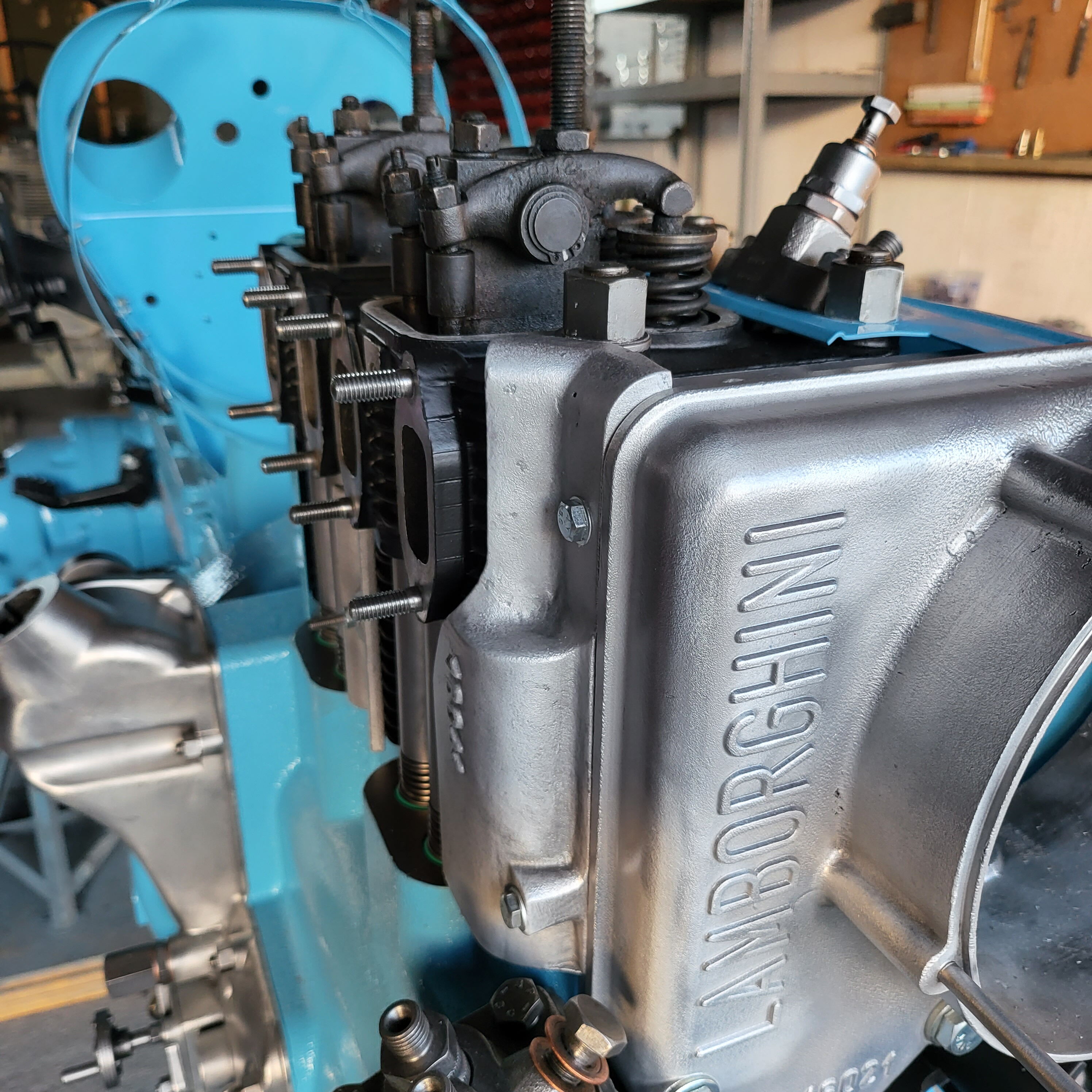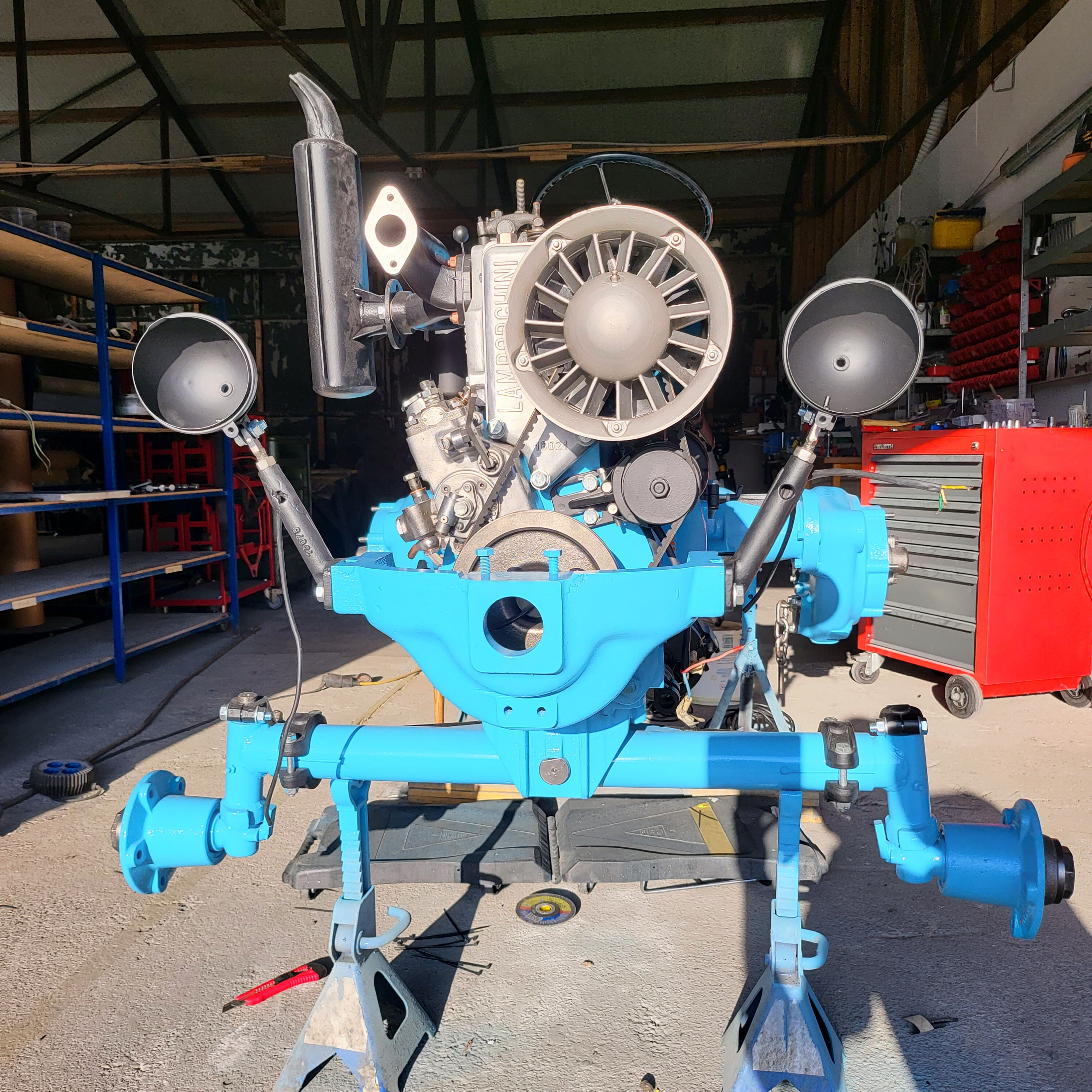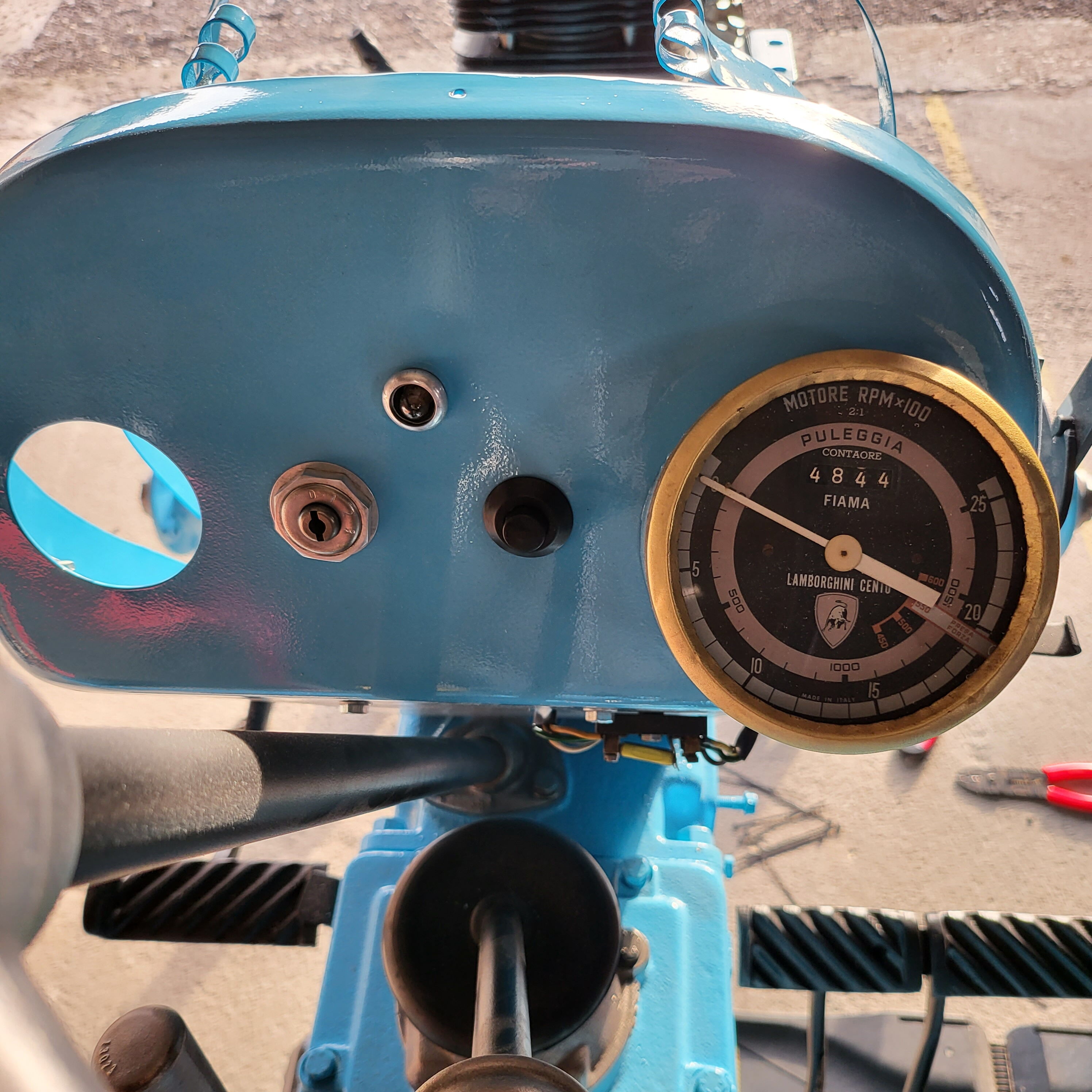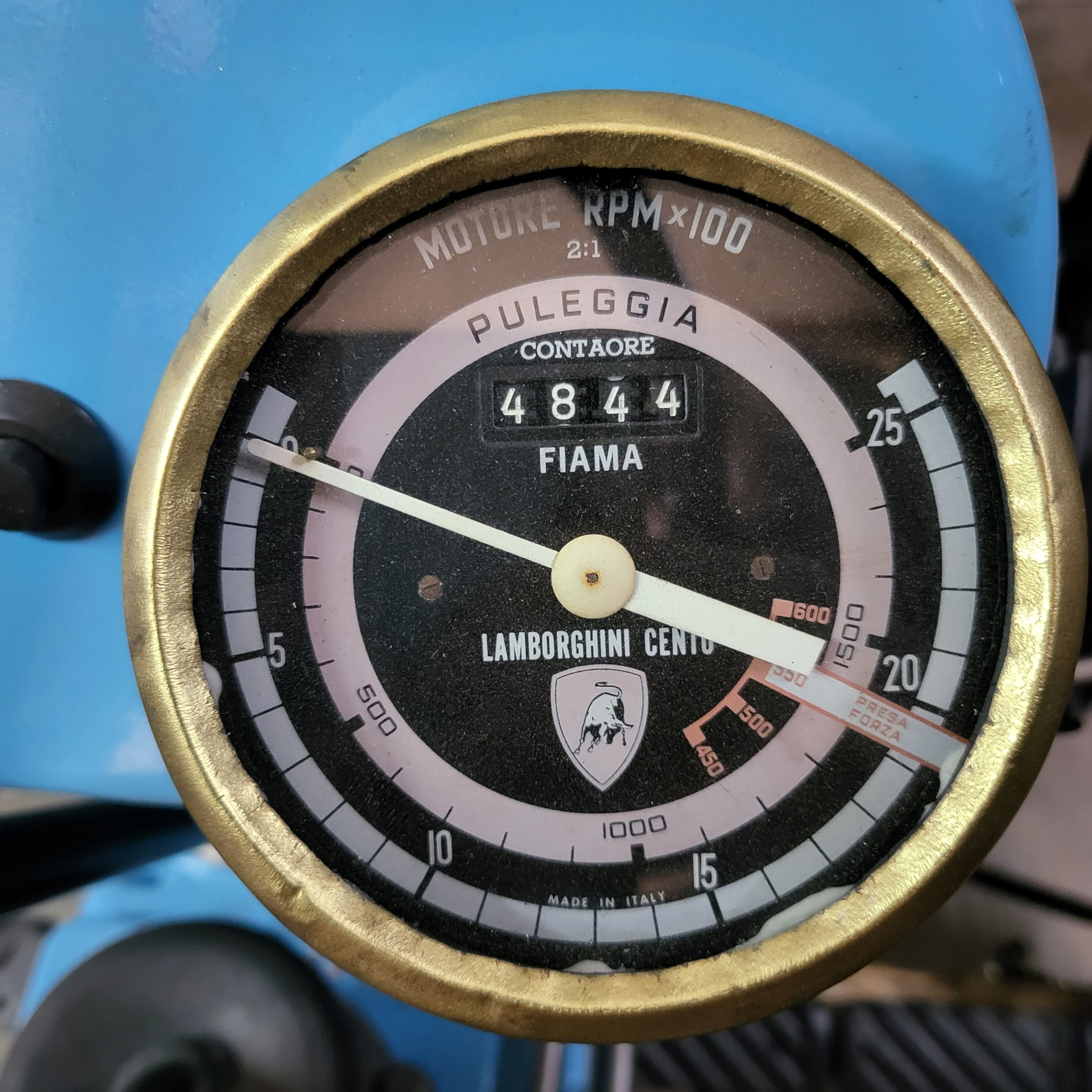 Vom verschraubten Mähbalken mit Flugrost, festgegammelten Leitungen und Jahrzehnten Obstwiesen-Patina – bis genau hier: Abdeckung runter. Zündung. Der FL-2 Zweizylinder erwacht, läuft sauber, nimmt willig Gas an. Ein Lamborghini 1R von 1967, technisch neu aufgebaut, optisch authentisch – bereit für sein zweites Leben zwischen den Baumreihen.