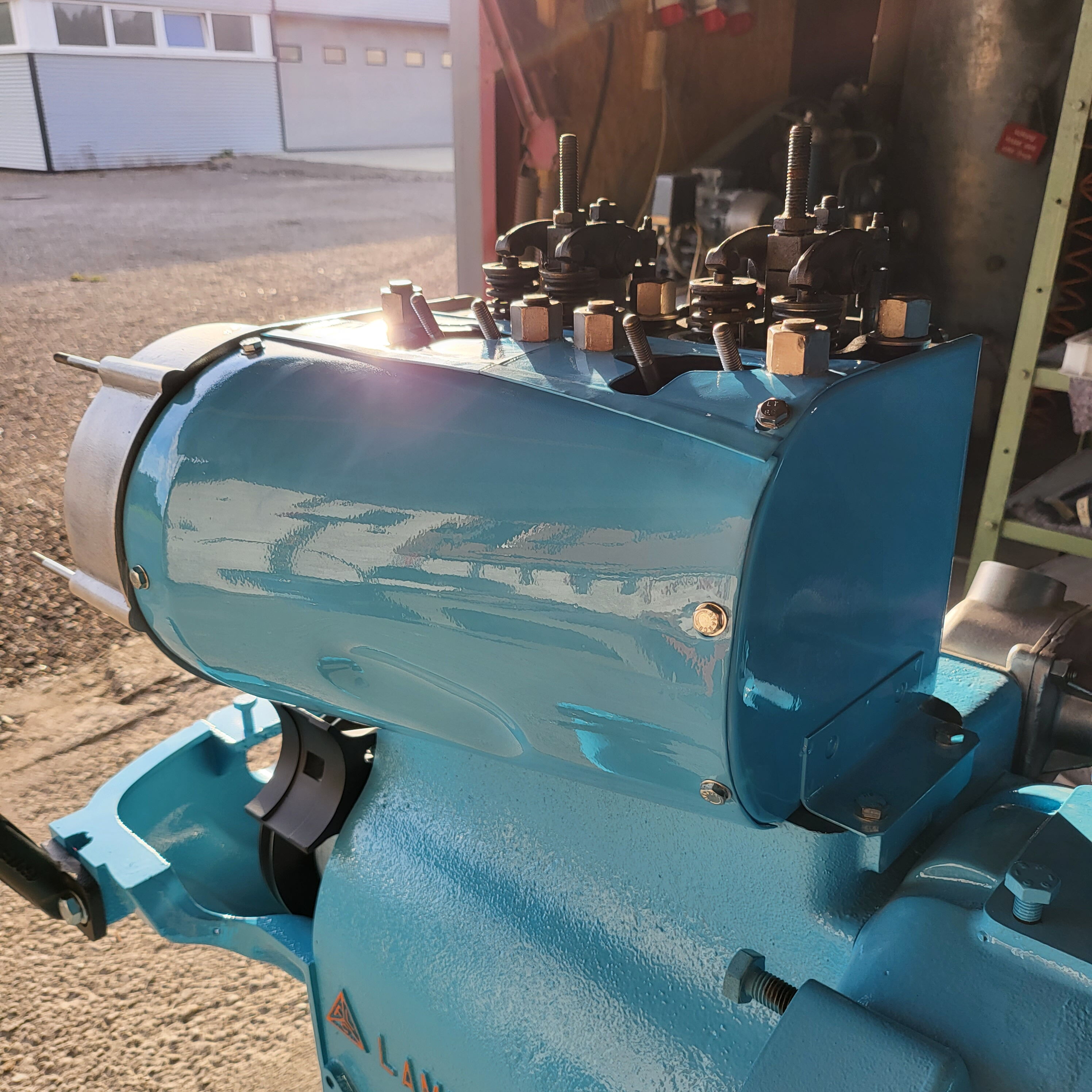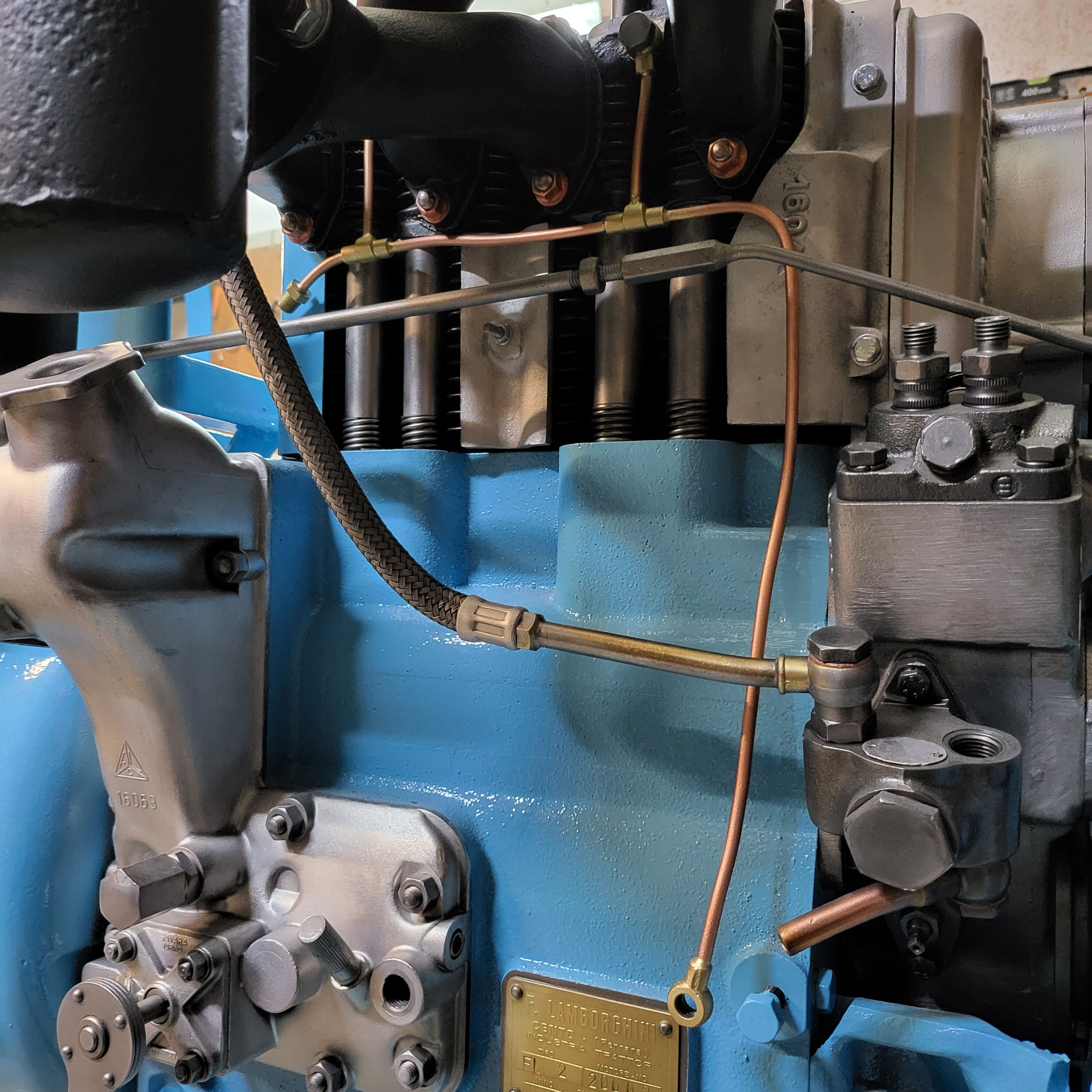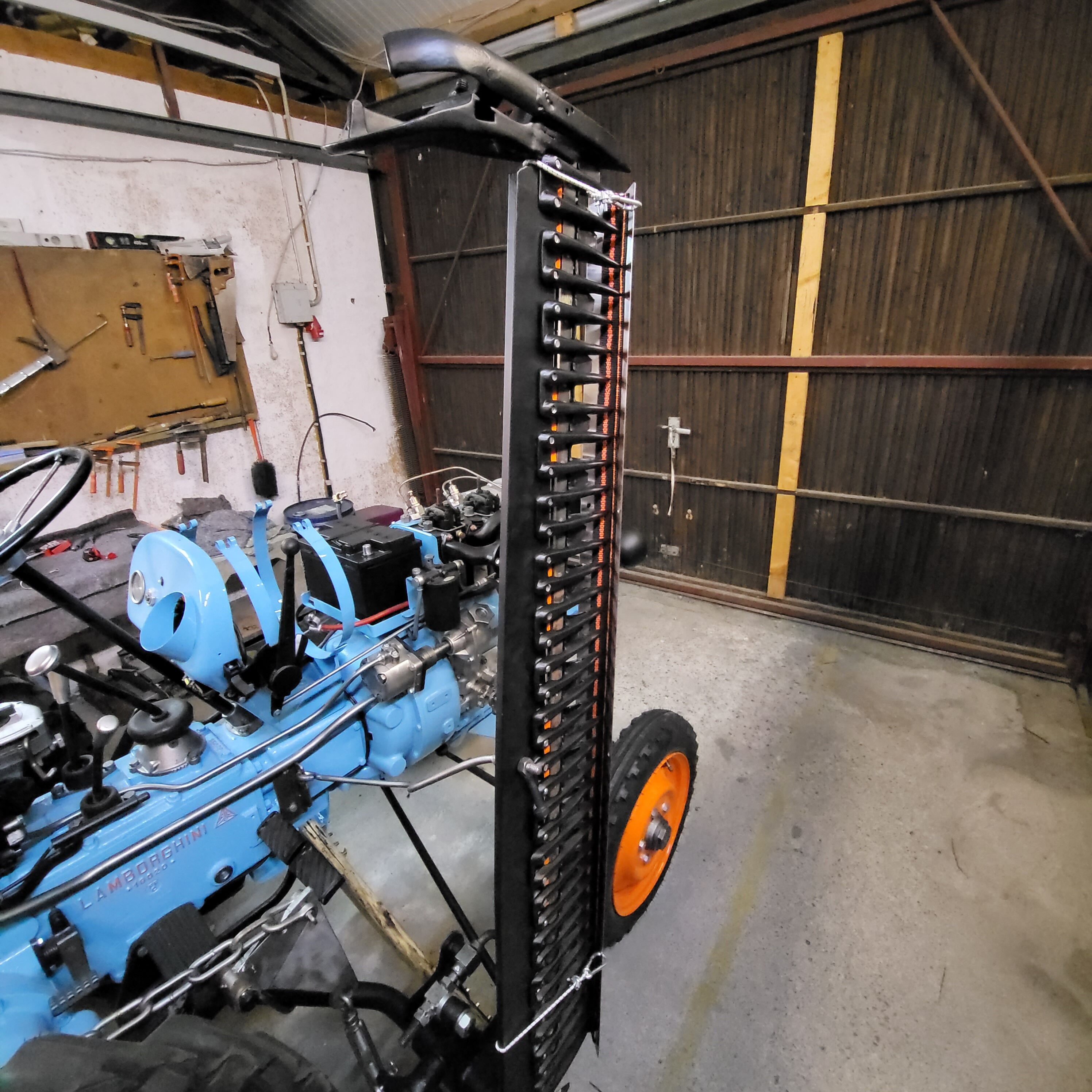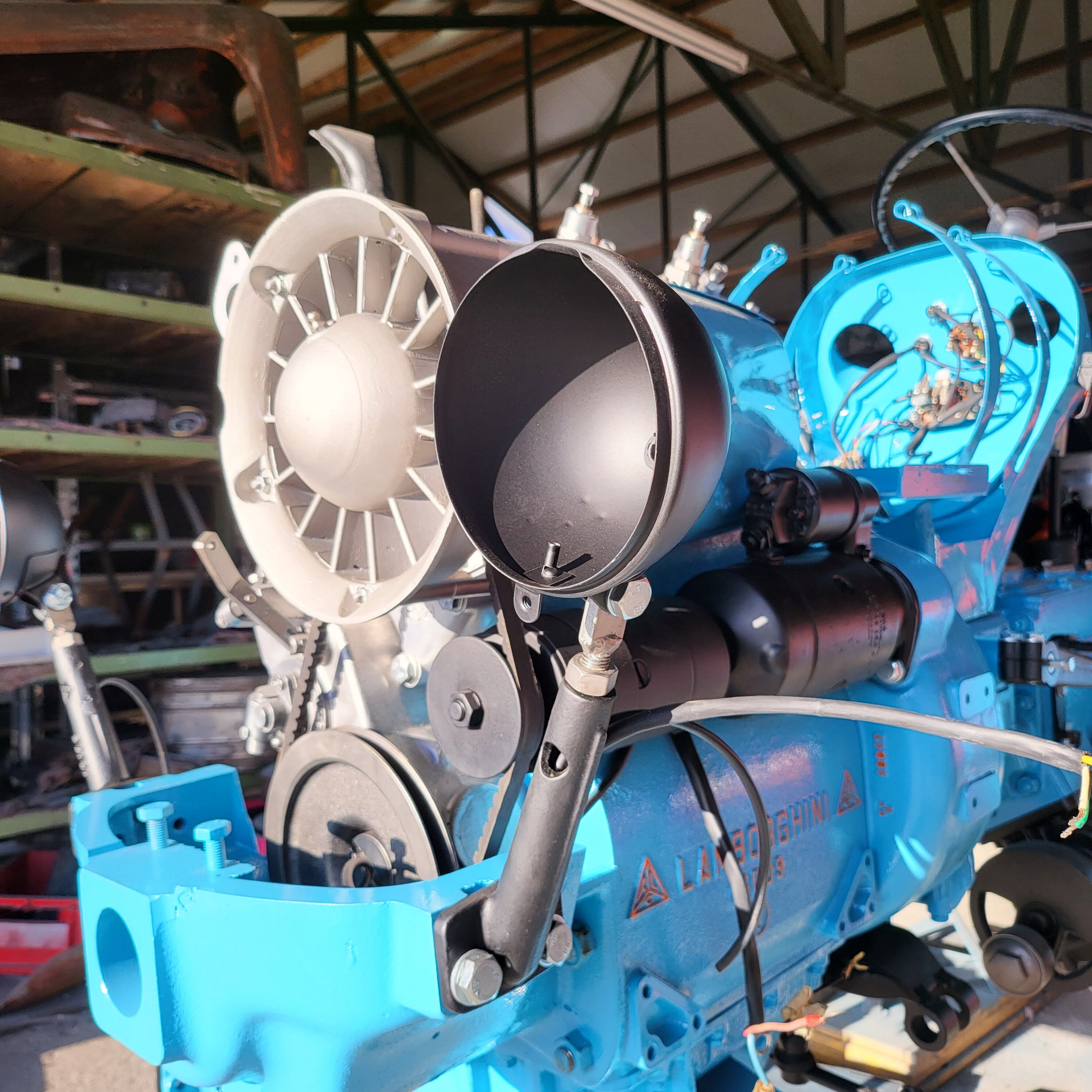 Vom verschraubten Mähbalken mit Flugrost, festgegammelten Leitungen und Jahrzehnten Obstwiesen-Patina – bis genau hier: Abdeckung runter. Zündung. Der FL-2 Zweizylinder erwacht, läuft sauber, nimmt willig Gas an. Ein Lamborghini 1R von 1967, technisch neu aufgebaut, optisch authentisch – bereit für sein zweites Leben zwischen den Baumreihen.
