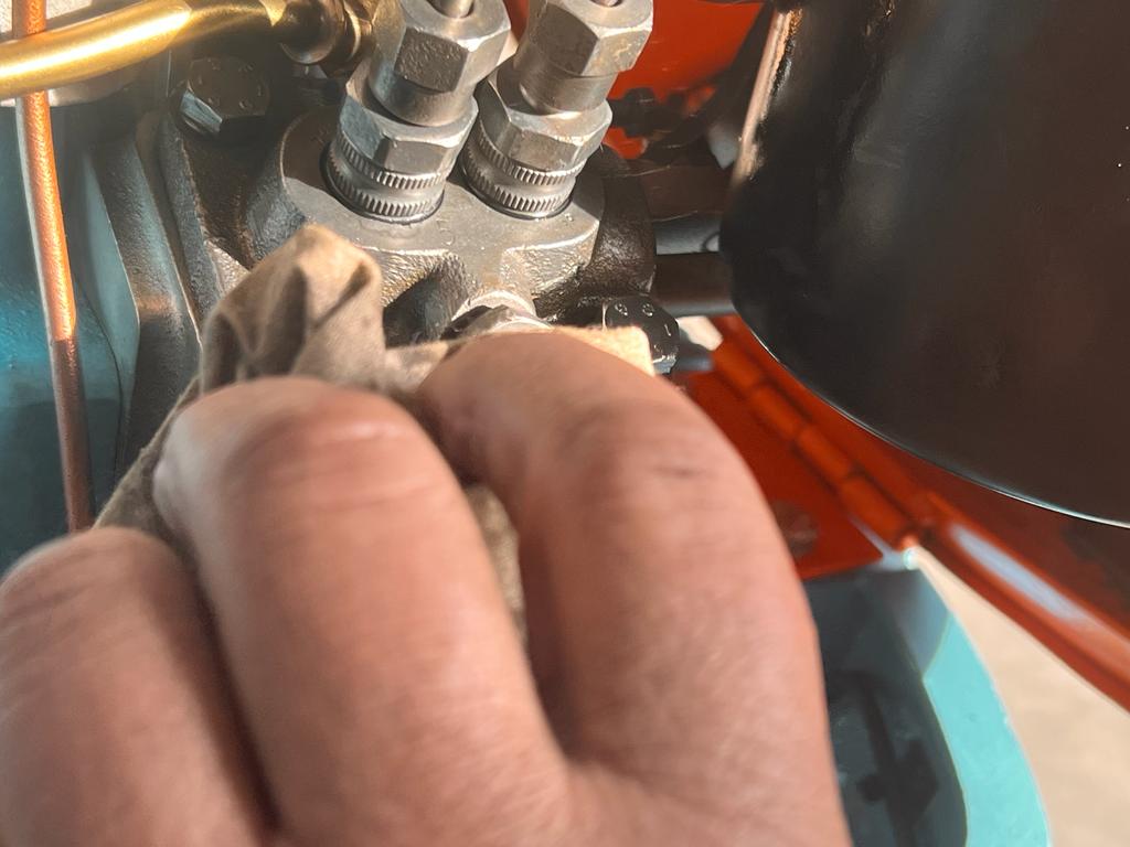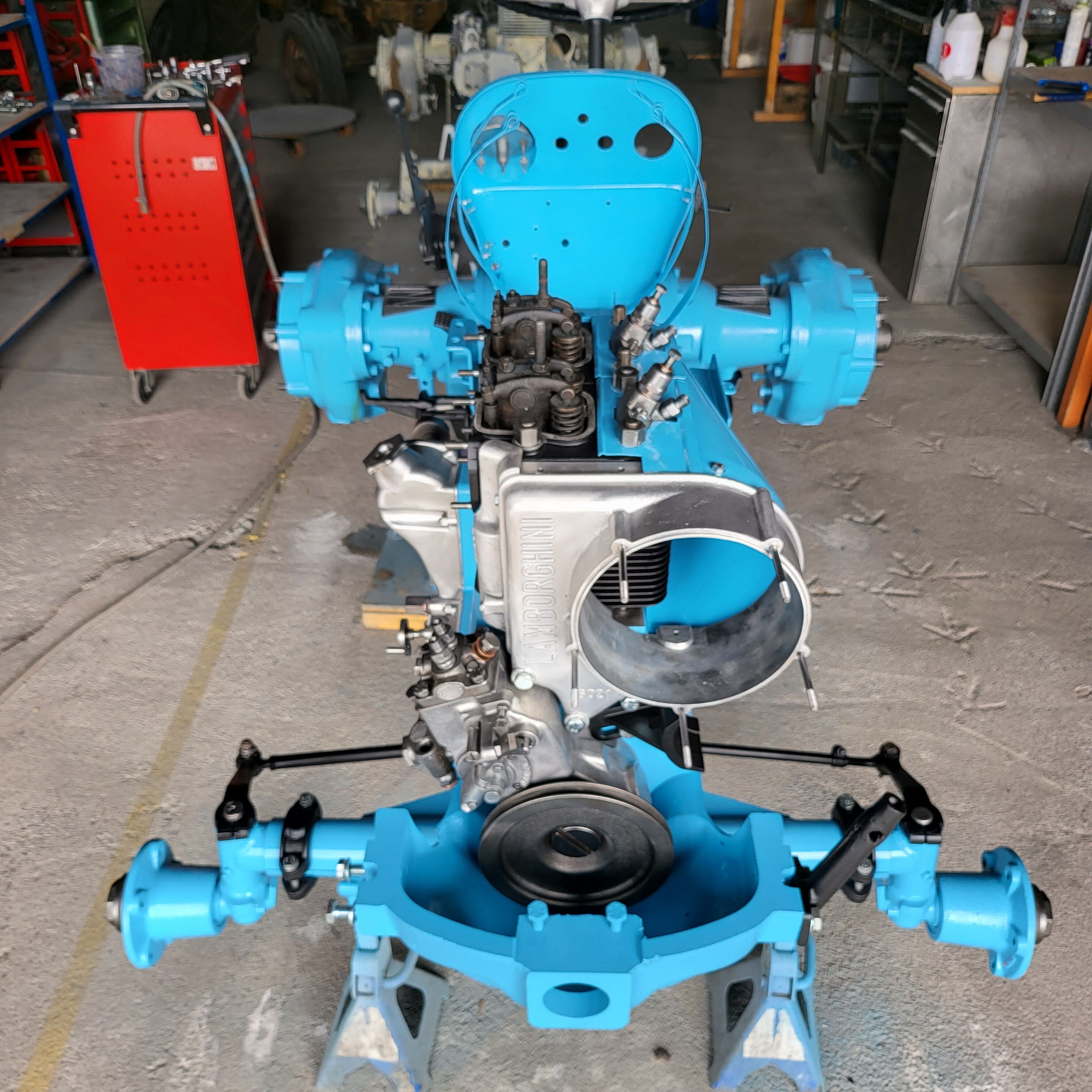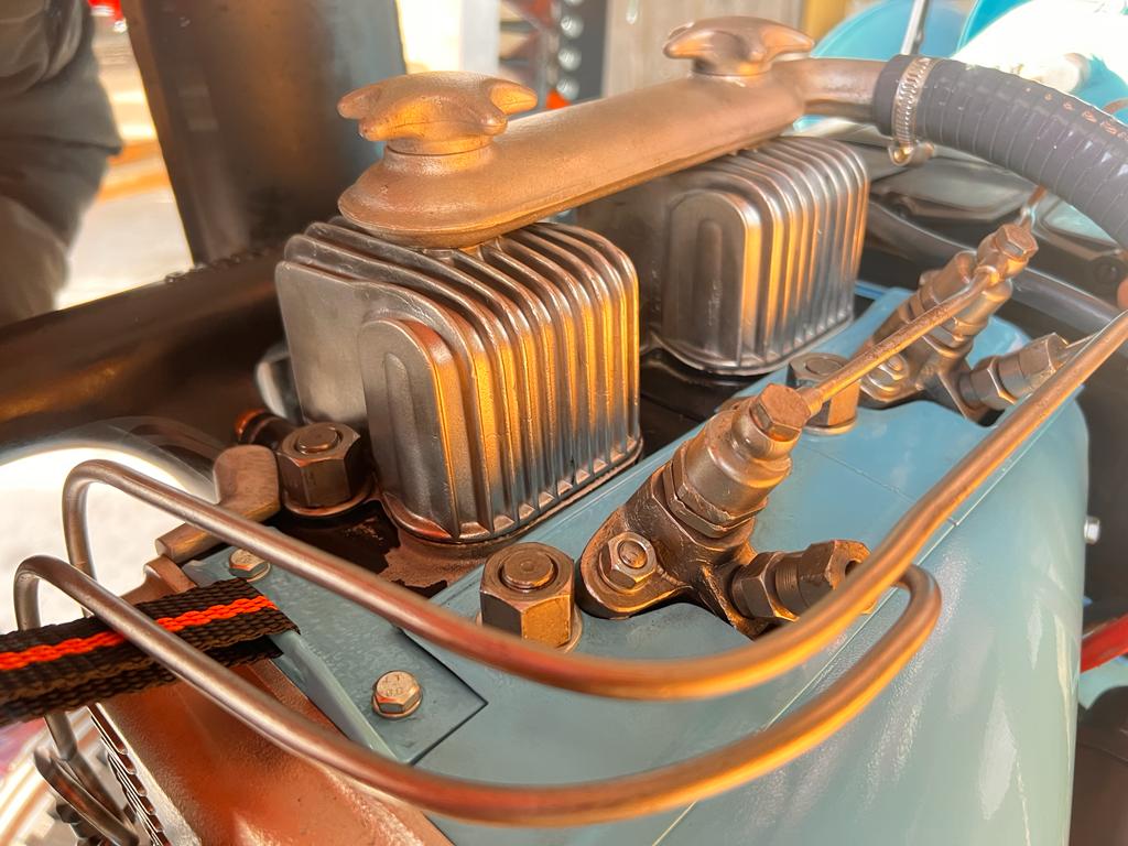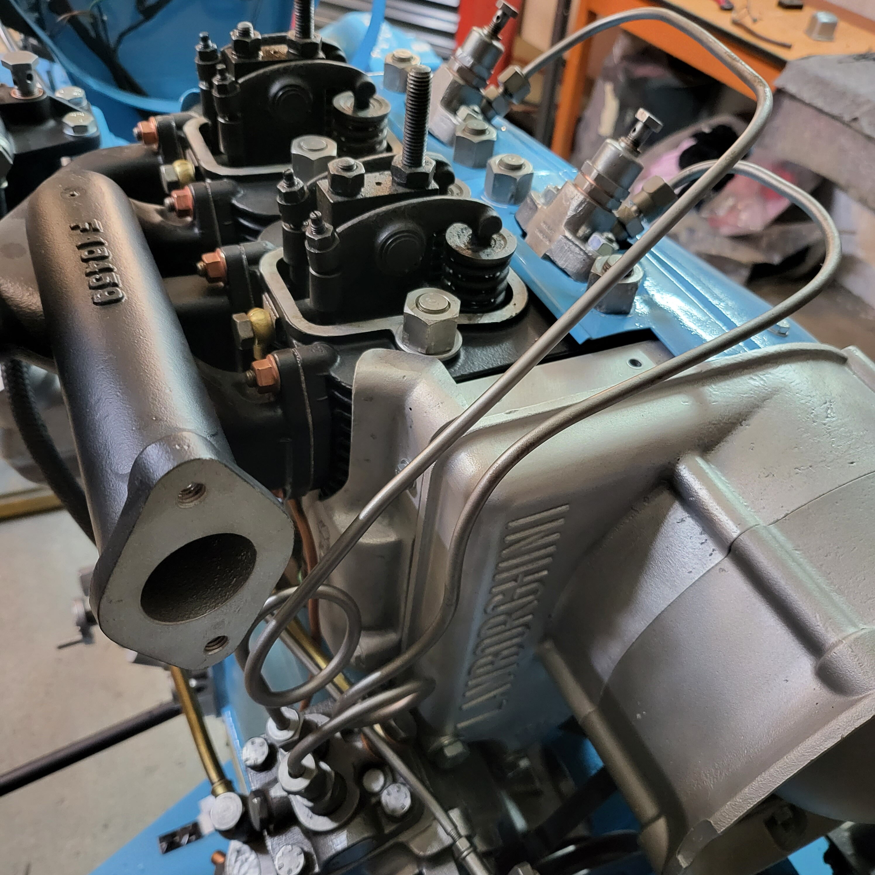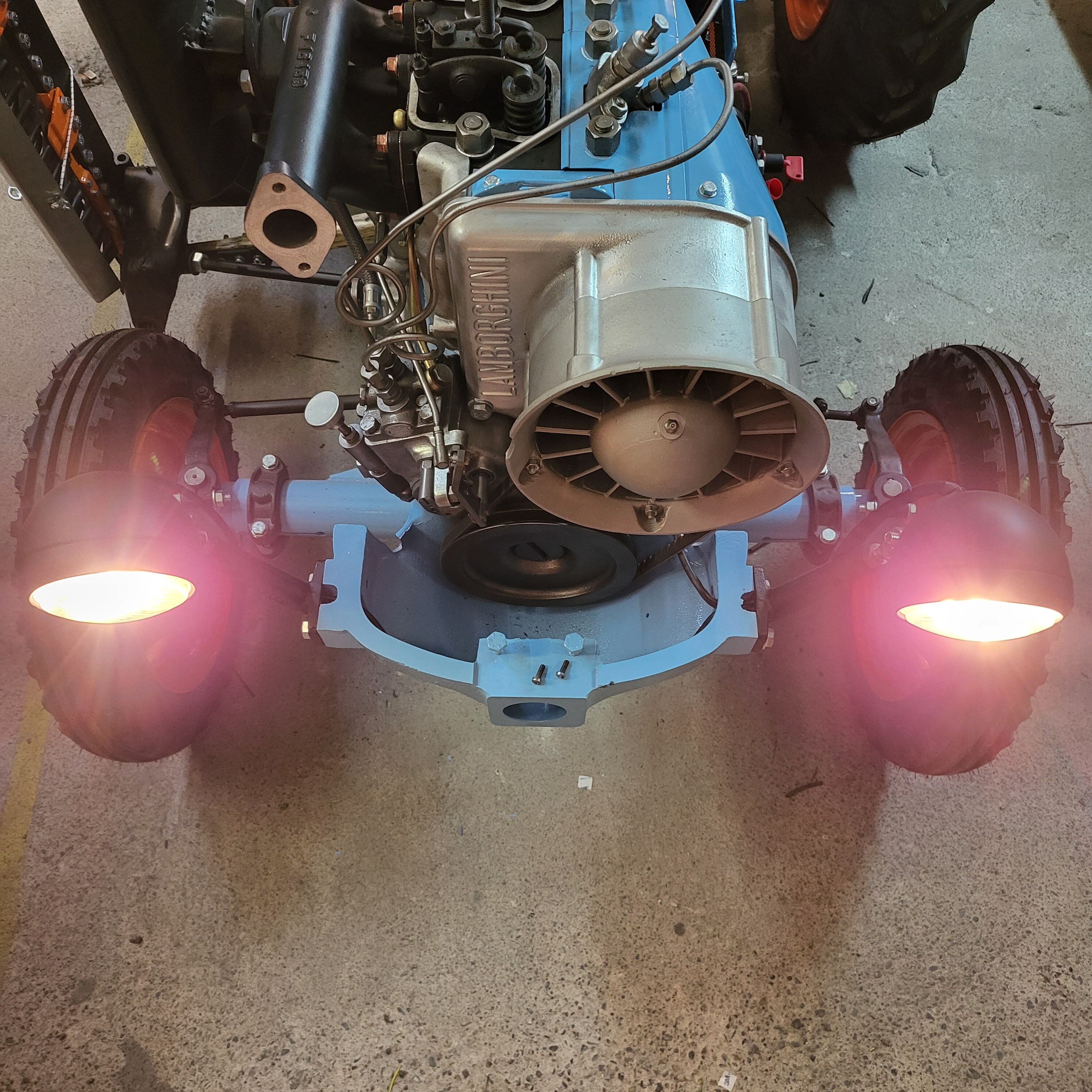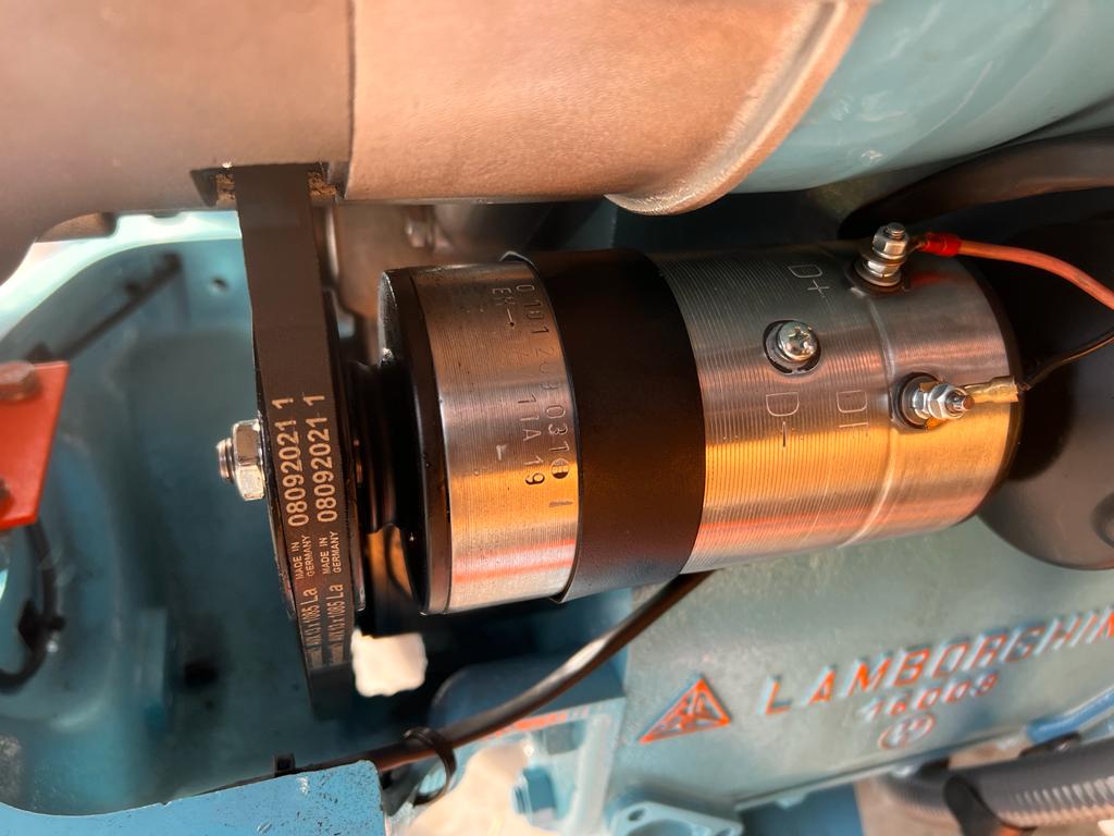 Vom verschraubten Mähbalken mit Flugrost, festgegammelten Leitungen und Jahrzehnten Obstwiesen-Patina – bis genau hier: Abdeckung runter. Zündung. Der FL-2 Zweizylinder erwacht, läuft sauber, nimmt willig Gas an. Ein Lamborghini 1R von 1967, technisch neu aufgebaut, optisch authentisch – bereit für sein zweites Leben zwischen den Baumreihen.