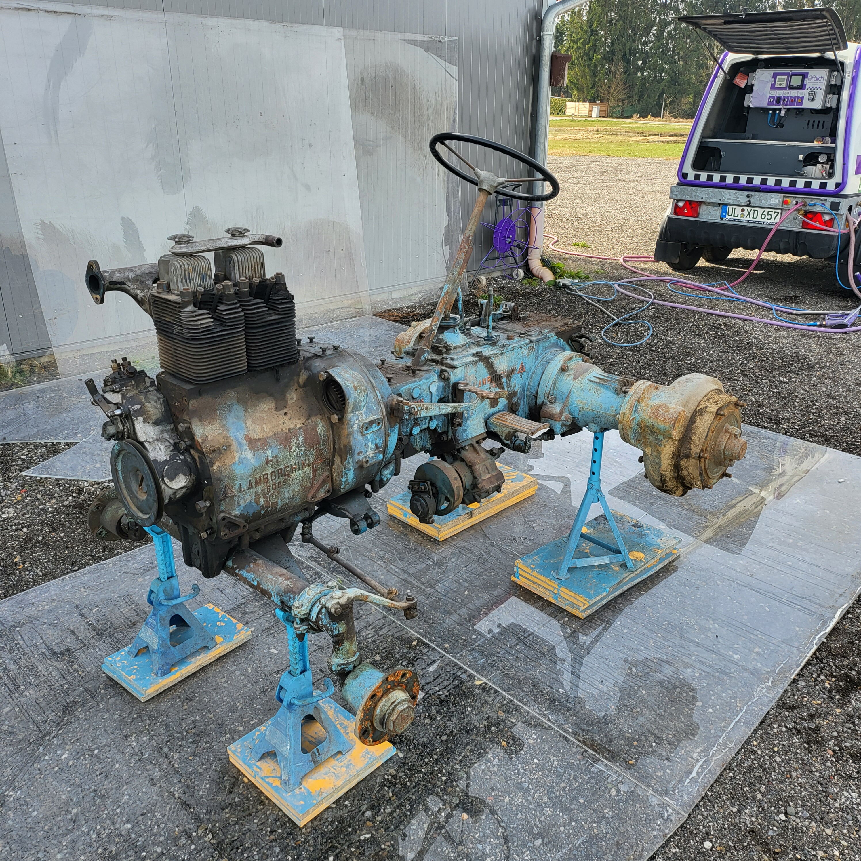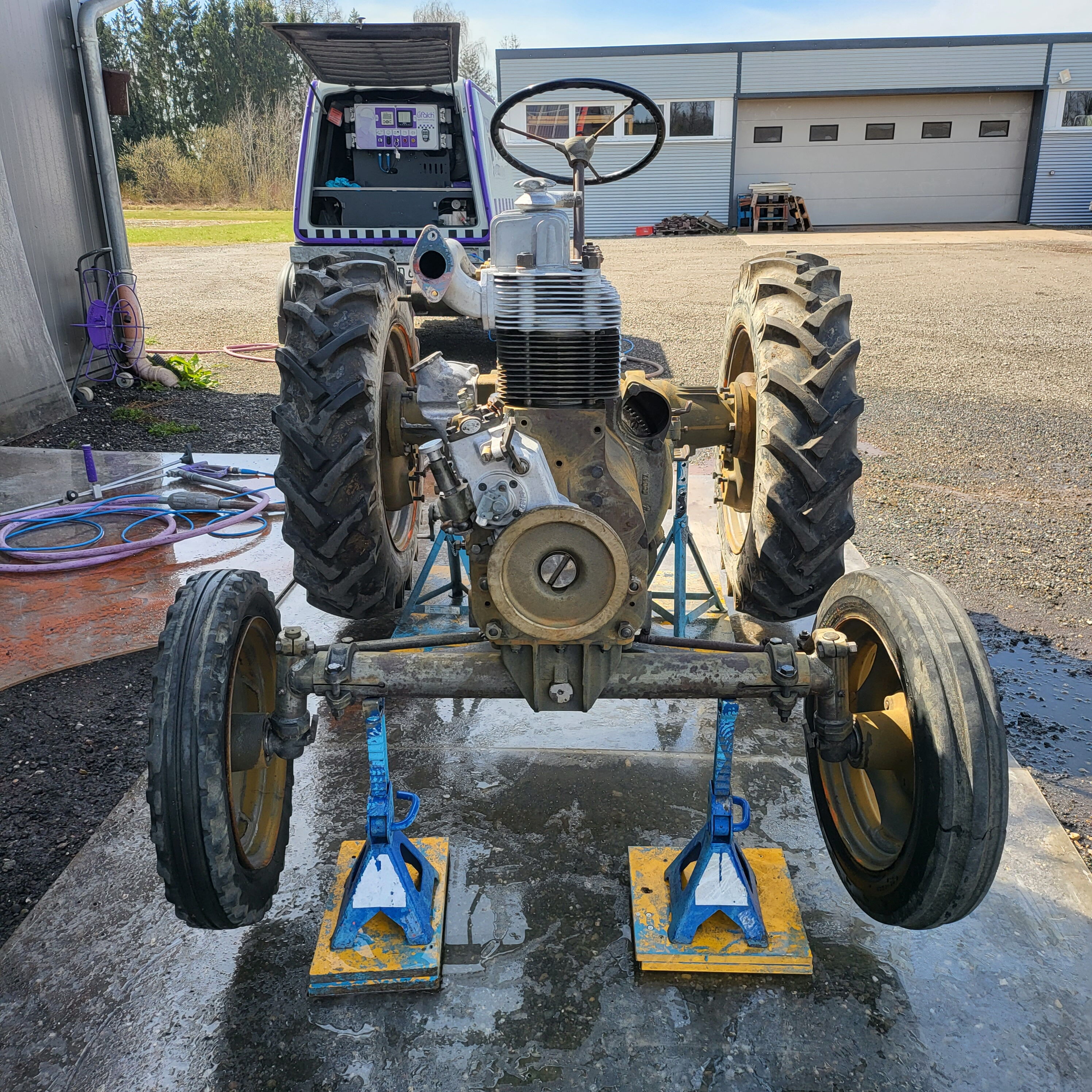 Du hast gesehen, was es brauchte: komplette Zerlegung, vermessene Wellen, überholte Einspritzung, neue Kabelbäume, Lager, Dichtungen. Originalteile bewahrt, Fehlteile nachgefertigt, alles dokumentiert. Schmale Spur, niedrige Bauhöhe – die DNA eines Obstwiesen-Spezialisten, jetzt präziser als je zuvor.