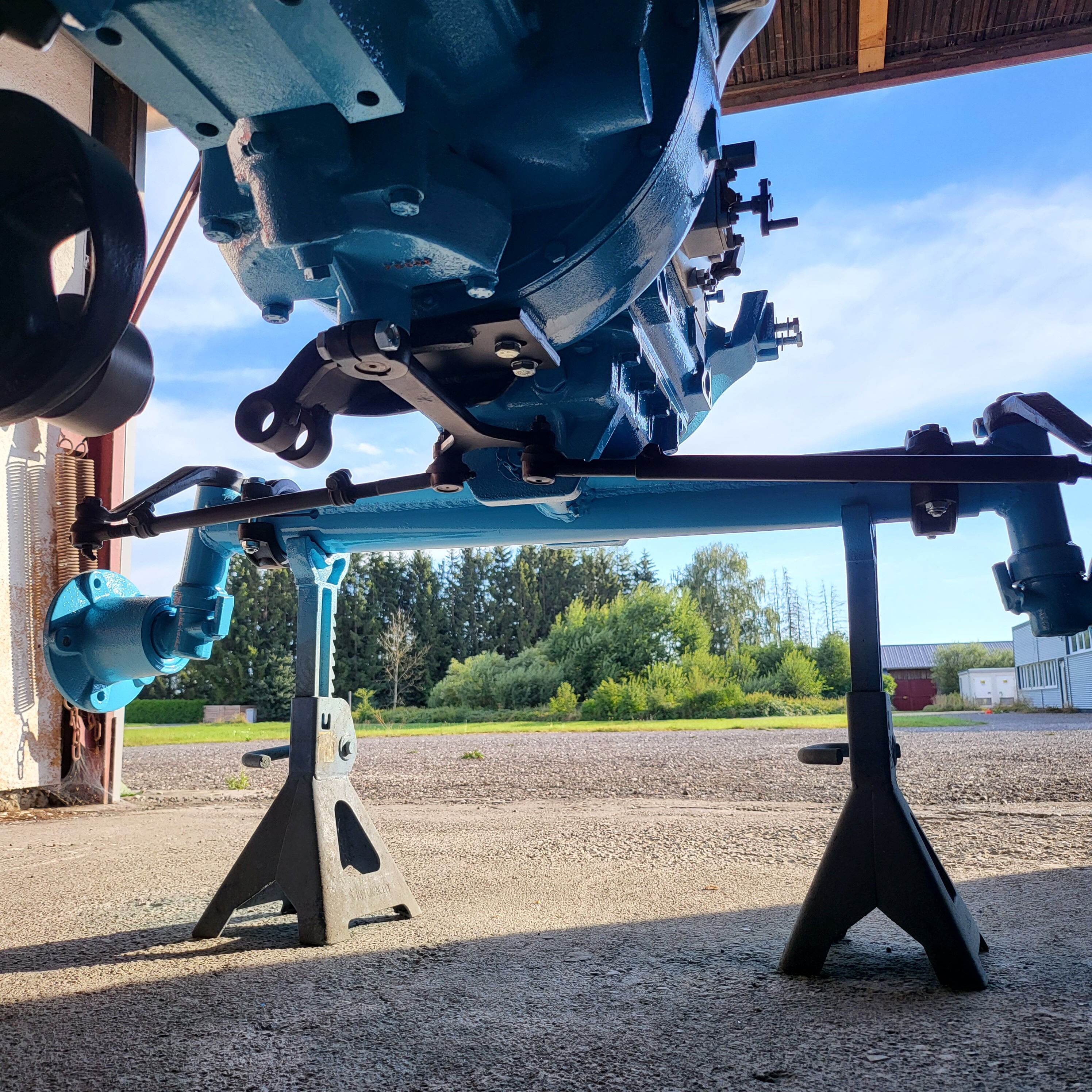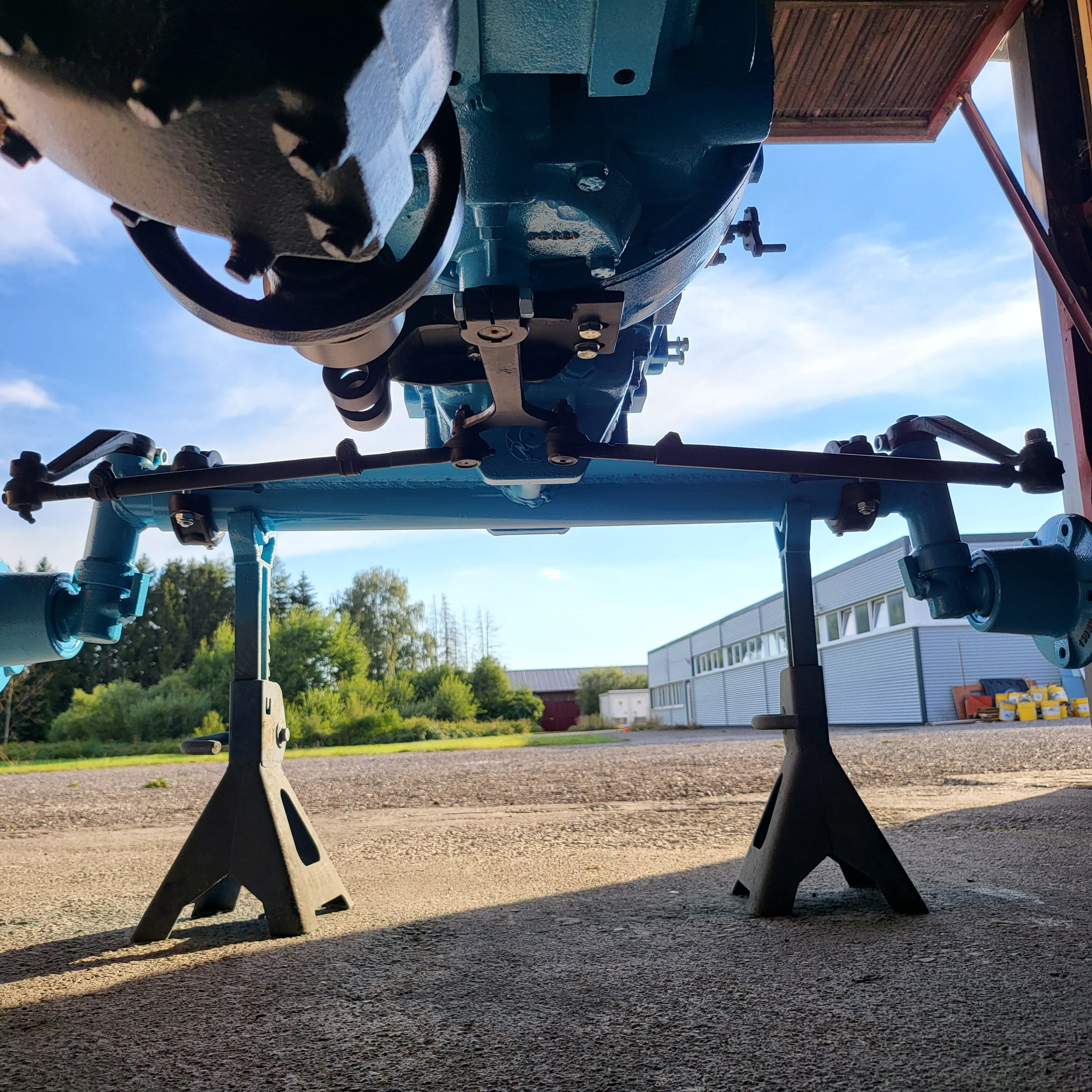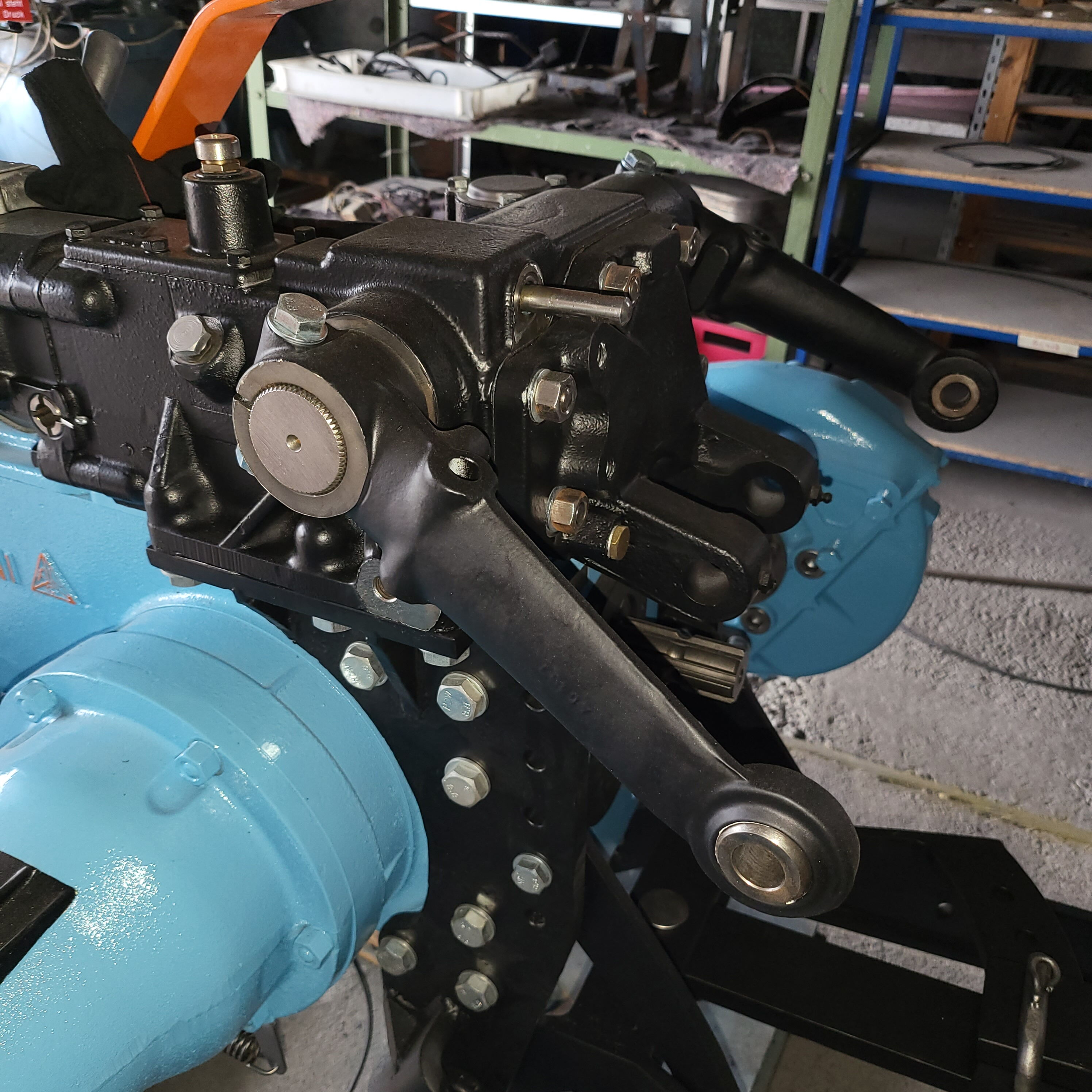 Gehäuse geöffnet, Verzahnungen/Lager/Passungen geprüft und protokolliert. Dichtpakete konsequent neu (AT-Spezifikation). Achsen und Lager eingestellt, Bremsanlage überholt, Reibpartner konditioniert, Lenkspiel minimiert – für definierte Betätigungskräfte und klare Schaltbarkeit.