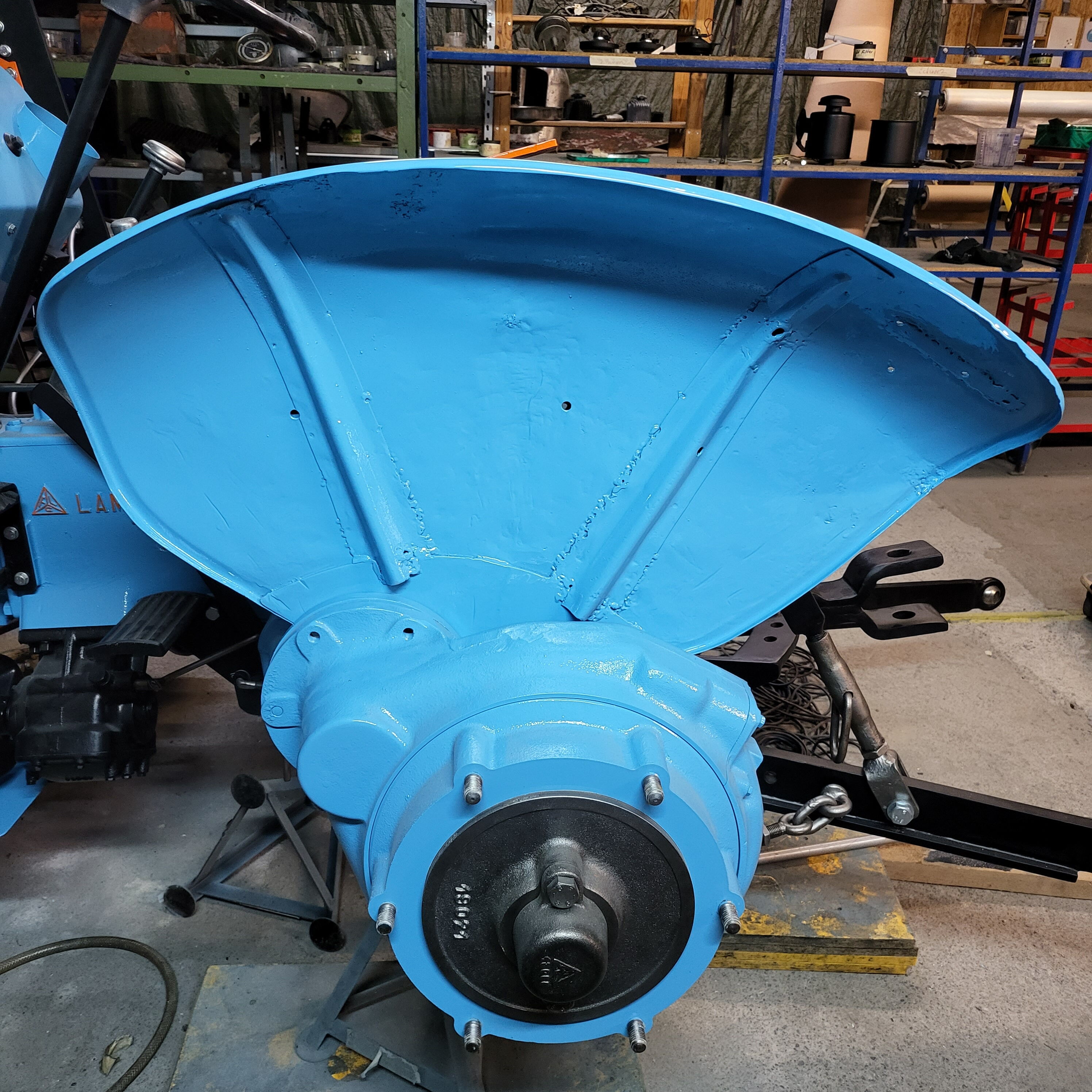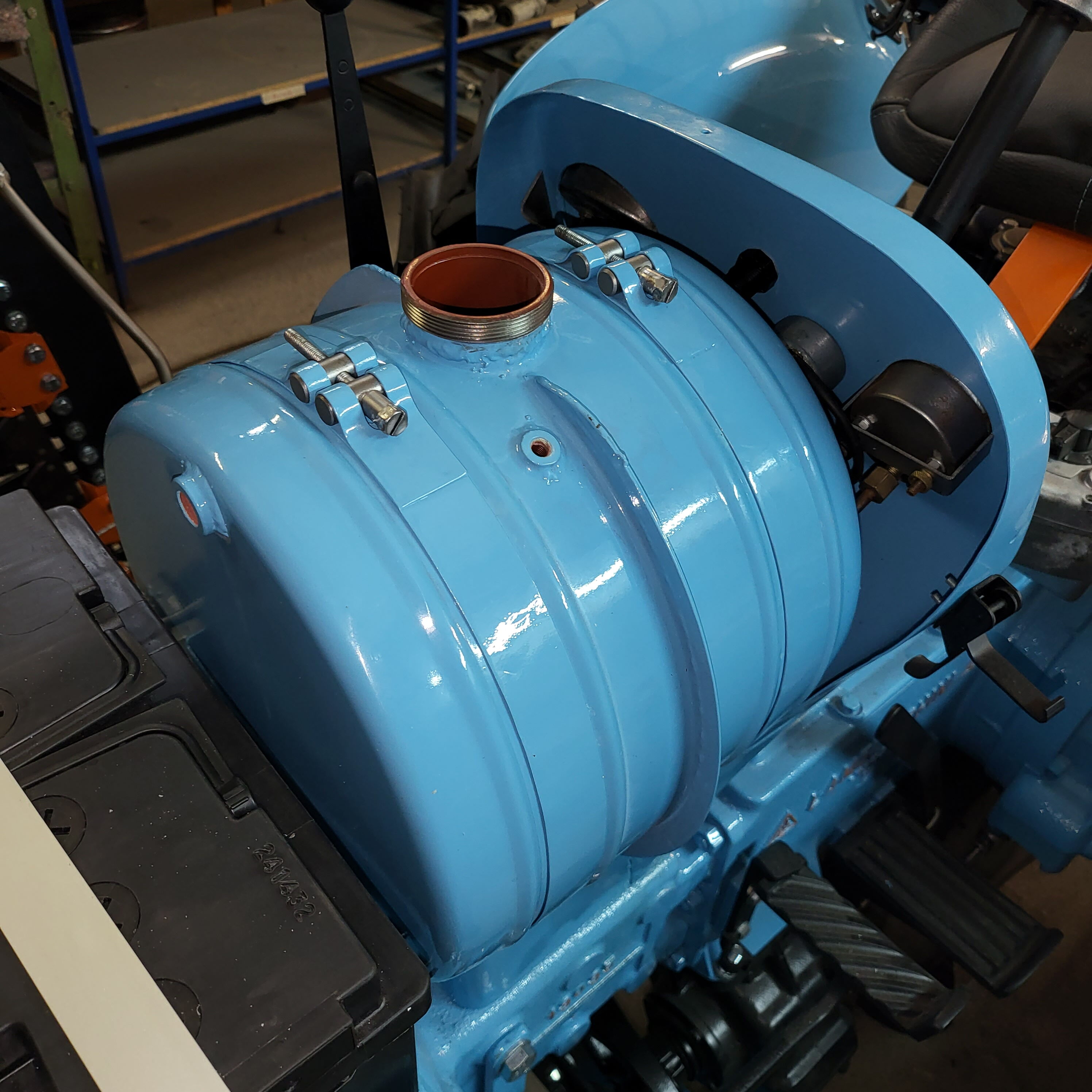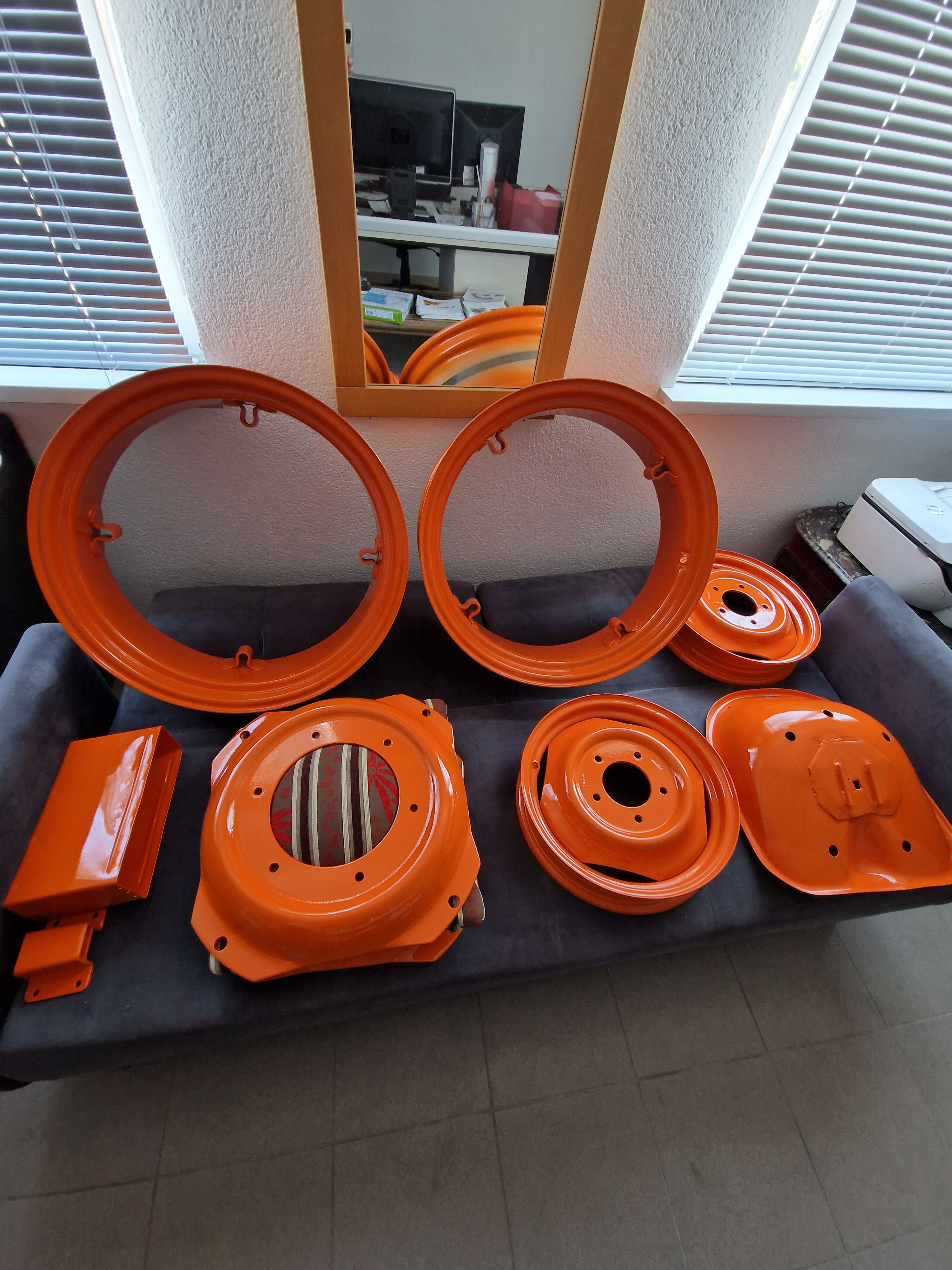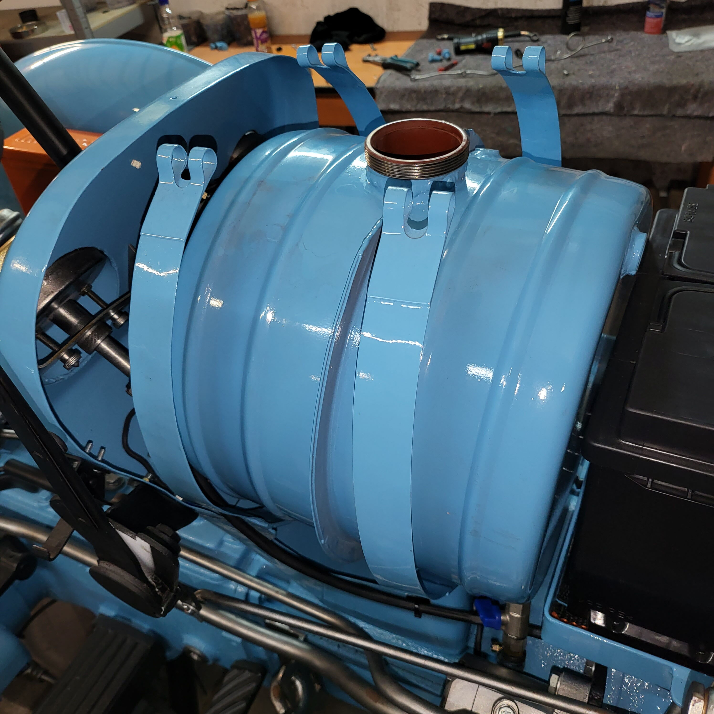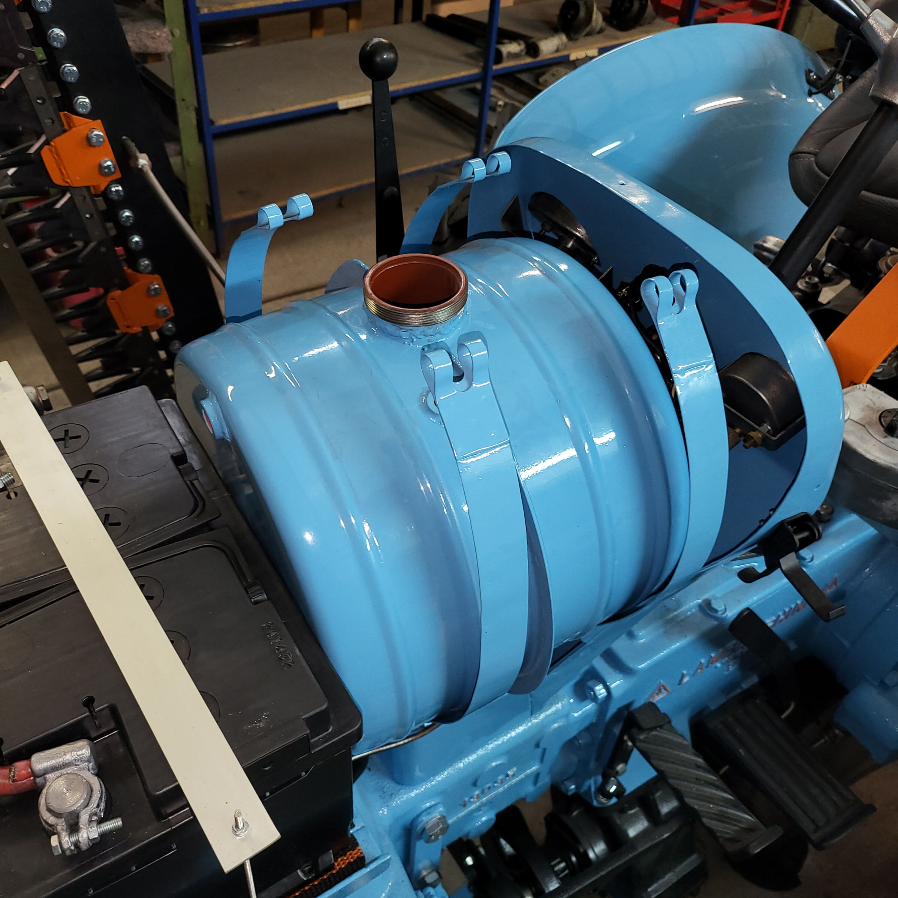 Vollzerlegung („Rahmen-off“) bis zur letzten Schraube. Elektrik komplett neu (moderne Verteilersysteme, neu gefertigter Kabelbaum, hochwertige Steck-/Crimpverbindungen; Sicherungen nur, wenn historisch vorgesehen). Alle Dichtungen neu, nach Traktormanufaktur-Spezifikation in Österreich gefertigt und verbaut. Anlasserzahnkranz wird grundsätzlich erneuert. Pulverbeschichtungen vieler Teile (bewegliche Komponenten überwiegend schwarz); Felgen mit Hochglanz-Pulverbeschichtung; Sichtteile periodenkorrekt lackiert. Original-Traktormeter in Originalausführung vom damaligen Originalhersteller nachproduziert. ID-gebundene Fotodokumentation & Monatschronik.