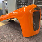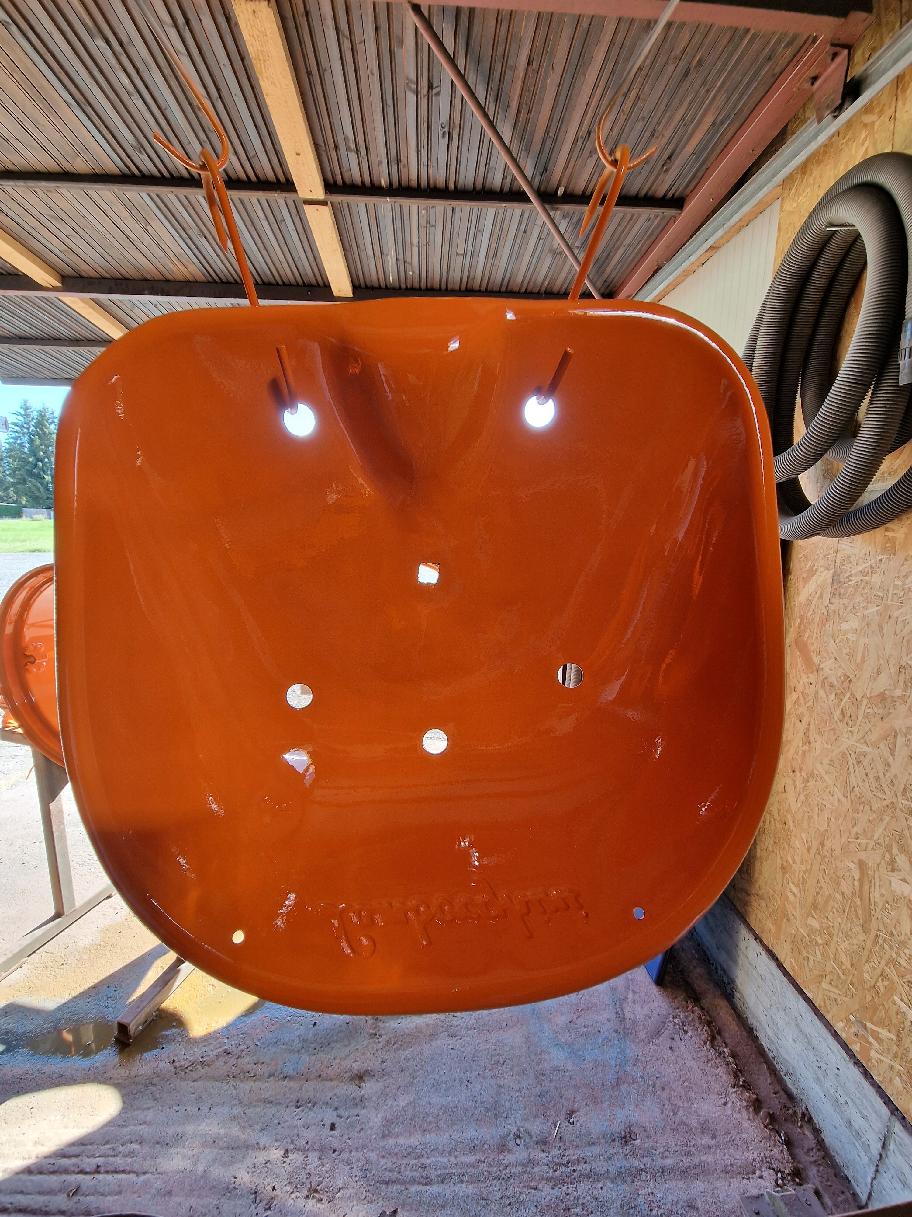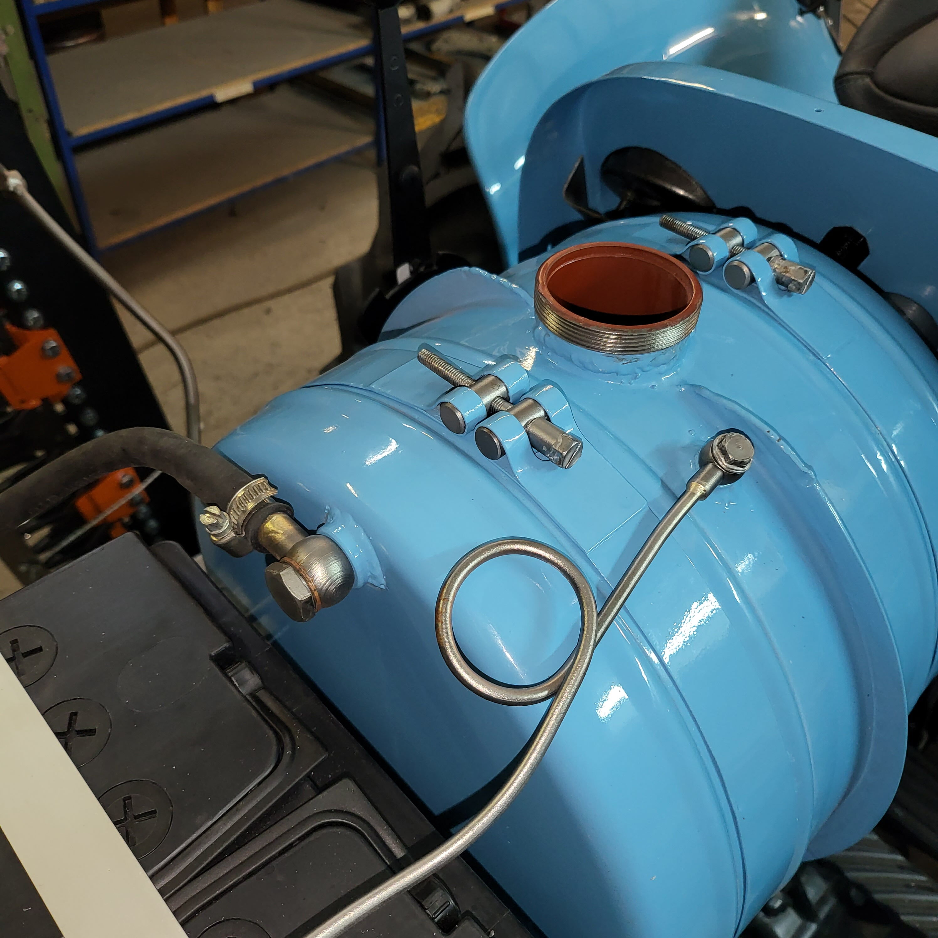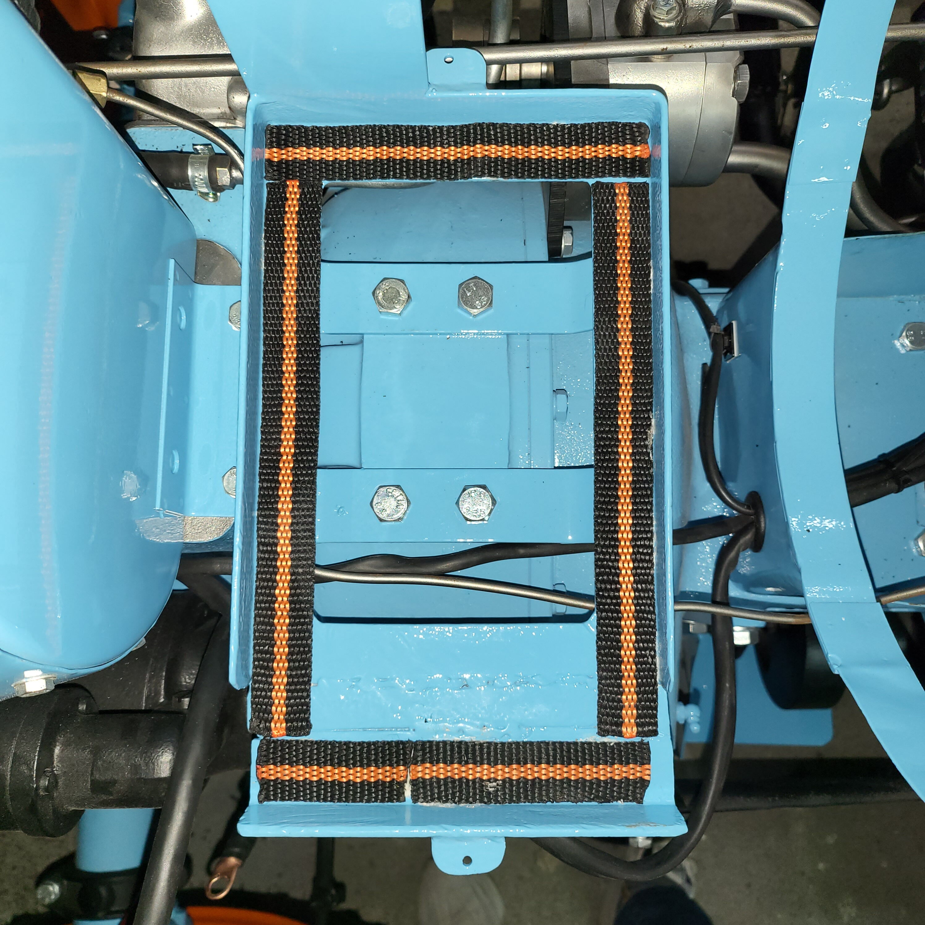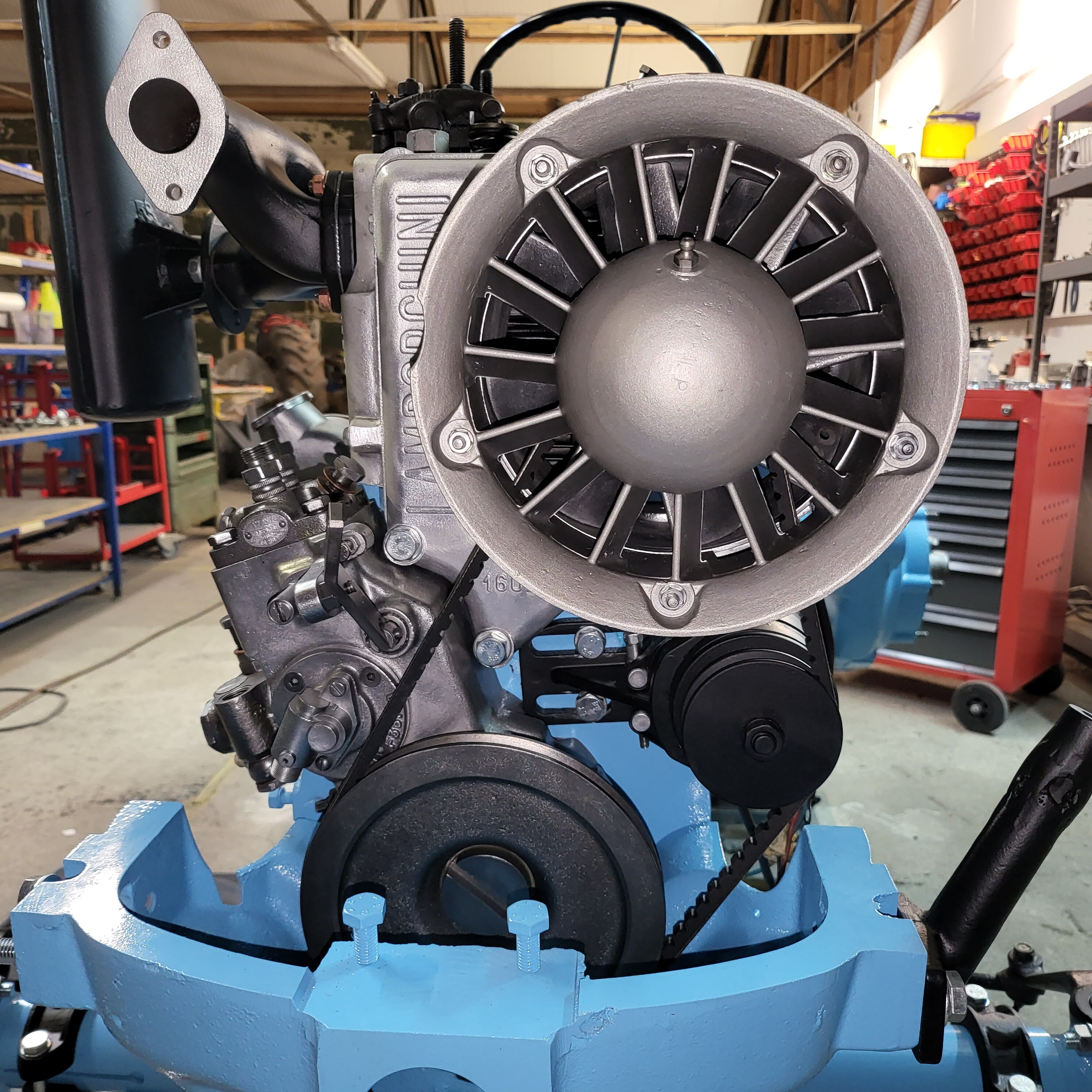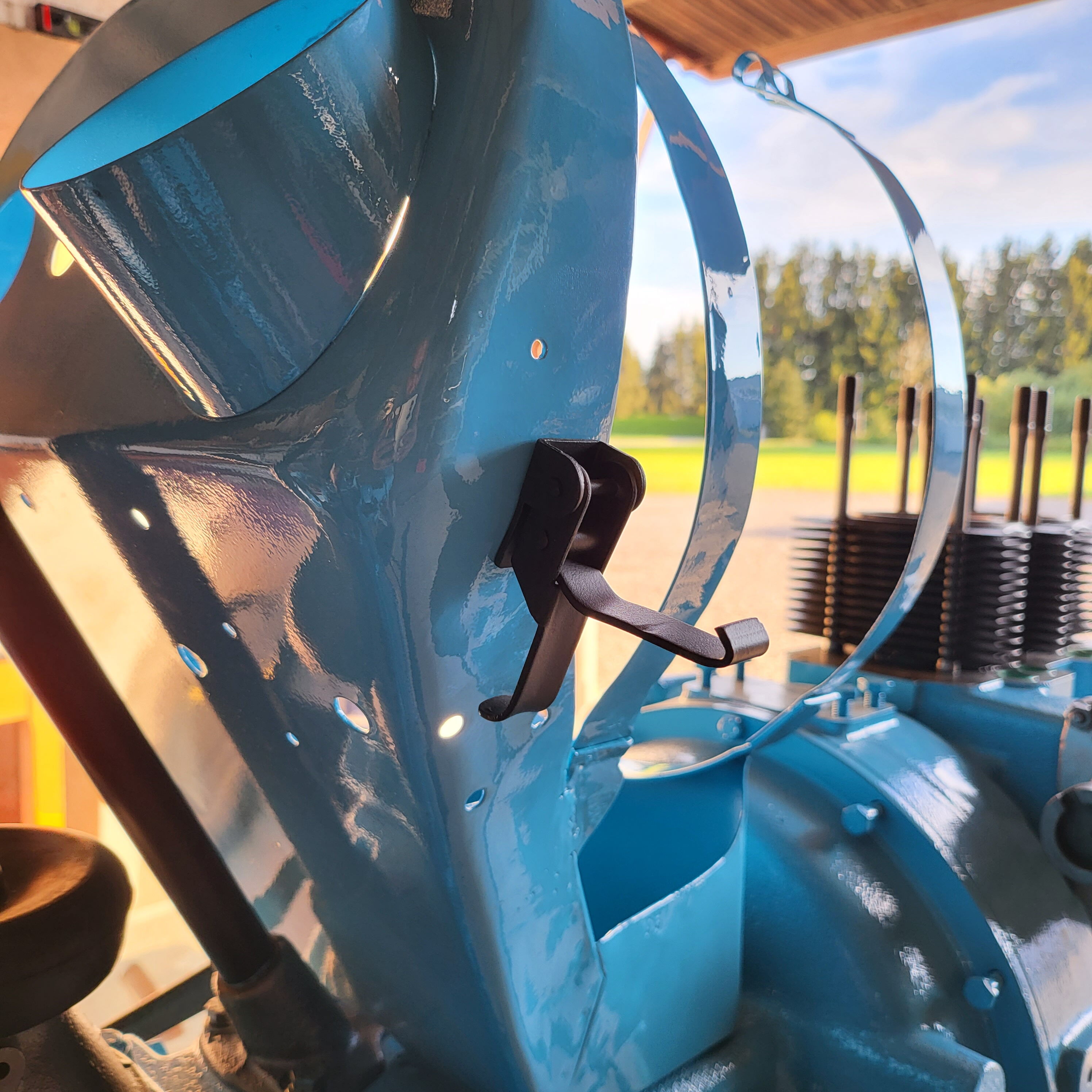 Vollzerlegung („Rahmen-off“) bis zur letzten Schraube. Elektrik komplett neu (moderne Verteilersysteme, neu gefertigter Kabelbaum, hochwertige Steck-/Crimpverbindungen; Sicherungen nur, wenn historisch vorgesehen). Alle Dichtungen neu, nach Traktormanufaktur-Spezifikation in Österreich gefertigt und verbaut. Anlasserzahnkranz wird grundsätzlich erneuert. Pulverbeschichtungen vieler Teile (bewegliche Komponenten überwiegend schwarz); Felgen mit Hochglanz-Pulverbeschichtung; Sichtteile periodenkorrekt lackiert. Original-Traktormeter in Originalausführung vom damaligen Originalhersteller nachproduziert. ID-gebundene Fotodokumentation & Monatschronik.