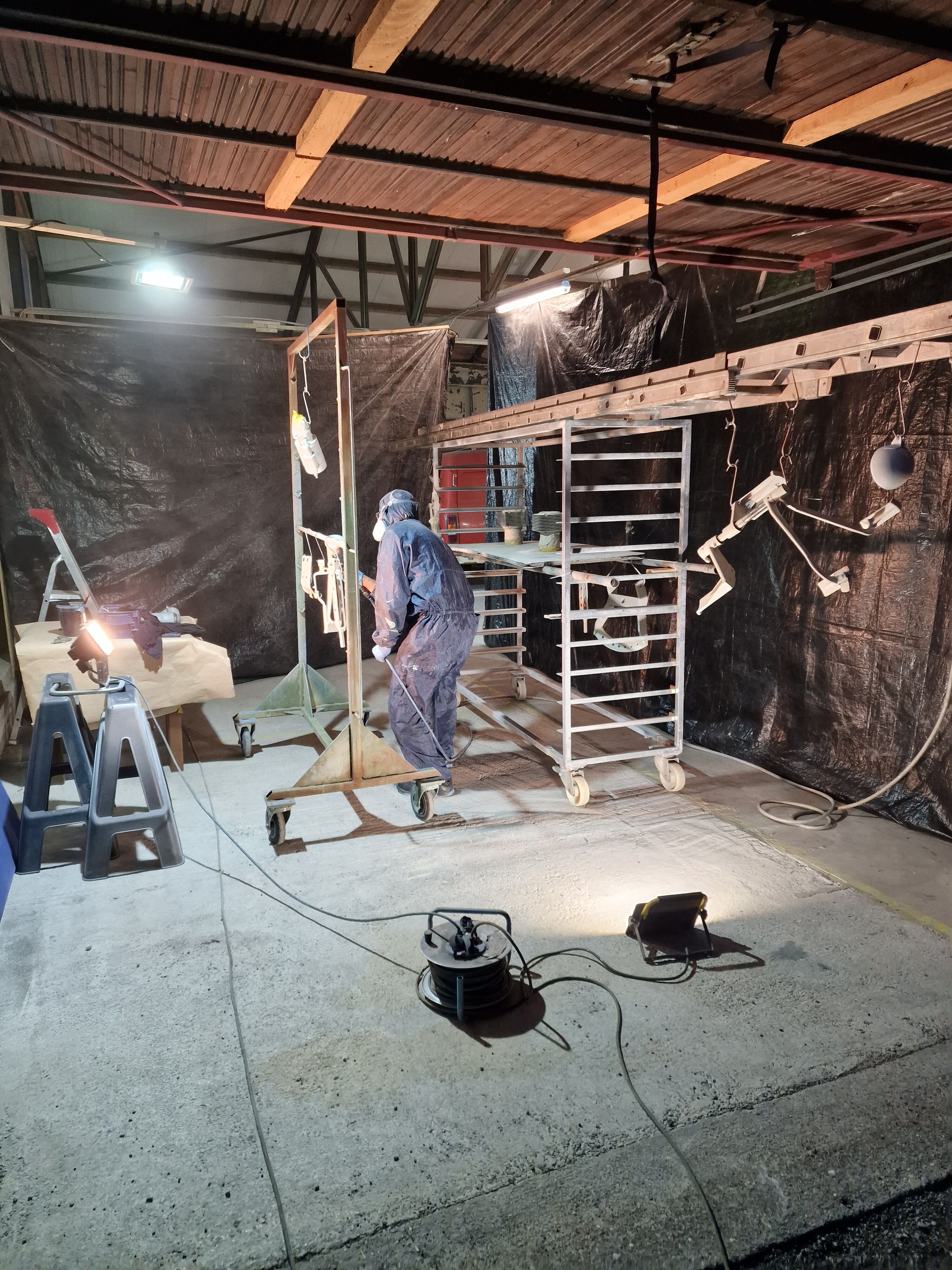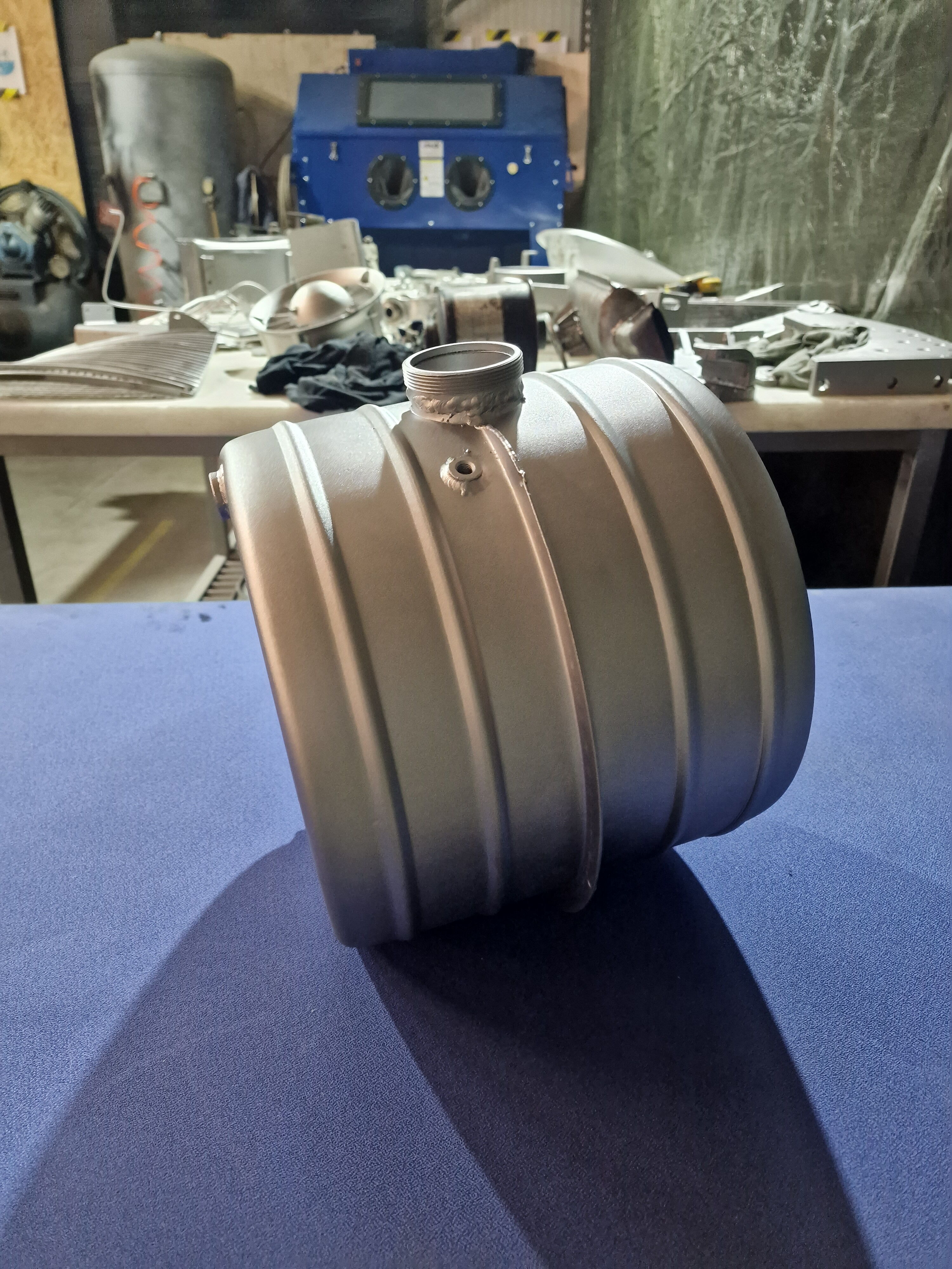 Werkstoffgerechtes Strahlen (Glasperlen-/Edelstahlkugelstrahlen je nach Legierung/Rauigkeit)