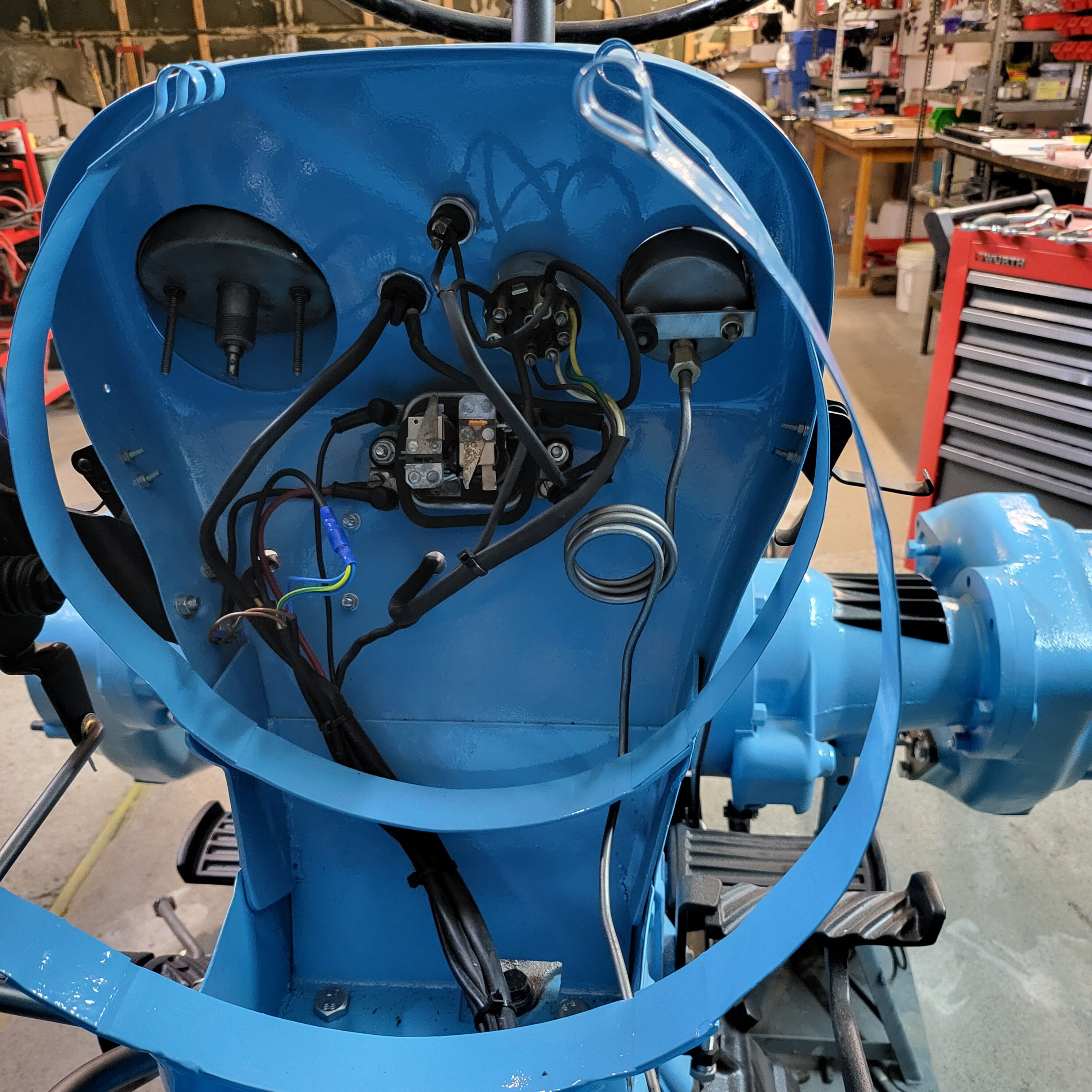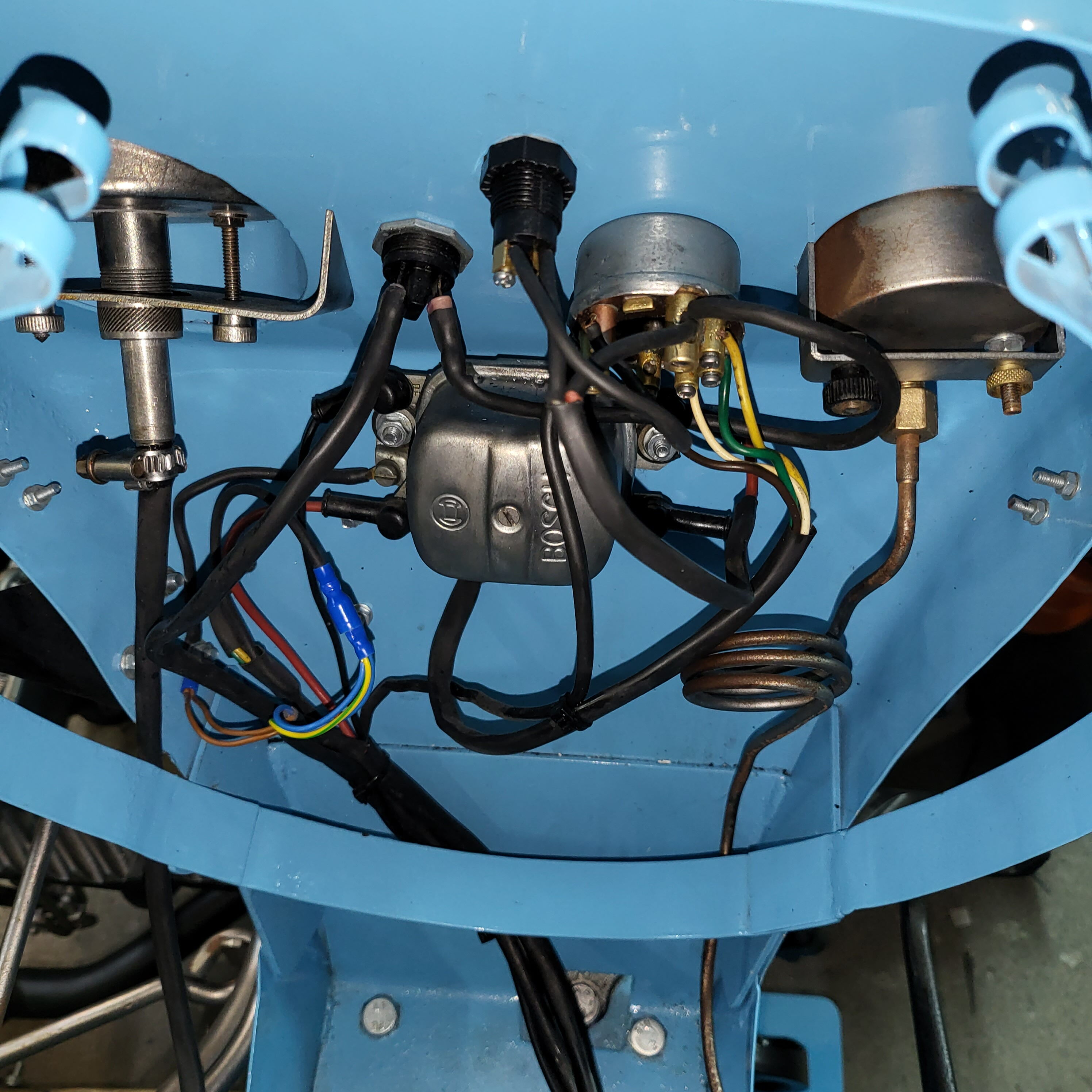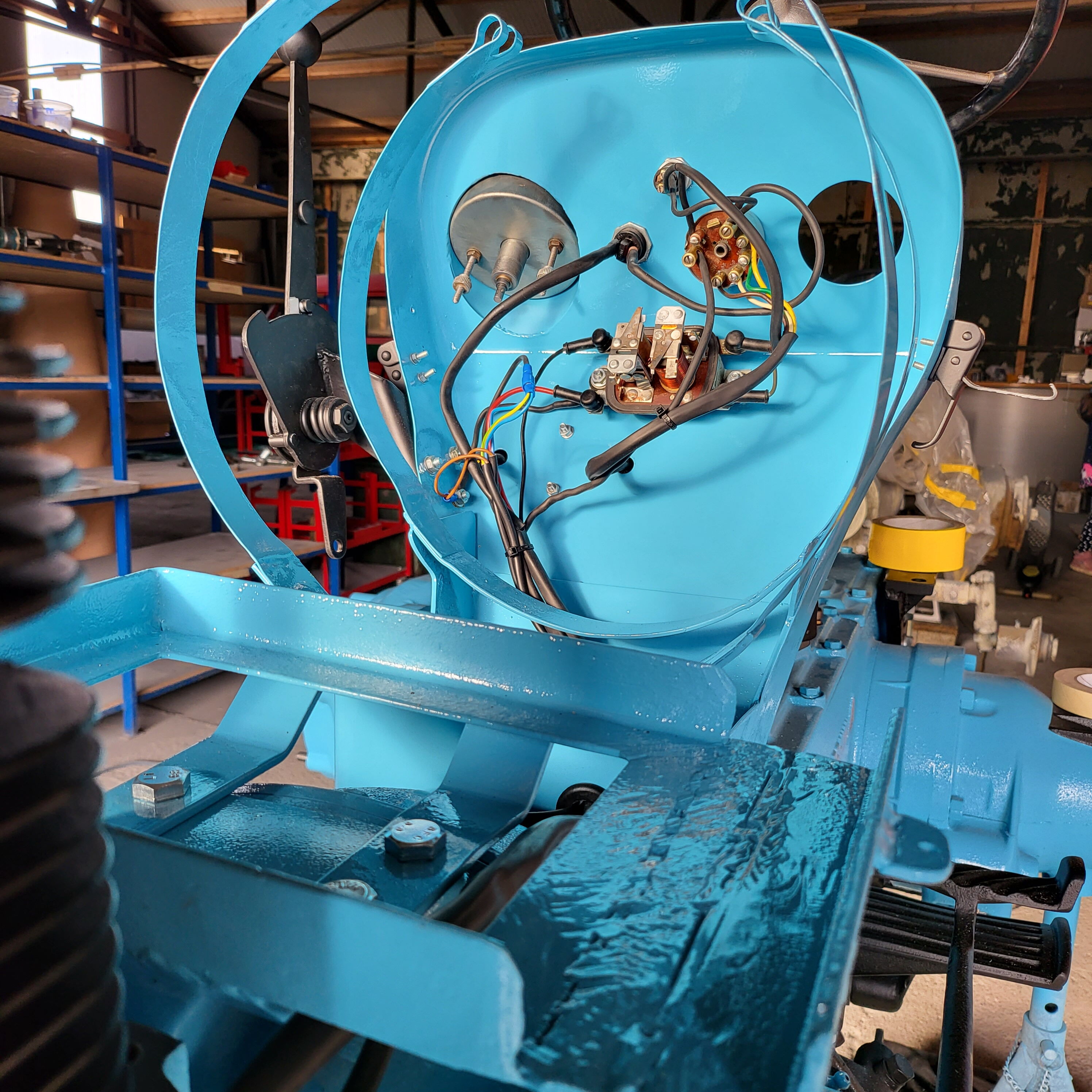 Neuaufbau mit modern dimensionierten Verteilersystemen, neu gefertigtem Kabelbaum und hochwertigen Steck-/Crimpverbindungen. Sicherungen nur, wenn historisch vorgesehen. Beleuchtung/Signale funktionssicher; Traktormeter in Originalausführung vom damaligen Originalhersteller nachproduziert.