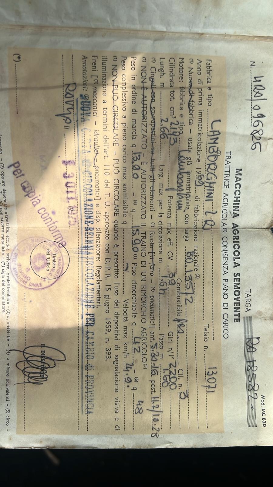 Baujahr 1969, Modell Lamborghini 2R (FL3-Diesel). Die TM-ID 053 verknüpft Befunde, Arbeitsschritte und Medien eindeutig. Ziel: belastbare Dokumentation mit geordneter Verfügbarkeit; Methodik und Qualitätsniveau werden monatsweise transparent.