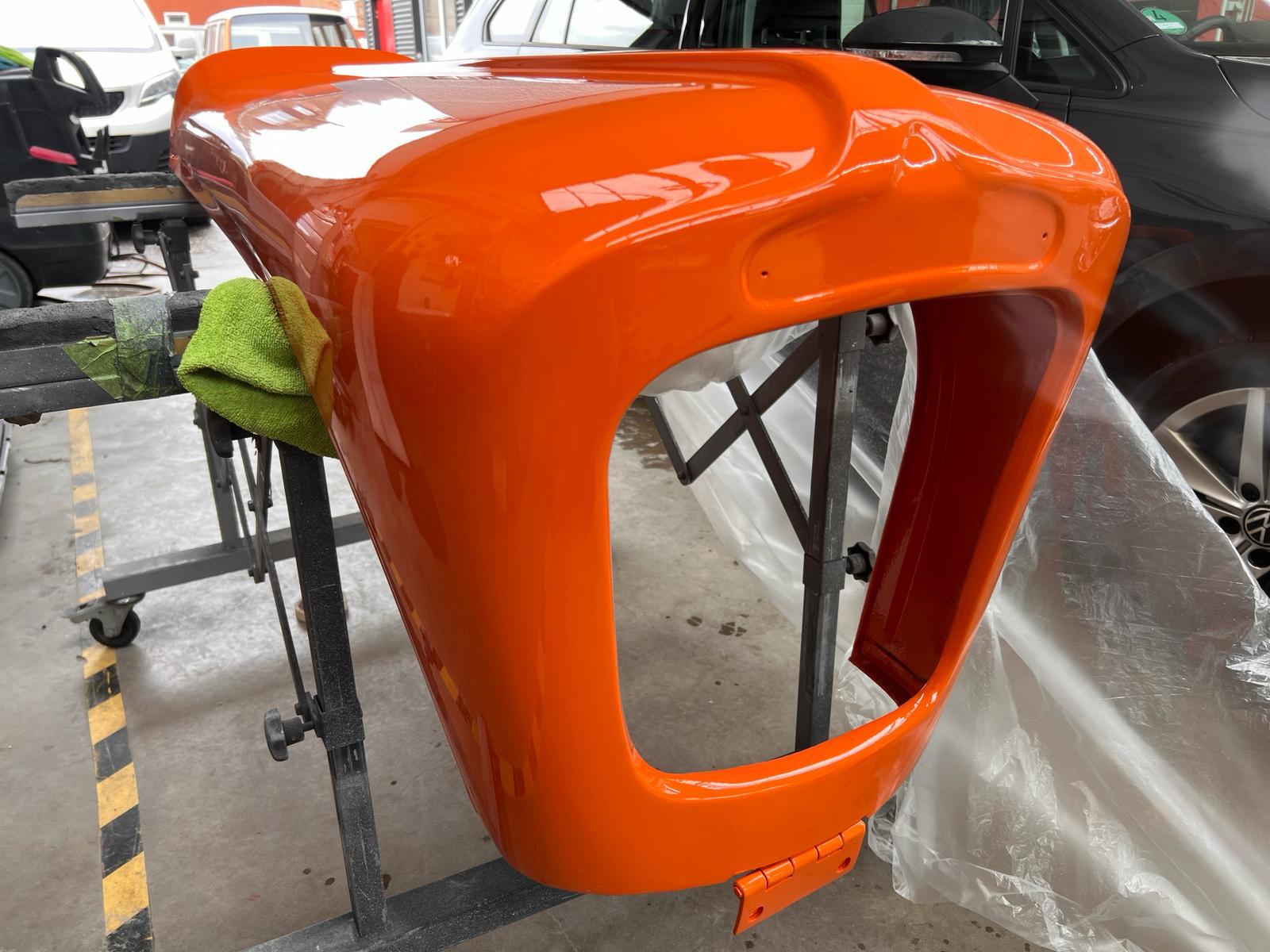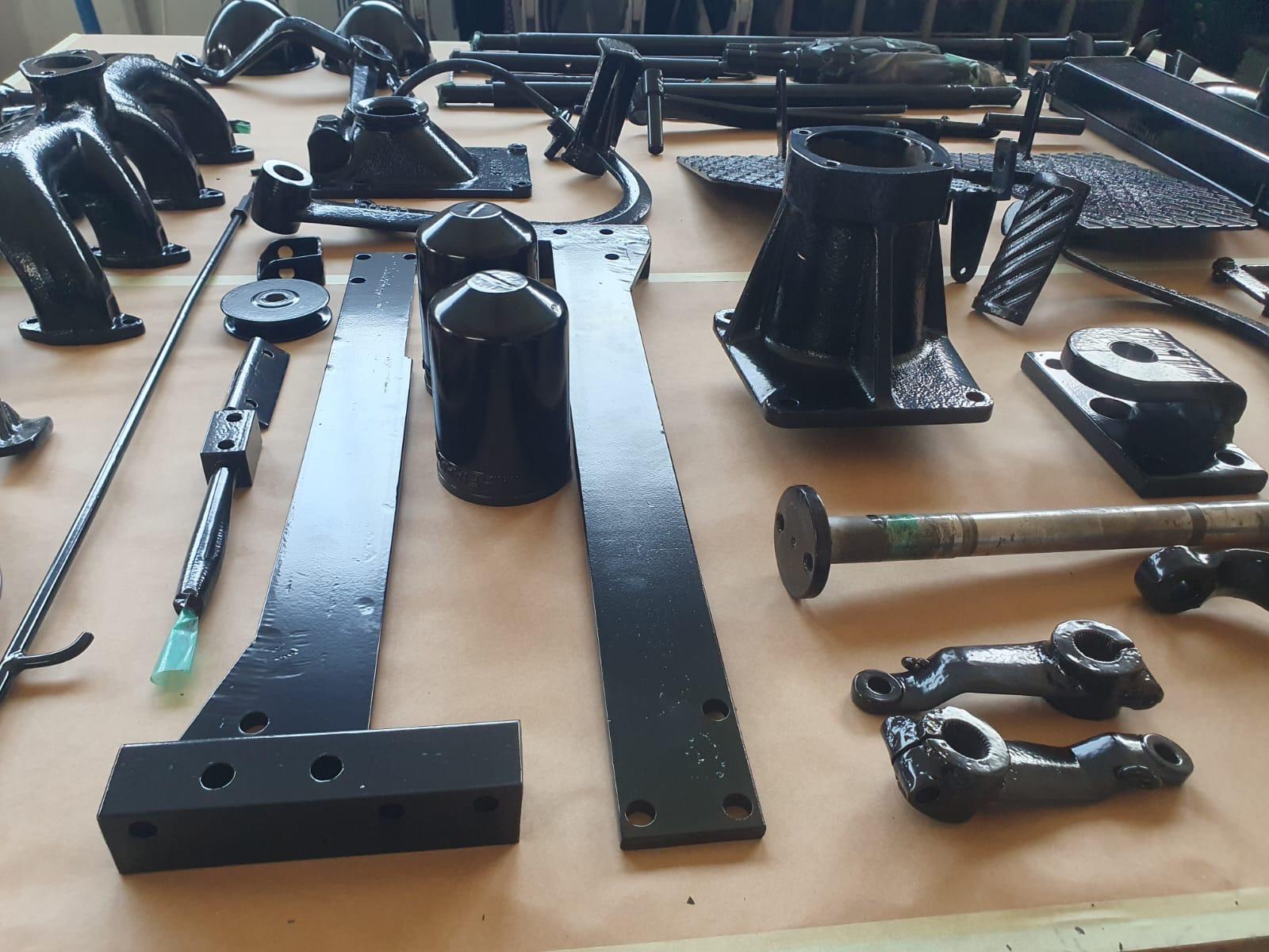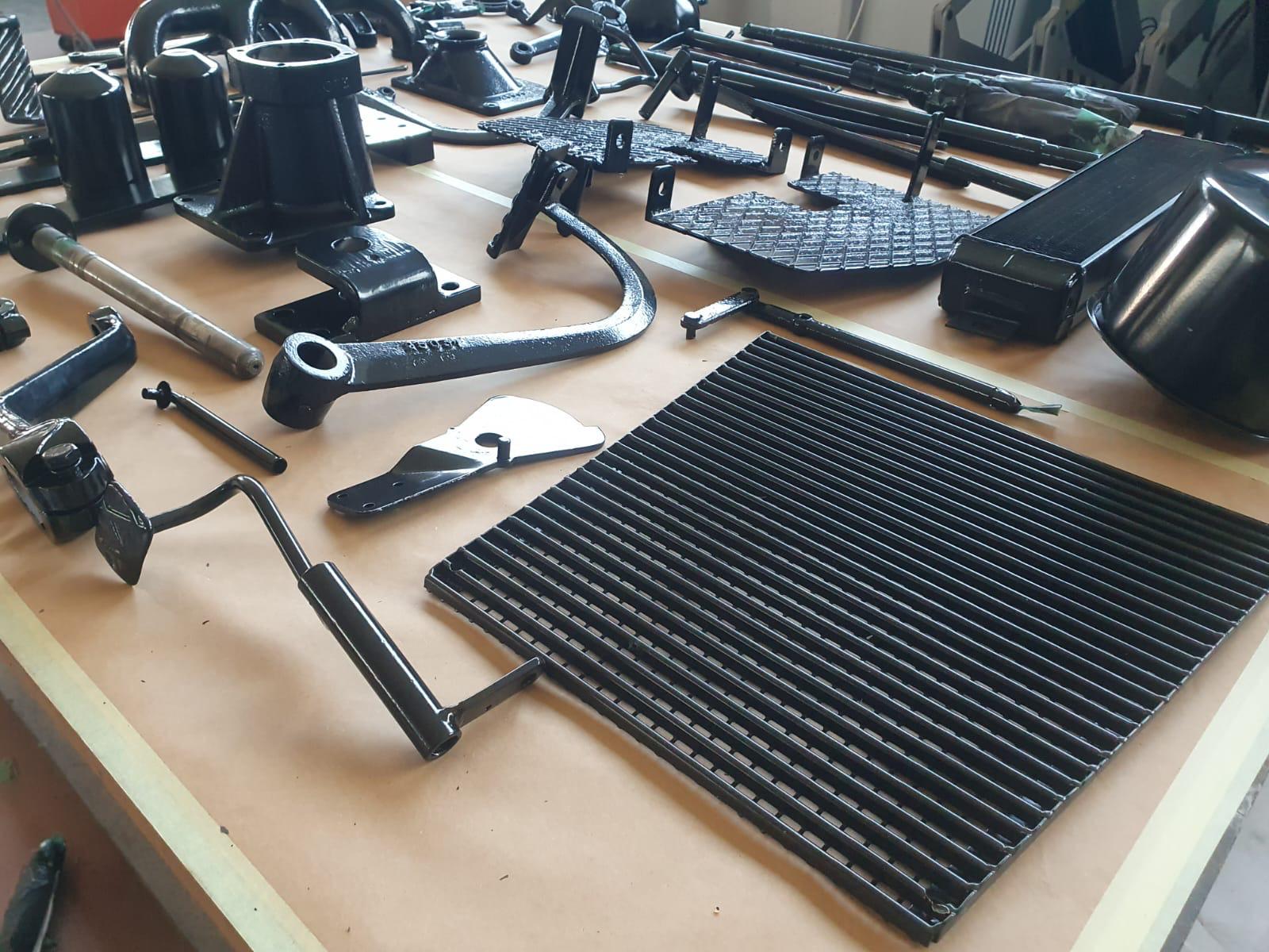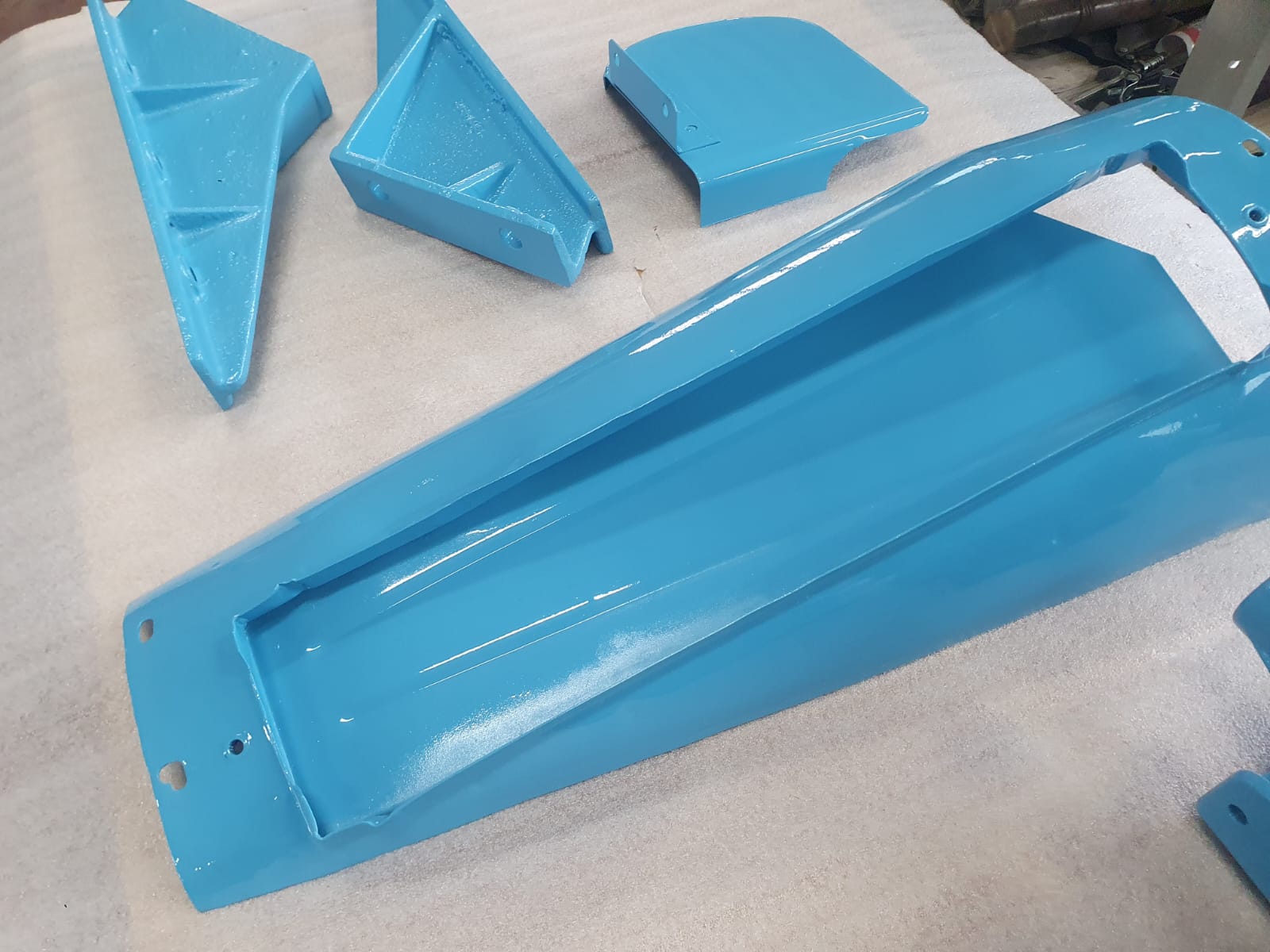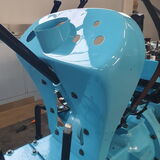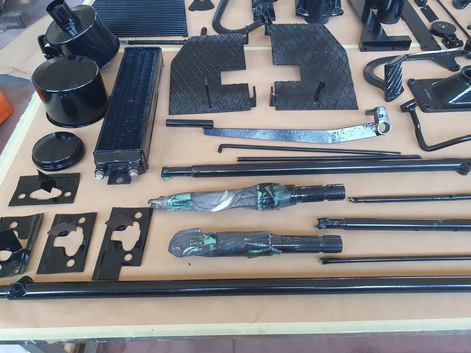 Professionelle Pulverbeschichtung vieler Bauteile; bewegliche Komponenten überwiegend schwarz pulverbeschichtet. Felgen mit Hochglanz-Pulverbeschichtung (Show-Quality-Finish). Sichtteile in periodenkorrekten Farbtönen lackiert. Umfassender Korrosionsschutz innen/außen.