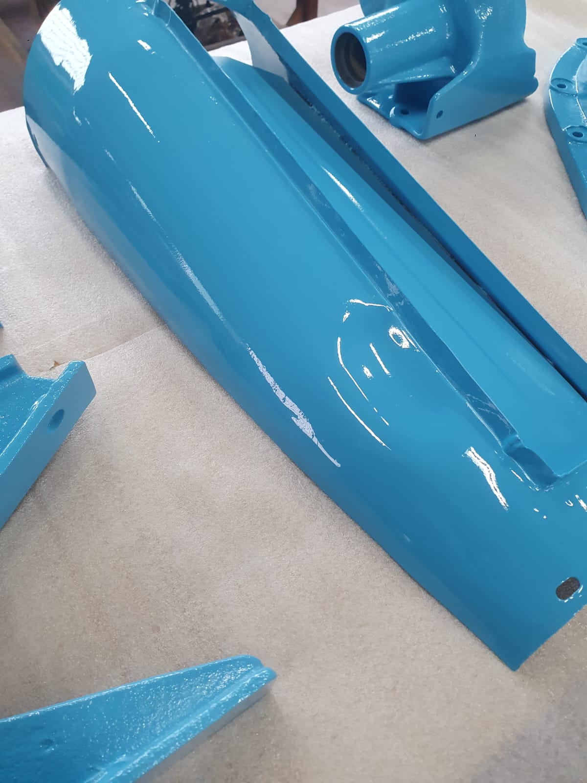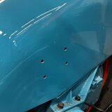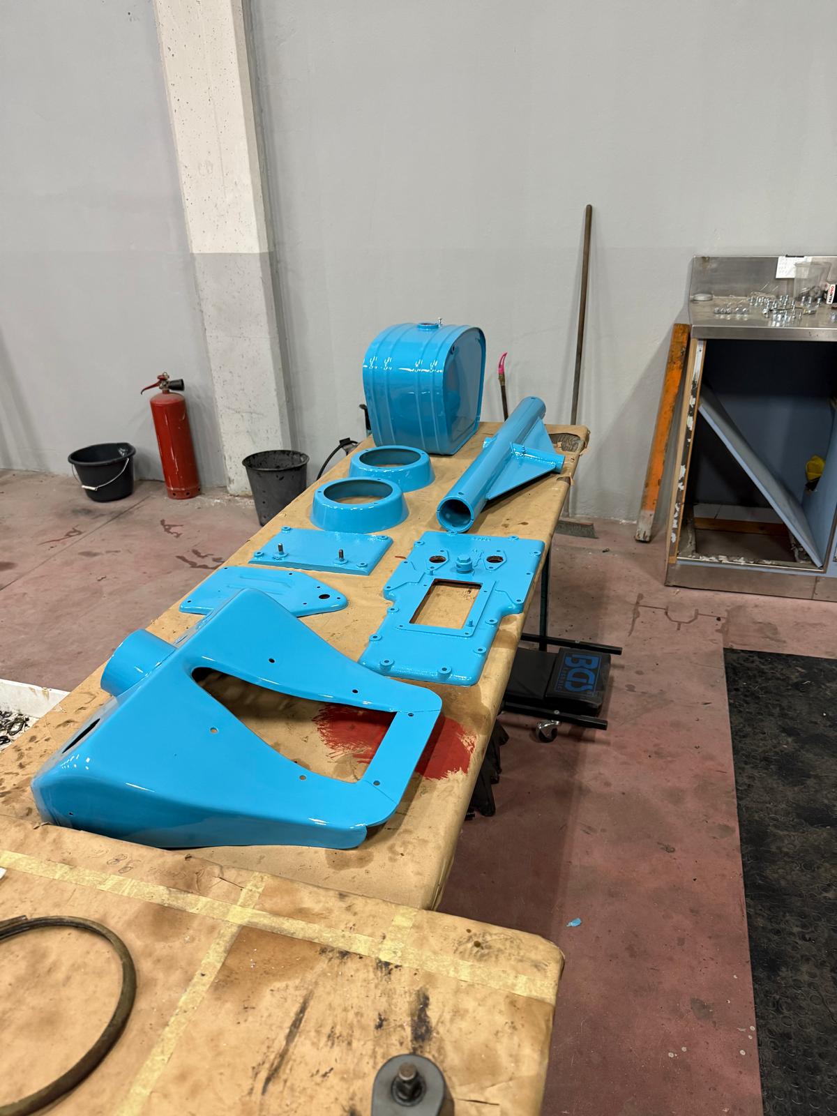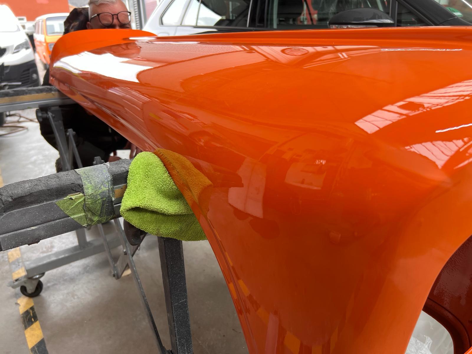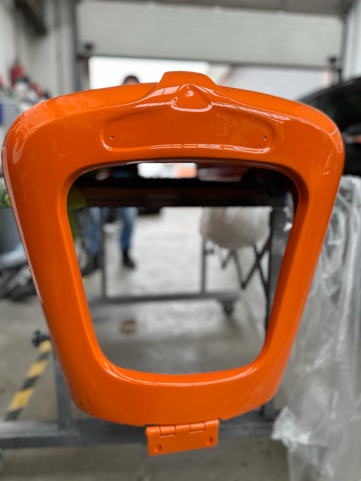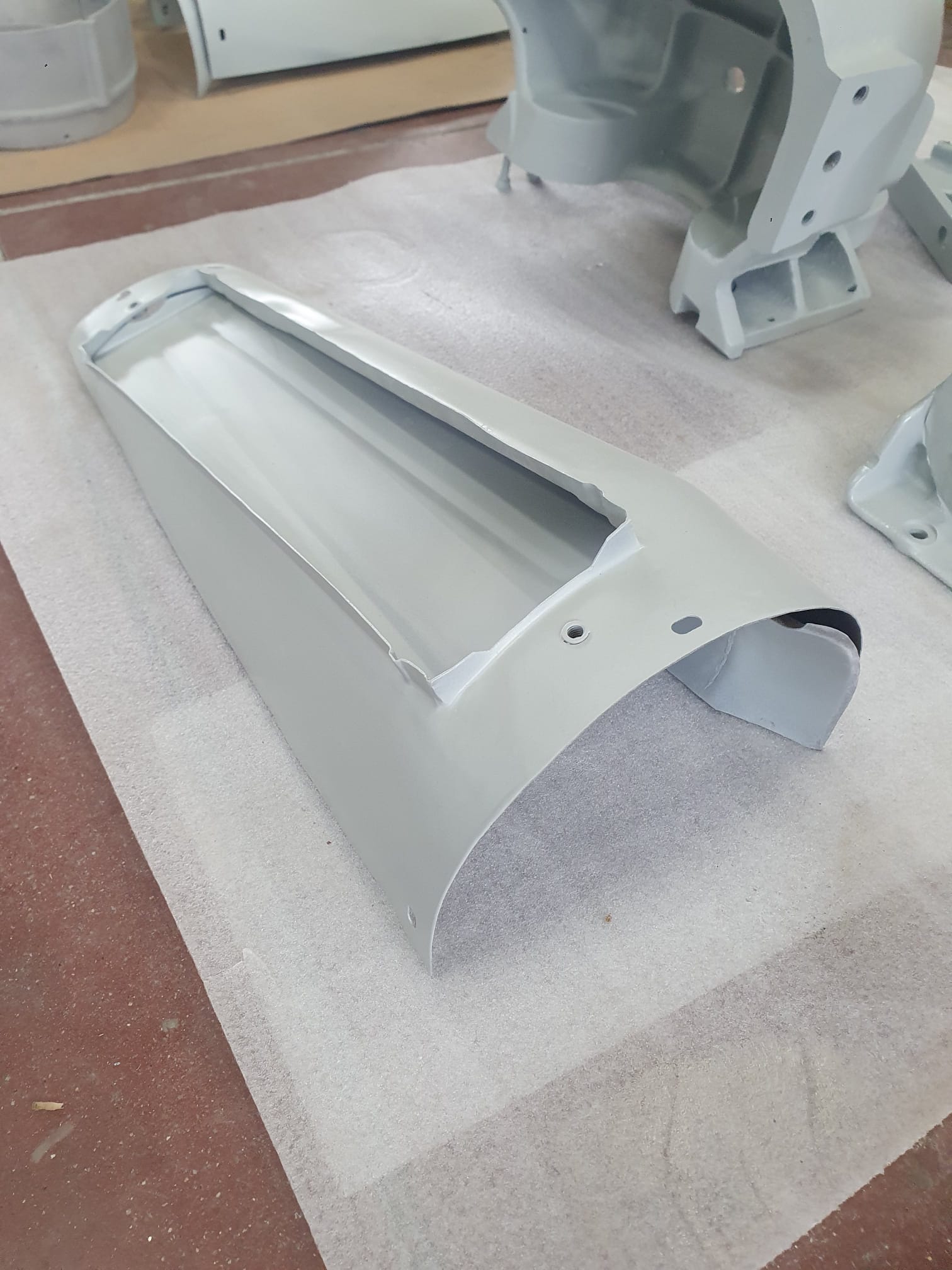 Professionelle Pulverbeschichtung vieler Bauteile; bewegliche Komponenten überwiegend schwarz pulverbeschichtet. Felgen mit Hochglanz-Pulverbeschichtung (Show-Quality-Finish). Sichtteile in periodenkorrekten Farbtönen lackiert. Umfassender Korrosionsschutz innen/außen.