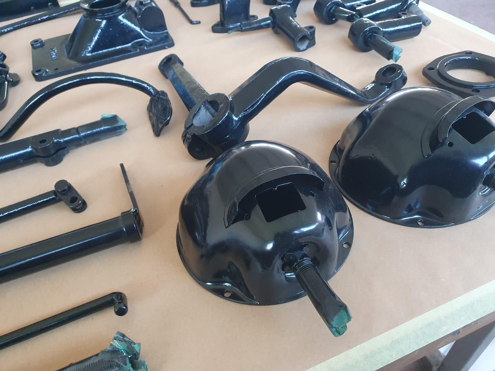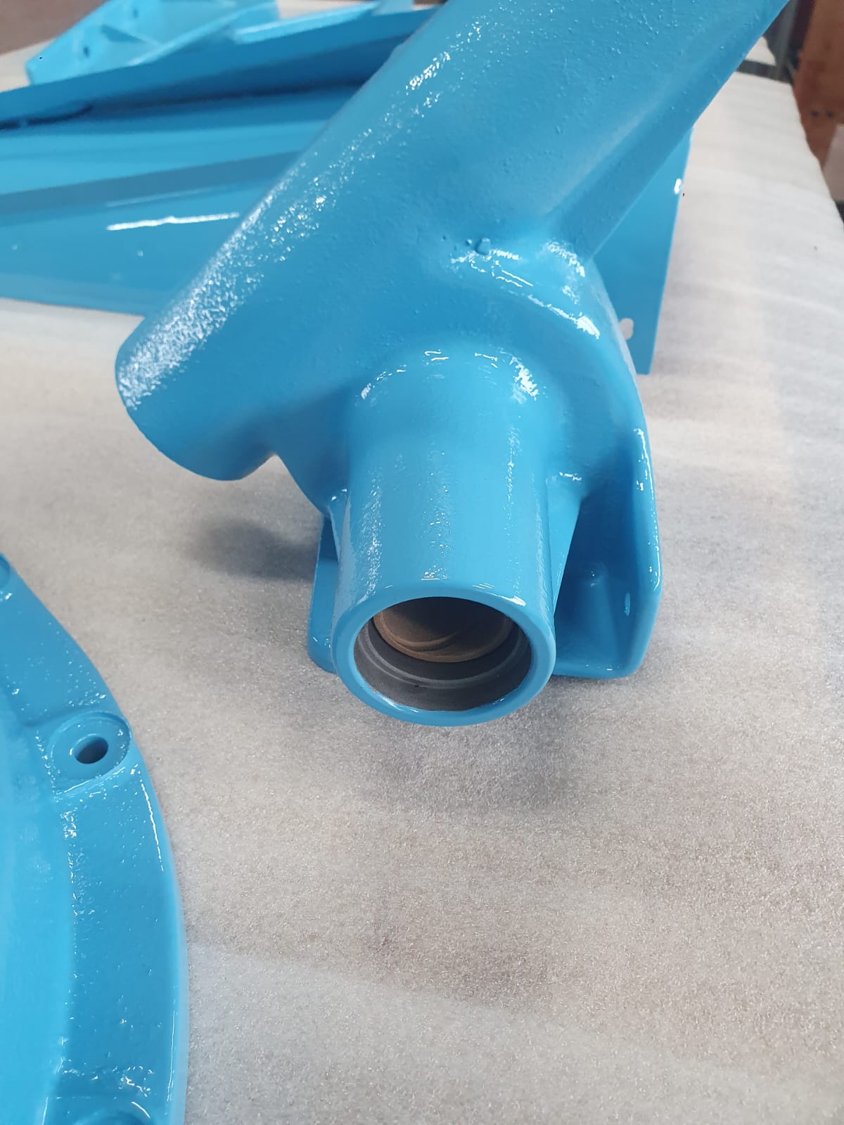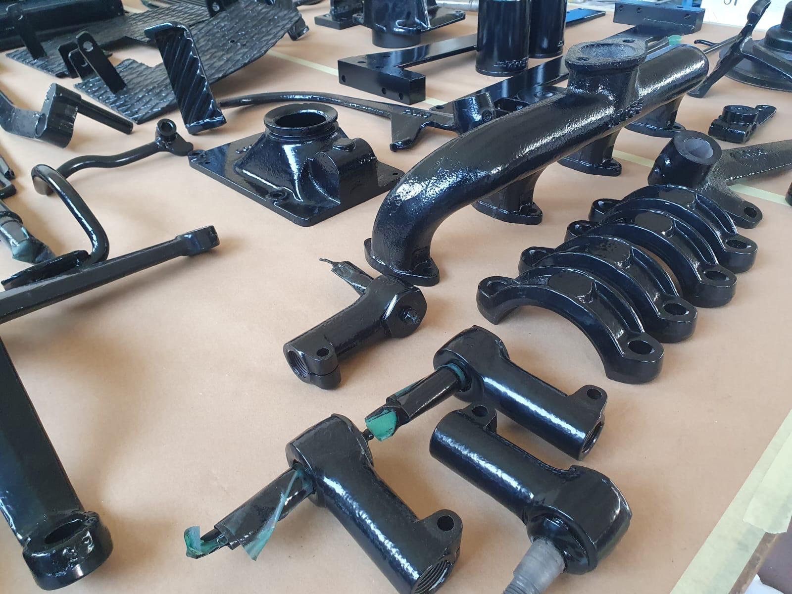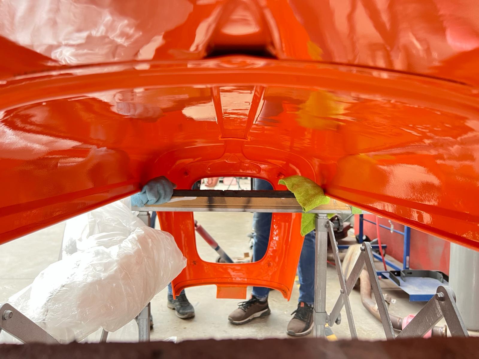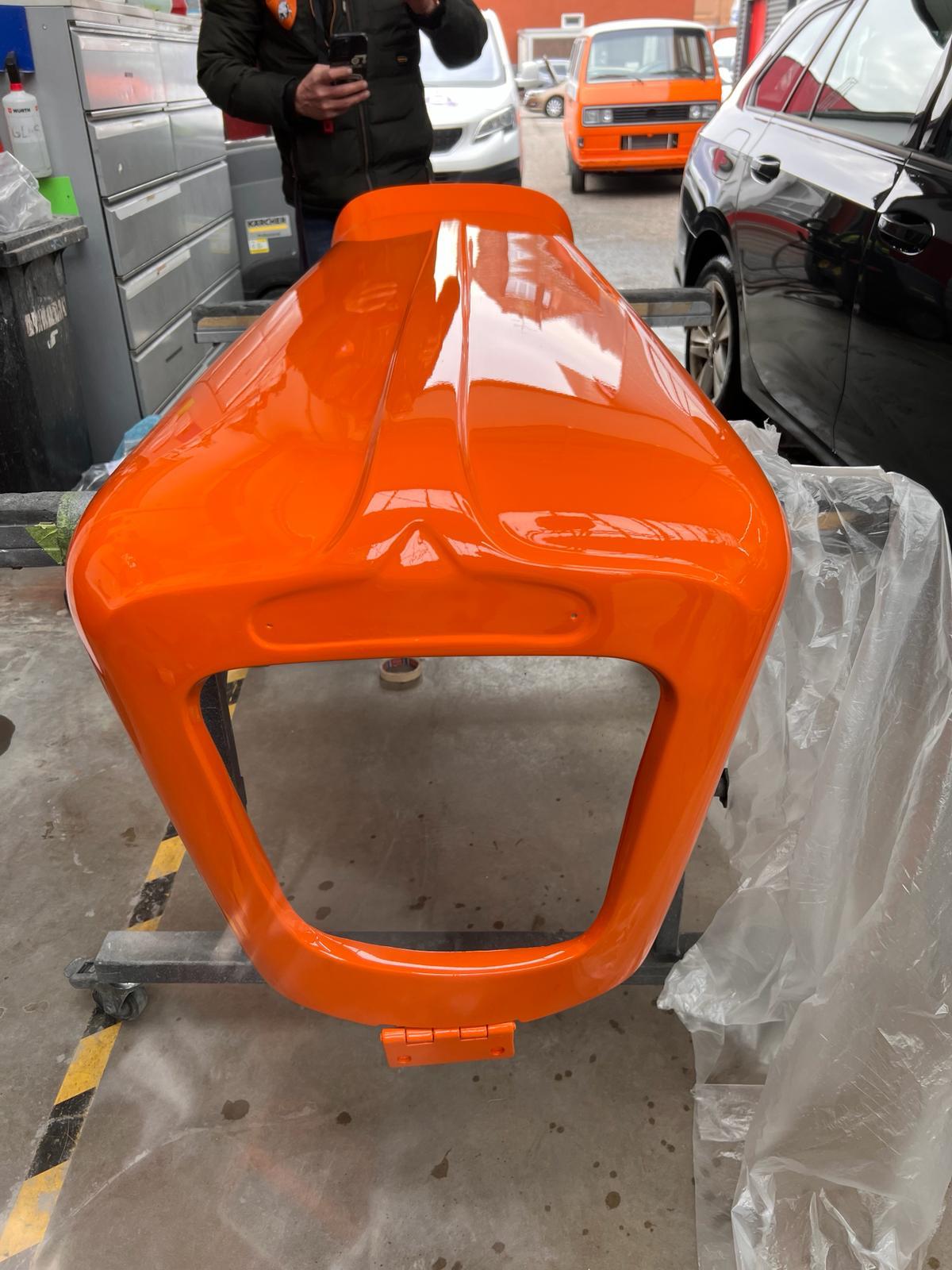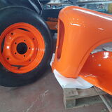 Professionelle Pulverbeschichtung vieler Bauteile; bewegliche Komponenten überwiegend schwarz pulverbeschichtet. Felgen mit Hochglanz-Pulverbeschichtung (Show-Quality-Finish). Sichtteile in periodenkorrekten Farbtönen lackiert. Umfassender Korrosionsschutz innen/außen.