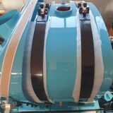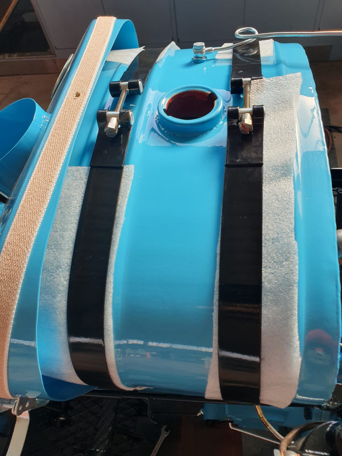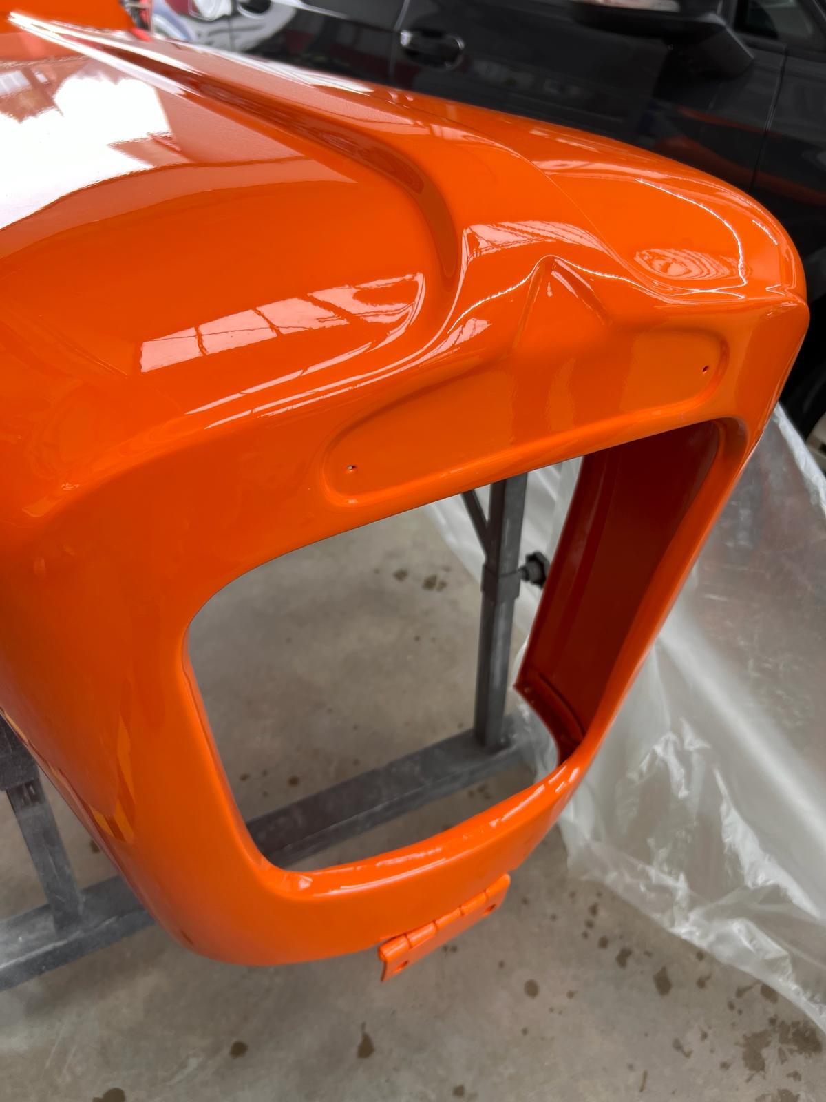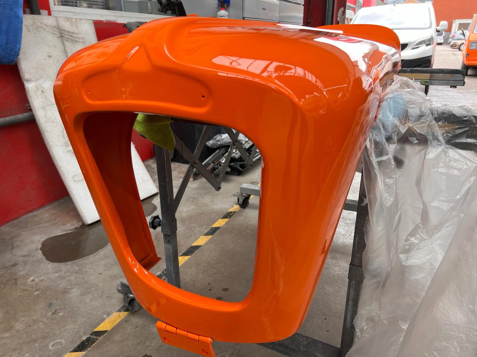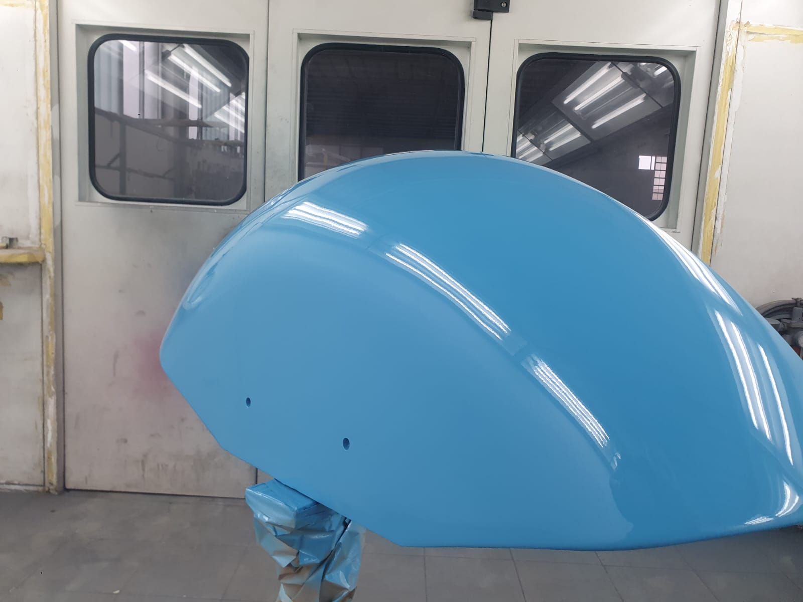Professionelle Pulverbeschichtung vieler Bauteile; bewegliche Komponenten überwiegend schwarz pulverbeschichtet. Felgen mit Hochglanz-Pulverbeschichtung (Show-Quality-Finish). Sichtteile in periodenkorrekten Farbtönen lackiert. Umfassender Korrosionsschutz innen/außen.