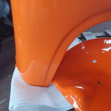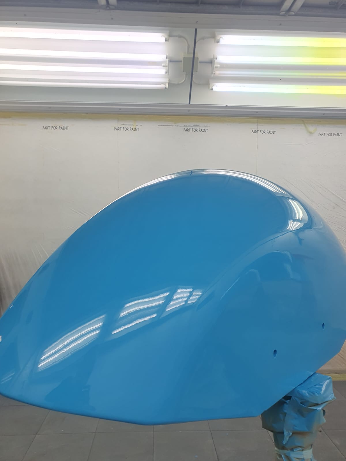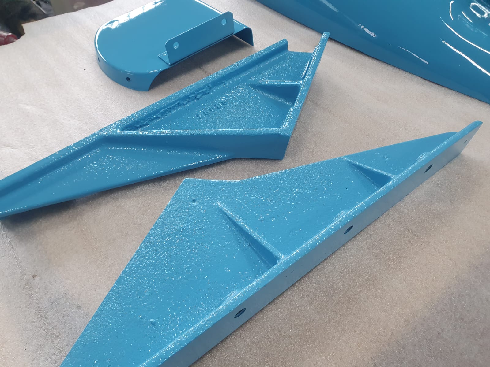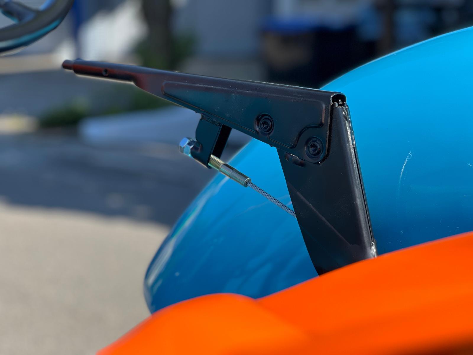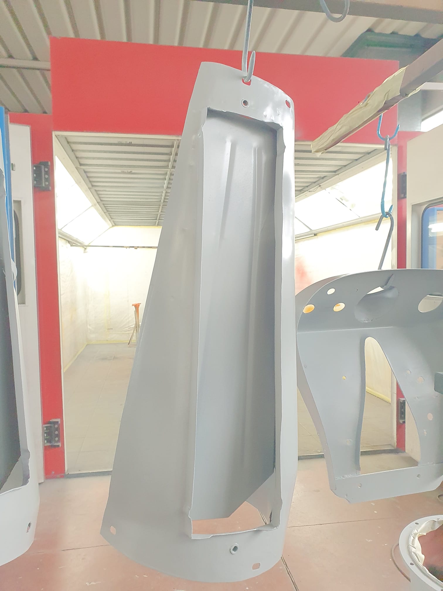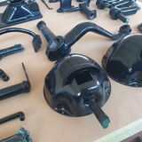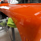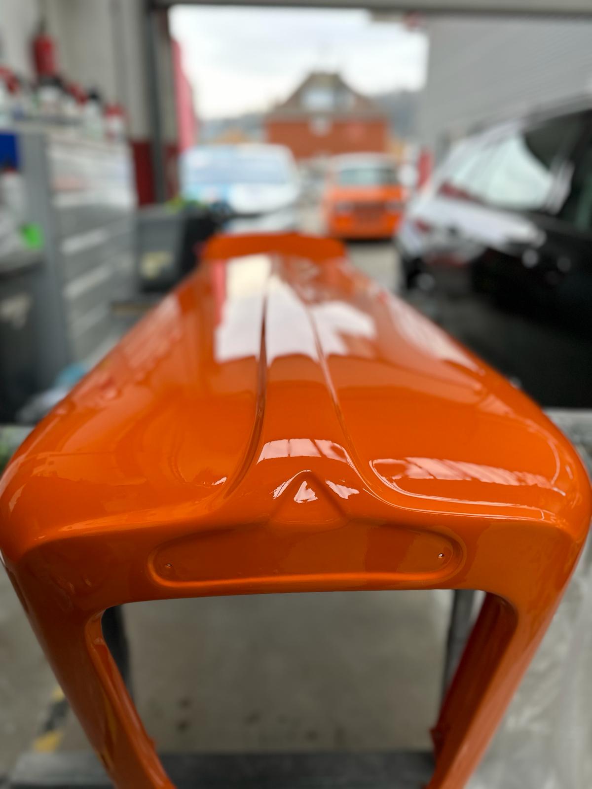 Professionelle Pulverbeschichtung vieler Bauteile; bewegliche Komponenten überwiegend schwarz pulverbeschichtet. Felgen mit Hochglanz-Pulverbeschichtung (Show-Quality-Finish). Sichtteile in periodenkorrekten Farbtönen lackiert. Umfassender Korrosionsschutz innen/außen.