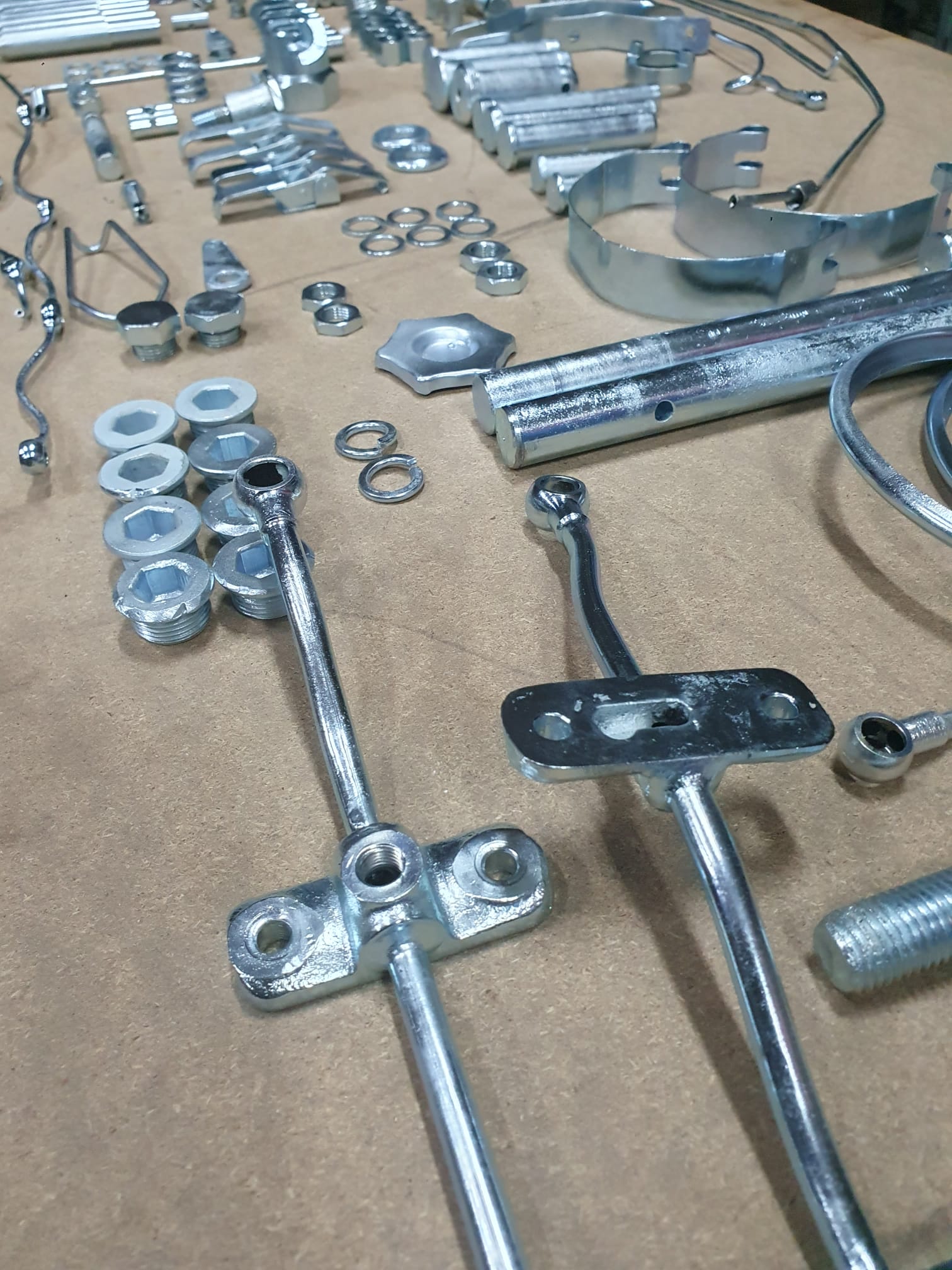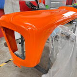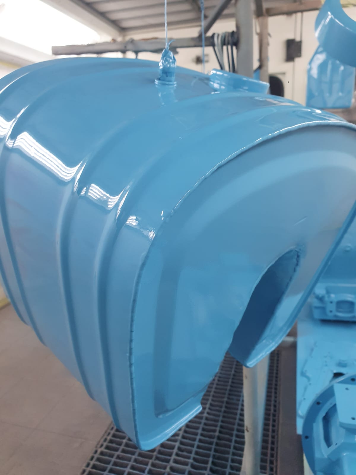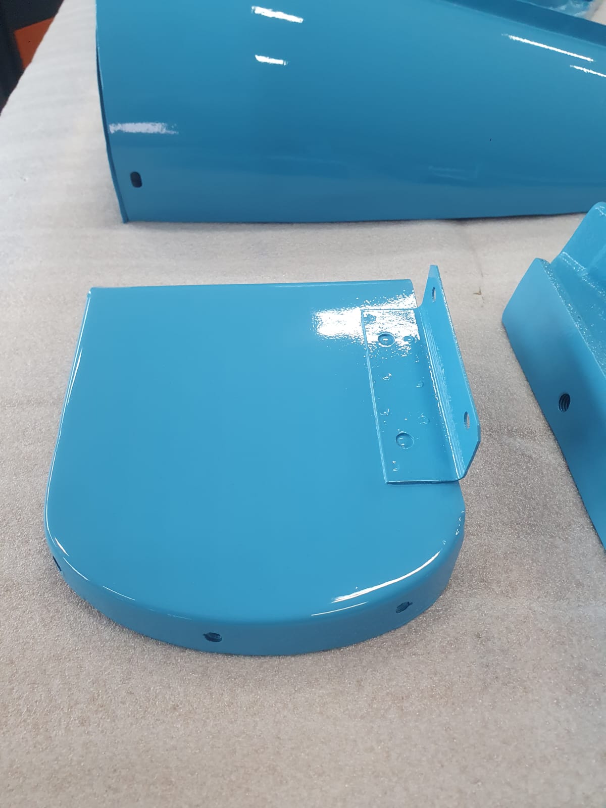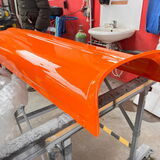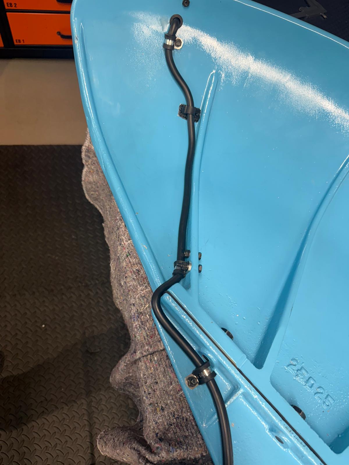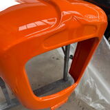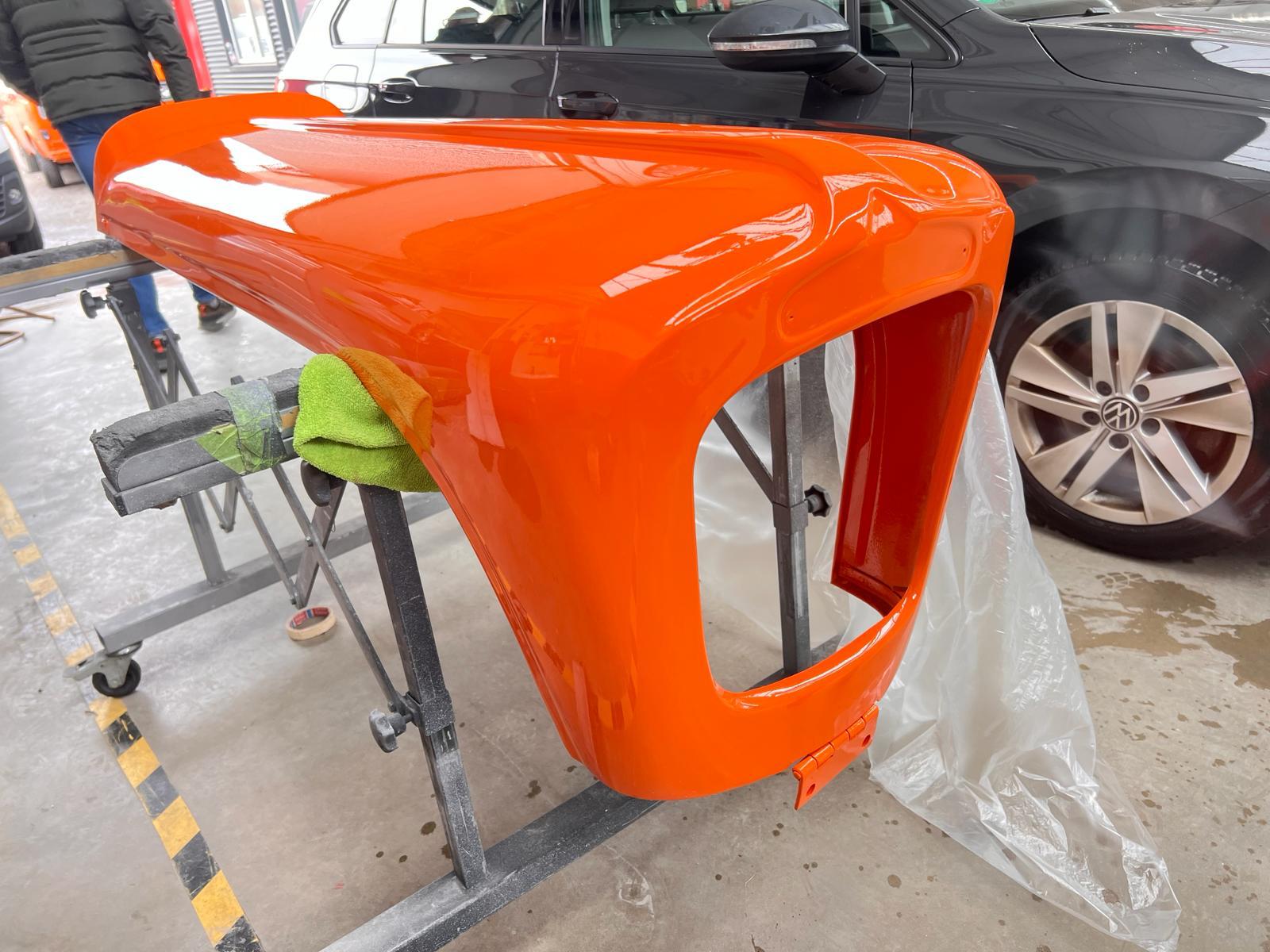 Professionelle Pulverbeschichtung vieler Bauteile; bewegliche Komponenten überwiegend schwarz pulverbeschichtet. Felgen mit Hochglanz-Pulverbeschichtung (Show-Quality-Finish). Sichtteile in periodenkorrekten Farbtönen lackiert. Umfassender Korrosionsschutz innen/außen.