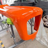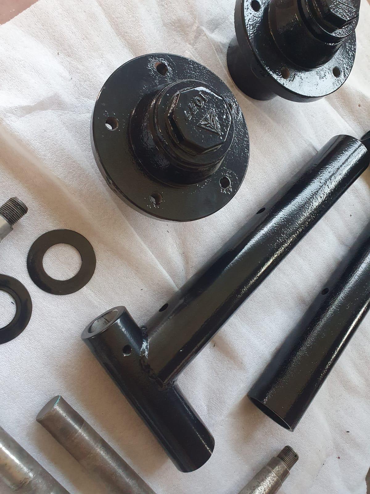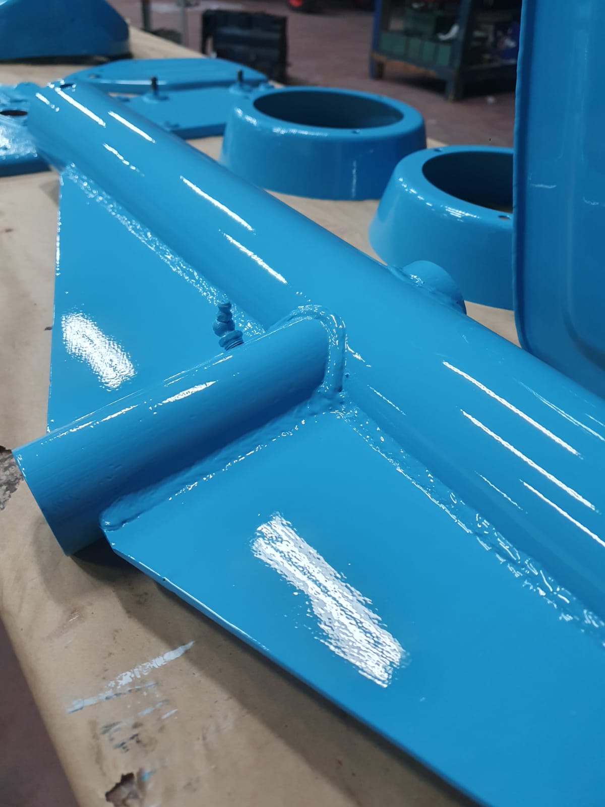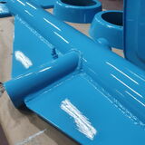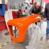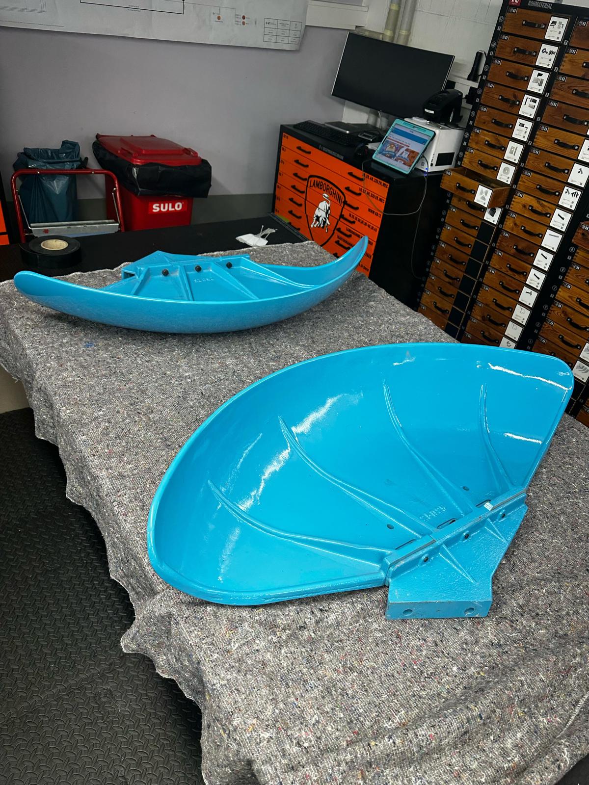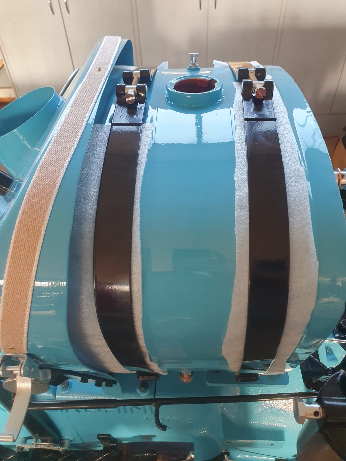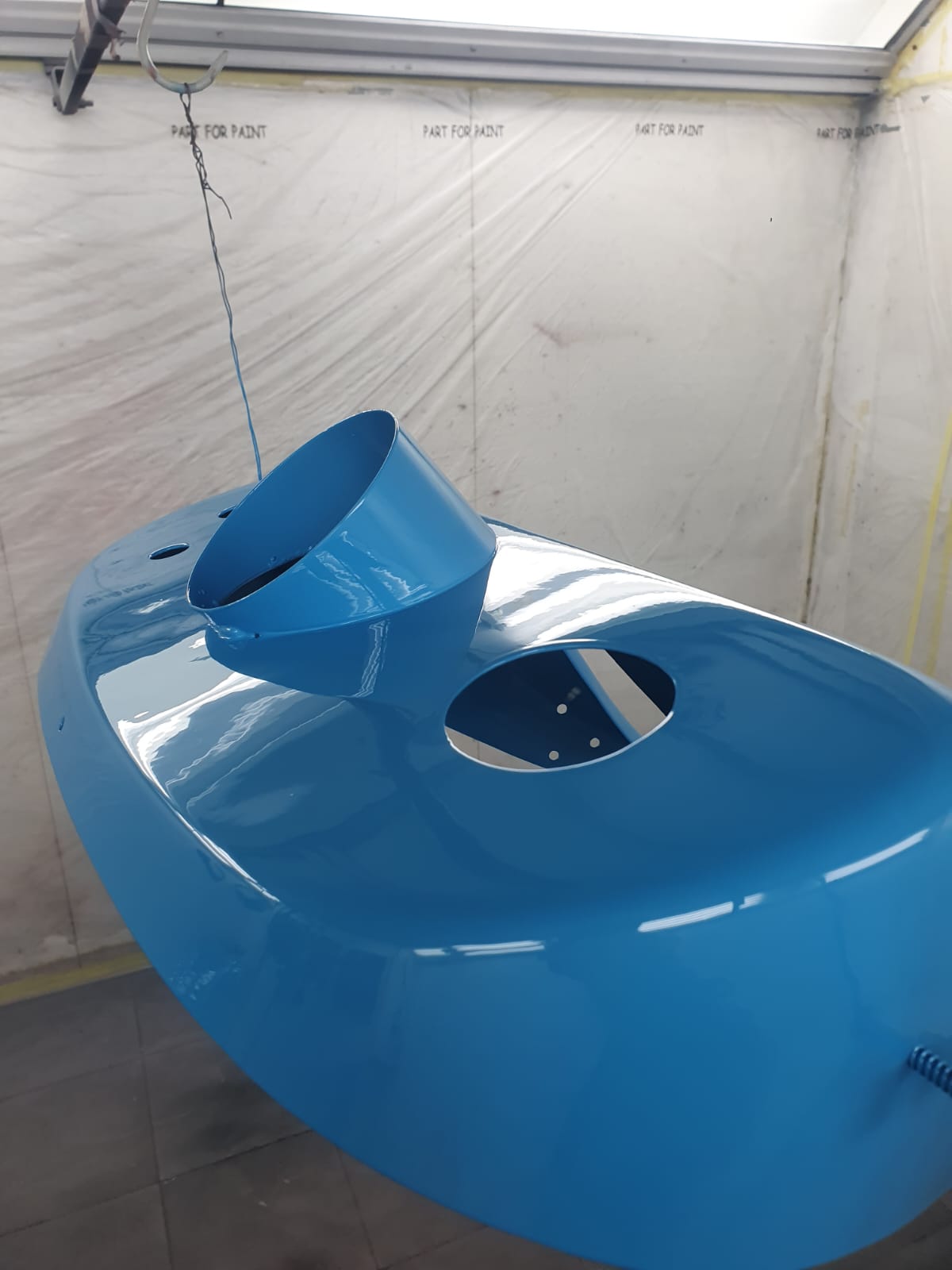 Professionelle Pulverbeschichtung vieler Bauteile; bewegliche Komponenten überwiegend schwarz pulverbeschichtet. Felgen mit Hochglanz-Pulverbeschichtung (Show-Quality-Finish). Sichtteile in periodenkorrekten Farbtönen lackiert. Umfassender Korrosionsschutz innen/außen.