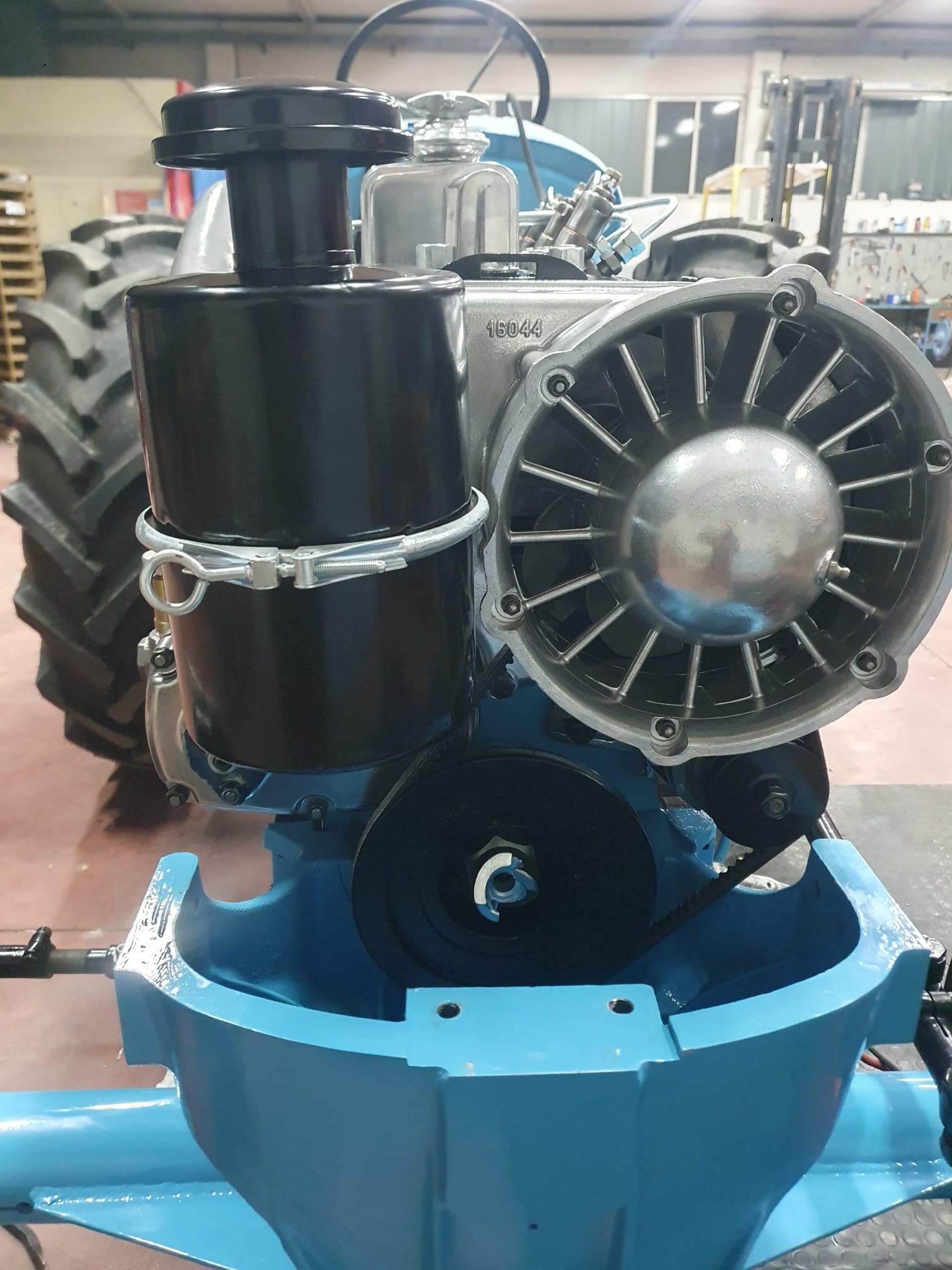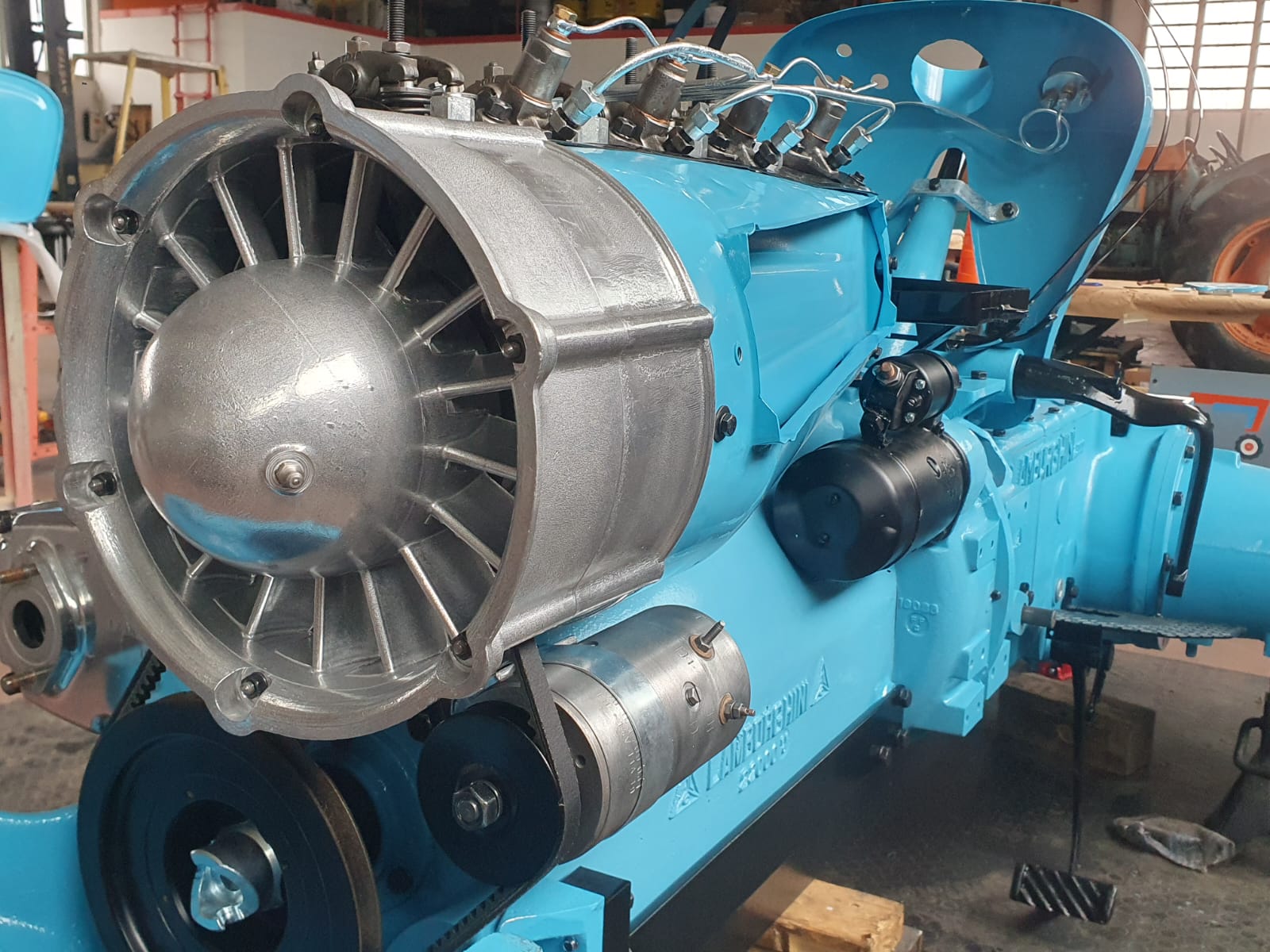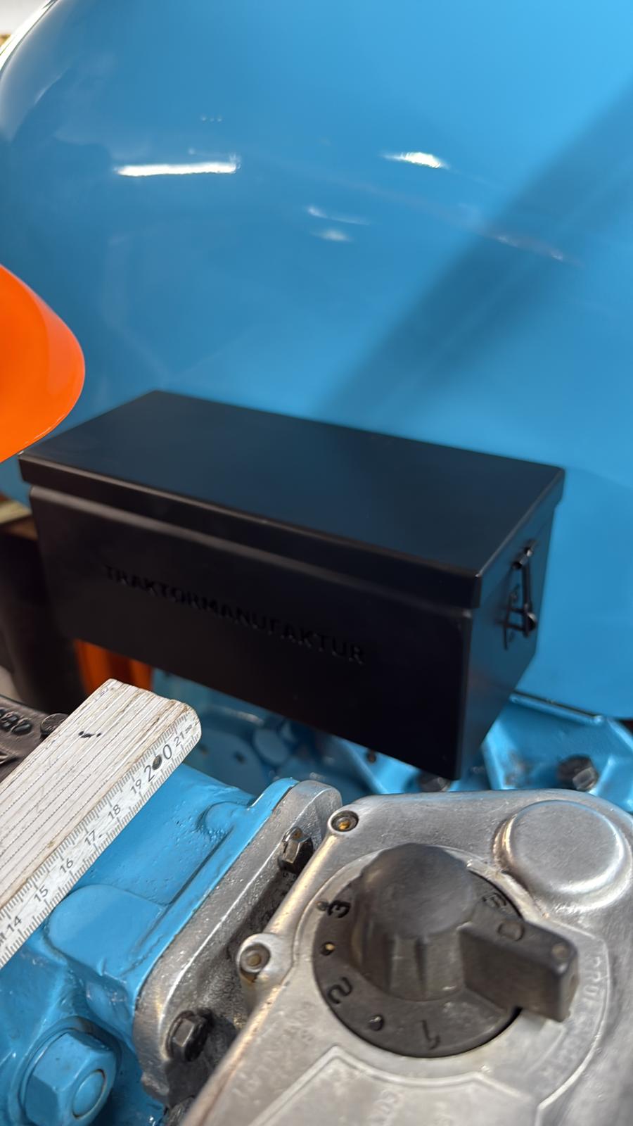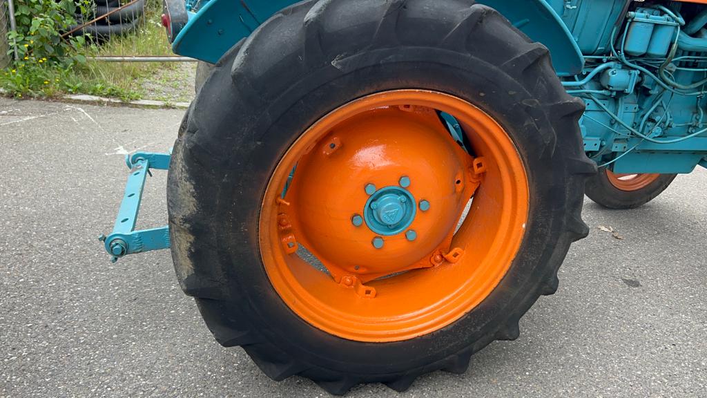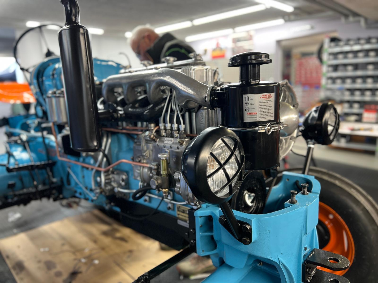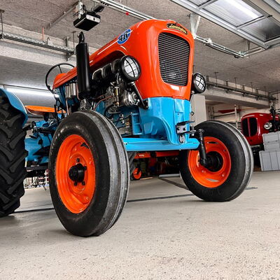 Vollzerlegung („Rahmen-off“) bis zur letzten Schraube. Elektrik komplett neu (moderne Verteilersysteme, neu gefertigter Kabelbaum, hochwertige Steck-/Crimpverbindungen; Sicherungen nur, wenn historisch vorgesehen). Alle Dichtungen neu, nach Traktormanufaktur-Spezifikation in Österreich gefertigt und verbaut. Anlasserzahnkranz wird grundsätzlich erneuert. Pulverbeschichtungen vieler Teile (bewegliche Komponenten überwiegend schwarz); Felgen mit Hochglanz-Pulverbeschichtung; Sichtteile periodenkorrekt lackiert. Original-Traktormeter in Originalausführung vom damaligen Originalhersteller nachproduziert. ID-gebundene Fotodokumentation & Monatschronik.