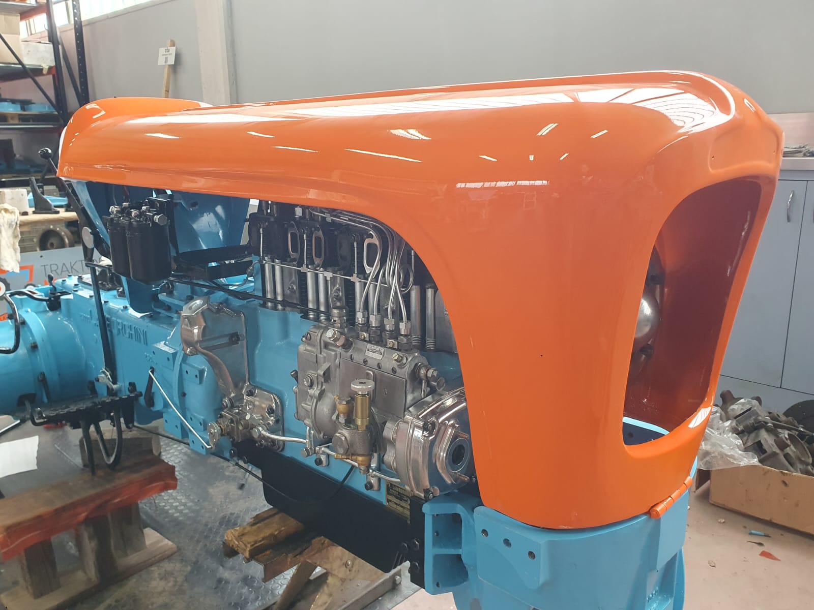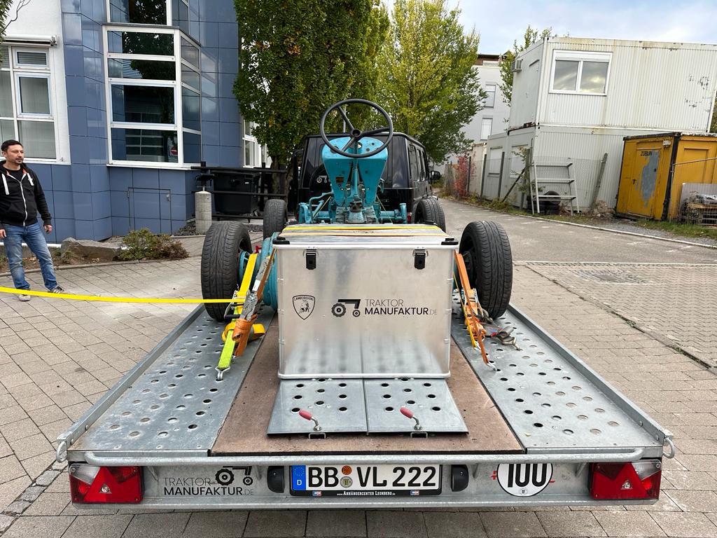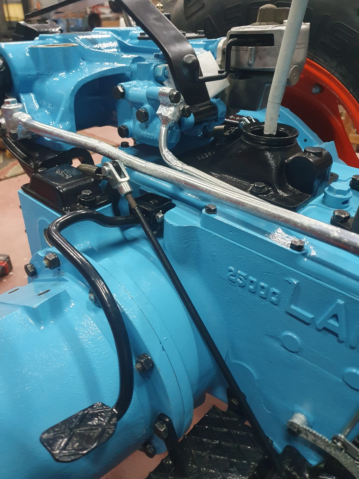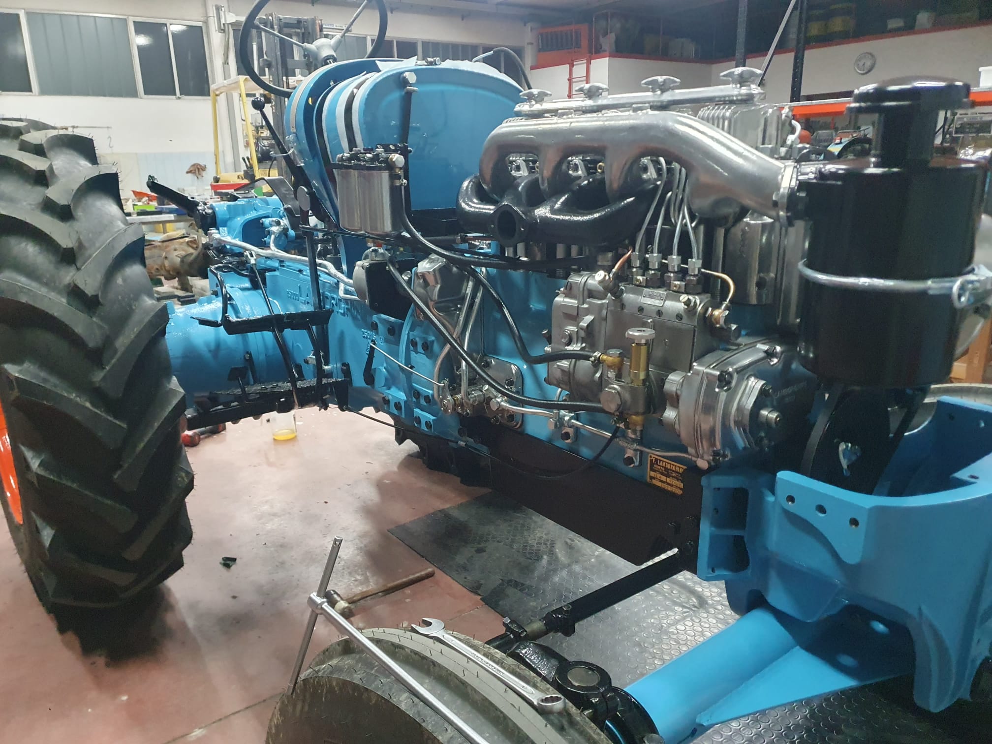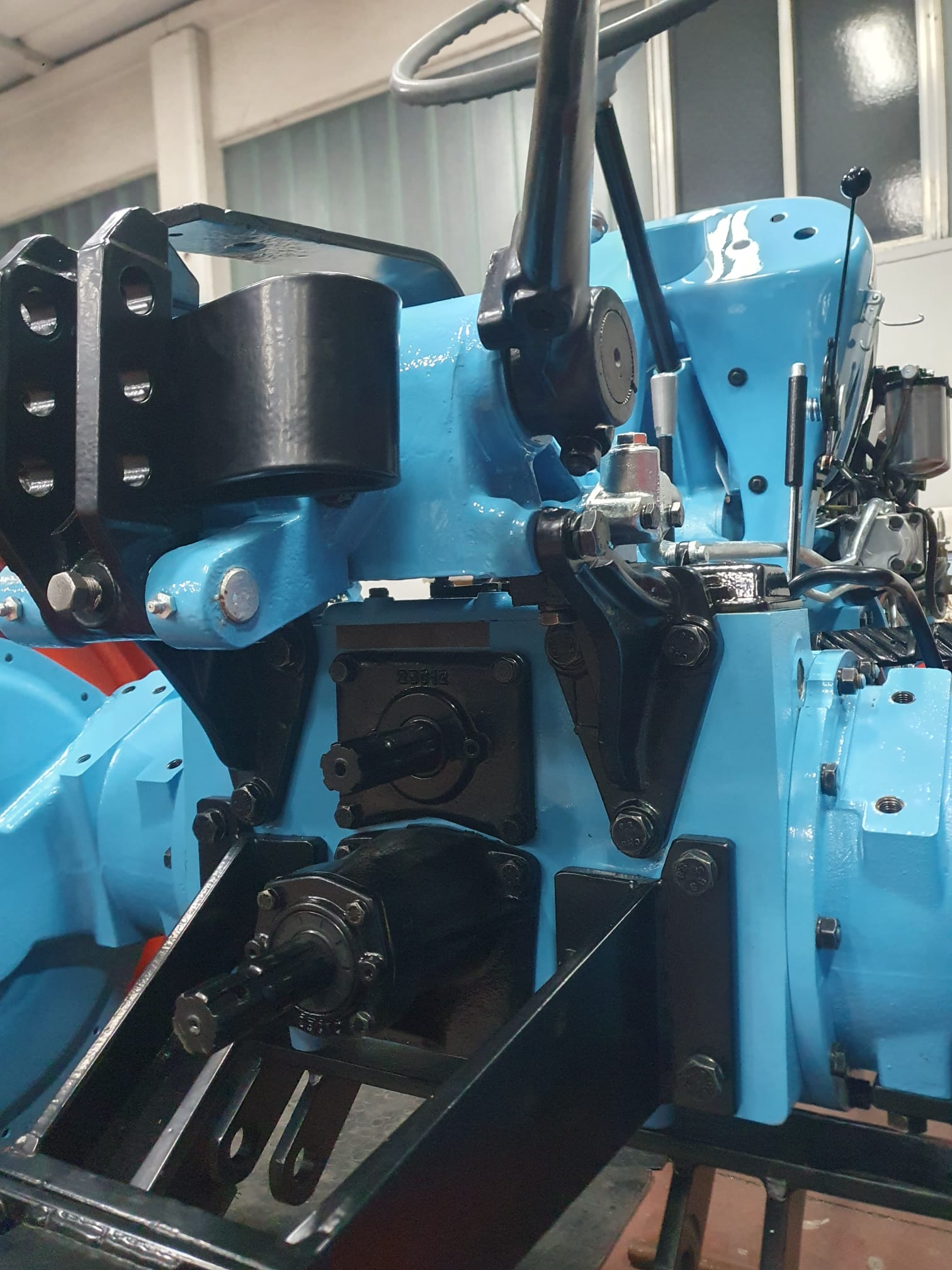 Vollzerlegung („Rahmen-off“) bis zur letzten Schraube. Elektrik komplett neu (moderne Verteilersysteme, neu gefertigter Kabelbaum, hochwertige Steck-/Crimpverbindungen; Sicherungen nur, wenn historisch vorgesehen). Alle Dichtungen neu, nach Traktormanufaktur-Spezifikation in Österreich gefertigt und verbaut. Anlasserzahnkranz wird grundsätzlich erneuert. Pulverbeschichtungen vieler Teile (bewegliche Komponenten überwiegend schwarz); Felgen mit Hochglanz-Pulverbeschichtung; Sichtteile periodenkorrekt lackiert. Original-Traktormeter in Originalausführung vom damaligen Originalhersteller nachproduziert. ID-gebundene Fotodokumentation & Monatschronik.