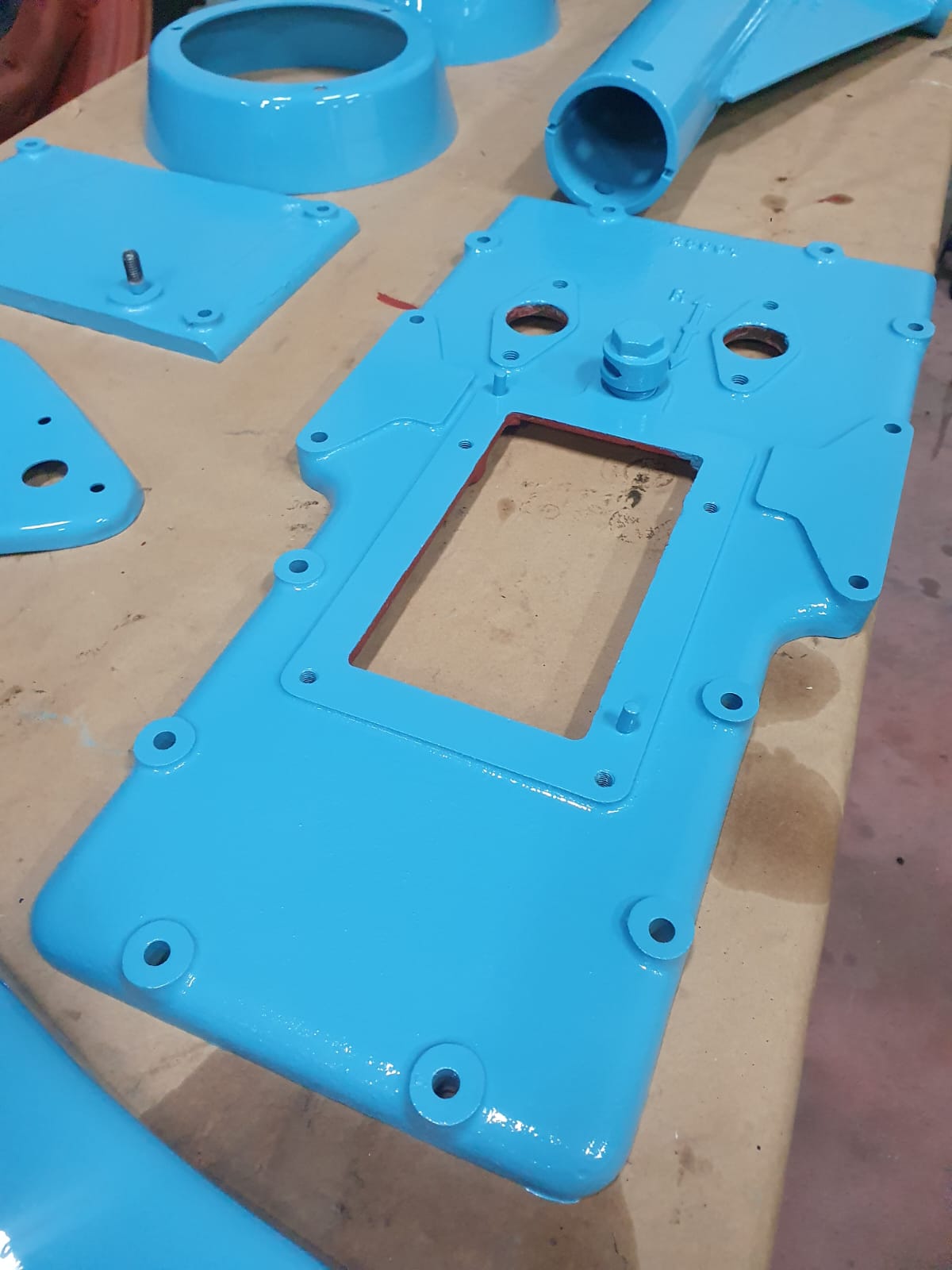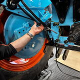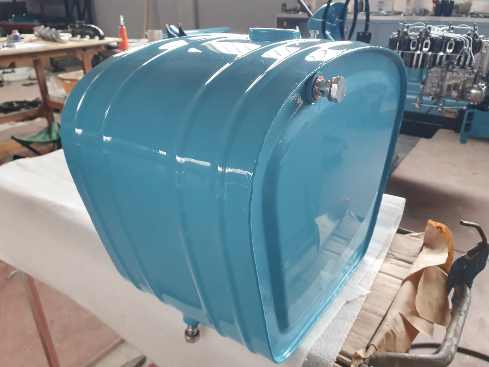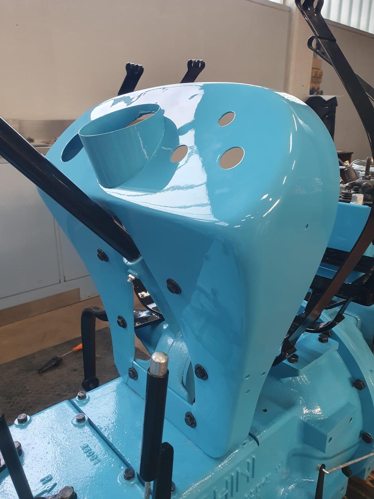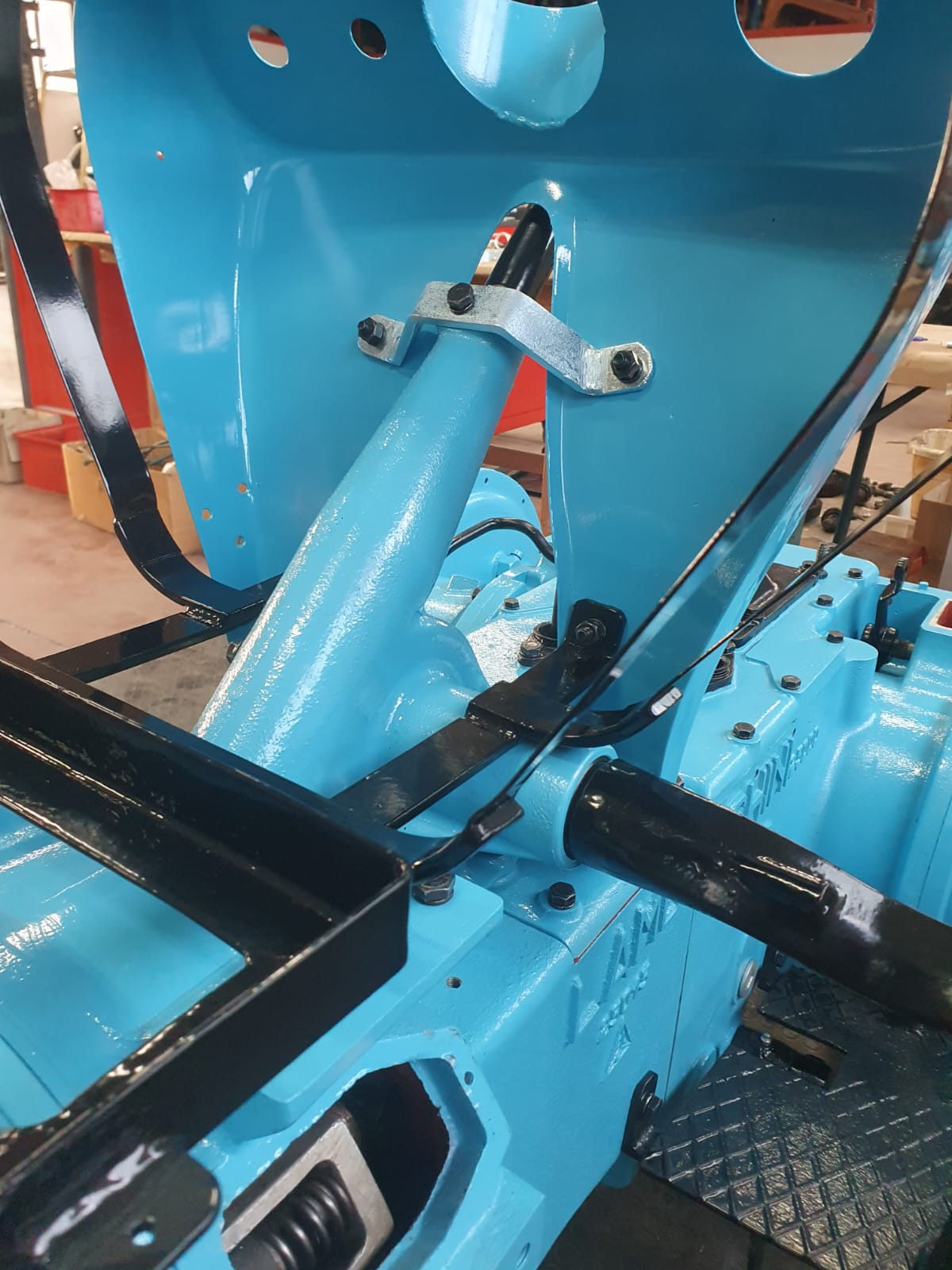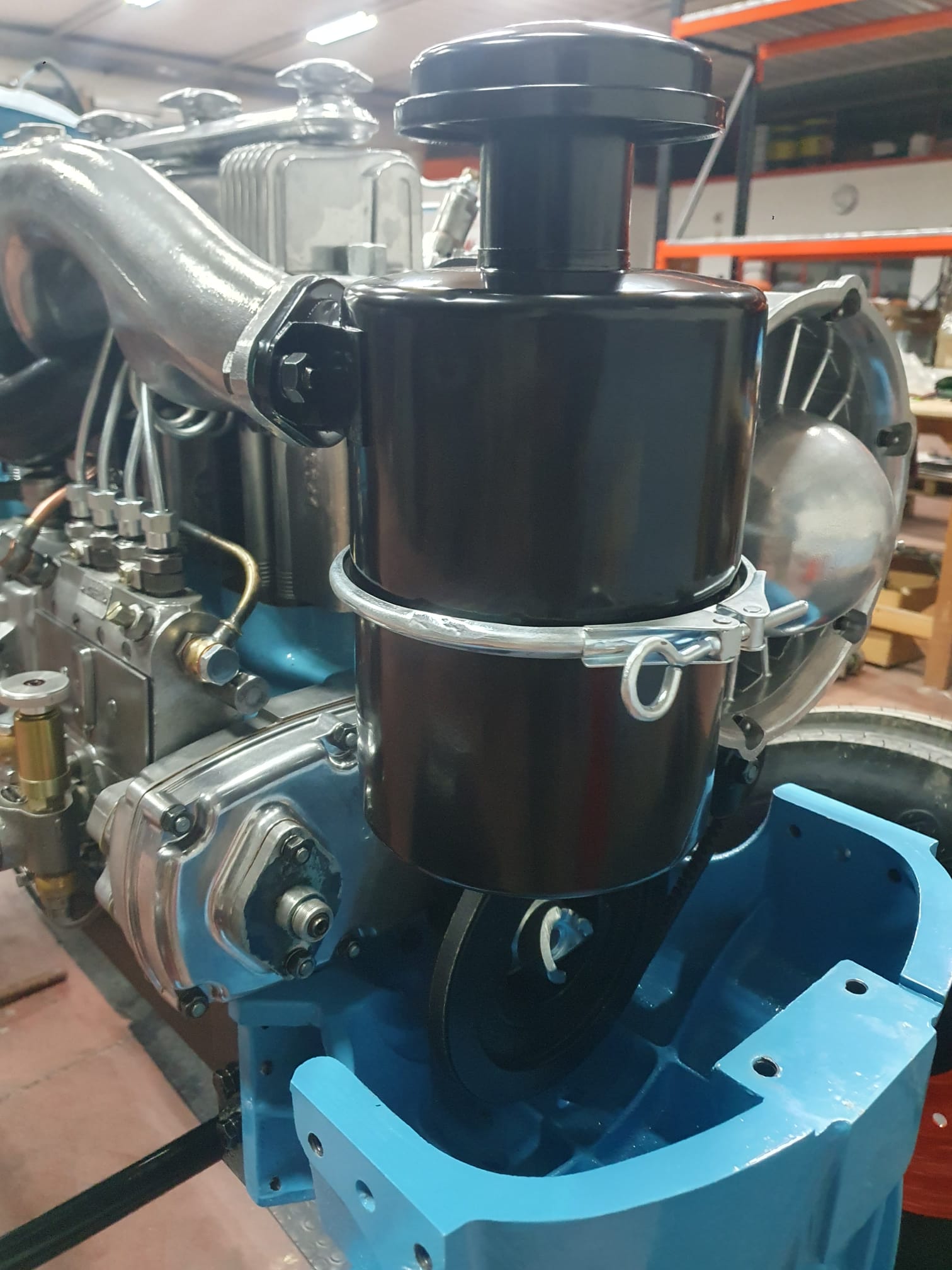 Vollzerlegung („Rahmen-off“) bis zur letzten Schraube. Elektrik komplett neu (moderne Verteilersysteme, neu gefertigter Kabelbaum, hochwertige Steck-/Crimpverbindungen; Sicherungen nur, wenn historisch vorgesehen). Alle Dichtungen neu, nach Traktormanufaktur-Spezifikation in Österreich gefertigt und verbaut. Anlasserzahnkranz wird grundsätzlich erneuert. Pulverbeschichtungen vieler Teile (bewegliche Komponenten überwiegend schwarz); Felgen mit Hochglanz-Pulverbeschichtung; Sichtteile periodenkorrekt lackiert. Original-Traktormeter in Originalausführung vom damaligen Originalhersteller nachproduziert. ID-gebundene Fotodokumentation & Monatschronik.