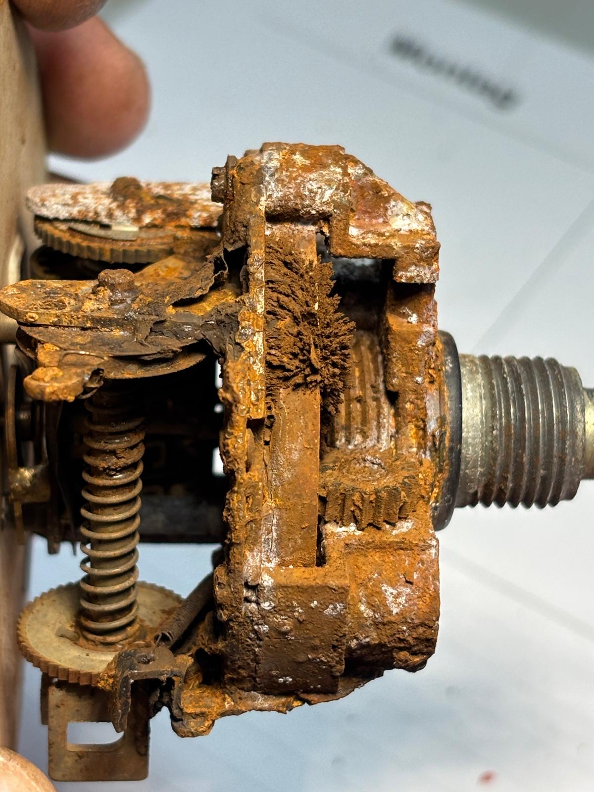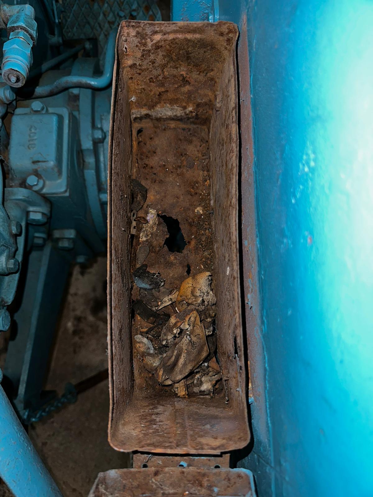 Fotobefund vom 25.07.2023: originale Lackreste, lokale Korrosionszonen, aber vollständige Hauptbaugruppen. Der Erstzustand definiert, was erhalten, aufgearbeitet oder ersetzt wird. Transparenz ist Werttreiber – Entscheidungen bleiben prüf- und langfristig nachvollziehbar.