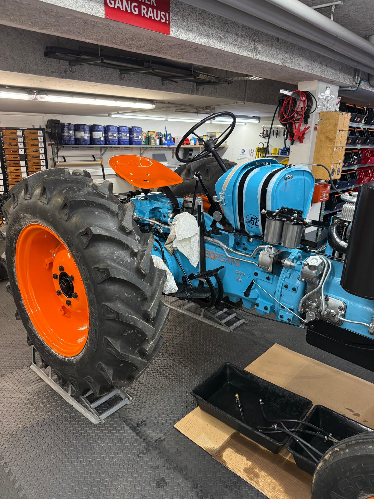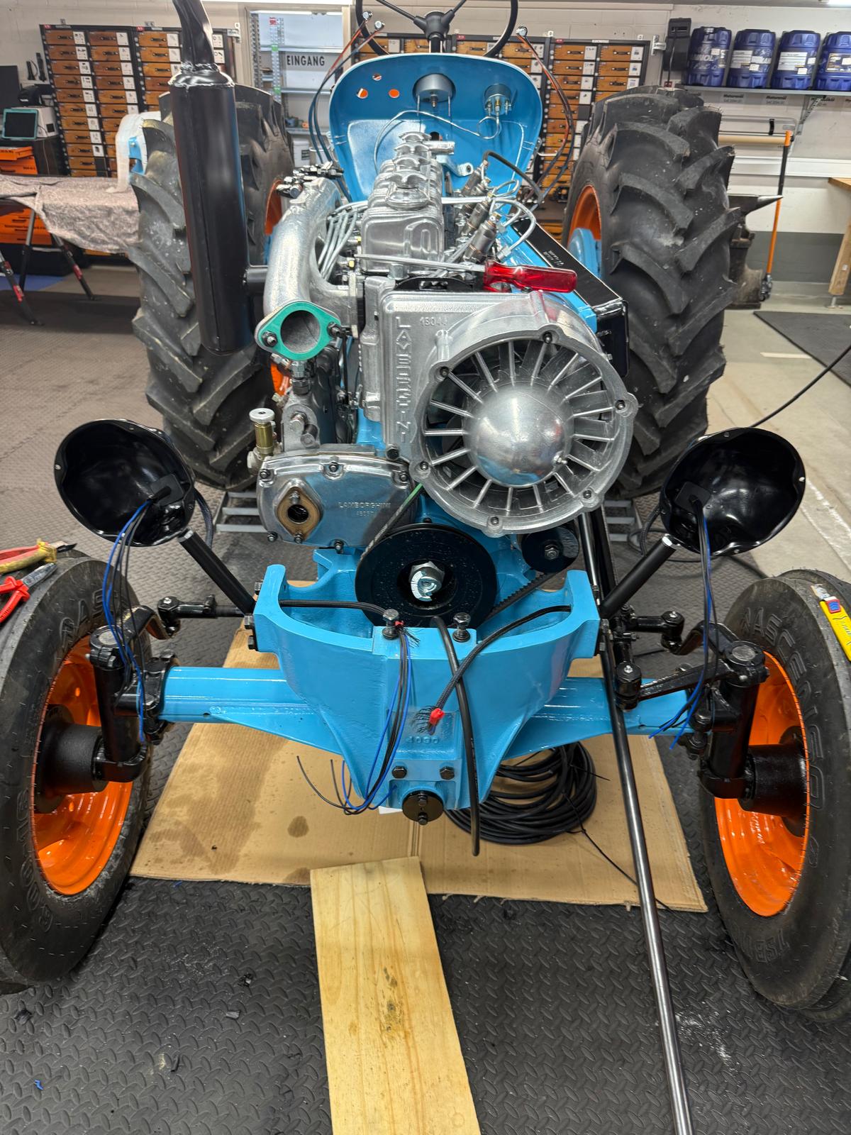 Der Lamborghini 4R (Baujahr 1965) kam im kompletten, unverfälschten Zustand zu uns – technisch solide, optisch gealtert. Wir arbeiten ID-gebunden und transparent: Aus ehrlicher Patina entsteht präzise Technik, Schritt für Schritt dokumentiert. Fix definiert: Elektrik vollständig neu, alle Dichtungen „Made in Austria“, Felgen in Hochglanz-Pulverbeschichtung, Original-Traktormeter in Originalausführung. Fertiggestellt am 28.05.2025.