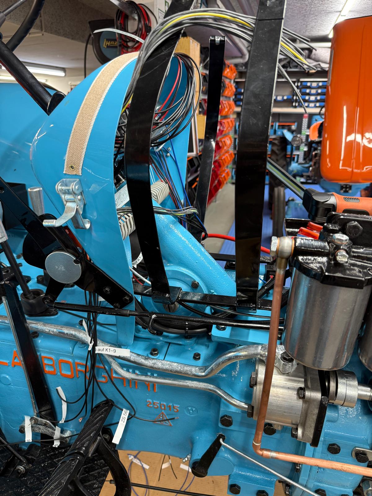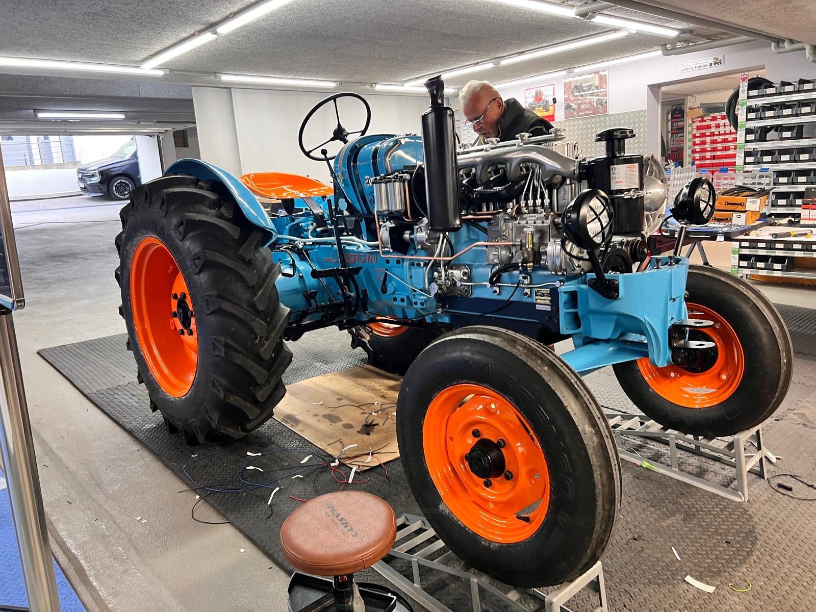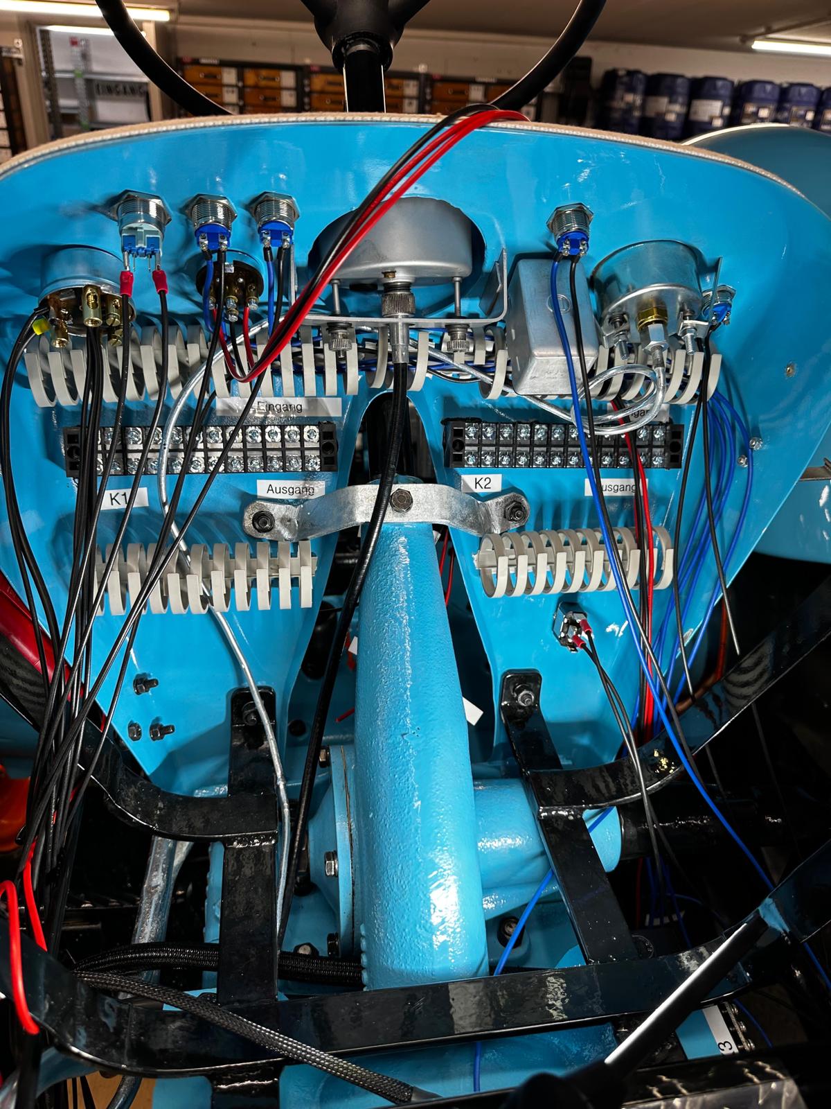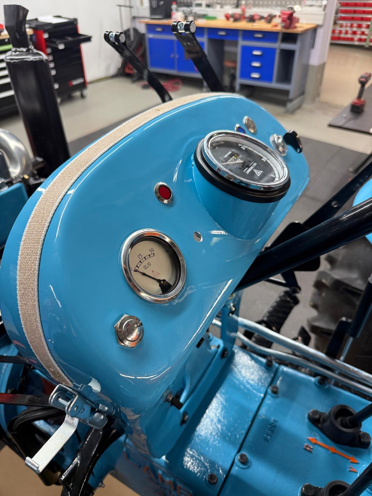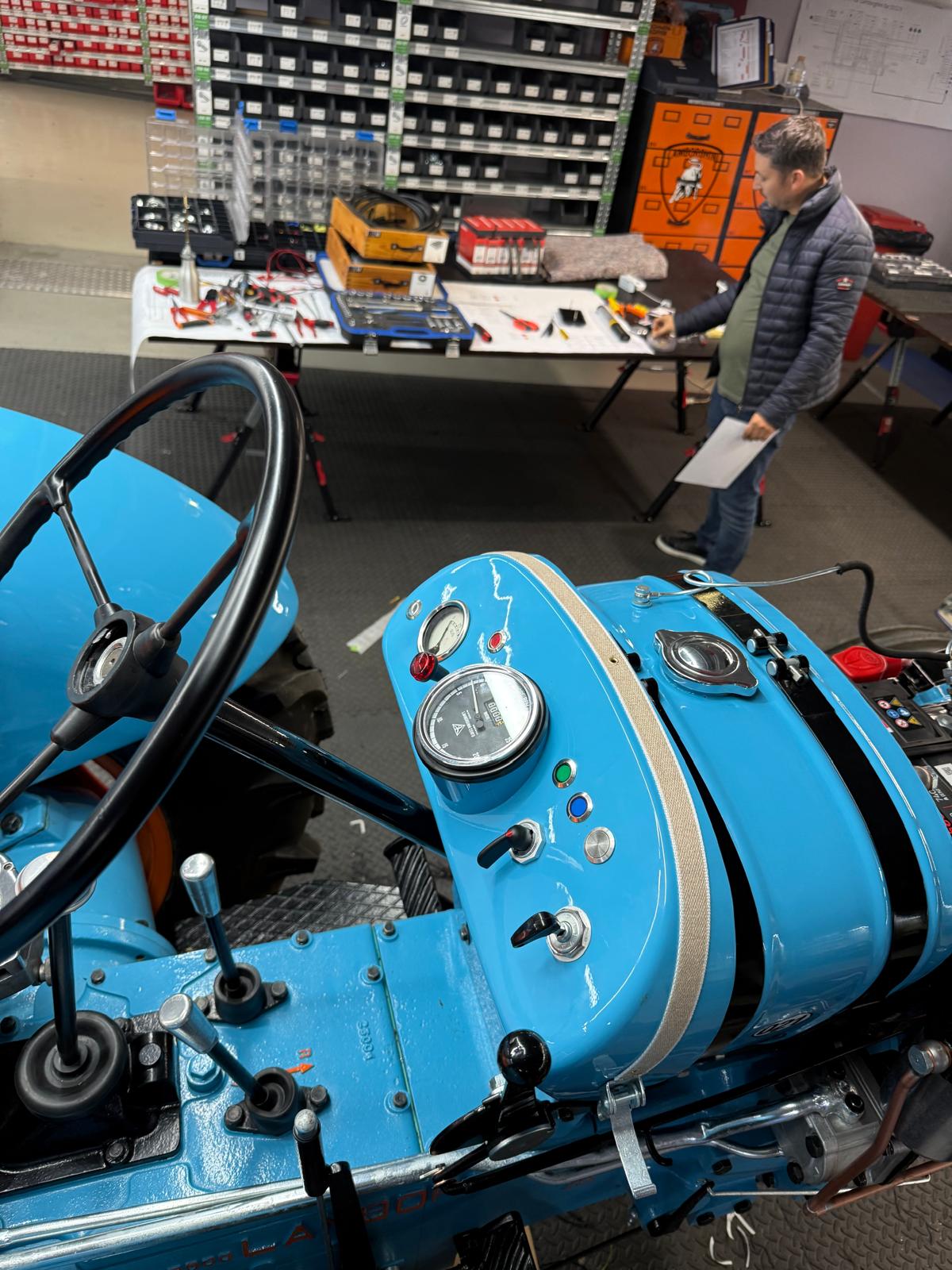 Neuaufbau mit modern dimensionierten Verteilersystemen, neu gefertigtem Kabelbaum und hochwertigen Steck-/Crimpverbindungen. Sicherungen nur, wenn historisch vorgesehen. Beleuchtung/Signale funktionssicher; Traktormeter in Originalausführung vom damaligen Originalhersteller nachproduziert.