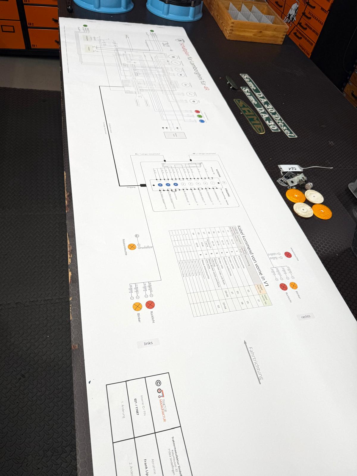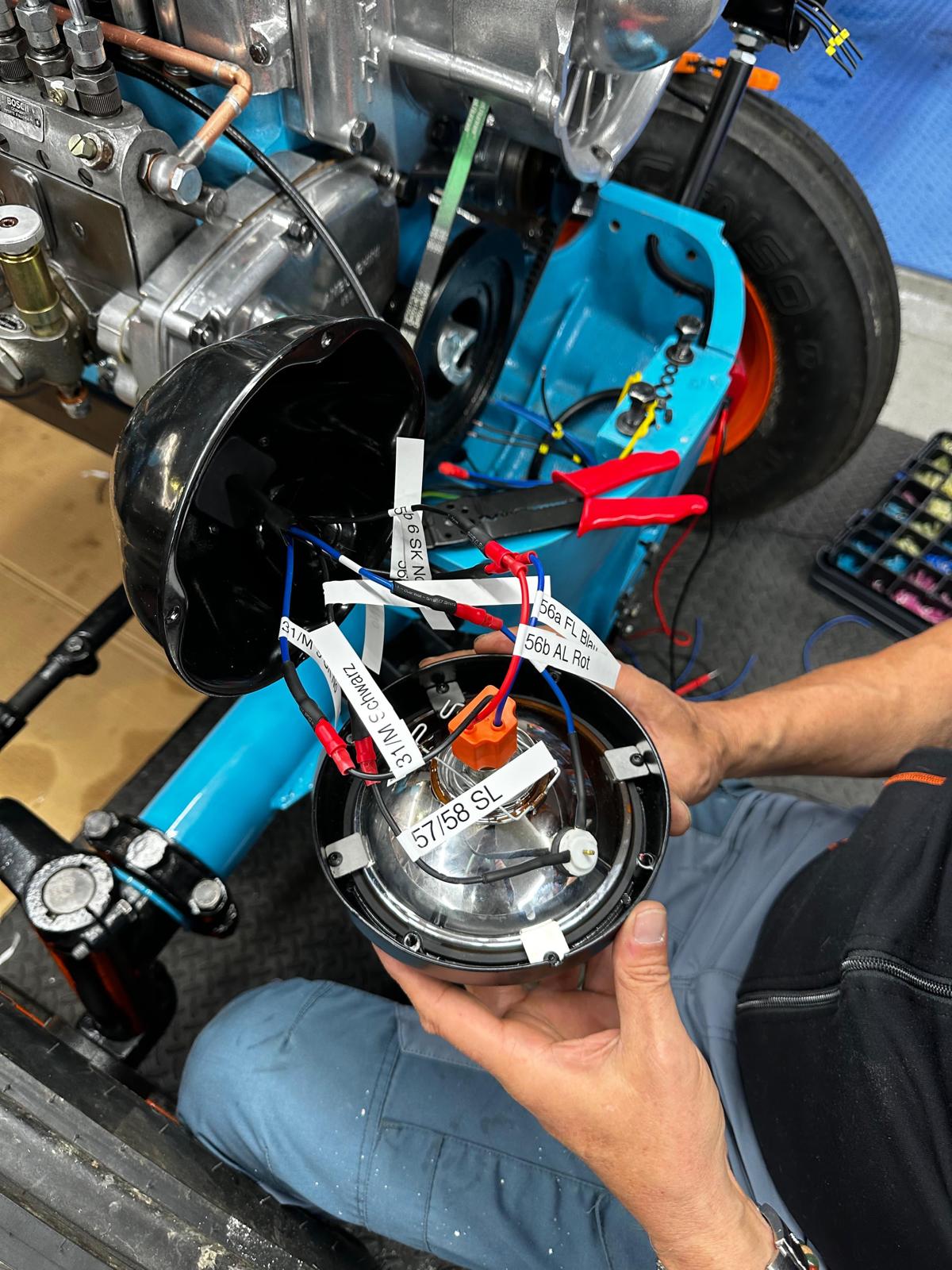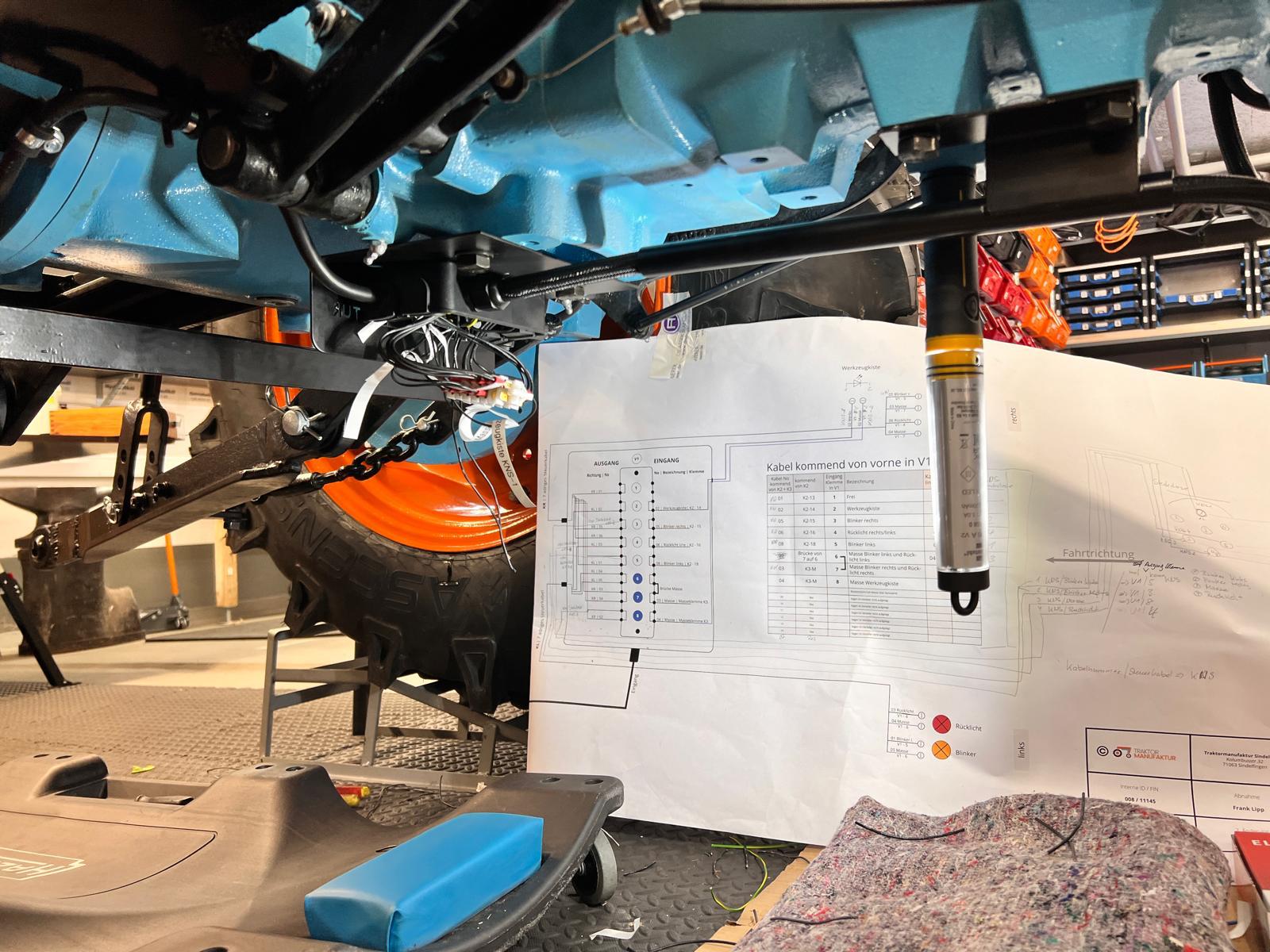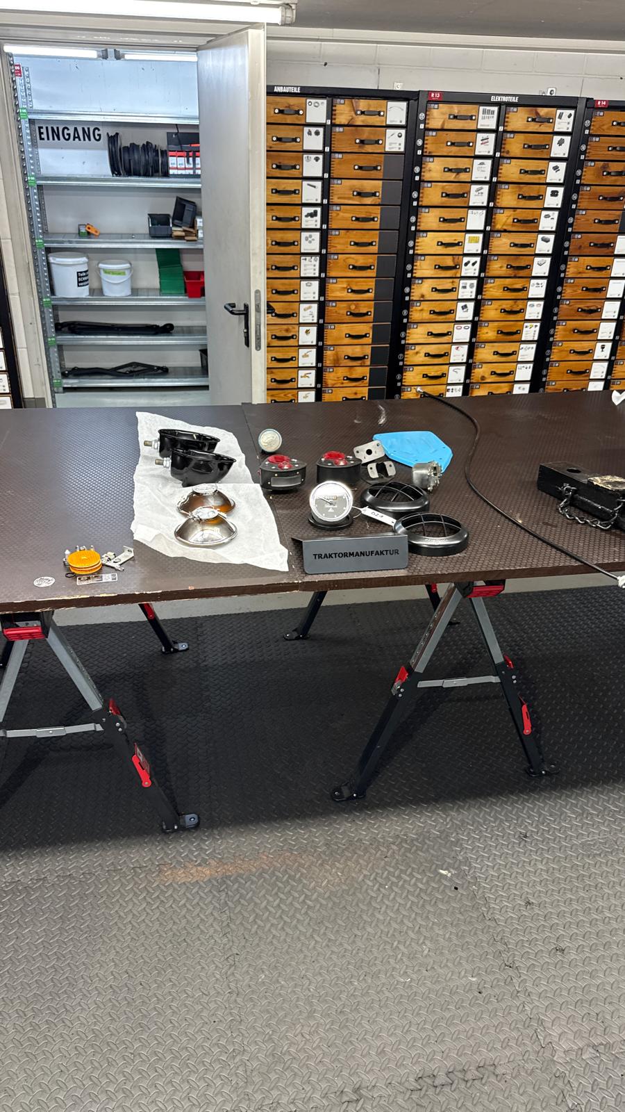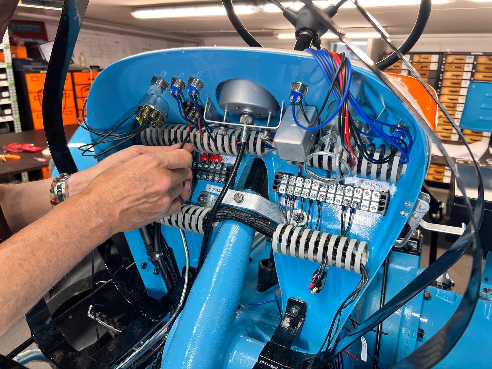 Neuaufbau mit modern dimensionierten Verteilersystemen, neu gefertigtem Kabelbaum und hochwertigen Steck-/Crimpverbindungen. Sicherungen nur, wenn historisch vorgesehen. Beleuchtung/Signale funktionssicher; Traktormeter in Originalausführung vom damaligen Originalhersteller nachproduziert.