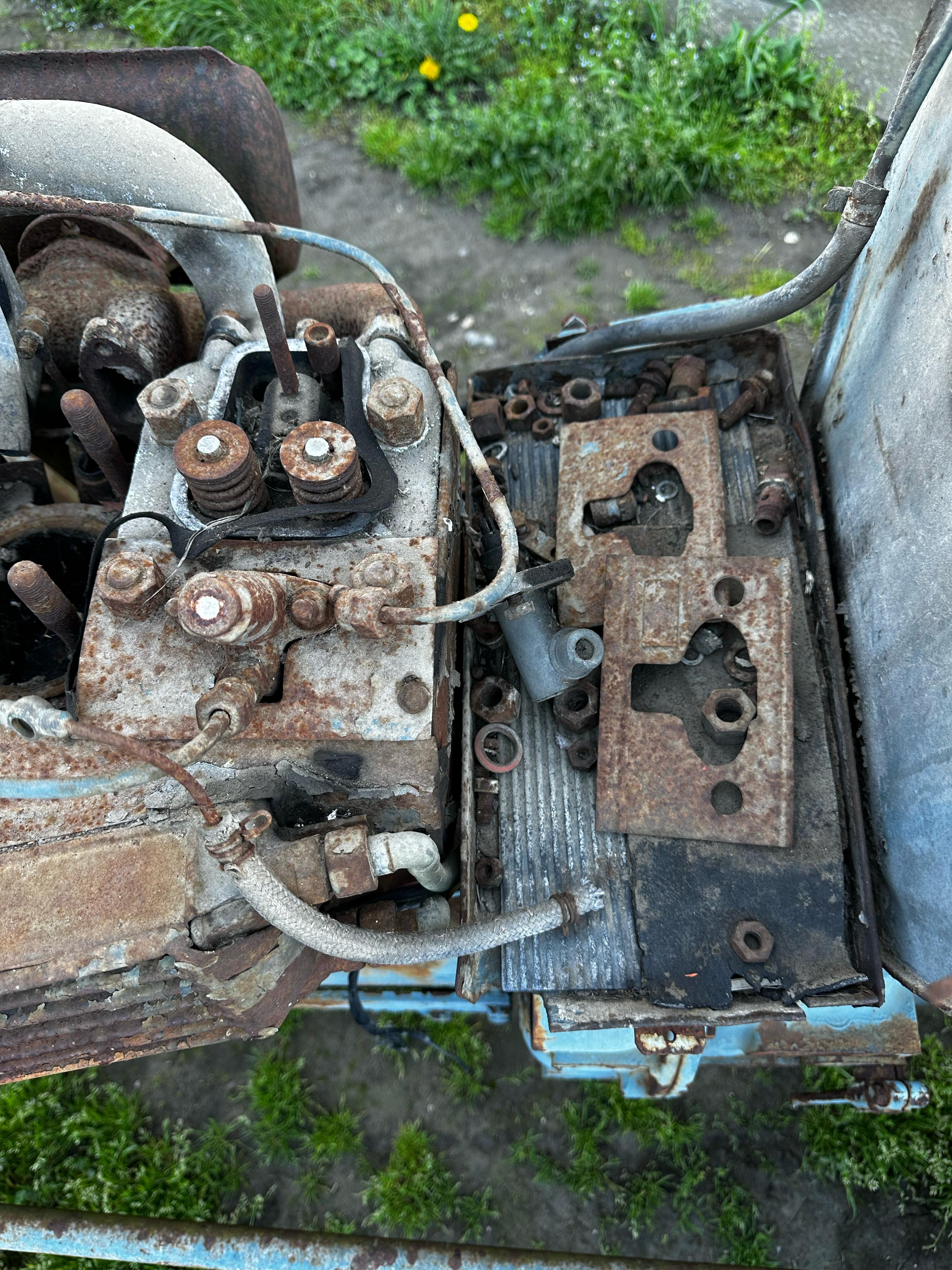 Fotodokumentation des unrestaurierten Zustands vom 11.03.2025: authentische Nutzungsspuren, lokale Korrosion, vollständige Hauptbaugruppen. Dieser Erstzustand definiert, was erhalten, aufgearbeitet oder ersetzt wird. Gealterte Leitungen, Dichtflächen und Spielmaße werden systematisch erfasst. Diese Transparenz ist Werttreiber – Entscheidungen bleiben prüf- und langfristig nachvollziehbar.