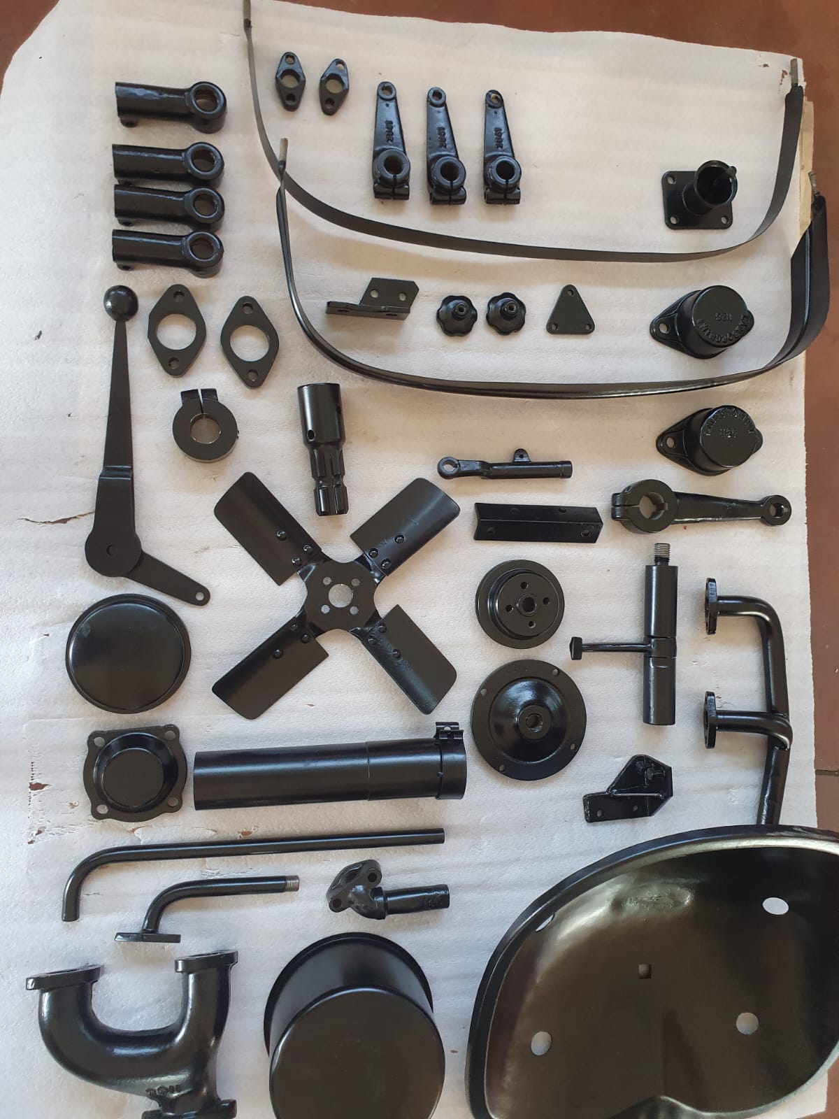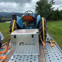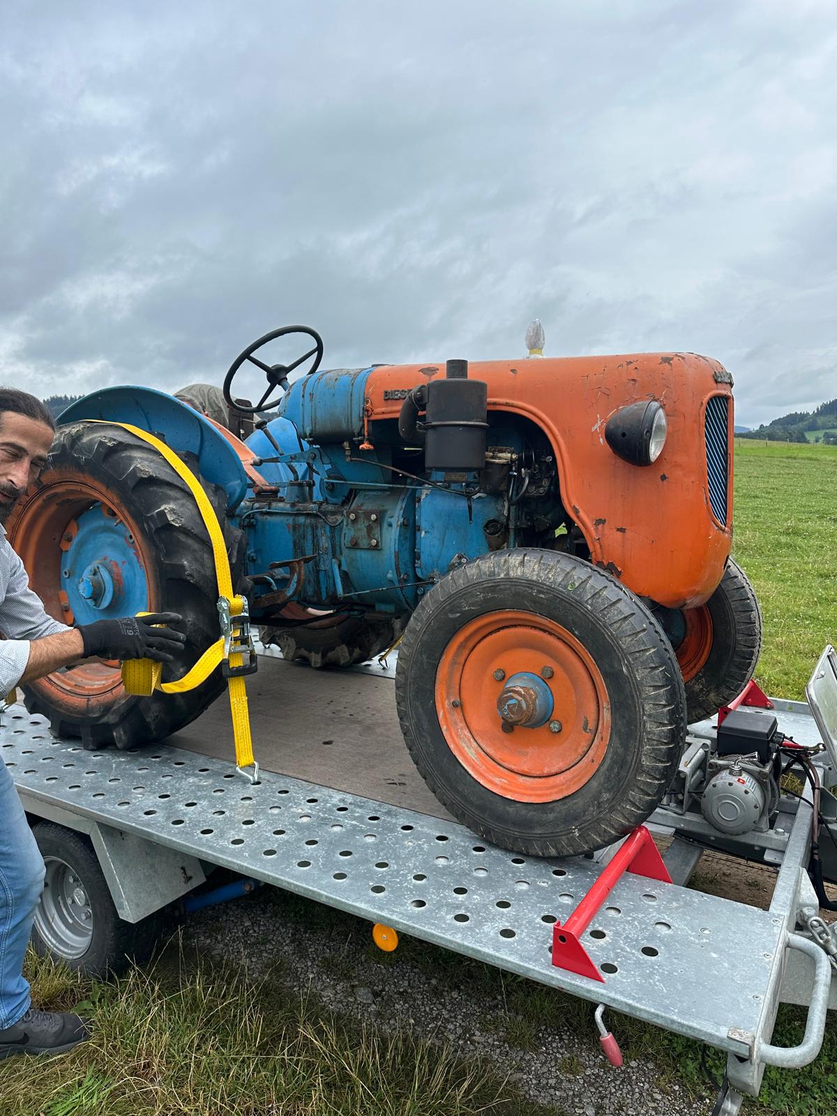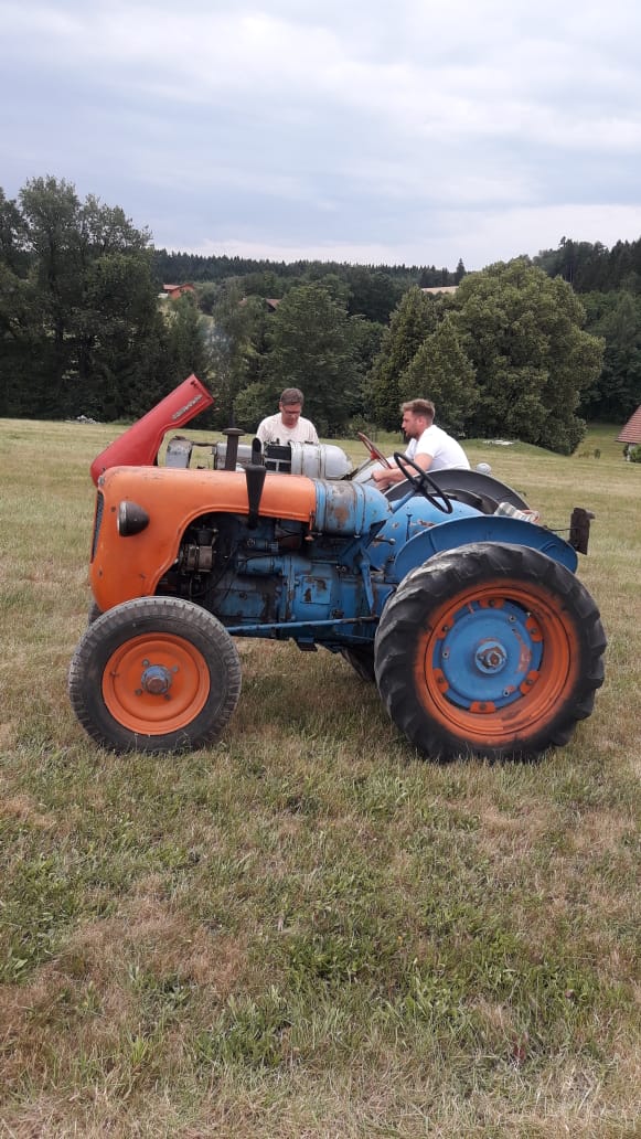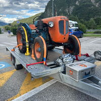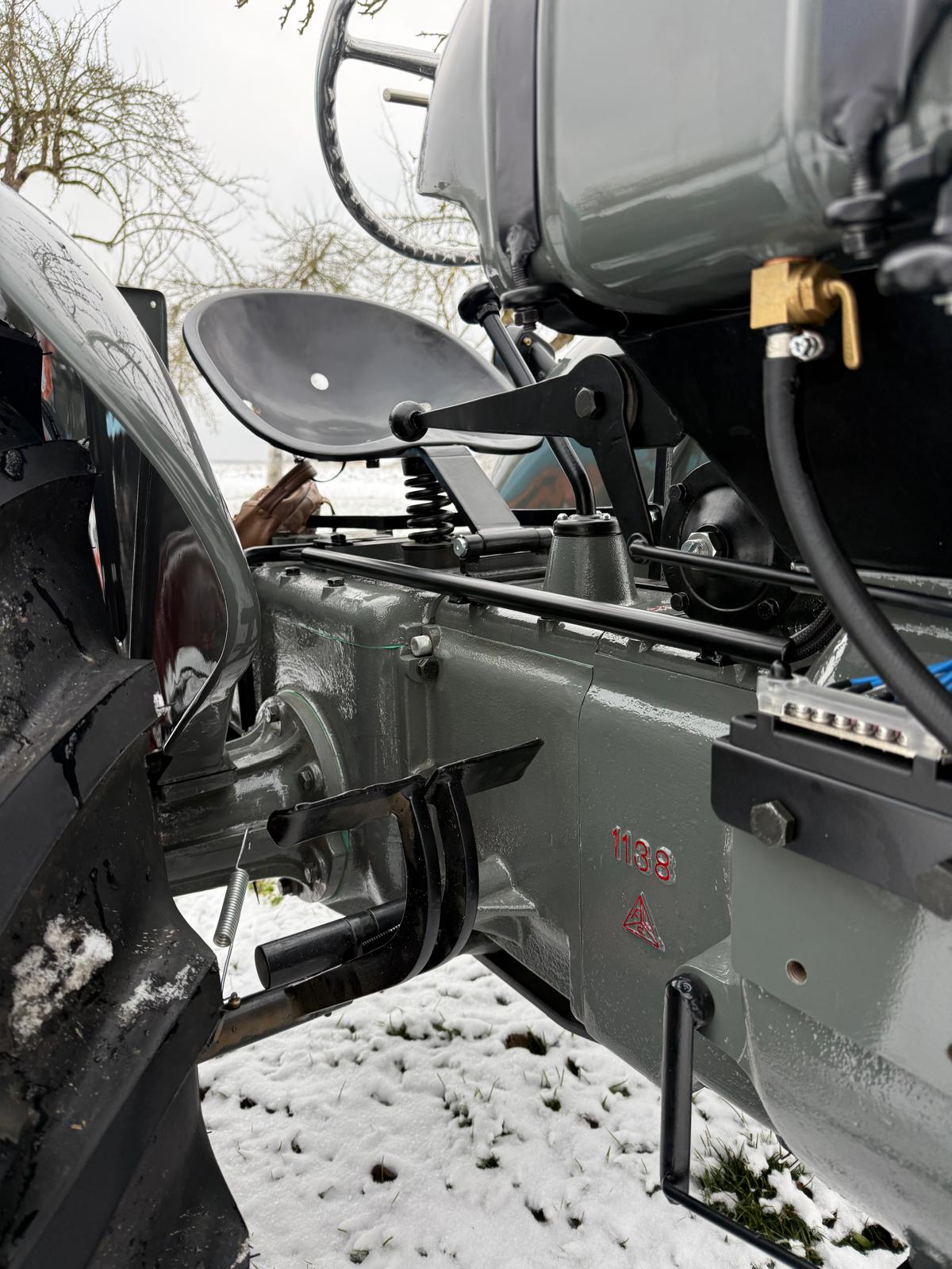 Vollzerlegung („Rahmen-off“) bis zur letzten Schraube. Elektrik komplett neu (moderne Verteilersysteme, neu gefertigter Kabelbaum, hochwertige Steck-/Crimpverbindungen; Sicherungen nur, wenn historisch vorgesehen). Alle Dichtungen neu, nach Traktormanufaktur-Spezifikation in Österreich gefertigt und verbaut. Anlasserzahnkranz wird grundsätzlich erneuert. Pulverbeschichtungen vieler Teile (bewegliche Komponenten überwiegend schwarz); Felgen mit Hochglanz-Pulverbeschichtung; Sichtteile periodenkorrekt lackiert. Original-Traktormeter in Originalausführung vom damaligen Originalhersteller nachproduziert. ID-gebundene Fotodokumentation & Monatschronik.