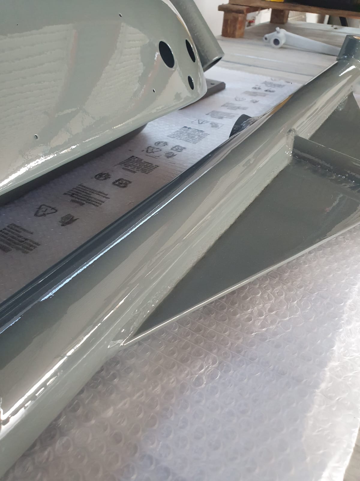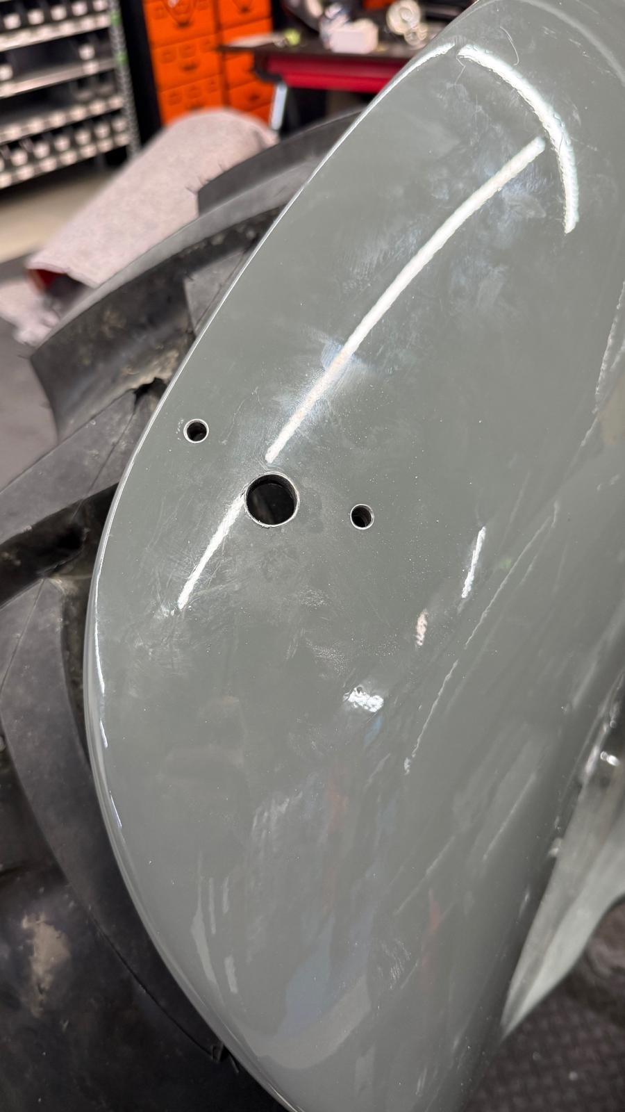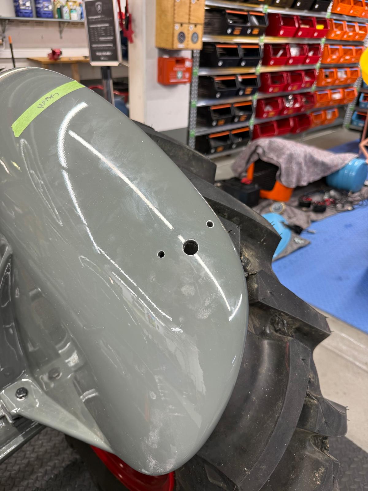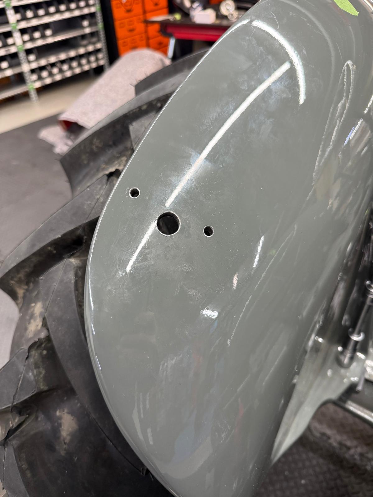 Professionelle Pulverbeschichtung vieler Bauteile; bewegliche Komponenten überwiegend schwarz pulverbeschichtet. Felgen mit Hochglanz-Pulverbeschichtung (Show-Quality-Finish). Sichtteile in periodenkorrekten Farbtönen lackiert. Umfassender Korrosionsschutz innen/außen.