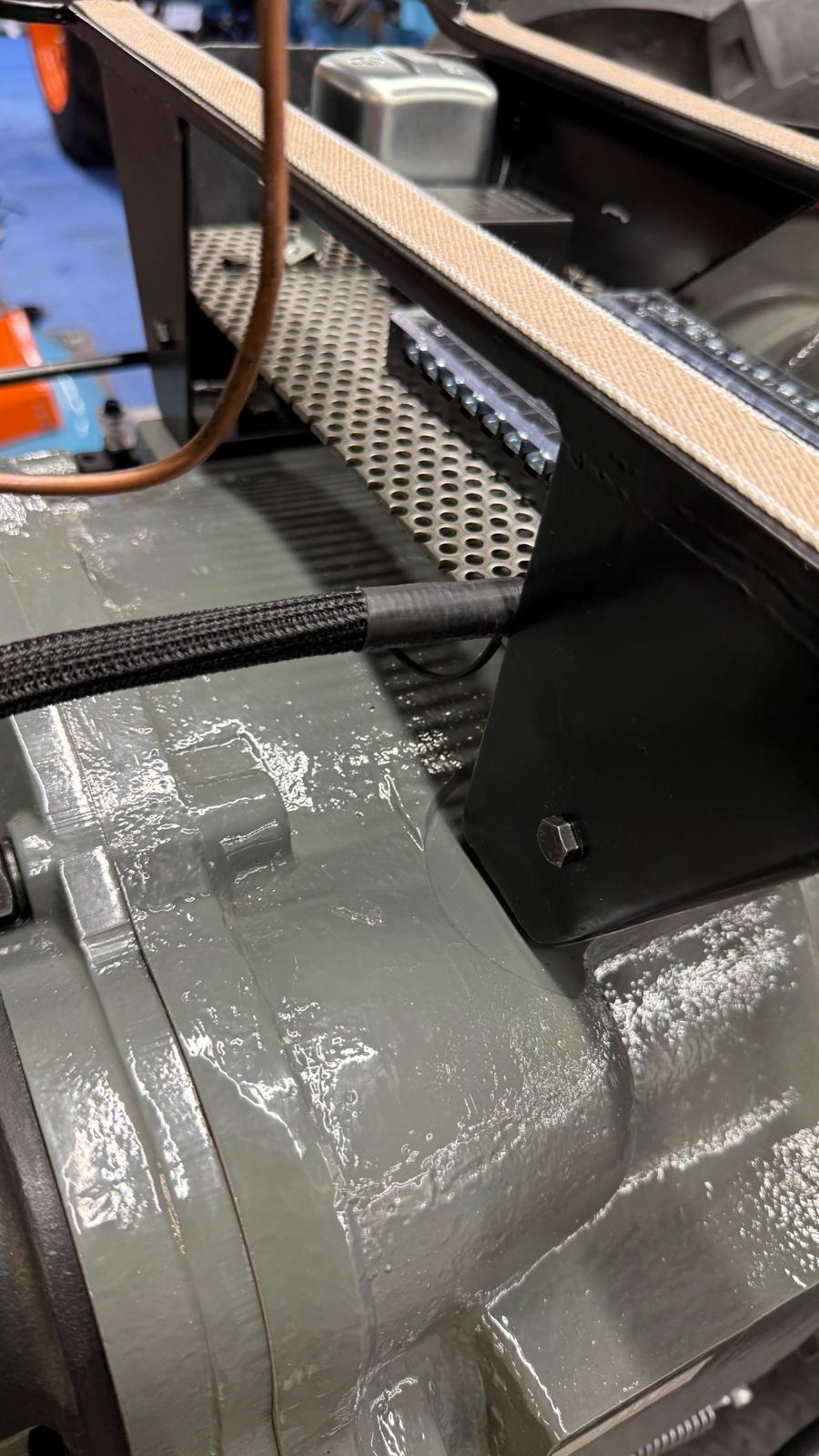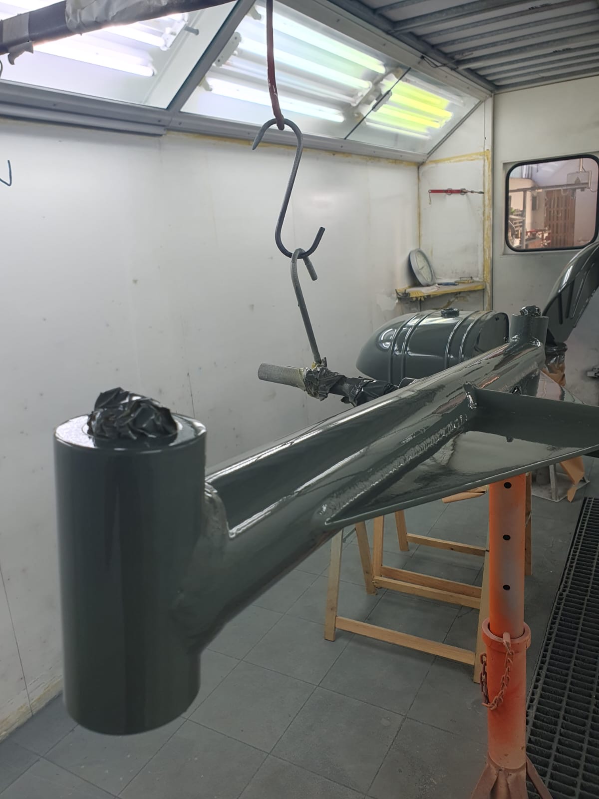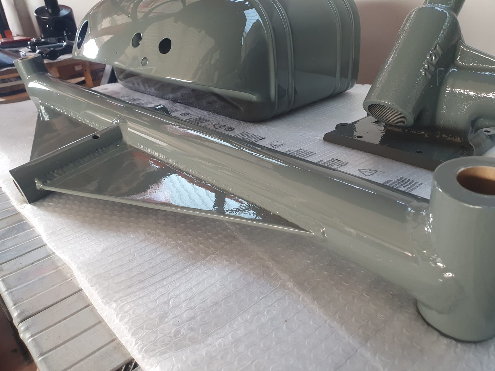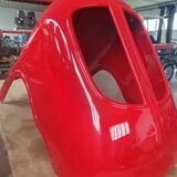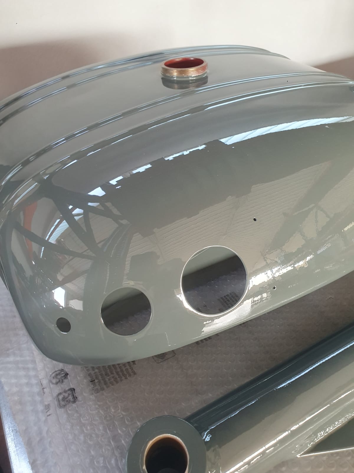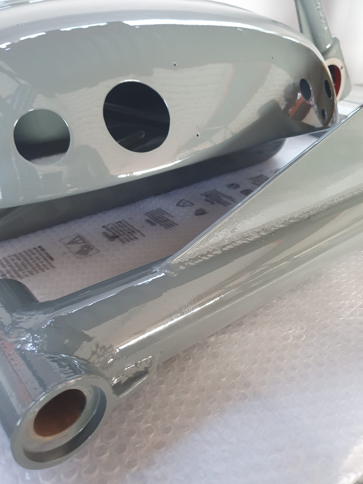 Professionelle Pulverbeschichtung vieler Bauteile; bewegliche Komponenten überwiegend schwarz pulverbeschichtet. Felgen mit Hochglanz-Pulverbeschichtung (Show-Quality-Finish). Sichtteile in periodenkorrekten Farbtönen lackiert. Umfassender Korrosionsschutz innen/außen.