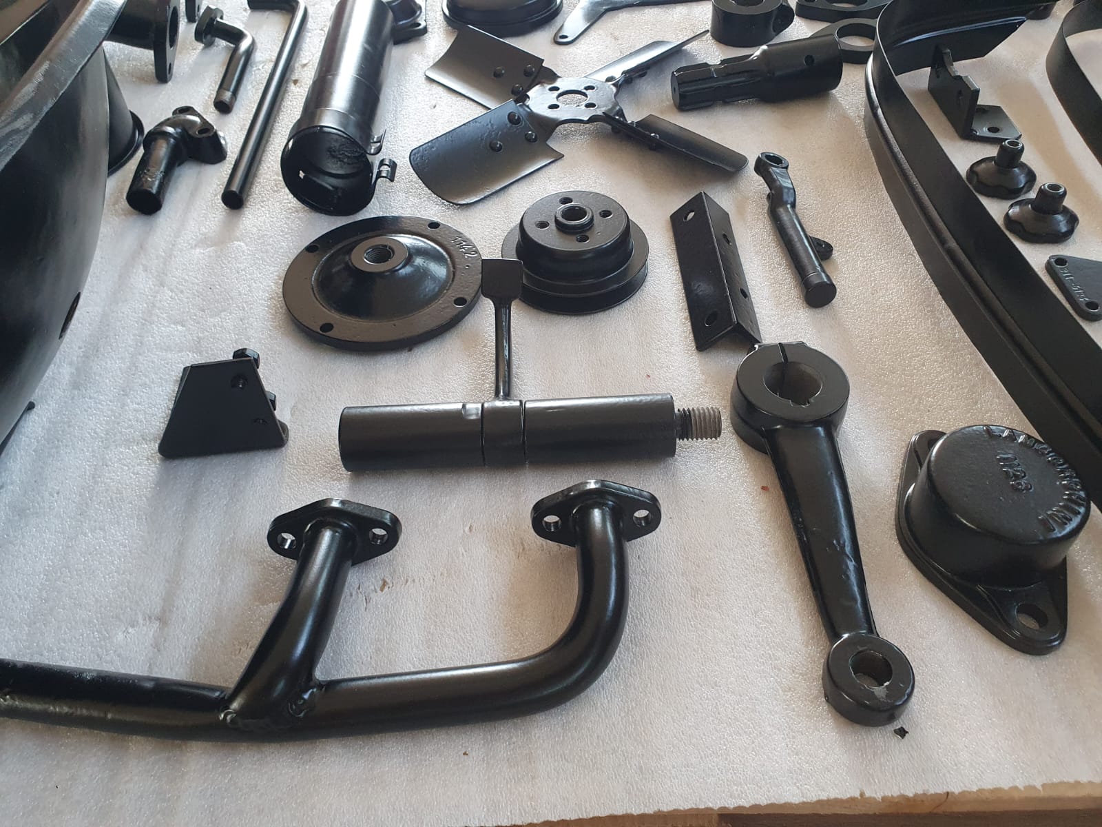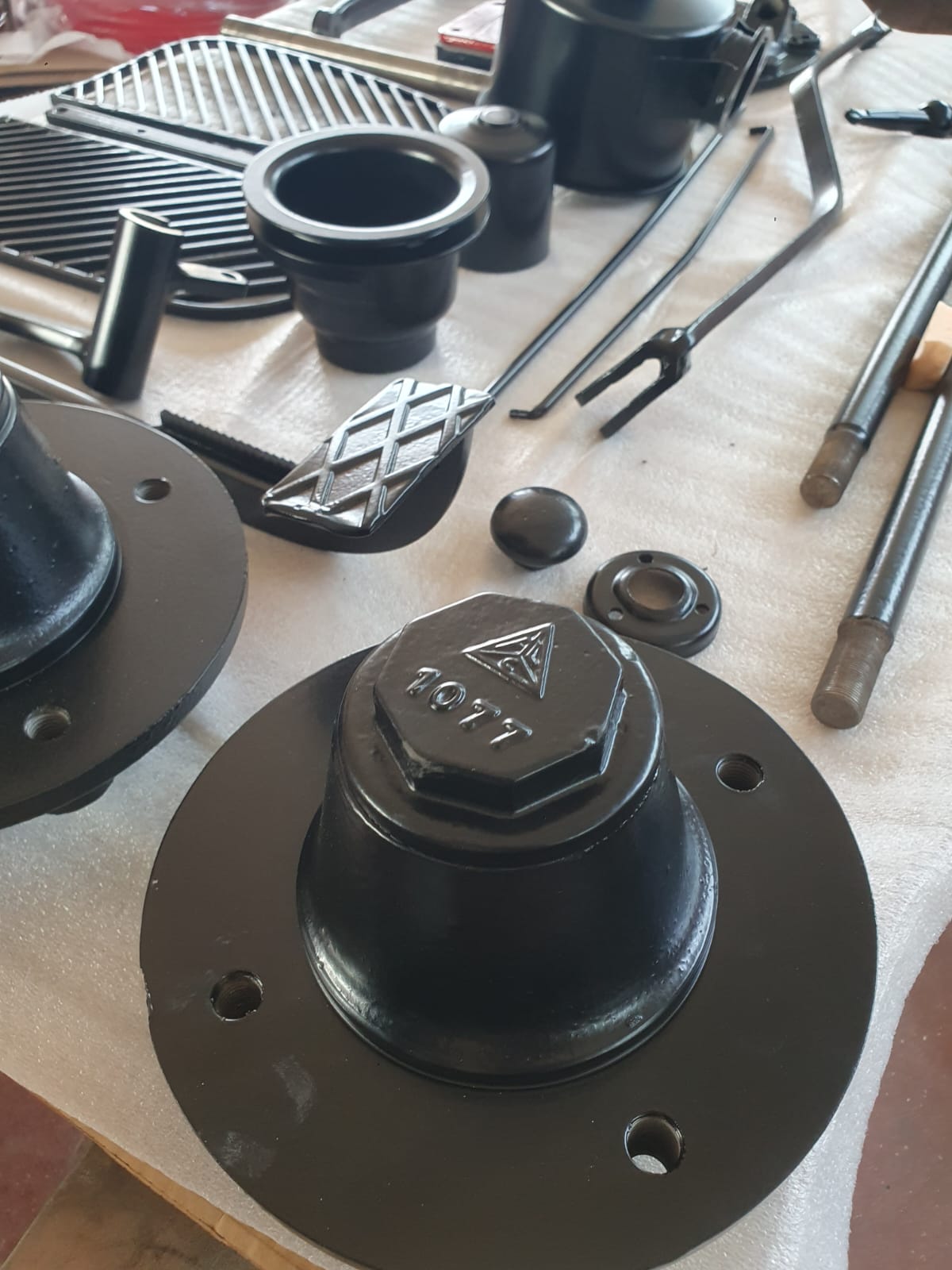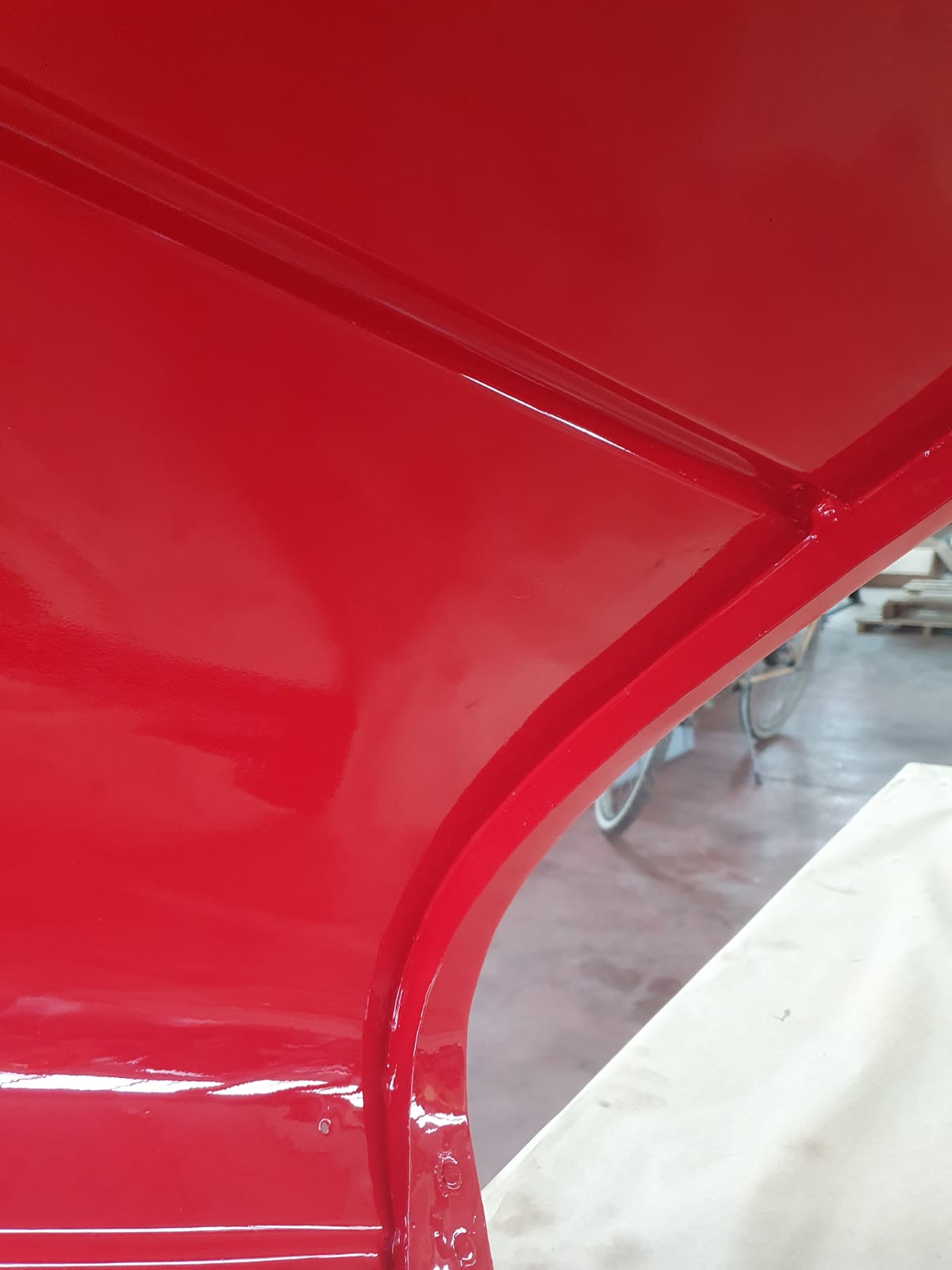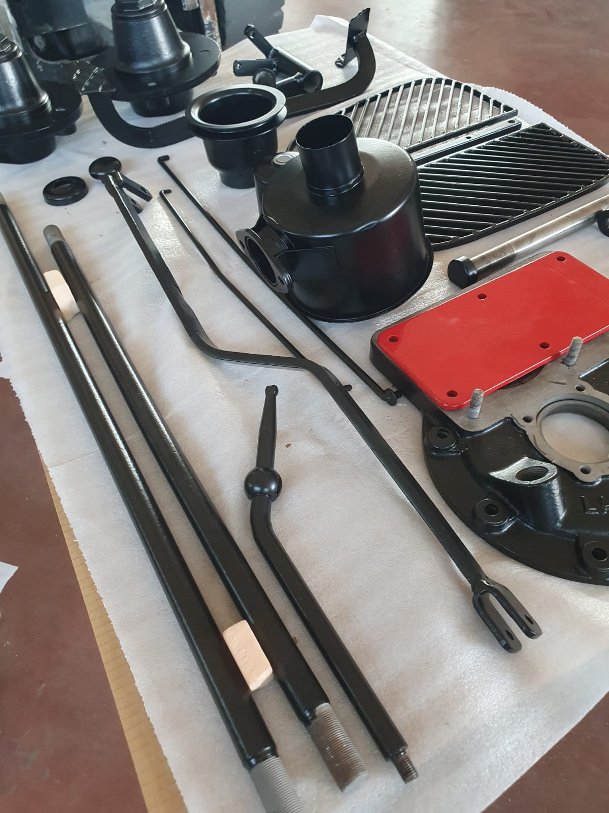Professionelle Pulverbeschichtung vieler Bauteile; bewegliche Komponenten überwiegend schwarz pulverbeschichtet. Felgen mit Hochglanz-Pulverbeschichtung (Show-Quality-Finish). Sichtteile in periodenkorrekten Farbtönen lackiert. Umfassender Korrosionsschutz innen/außen.