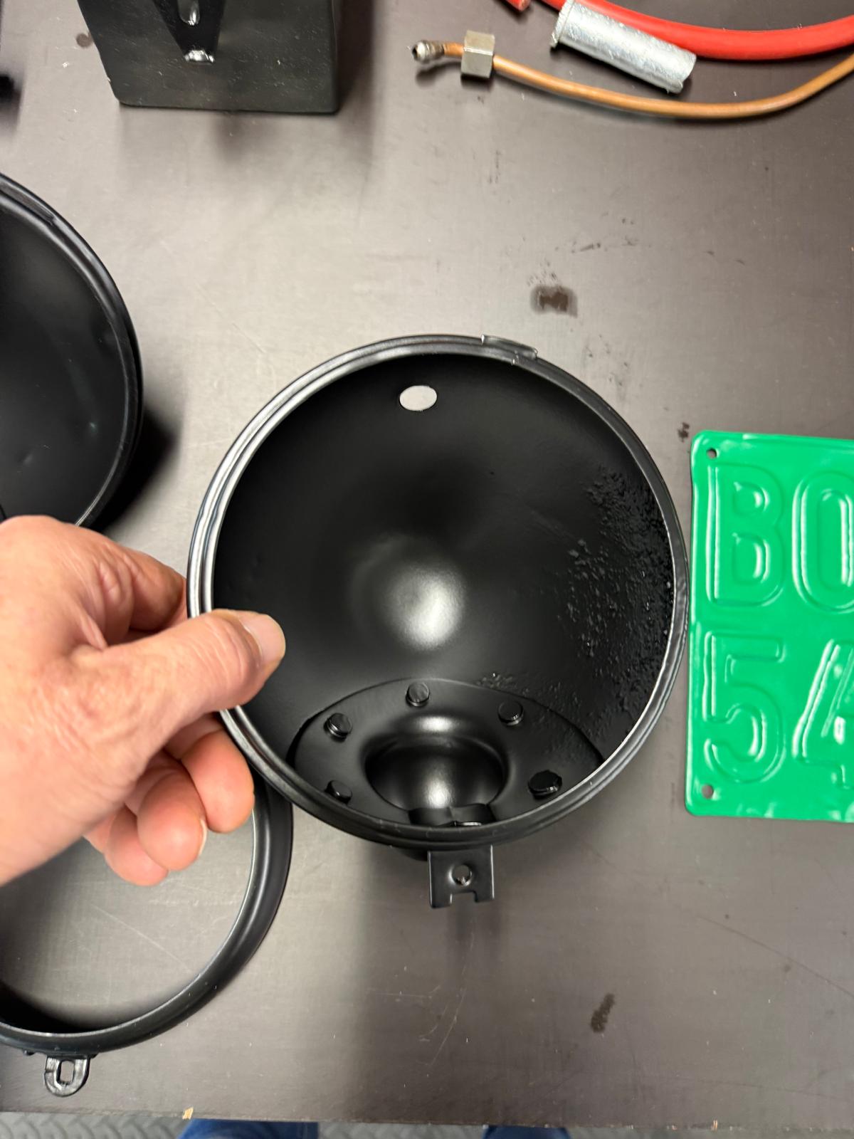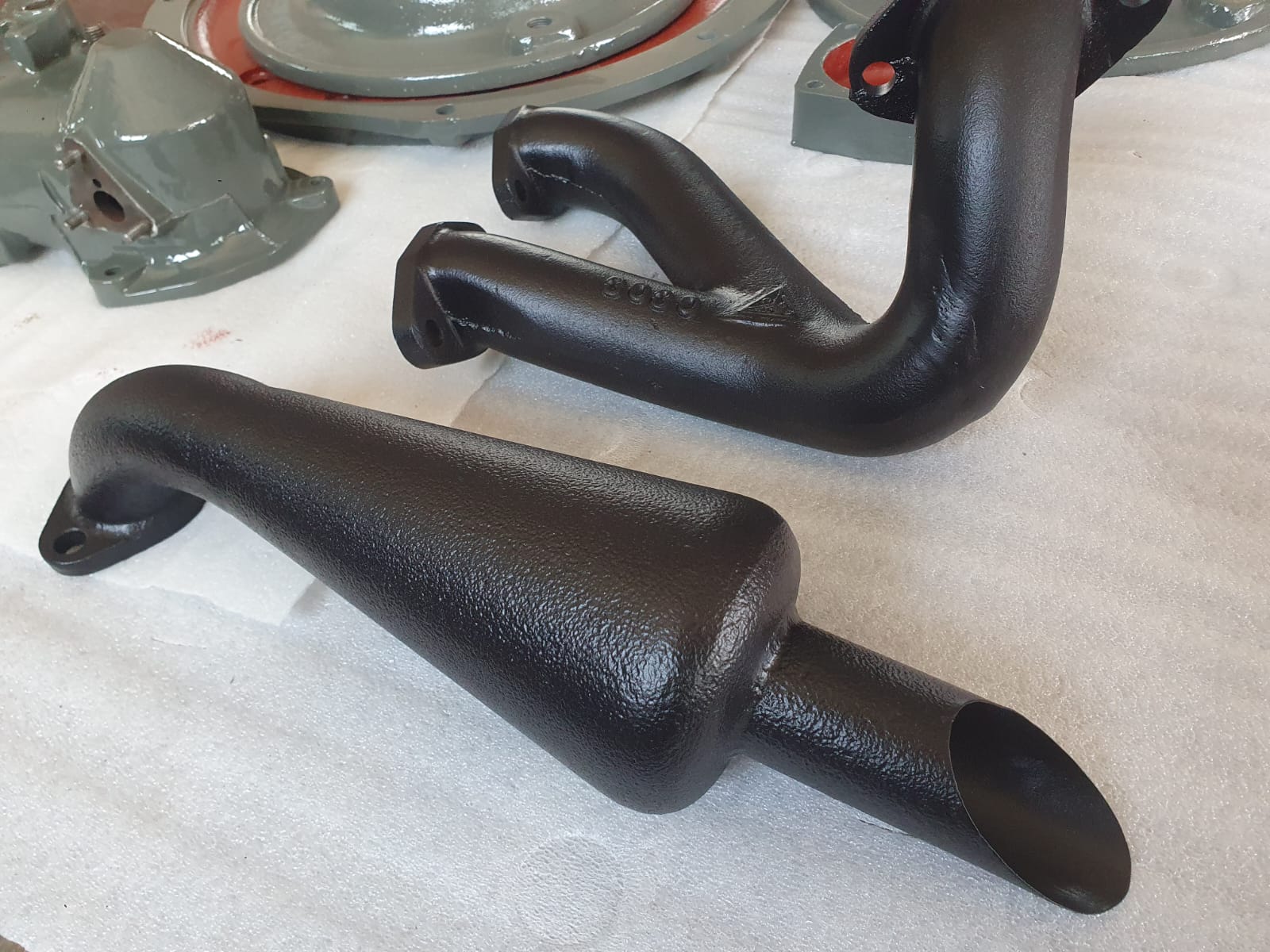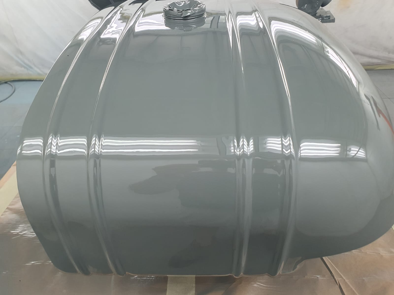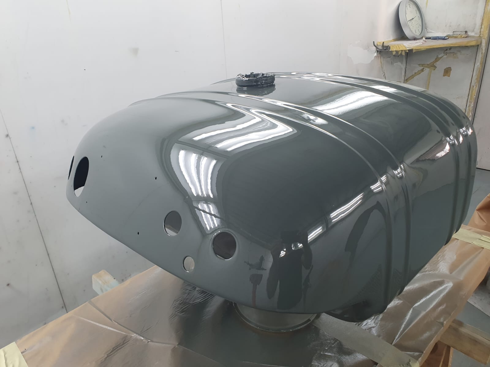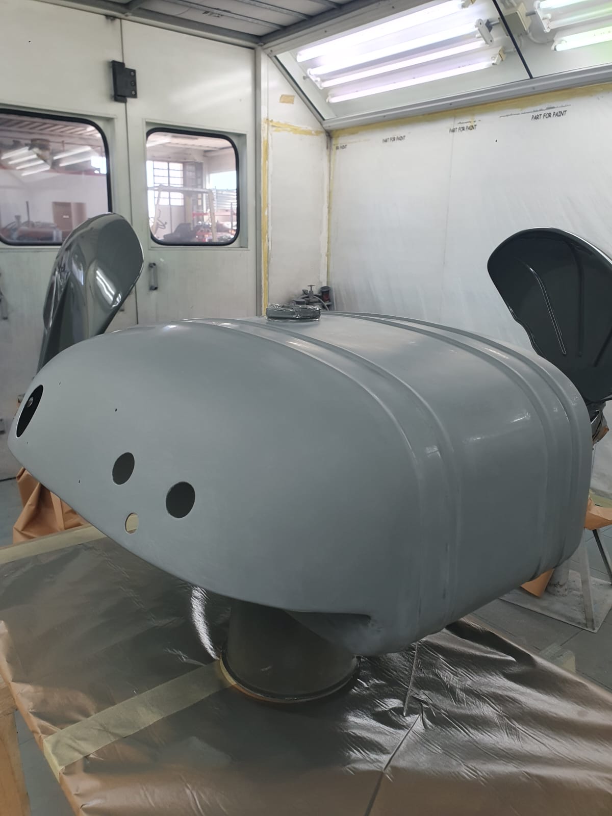 Professionelle Pulverbeschichtung vieler Bauteile; bewegliche Komponenten überwiegend schwarz pulverbeschichtet. Felgen mit Hochglanz-Pulverbeschichtung (Show-Quality-Finish). Sichtteile in periodenkorrekten Farbtönen lackiert. Umfassender Korrosionsschutz innen/außen.