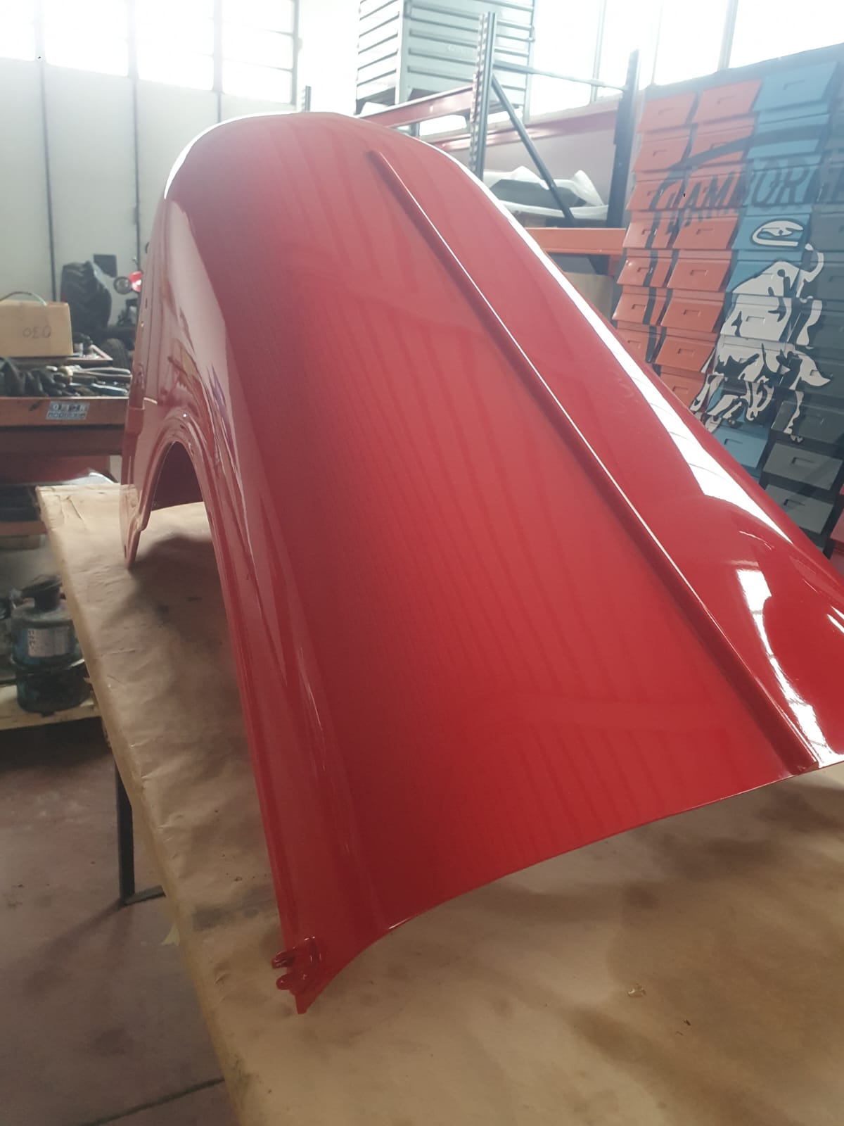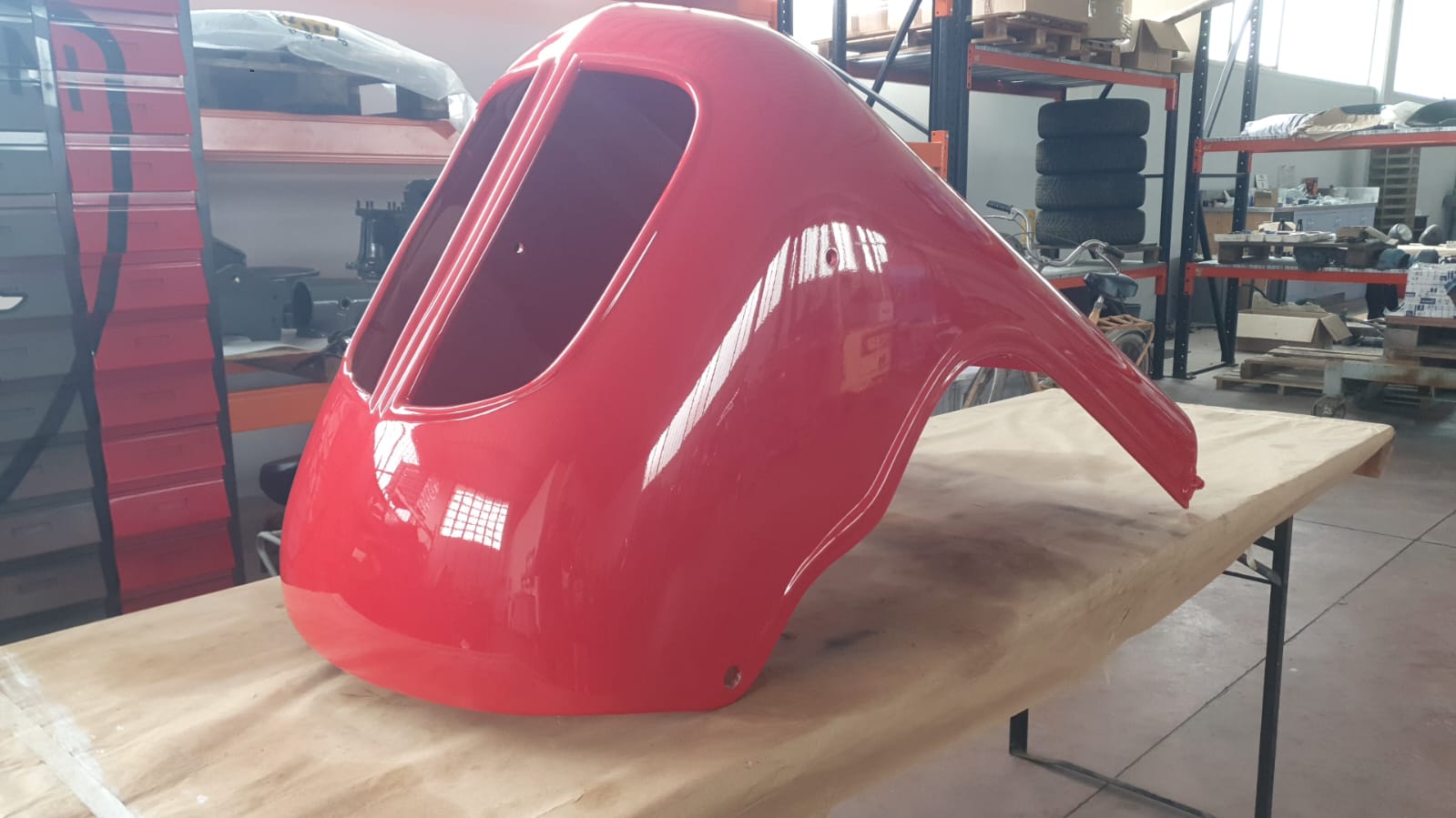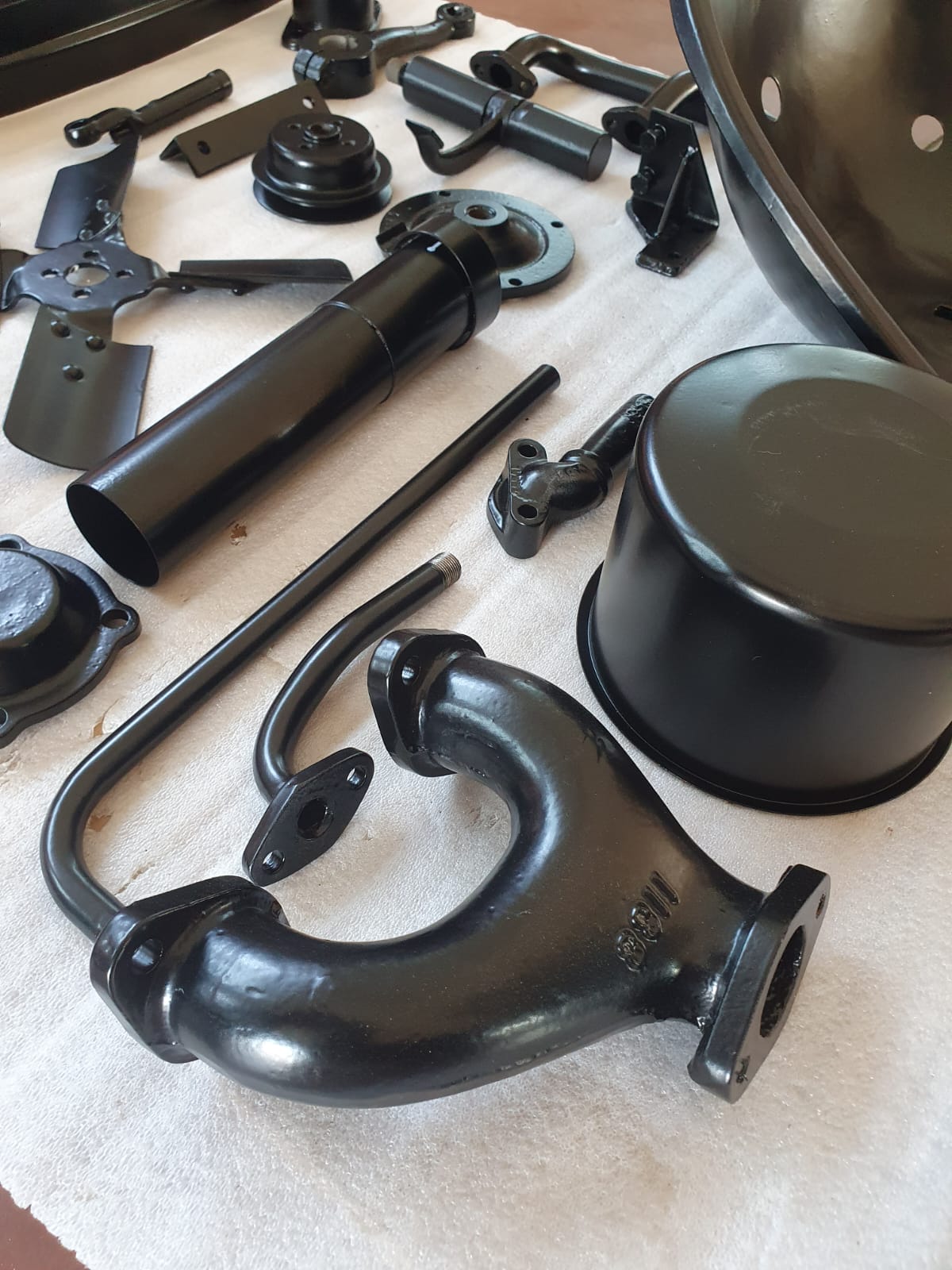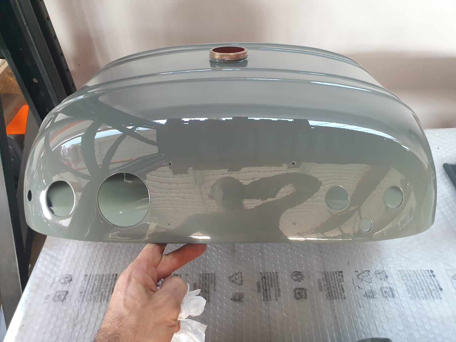 Professionelle Pulverbeschichtung vieler Bauteile; bewegliche Komponenten überwiegend schwarz pulverbeschichtet. Felgen mit Hochglanz-Pulverbeschichtung (Show-Quality-Finish). Sichtteile in periodenkorrekten Farbtönen lackiert. Umfassender Korrosionsschutz innen/außen.