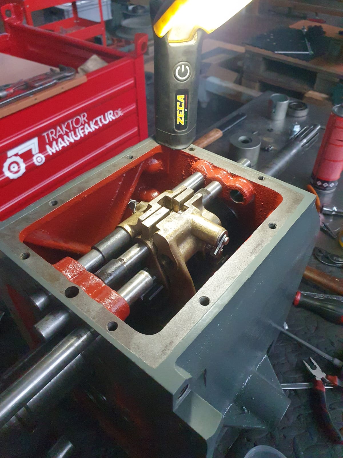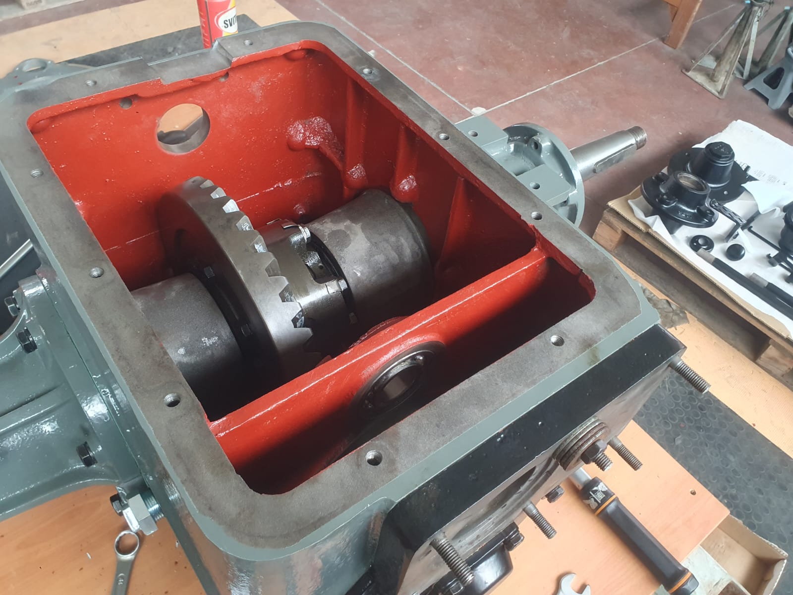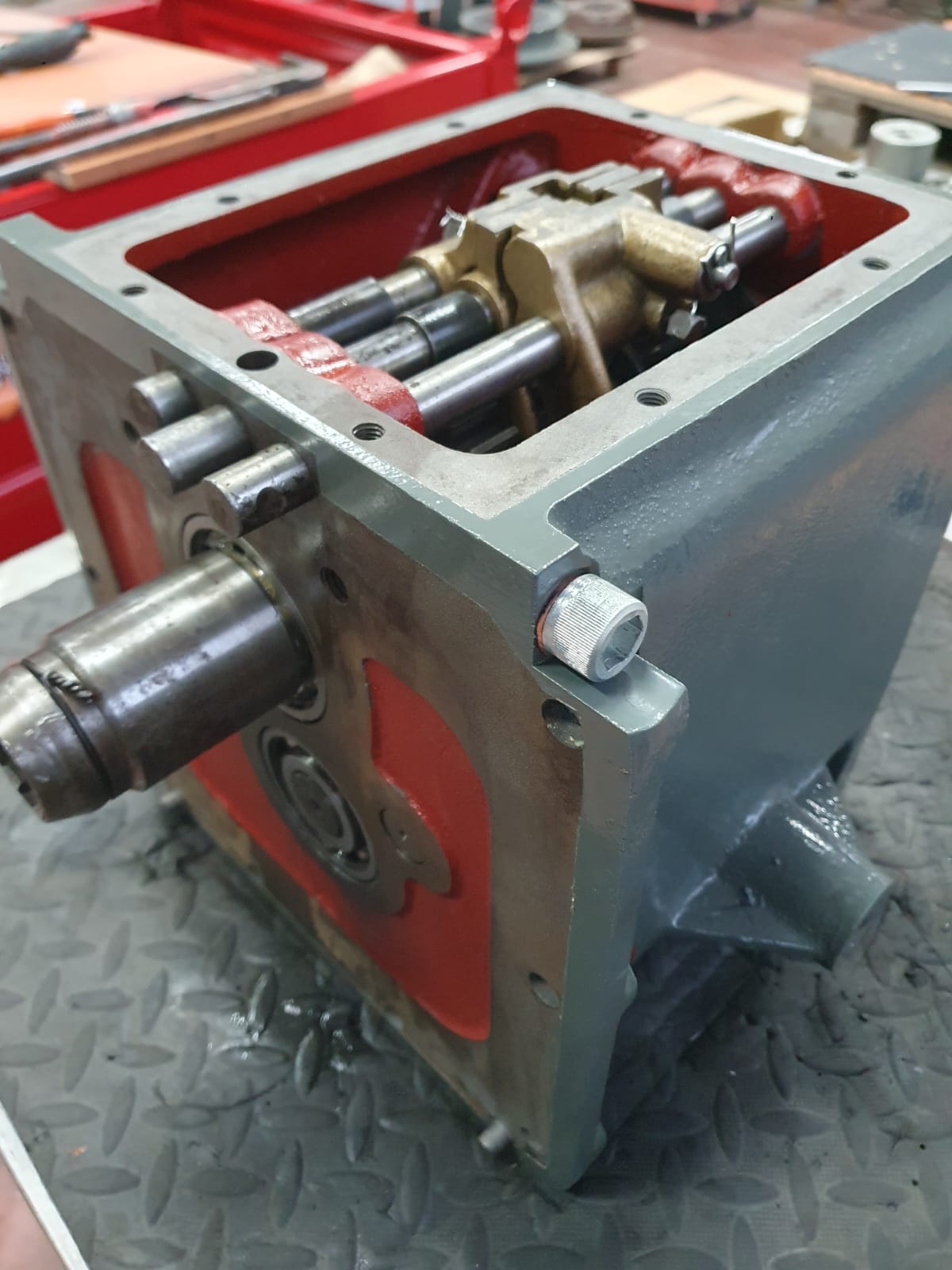 Gehäuse geöffnet, Verzahnungen/Lager/Passungen geprüft und protokolliert. Dichtpakete konsequent neu (AT-Spezifikation). Achsen und Lager eingestellt, Bremsanlage überholt, Reibpartner konditioniert, Lenkspiel minimiert – für definierte Betätigungskräfte und klare Schaltbarkeit.