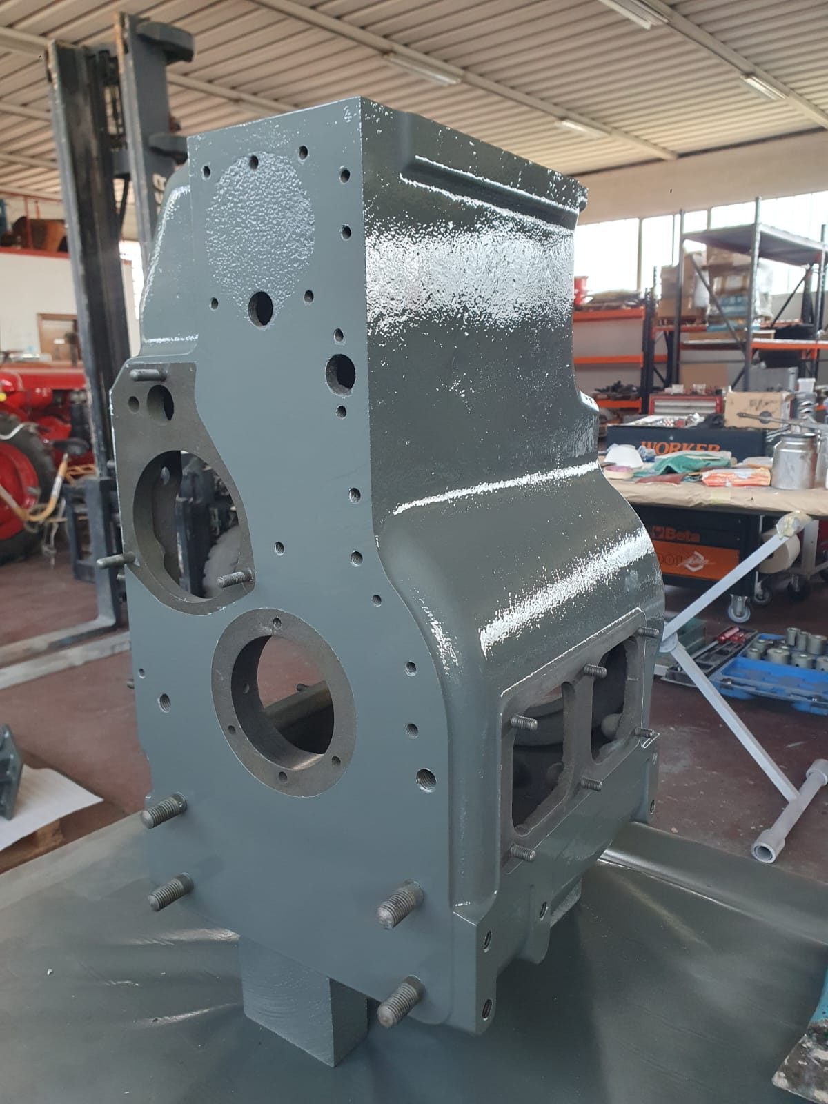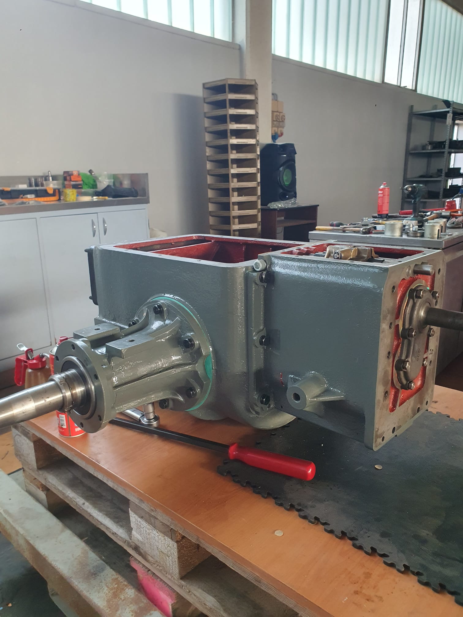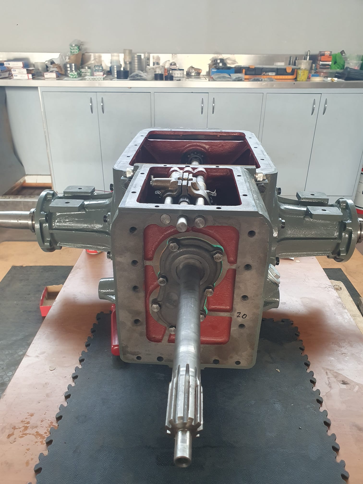 Gehäuse geöffnet, Verzahnungen/Lager/Passungen geprüft und protokolliert. Dichtpakete konsequent neu (AT-Spezifikation). Achsen und Lager eingestellt, Bremsanlage überholt, Reibpartner konditioniert, Lenkspiel minimiert – für definierte Betätigungskräfte und klare Schaltbarkeit.