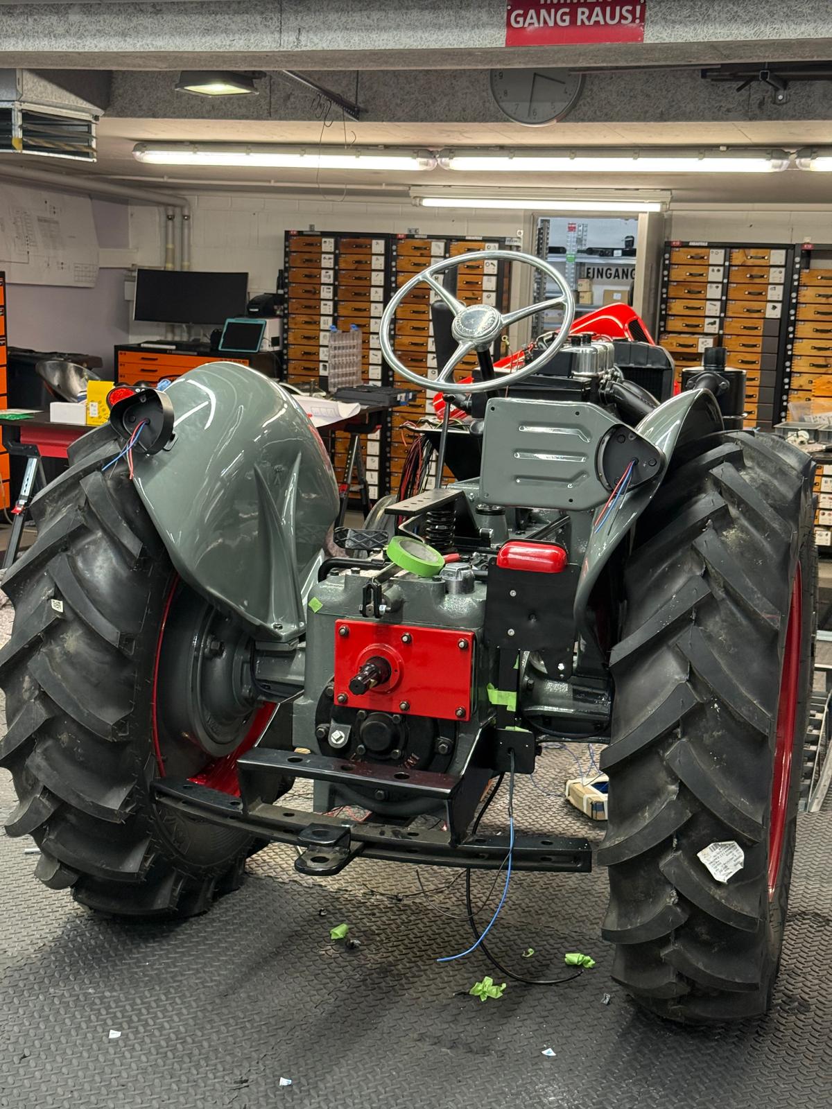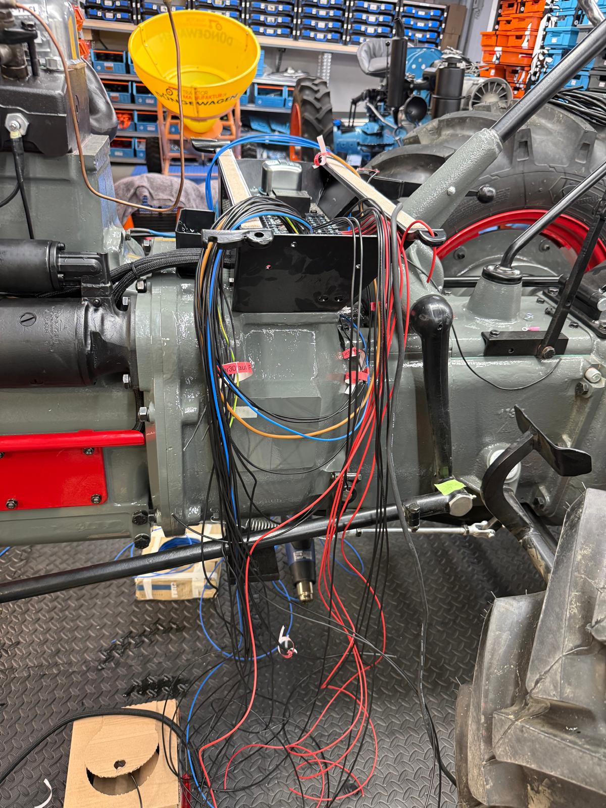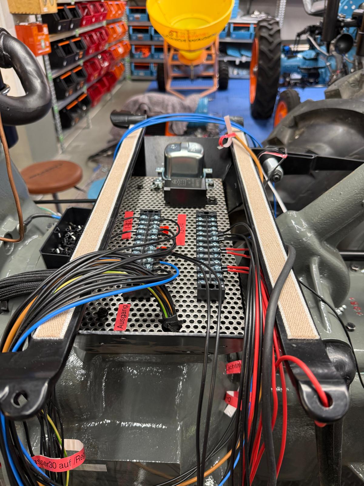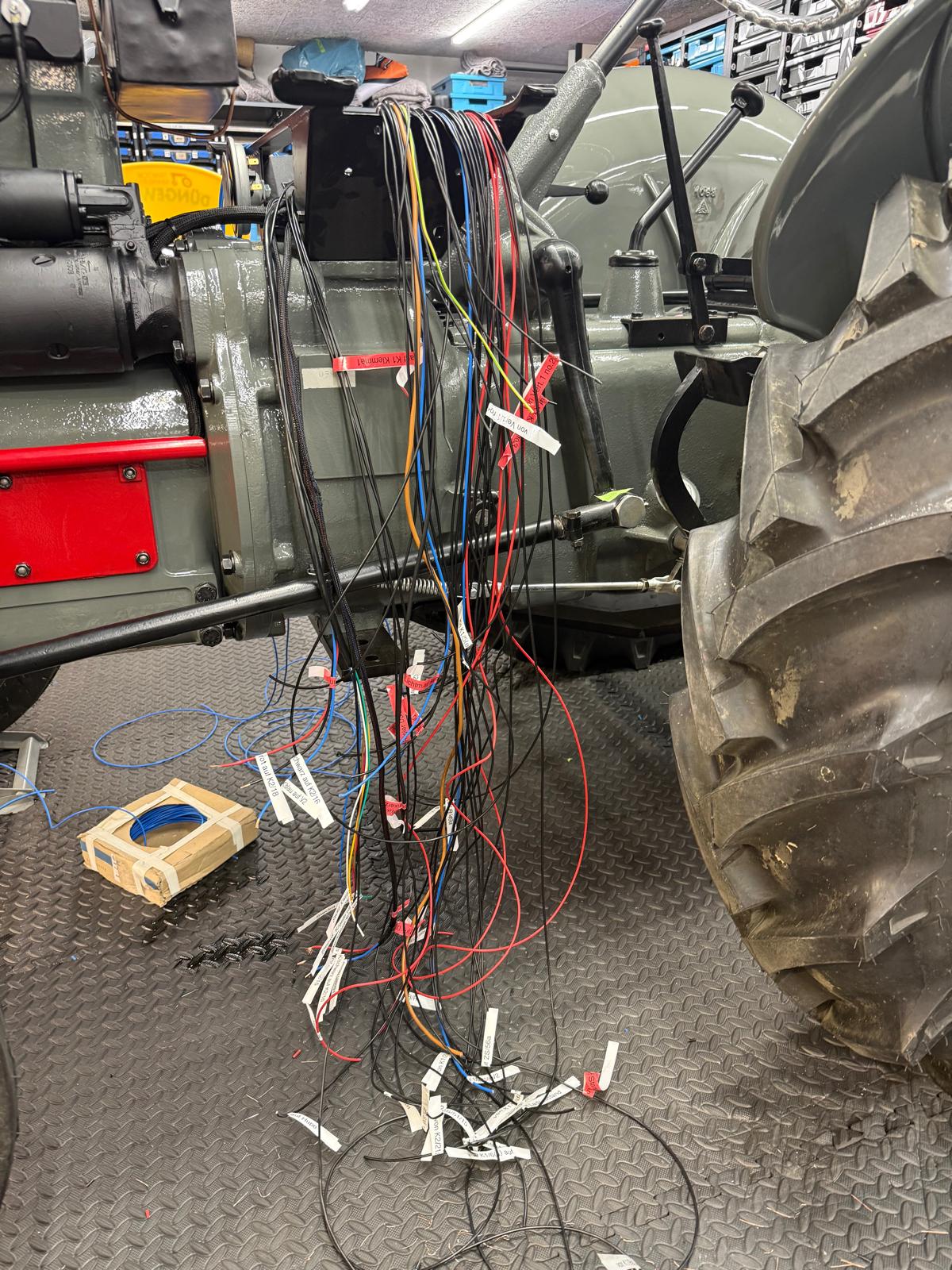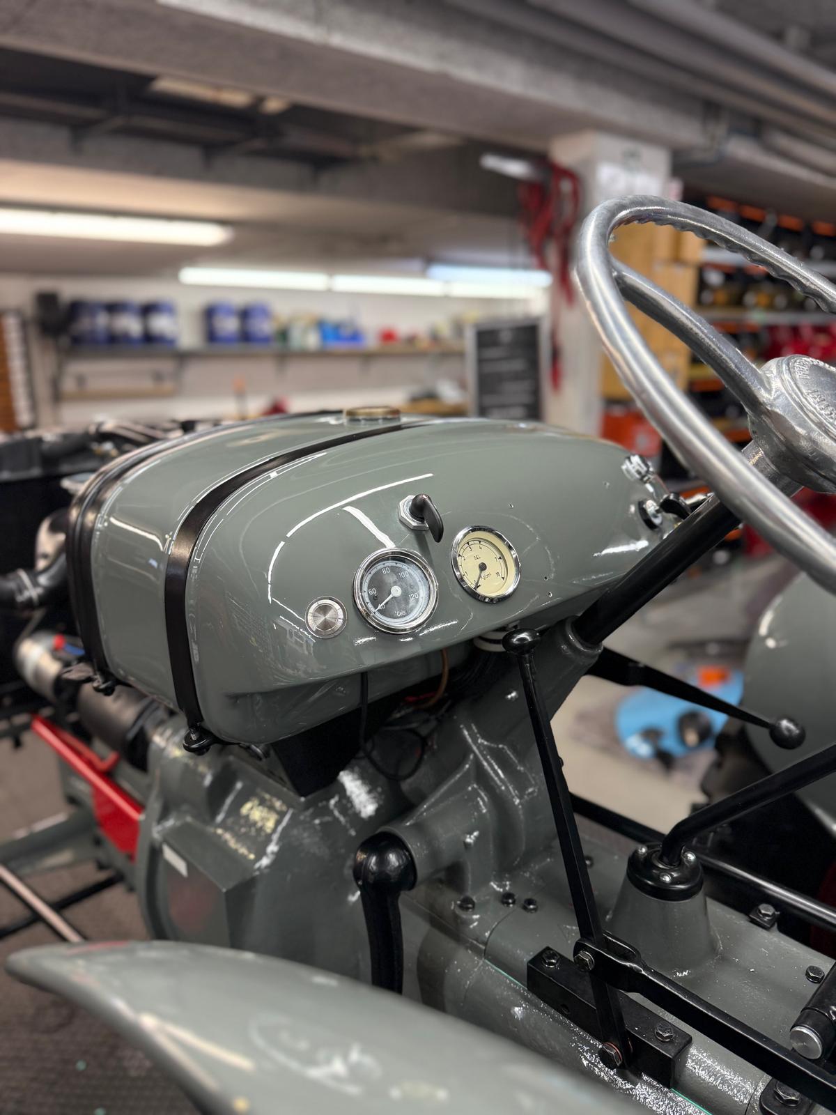 Neuaufbau mit modern dimensionierten Verteilersystemen, neu gefertigtem Kabelbaum und hochwertigen Steck-/Crimpverbindungen. Sicherungen nur, wenn historisch vorgesehen. Beleuchtung/Signale funktionssicher; Traktormeter in Originalausführung vom damaligen Originalhersteller nachproduziert.